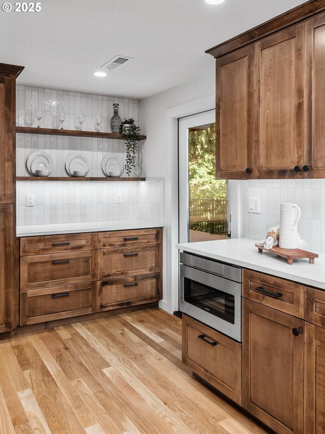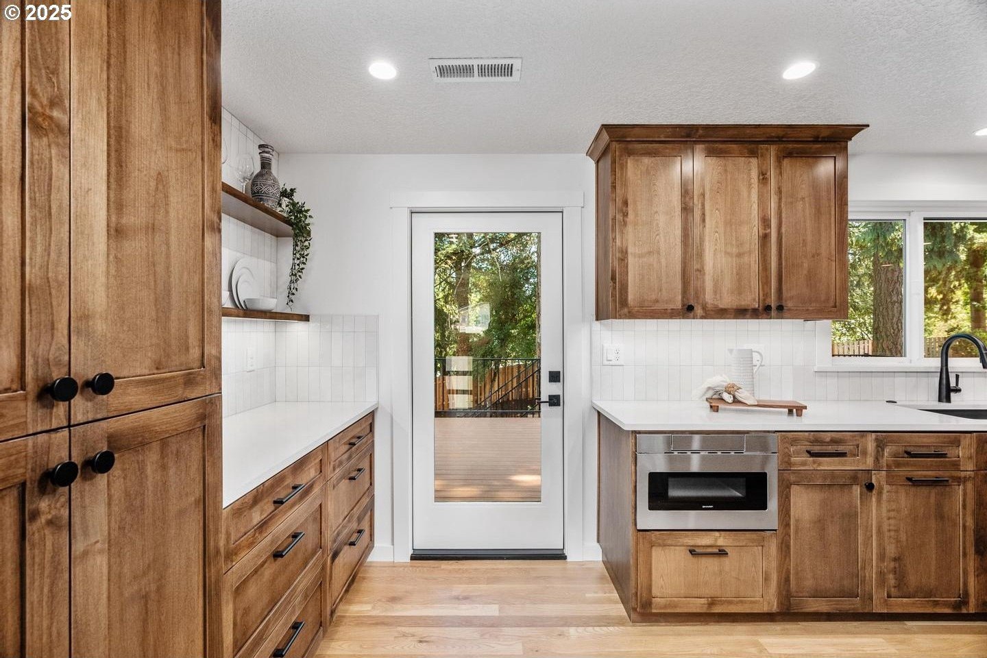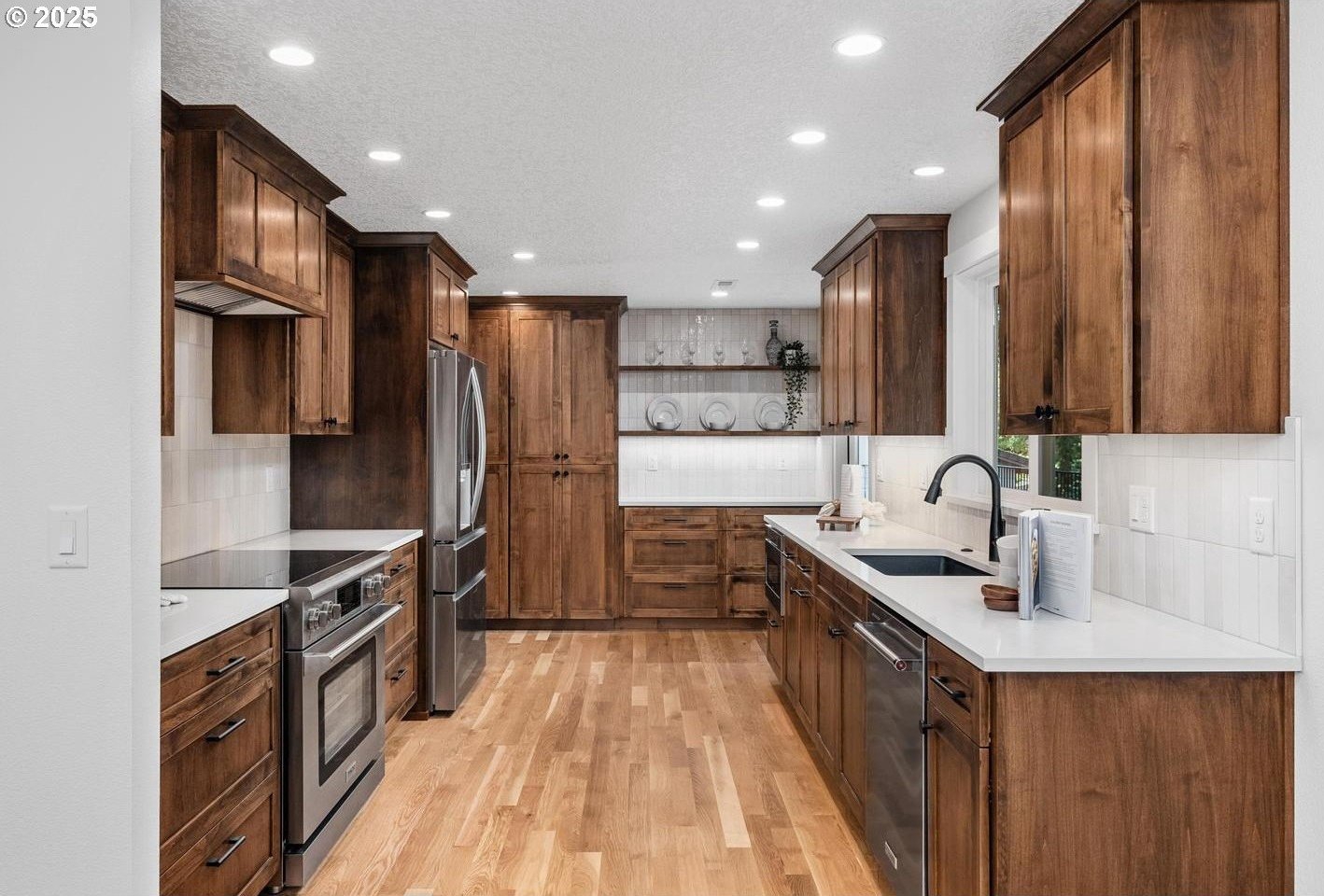 Stunning Pacific Northwest Remodel in Gladstone’s coveted ‘Sherwood Forest’ community - NO HOA! This modern split-level has been completely reimagined from the inside out, offering the style and efficiency of new construction with the charm of an established neighborhood. Every surface and system has been thoughtfully updated throughout the 2,289 sqft layout, featuring 4 bedrooms, 3 full designer bathrooms, spacious bonus room, and two wood-burning fireplaces. The custom kitchen is a true showpiece, featuring real alder cabinetry with abundant storage, Snow Orchid quartz counters, Chloe tile backsplash, floating shelves, and premium stainless appliances including a 36” Thor Range, counter depth refrigerator, and built-in microwave. Real Oak hardwood floors span the main level & stairs, tile downstairs, with plush carpet in all the bedrooms & bonus. The primary suite features a zero-edge walk-in tiled shower and private slider to the expansive 800 sqft Trex deck (entertainers dream) which overlooks large fenced backyard w/mature trees & sleek metal railings. Major upgrades include a new 30-year roof w/gutters, PEX plumbing (replaced all copper), 200 AMP electrical panel, sewer line, attic & floor insulation, and newer windows & slider for lots of natural light. This home is extremely energy-efficient, with a tankless hot water heater w/circulating pump, 95% efficient Trane furnace, Energy Star-rated dishwasher, and high-efficiency AC. Ample street parking adds convenience. The exterior is a standout w/black-painted board & batten above natural-stained cedar, modern garage door w/ matching entry door, and brand-new driveway. Tucked on a quiet dead-end street, this friendly neighborhood is very peaceful w/ big trees and a private park. This is the full package—style, quality, and peace of mind. See amenity sheet for full list of all updates. Close to parks, recreation, and schools. LLC Member is Licensed OR Broker. This is a must see - schedule your showing today!
