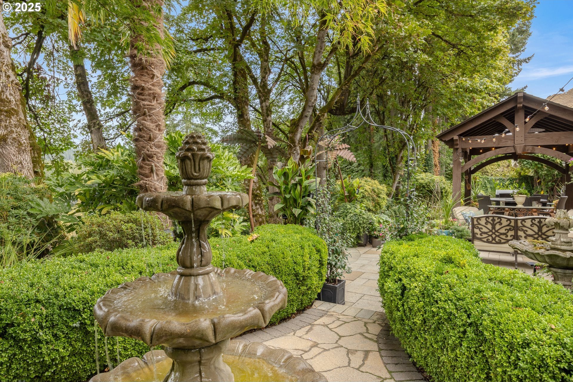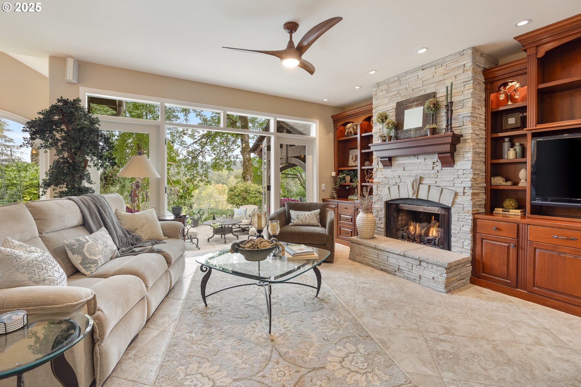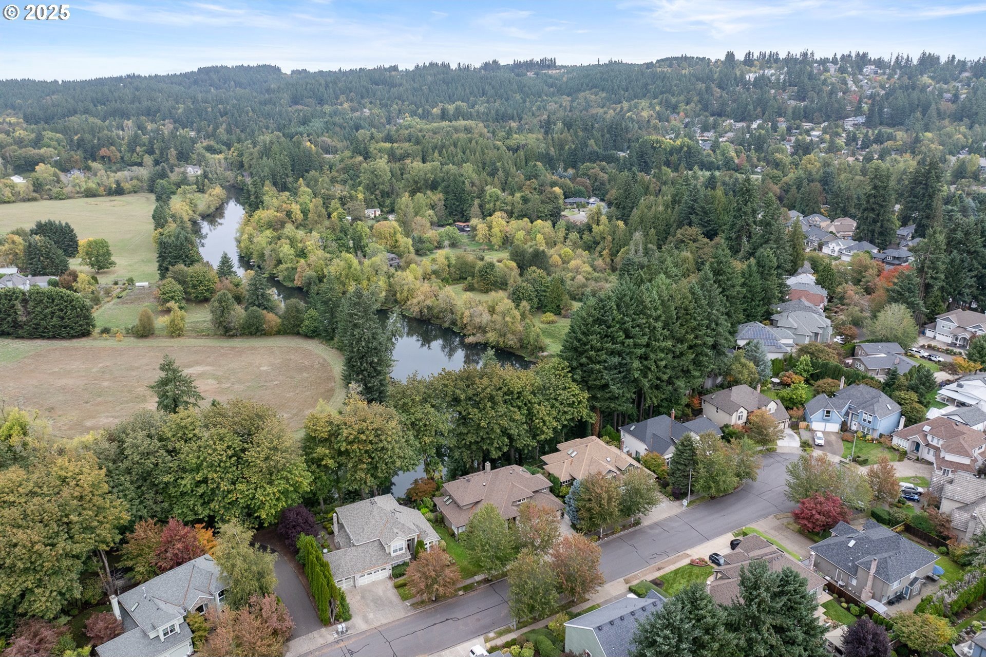 Your wait is over for the most sought after location and view in River Heights. Discover this stunning high quality custom remodeled two-level home offering unobstructed views over the Tualatin River to the pastoral valley beyond. Designed for both elegance and comfort, the vaulted entry, living room, and adjoining dining area with bar and bronze-tiled ceiling create an inviting space for entertaining or relaxing. 2,955 square feet of gracious living space with 4 generous bedrooms and 2.75 luxurious baths. Set on peaceful cul-de-sac, this 1/3-acre property is a serene oasis featuring manicured gardens, stone patios, sunken gas firepit, fountain, and a covered pavilion—perfect for morning coffee, summer barbecues, or quiet evenings overlooking the river. Yard and hardscape were completely redone 8 years ago to blend seamlessly with the indoor spaces. At the heart of the home, the gourmet kitchen boasts custom cabinetry, layered accent lighting, quartz countertops, walk-in pantry, Sub-Zero refrigerator, induction cooktop, double ovens, and commercial-grade stainless appliances. Heated tile floor throughout kitchen, nook & family room. The adjacent family room centers around a floor-to-ceiling stone fireplace with hearth and mantel, offering a warm, inviting gathering space. The spacious primary suite provides a peaceful retreat with panoramic views, a spa-like bath with dual vanities, Jacuzzi tub, travertine finishes, and a large custom organized walk-in closet. Additional highlights include a generous laundry/mudroom with custom cabinetry and bonus water closet, a versatile main-level office or fourth bedroom, and a three-car garage with built-ins and overhead storage. Located in West Linn’s sought-after River Heights neighborhood—No HOA fee, short distance to parks, the local boat launch, shopping, dining, top-rated schools and under 1/3rd of a mile to Athey Creek Middle School. This interior-designer-owned home radiates quality, comfort, and timeless style.