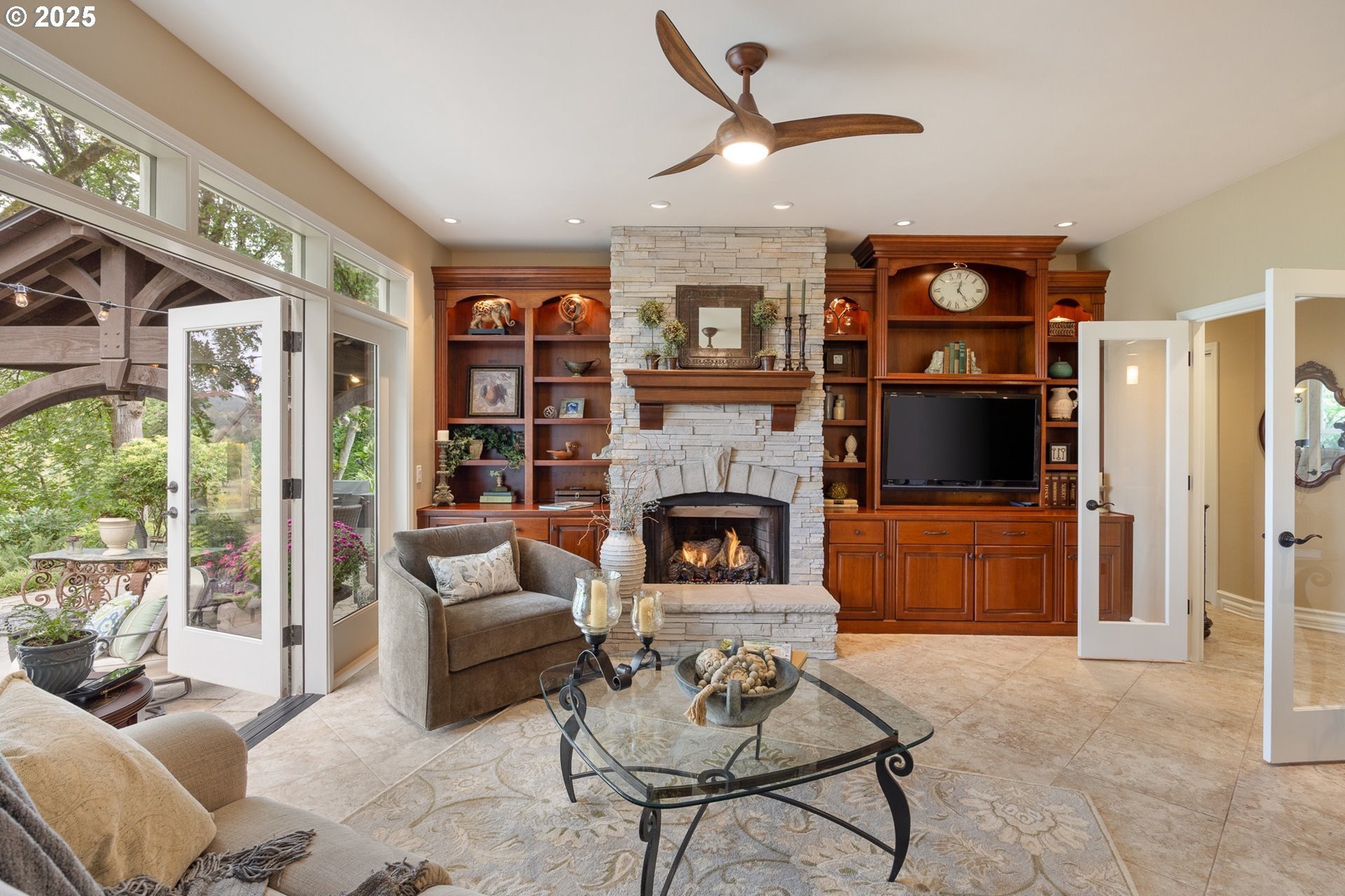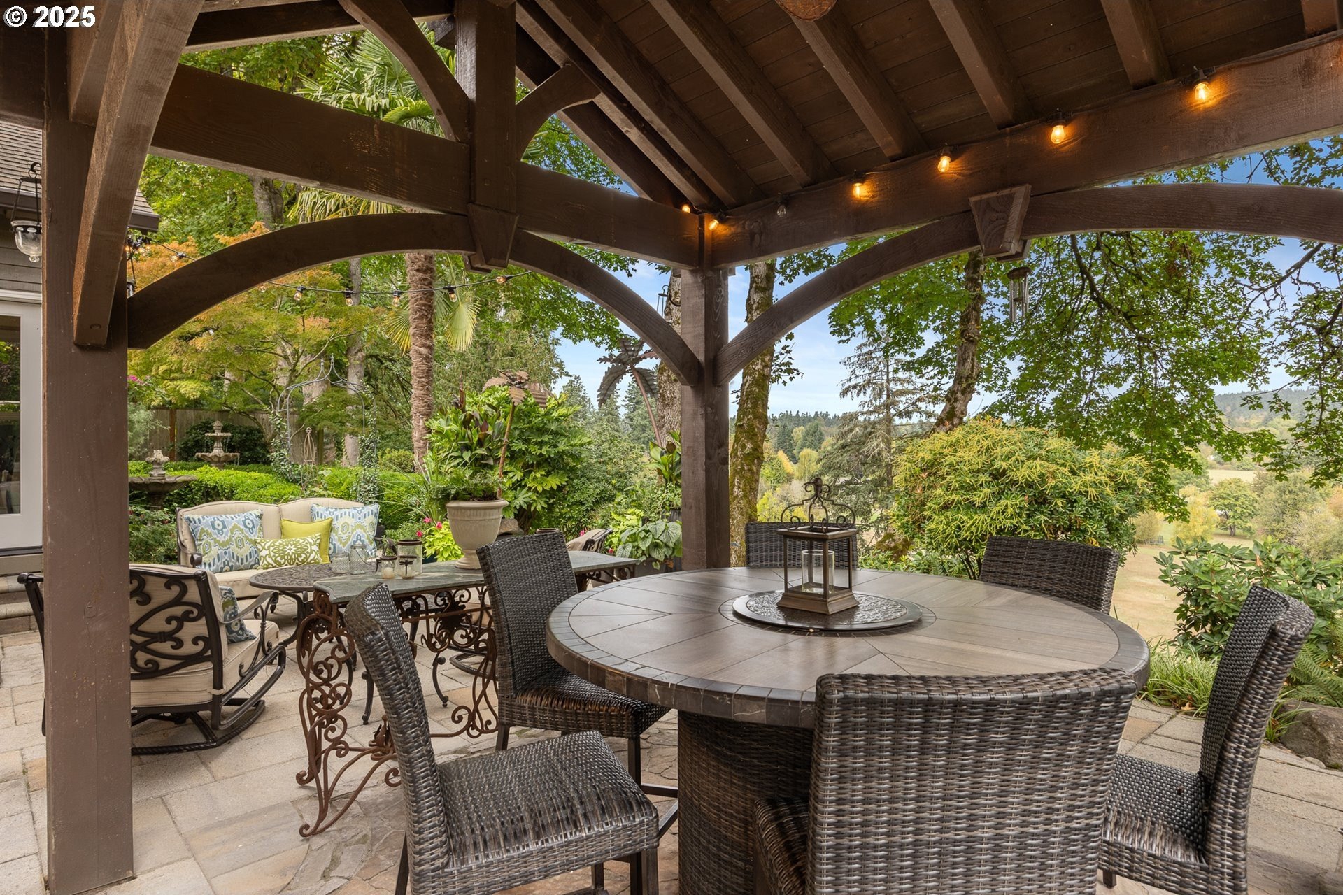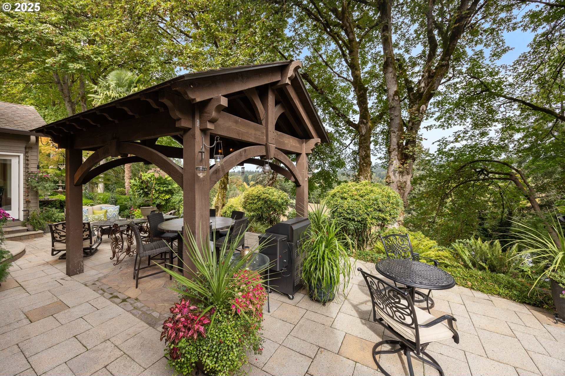 Your wait is over for the most sought after location and view in River Heights. Discover this stunning high quality custom remodeled two-level home offering unobstructed views over the Tualatin River to the pastoral valley beyond. Designed for both elegance and comfort, the vaulted entry, living room, and adjoining dining area with bar and bronze-tiled ceiling create an inviting space for entertaining or relaxing. 2,955 square feet of gracious living space with 4 generous bedrooms and 2.75 luxurious baths. Set on peaceful cul-de-sac, this 1/3-acre property is a serene oasis featuring manicured gardens, stone patios, sunken gas firepit, fountain, and a covered pavilion—perfect for morning coffee, summer barbecues, or quiet evenings overlooking the river. Yard and hardscape were completely redone 8 years ago to blend seamlessly with the indoor spaces. At the heart of the home, the gourmet kitchen boasts custom cabinetry, layered accent lighting, quartz countertops, walk-in pantry, Sub-Zero refrigerator, induction cooktop, double ovens, and commercial-grade stainless appliances. Heated tile floor throughout kitchen, nook & family room. The adjacent family room centers around a floor-to-ceiling stone fireplace with hearth and mantel, offering a warm, inviting gathering space. The spacious primary suite provides a peaceful retreat with panoramic views, a spa-like bath with dual vanities, Jacuzzi tub, travertine finishes, and a large custom organized walk-in closet. Additional highlights include a generous laundry/mudroom with custom cabinetry and bonus water closet, a versatile main-level office or fourth bedroom, and a three-car garage with built-ins and overhead storage. Located in West Linn’s sought-after River Heights neighborhood—No HOA fee, short distance to parks, the local boat launch, shopping, dining, top-rated schools and under 1/3rd of a mile to Athey Creek Middle School. This interior-designer-owned home radiates quality, comfort, and timeless style.