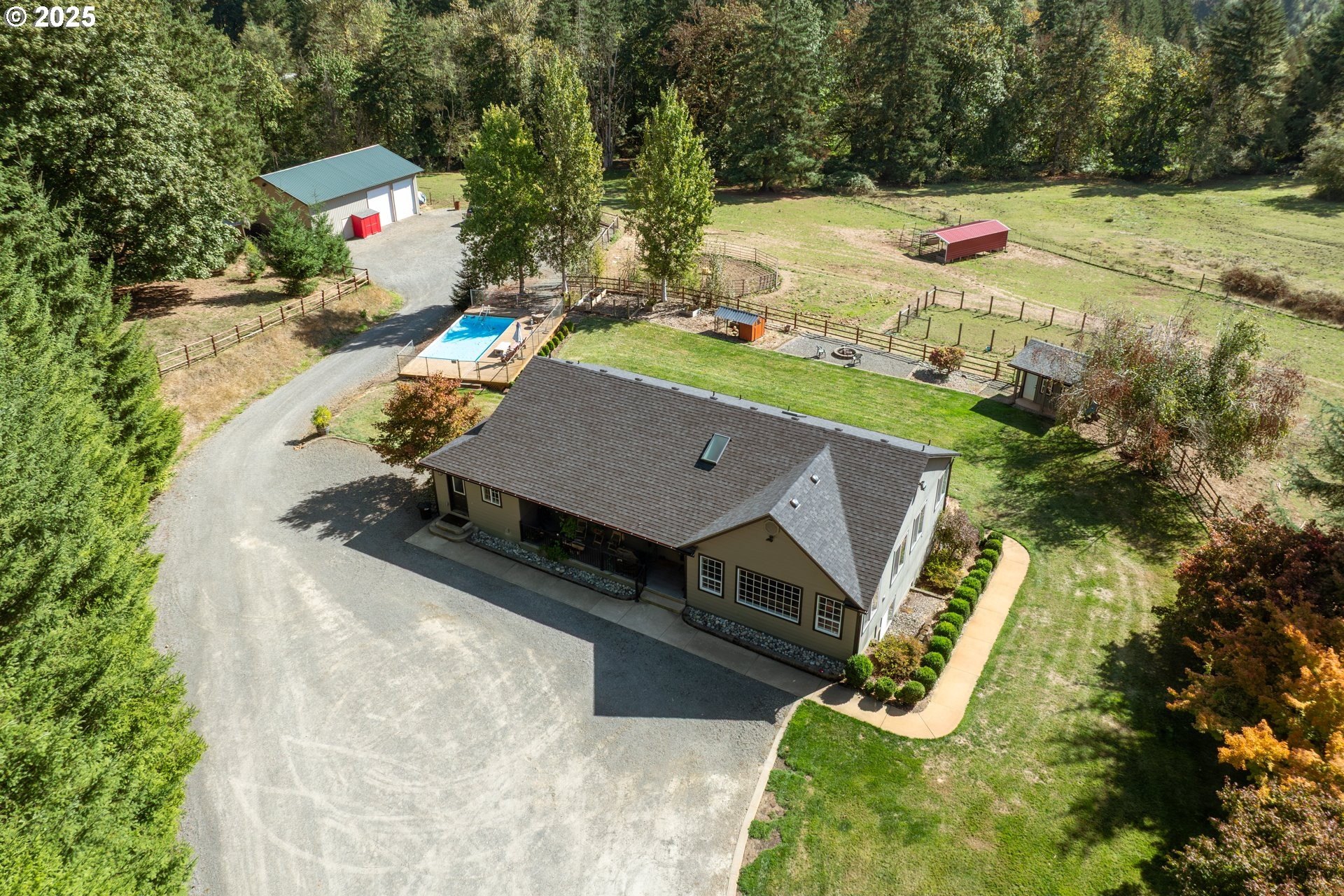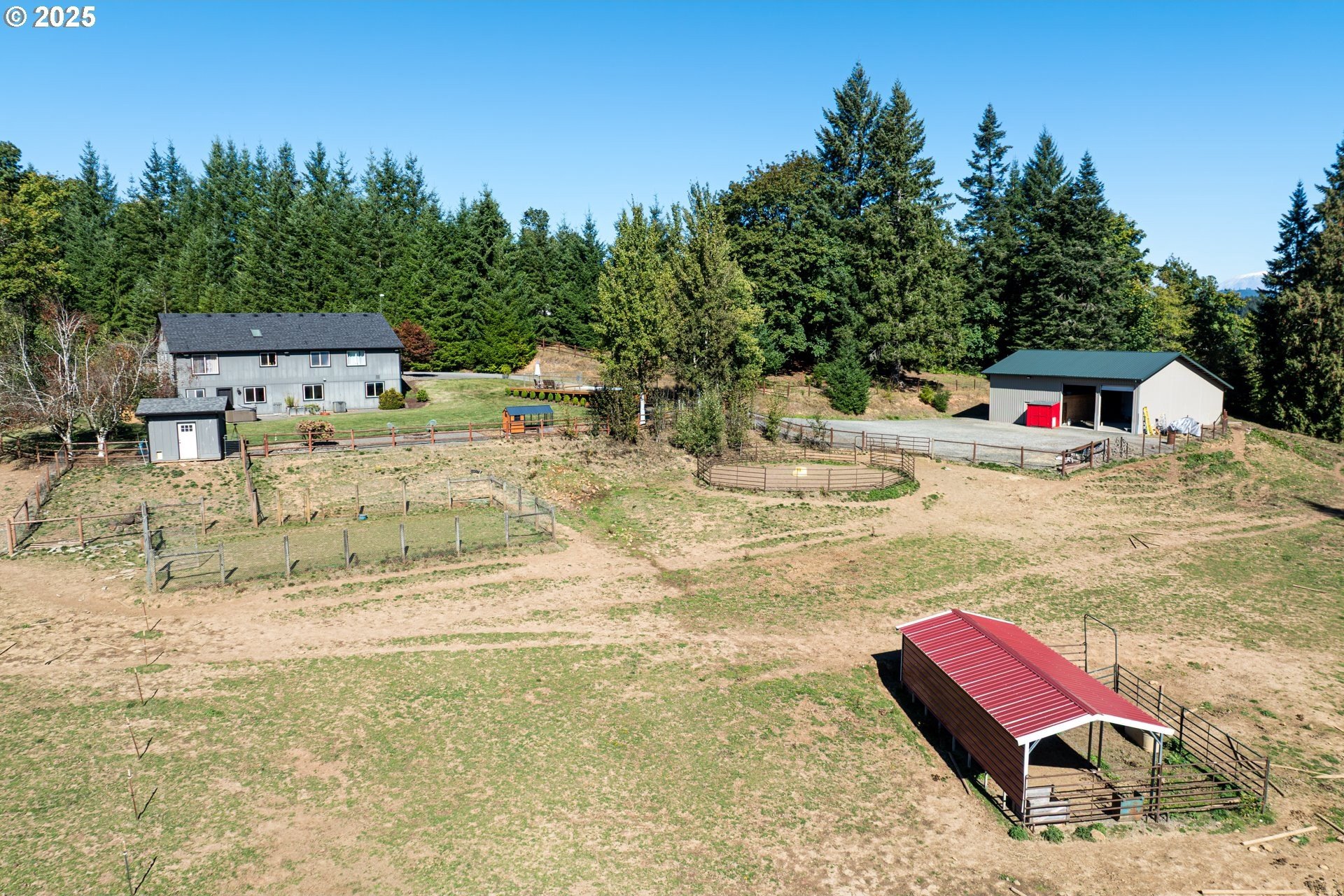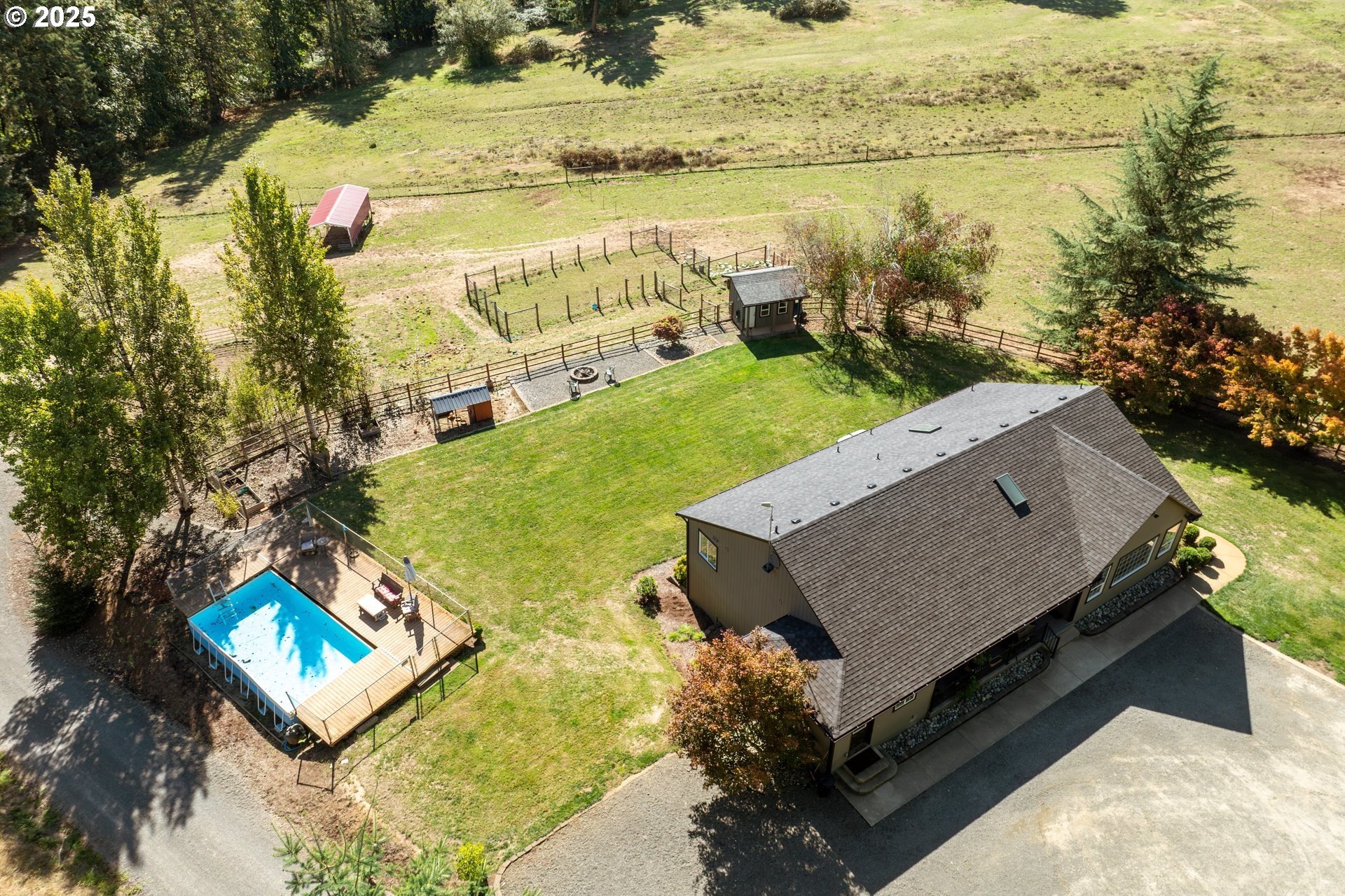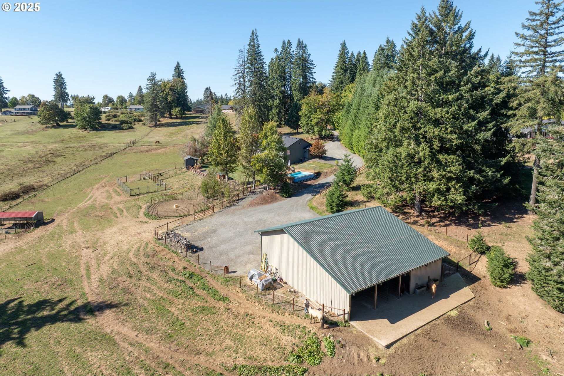 Enjoy country living at its best on this beautiful 5-acre horse property and hobby farm! This well-maintained home offers flexible living options and thoughtful upgrades throughout. The main level features a spacious family room ready for a wood stove installation and an open country kitchen refreshed with newer appliances, counters, backsplash, flooring, and paint. Luxury vinyl plank runs throughout for durability and style.The primary suite includes a cozy nook for pets, reading, or an office, plus a private bath with dual sinks and walk-in shower. Bedroom #3 is a split bedroom layout for added space. The laundry room doubles as a mudroom with shelving, storage, a sink, and its own toilet. A 16’x13’ unfinished storage room with concrete floors offers potential for another bedroom or hobby space.The lower level provides excellent flexibility with a large storage/office room featuring water and laundry hookups—ideal for a future kitchenette or laundry. A 7’x9’ room off the lower bath was designed for a dry sauna and is already plumbed. Another large space can serve as two bedrooms, each with its own closet and shared sliding door.Outside, enjoy a 16’x14’ concrete patio with hot tub, swimming pool, playground, garden, and firepit. The land is fenced and cross-fenced with rolling pasture, a round pen, and sweeping territorial views.Outbuildings include a 24’x34’ bay area with tall doors, enclosed 22’x29’ workshop, 47’x14’ area with horse stalls, 36’x48’ two-bay barn, and a large agricultural building with RV and garage storage. A 4’x6’ office off the dining area adds convenience.Recent updates include newer paint, floors, and a premium 3-part water filtration system with an added fridge filter. Move-in ready and full of opportunity to enjoy peaceful country living!