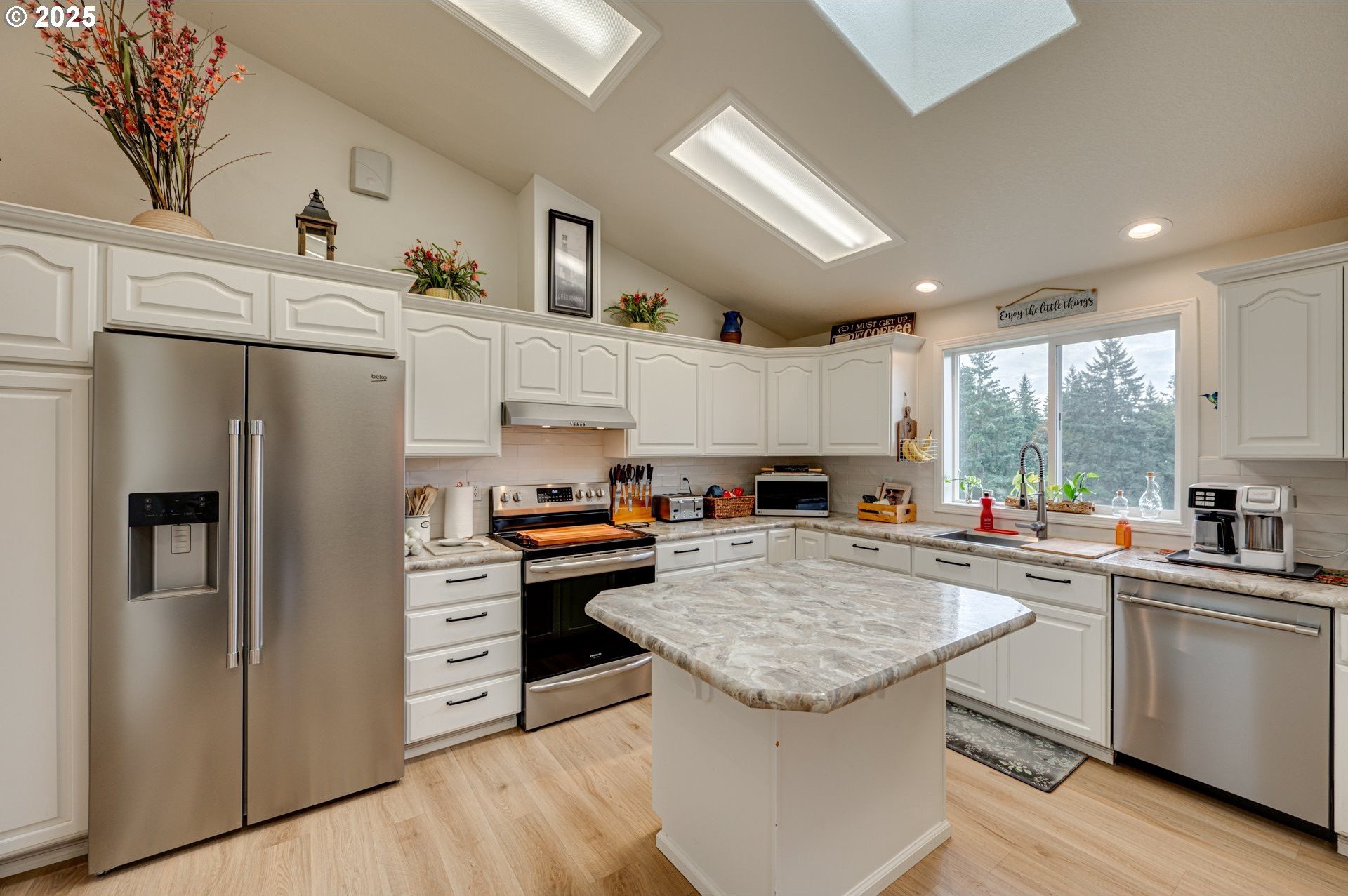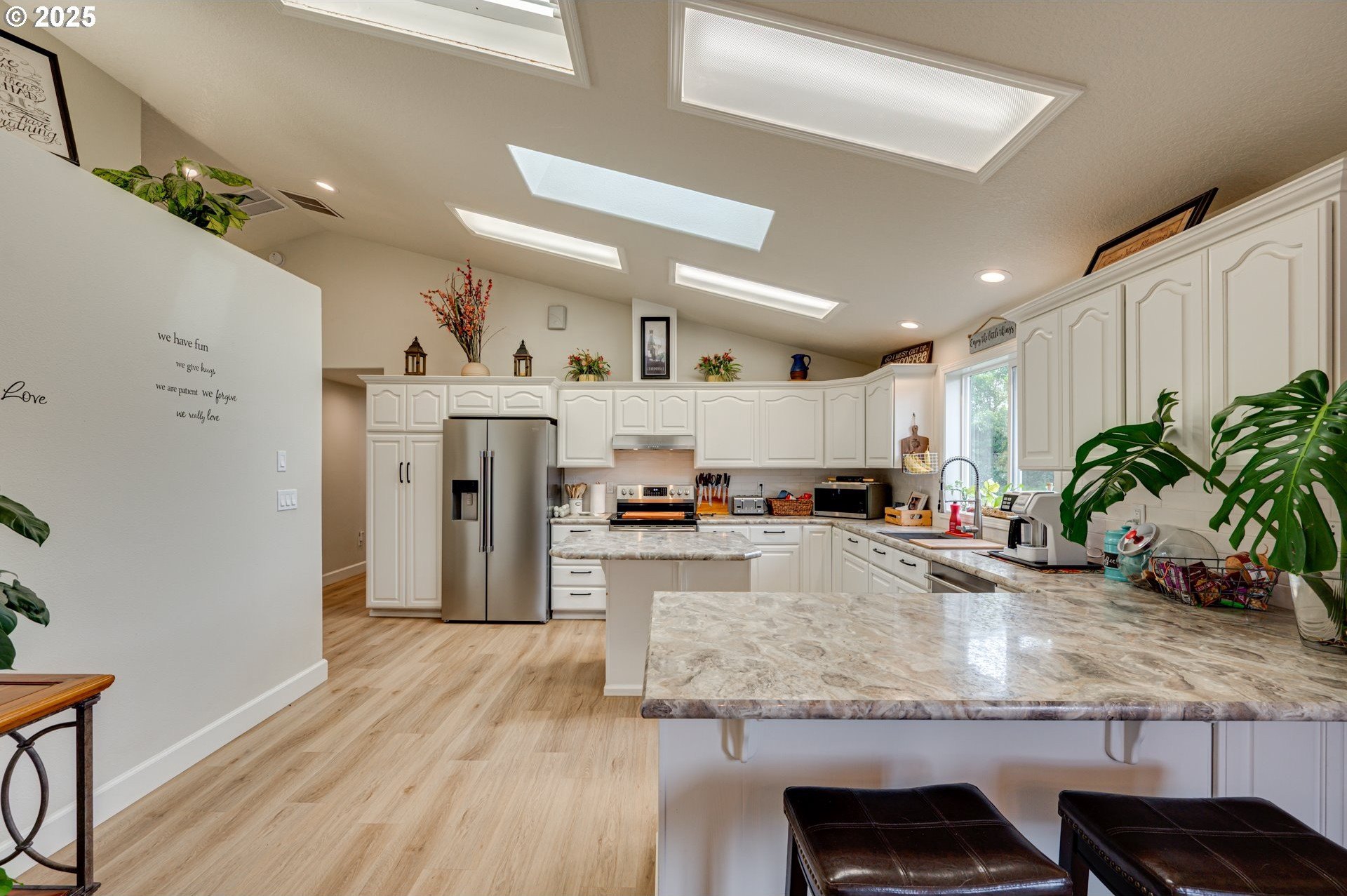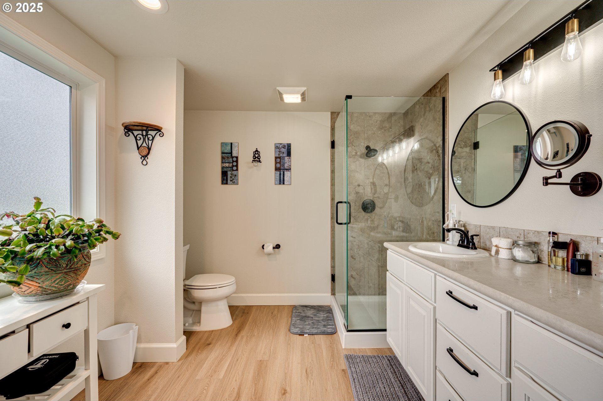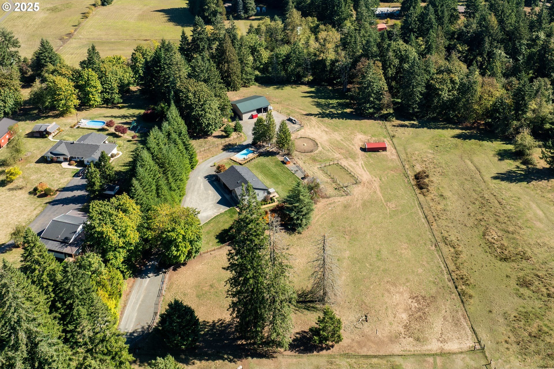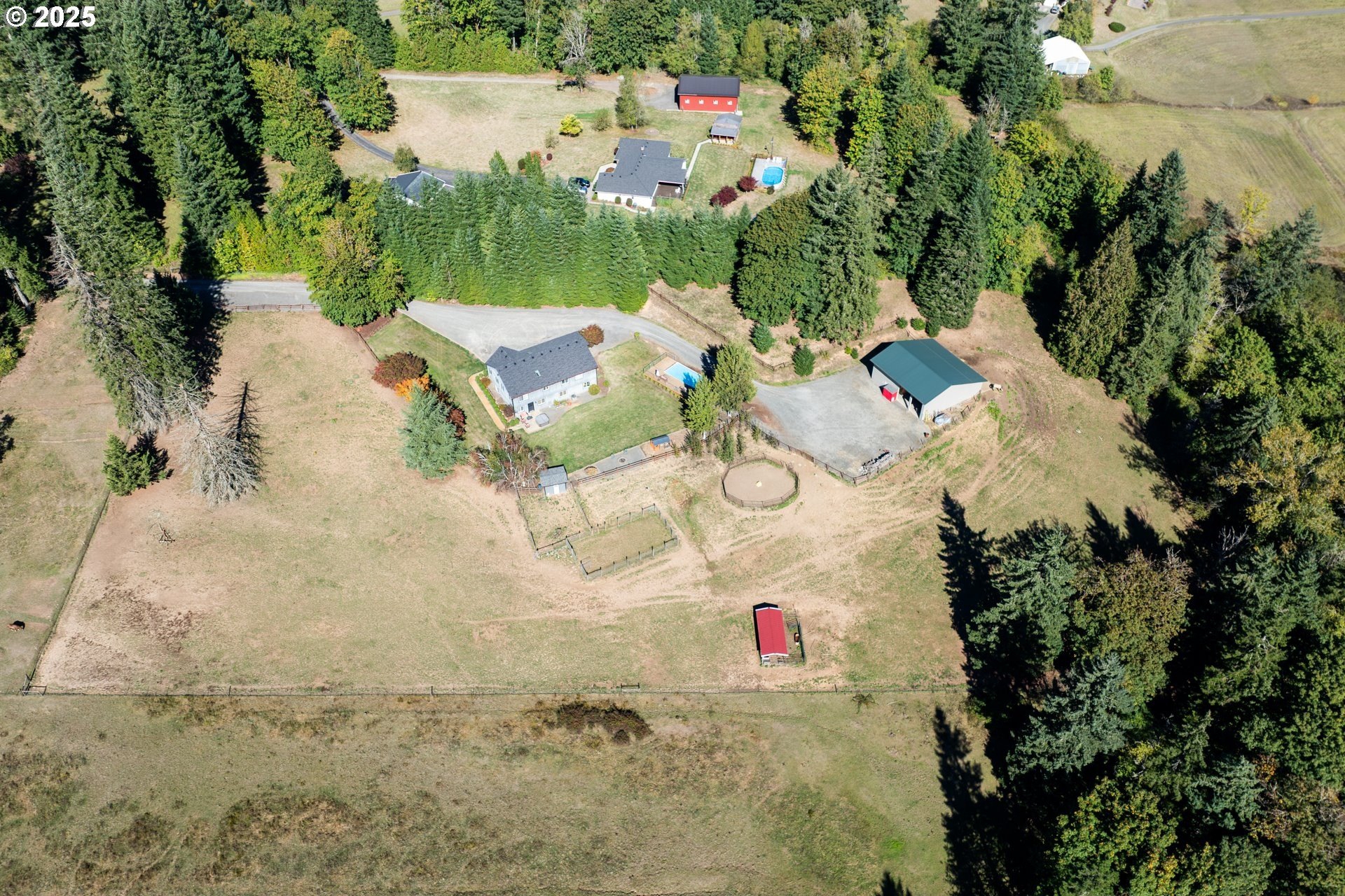 Enjoy country living at its best on this beautiful 5-acre horse property and hobby farm! This well-maintained home offers flexible living options and thoughtful upgrades throughout. The main level features a spacious family room ready for a wood stove installation and an open country kitchen refreshed with newer appliances, counters, backsplash, flooring, and paint. Luxury vinyl plank runs throughout for durability and style.The primary suite includes a cozy nook for pets, reading, or an office, plus a private bath with dual sinks and walk-in shower. Bedroom #3 is a split bedroom layout for added space. The laundry room doubles as a mudroom with shelving, storage, a sink, and its own toilet. A 16’x13’ unfinished storage room with concrete floors offers potential for another bedroom or hobby space.The lower level provides excellent flexibility with a large storage/office room featuring water and laundry hookups—ideal for a future kitchenette or laundry. A 7’x9’ room off the lower bath was designed for a dry sauna and is already plumbed. Another large space can serve as two bedrooms, each with its own closet and shared sliding door.Outside, enjoy a 16’x14’ concrete patio with hot tub, swimming pool, playground, garden, and firepit. The land is fenced and cross-fenced with rolling pasture, a round pen, and sweeping territorial views.Outbuildings include a 24’x34’ bay area with tall doors, enclosed 22’x29’ workshop, 47’x14’ area with horse stalls, 36’x48’ two-bay barn, and a large agricultural building with RV and garage storage. A 4’x6’ office off the dining area adds convenience.Recent updates include newer paint, floors, and a premium 3-part water filtration system with an added fridge filter. Move-in ready and full of opportunity to enjoy peaceful country living!