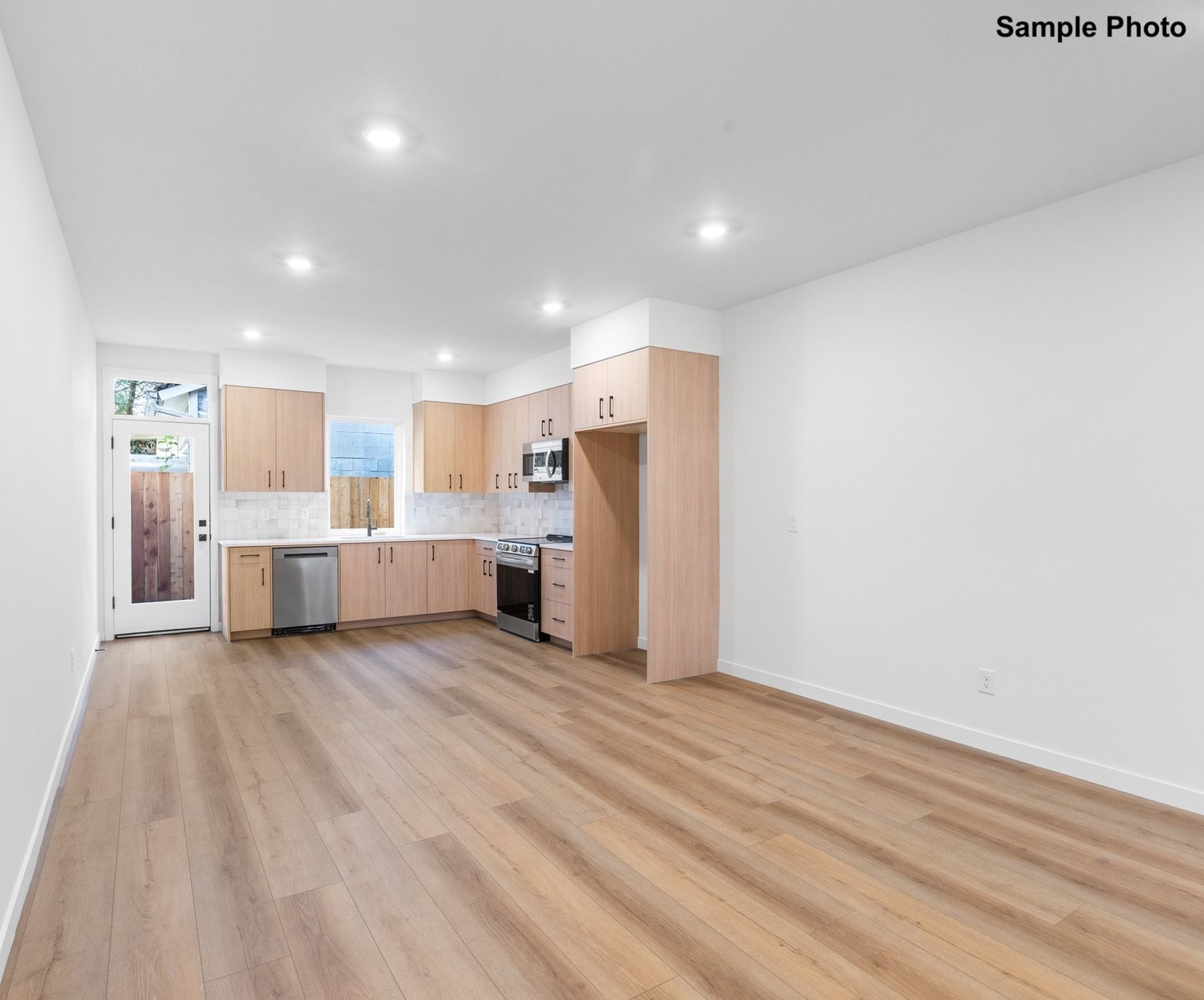 Hello Future Owner—Let’s Make Kenton Home. I’ve been thoughtfully designed with comfort, style, and a touch of charm, all nestled in the heart of Portland’s beloved Kenton neighborhood. From the moment you step inside, you’ll feel how open and welcoming I am. My living room greets you with high ceilings and large picture windows that flood the space with warm, natural light. Love to cook or gather with friends? You’ll appreciate my gourmet kitchen. I feature a stainless steel range, built-in microwave, and dishwasher—all set against solid surface countertops and a stylish tile backsplash. I’m even plumbed for ice. My eat-in kitchen is the ideal spot for morning coffee or cozy dinners. With two spacious bedrooms—each with a private ensuite bathroom—I offer a perfect blend of privacy and practicality. Whether you’re hosting guests or creating your own serene retreat, I make sure everyone has their own comfortable space. And yes, I have a stylish half bath downstairs too, for convenience. My finishes are carefully chosen, from chic light fixtures to elegant hardware. Air conditioning keeps things comfortable all year long. Step outside and you’ll find a generous patio perfect for evening hangs or weekend lounging. My fenced yard, is just right for a potted herb garden or giving your furry companion a safe place to play. I live in one of Portland’s most charming neighborhoods—Kenton. From my doorstep, you’ll enjoy tree-lined streets, welcoming local shops, and a strong sense of community. Several parks are just minutes away, including nearby University Park—perfect for weekend picnics, morning jogs, or simply soaking in a bit of nature right in the city. I was built by a local boutique builder and come with a one-year warranty. My purchase price is subject to you qualifying for the Portland Housing Bureau’s SDC Waiver Program—don’t worry, my people are experts! Come see what the next chapter of Portland luxury living looks like. I’d love to be the place you call home.
