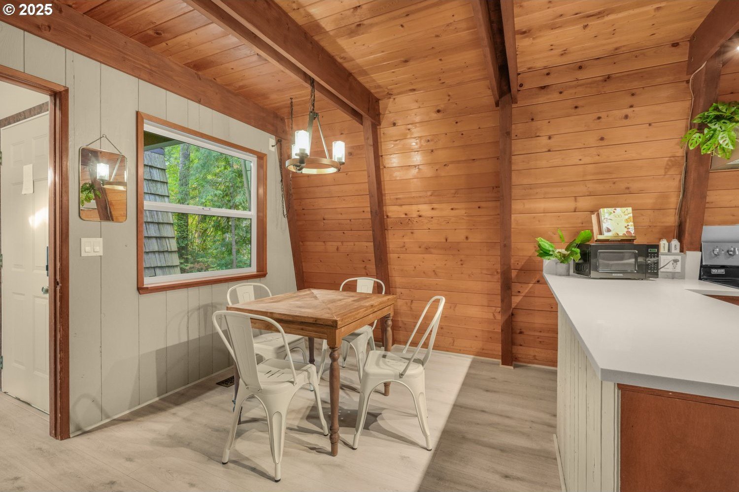Welcome to this beautifully updated 3-bedroom, 1.5-bath home in the desirable Timberline Rim community of Rhododendron on a massive corner lot. Currently operating as a successful vacation rental, with the option to purchase fully furnished, this property offers a perfect blend of comfort, charm, and investment potential. Just about an hour from Portland, this mountain retreat provides year-round access to world-class hiking, skiing, and the charm of local restaurants and nature at your doorstep. With 1,792 sq. ft. of living space on nearly a .25 acre wooded lot, the setting offers both privacy and tranquility. You’ll also be just a short walk to the Sandy River, ideal for fishing, kayaking, or peaceful strolls along the water. The Timberline Rim community offers exceptional amenities including a pool, tennis and basketball courts, and access to scenic common areas that's perfect for recreation and relaxation. Inside, the home shines with thoughtful updates including fresh interior paint, and a stylish kitchen that blends rustic wood cabinetry with modern quartz countertops. The open-concept living area has soaring vaulted ceilings and a cozy wood-burning stove, creating a warm, inviting space to unwind after a day of mountain adventure. All three bedrooms are spacious and versatile, while the updated bathrooms showcase a modern, clean design. Step outside to your private backyard, complete with a hot tub, hammock chairs, and forested serenity making it an ideal place to relax and recharge. Whether you’re looking for a primary residence, vacation home, or turn-key rental investment, this property offers it all. Don’t miss your chance to own this stunning mountain getaway in one of Rhododendron’s most sought-after neighborhoods.