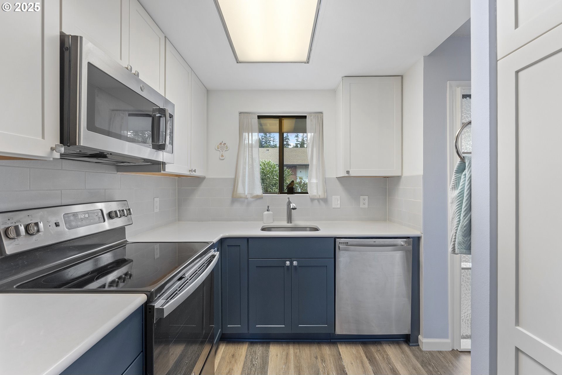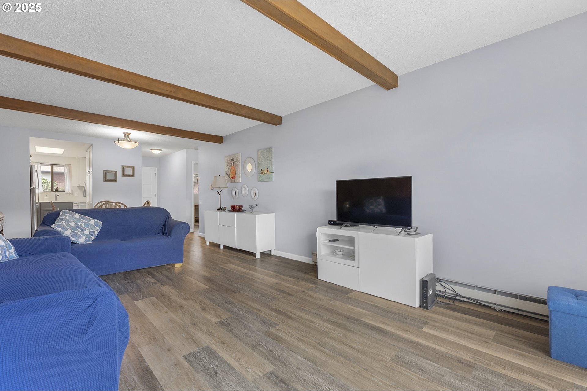 Tucked into the heart of King City’s beloved 55+ Civic Association, this charming one-level condo at 11530 SW Majestic Ln #2 offers the perfect blend of comfort, convenience, and community—plus fun! With no stairs, no one above or below, and nearly 1,000 sq ft of beautifully updated space, this 2-bed, 1-bath gem is the ideal retreat for anyone ready to embrace the next exciting chapter of life. Discover gorgeous LVP flooring and a fully remodeled kitchen featuring soft-close cabinetry, Quartz countertops, a stylish tile backsplash, stainless steel appliances, and a generous pantry. A ductless mini-split in the living room and primary bedroom keeps things cool in summer and cozy in winter. The open floor plan flows easily to an oversized private patio and lush garden space—perfect for morning coffee, evening wine, or just soaking in the peaceful green space and gentle sounds of a nearby water feature. The lifestyle here....Unmatched. You’re just a Par 3 distance from the clubhouse, where you'll find the outdoor pool, library, pro shop, and more. There's always something happening, whether it’s golf, cards, crafts, fitness classes, or social gatherings. And when you're not busy enjoying it all, you can relax knowing the HOA has it covered—sewer, water, cable, internet, exterior maintenance, landscaping, and full access to all amenities are all included. Just minutes to shopping, restaurants, and highway access, this condo combines serene living with unbeatable accessibility. Whether you’re downsizing, simplifying, or just ready to play more than mow, this is the perfect place to call home. Welcome to easy, active, joyful living in King City—your new adventure begins here!