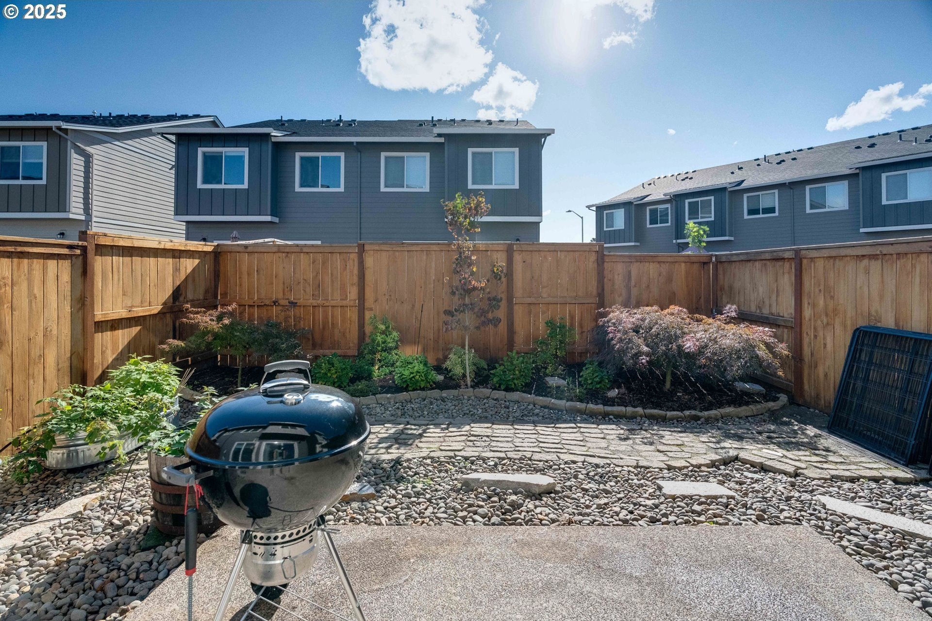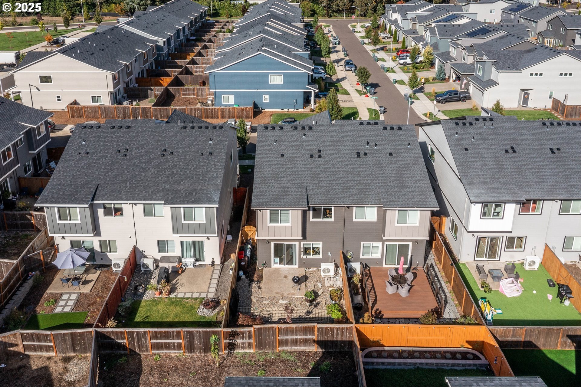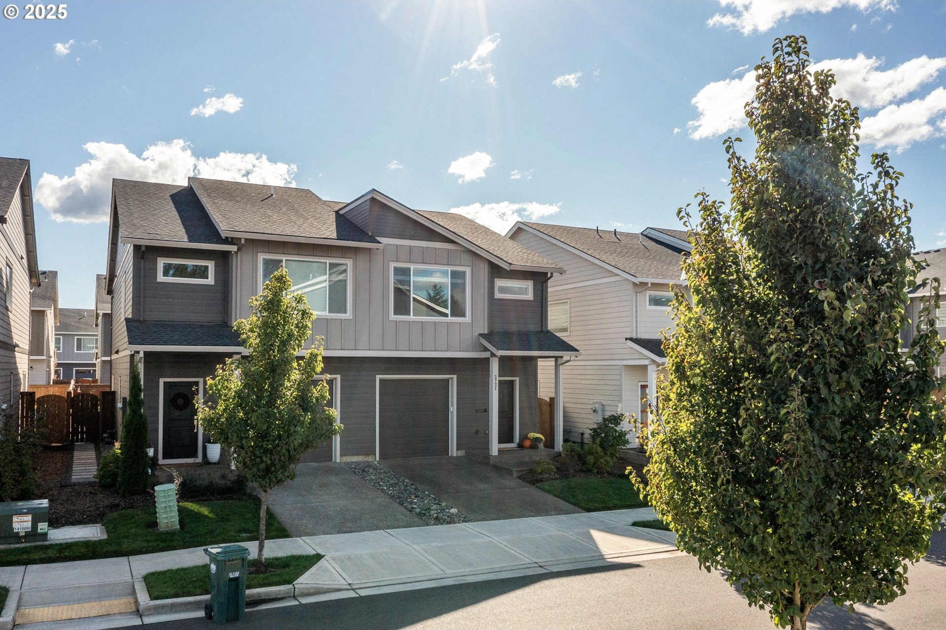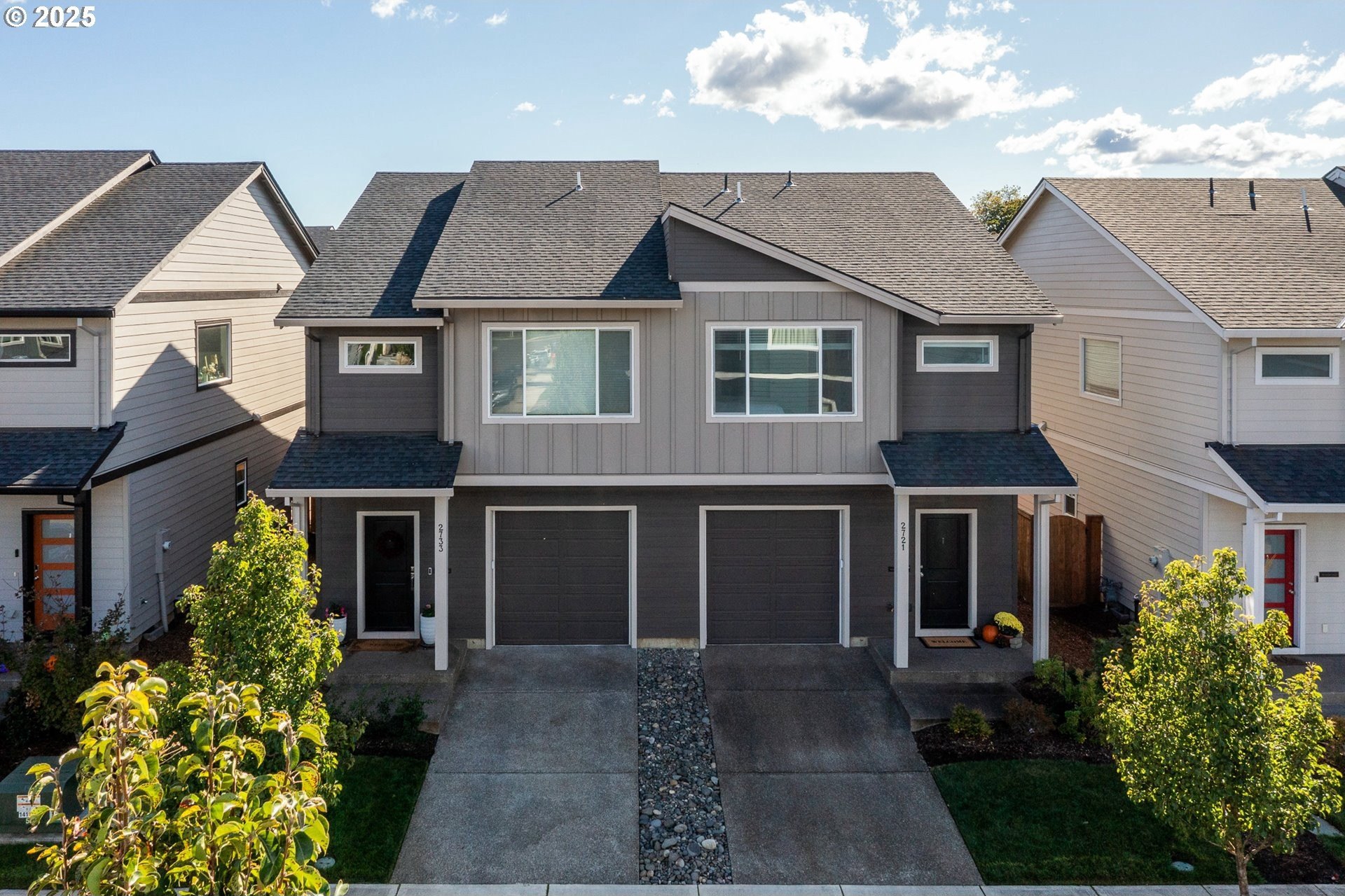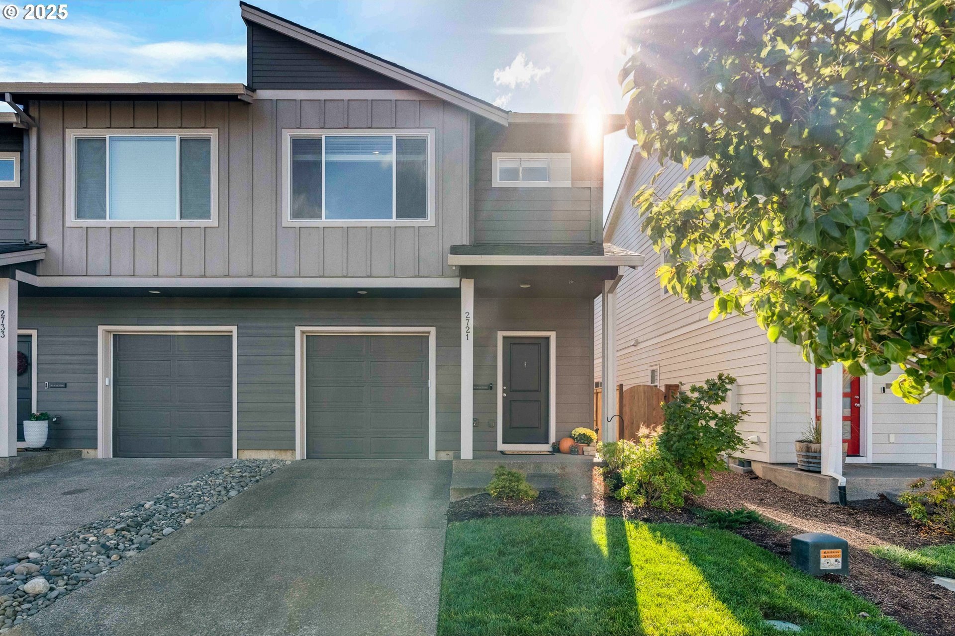 Welcome home to this charming end-unit condo with an attached garage equipped with an NACS EV charger, perfectly situated on a peaceful, tree-lined street. The inviting covered entry leads into a bright, open-concept main floor with plenty of space to relax and entertain. The kitchen features stainless steel appliances, a spacious island, tiled backsplash, and pantry, and opens to a dining area and cozy living room with views of the fully fenced backyard. A convenient half bath completes the main level. Upstairs, you’ll find a laundry room, three comfortable bedrooms, and a full hall bath. The primary suite offers vaulted ceilings, a walk-in closet, and a private en suite bathroom. With modern finishes, smart home features, abundant natural light, and a location close to parks, shops, and commuter routes, this home blends comfort, style, and convenience in one beautiful package.