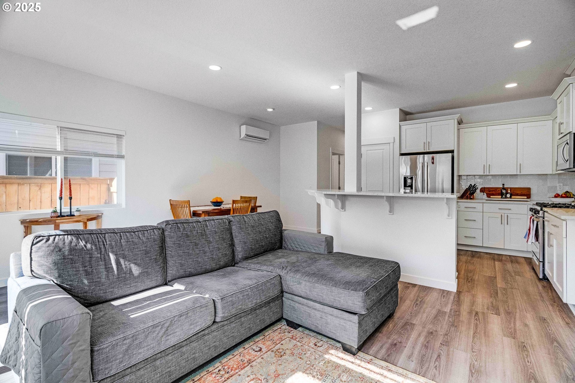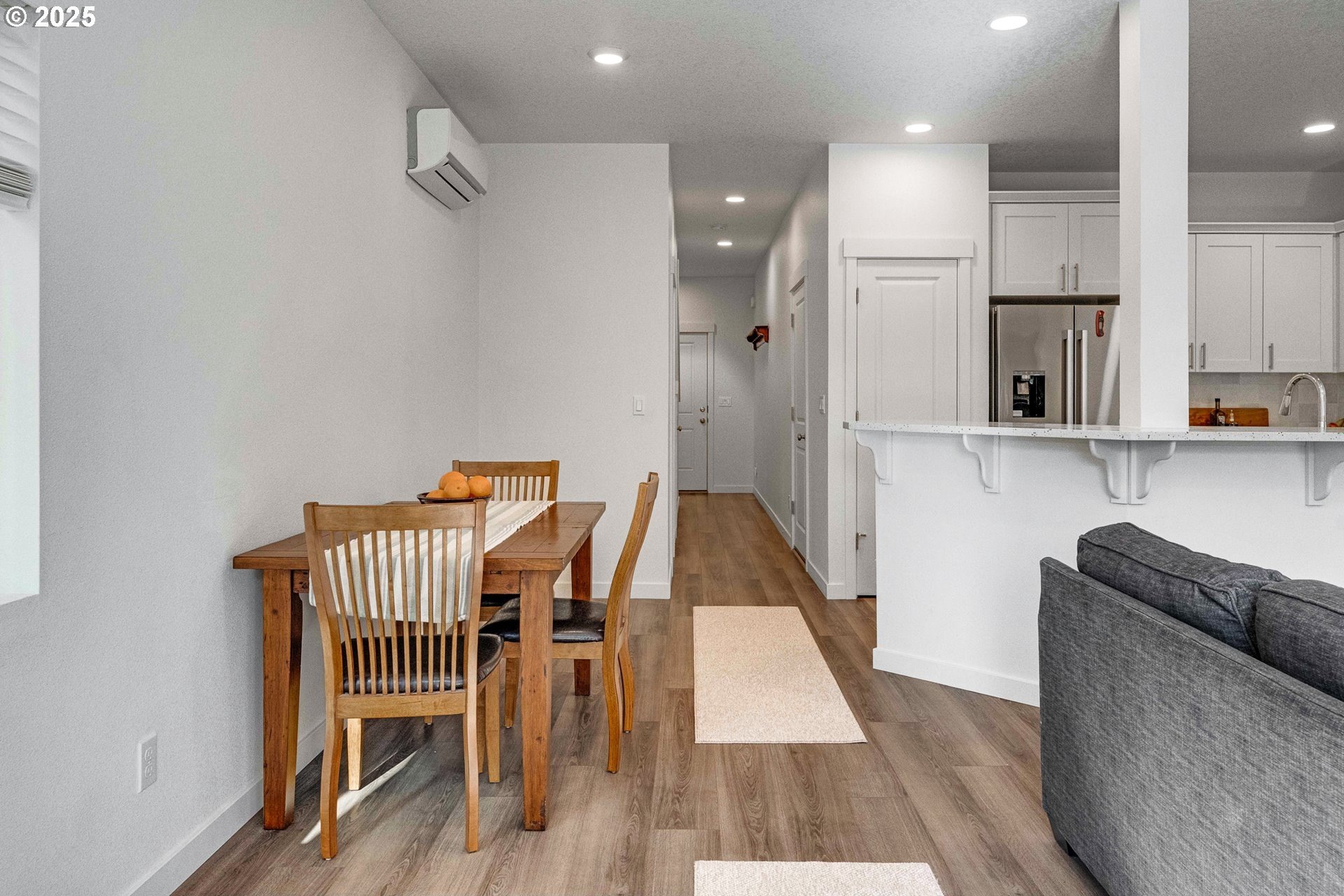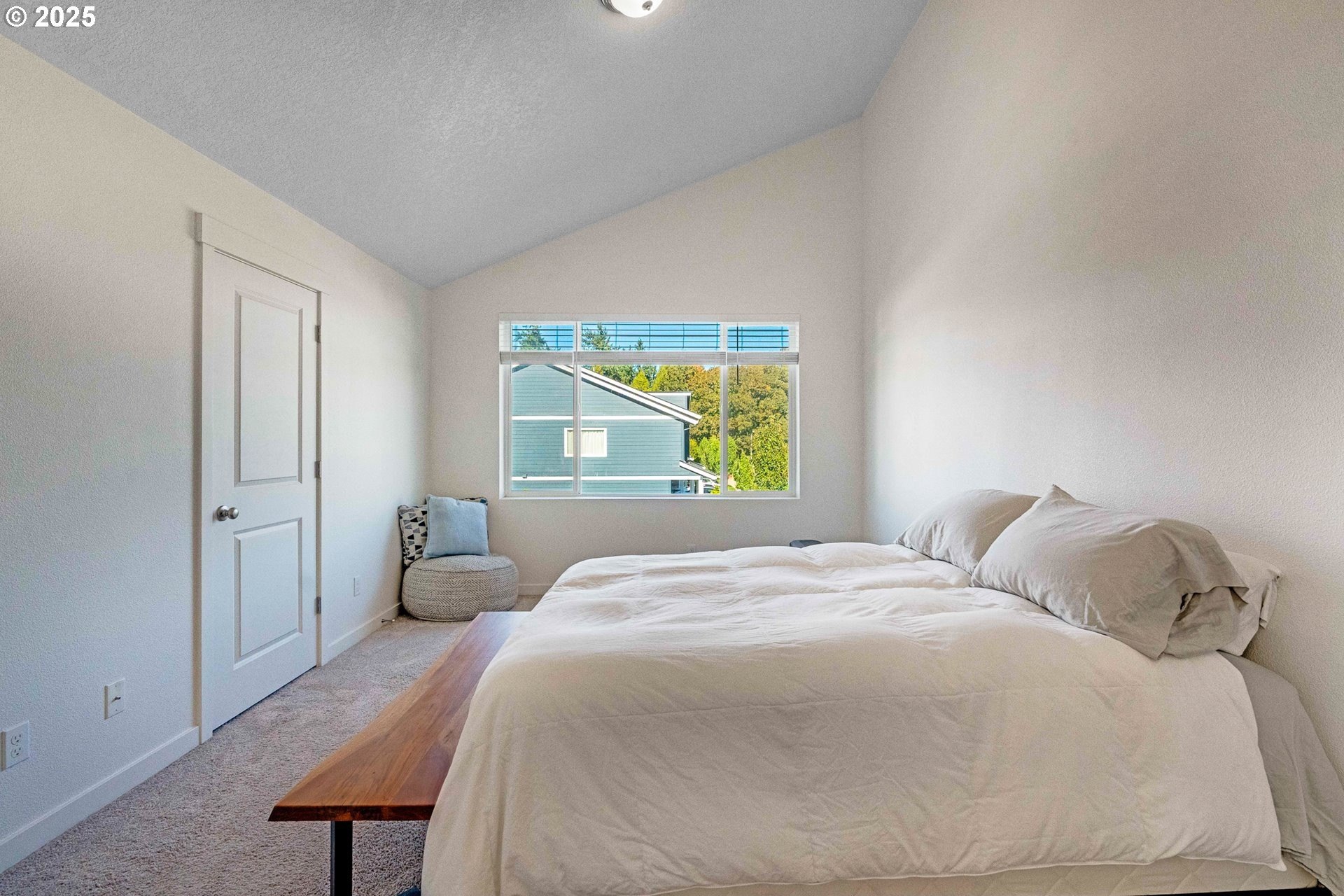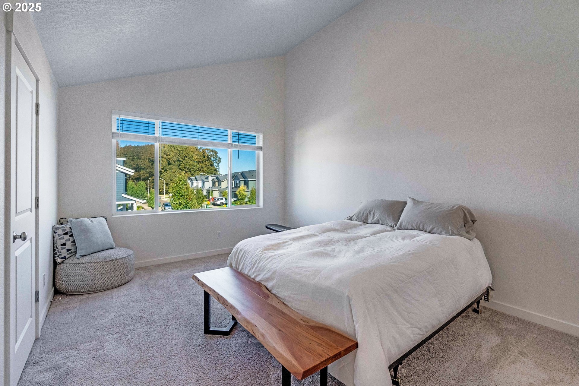 Welcome home to this charming end-unit condo with an attached garage equipped with an NACS EV charger, perfectly situated on a peaceful, tree-lined street. The inviting covered entry leads into a bright, open-concept main floor with plenty of space to relax and entertain. The kitchen features stainless steel appliances, a spacious island, tiled backsplash, and pantry, and opens to a dining area and cozy living room with views of the fully fenced backyard. A convenient half bath completes the main level. Upstairs, you’ll find a laundry room, three comfortable bedrooms, and a full hall bath. The primary suite offers vaulted ceilings, a walk-in closet, and a private en suite bathroom. With modern finishes, smart home features, abundant natural light, and a location close to parks, shops, and commuter routes, this home blends comfort, style, and convenience in one beautiful package.