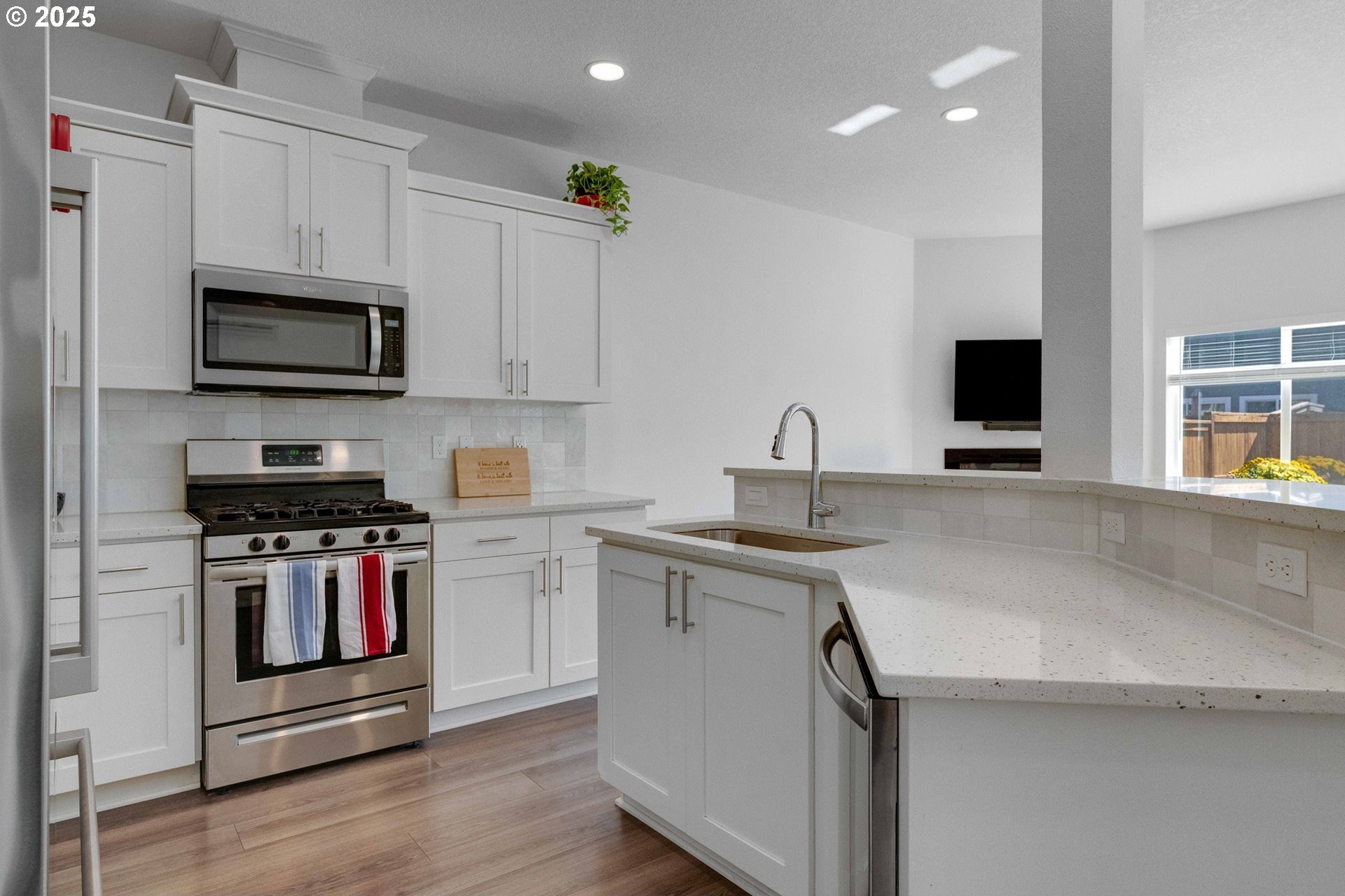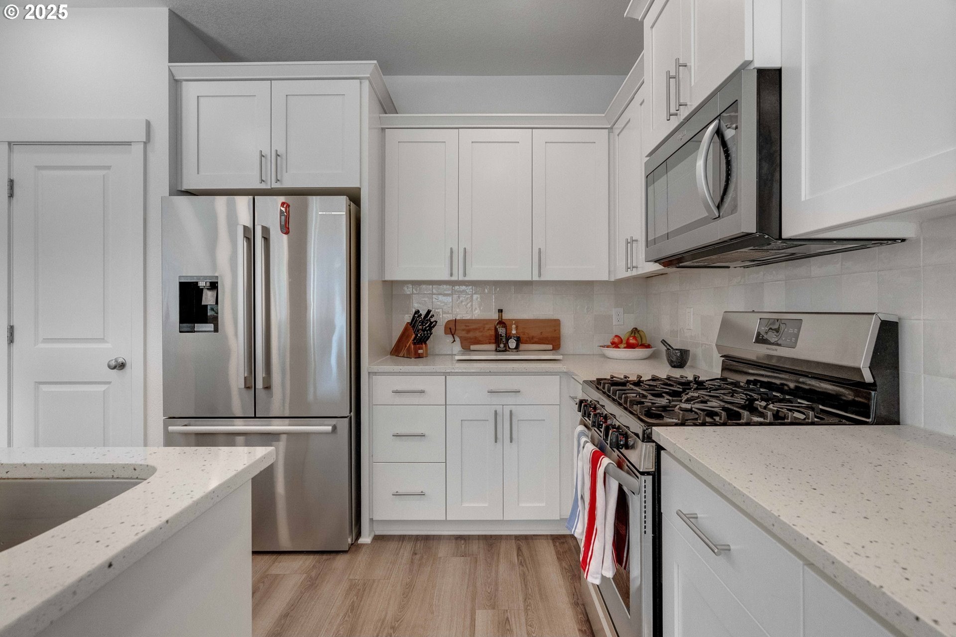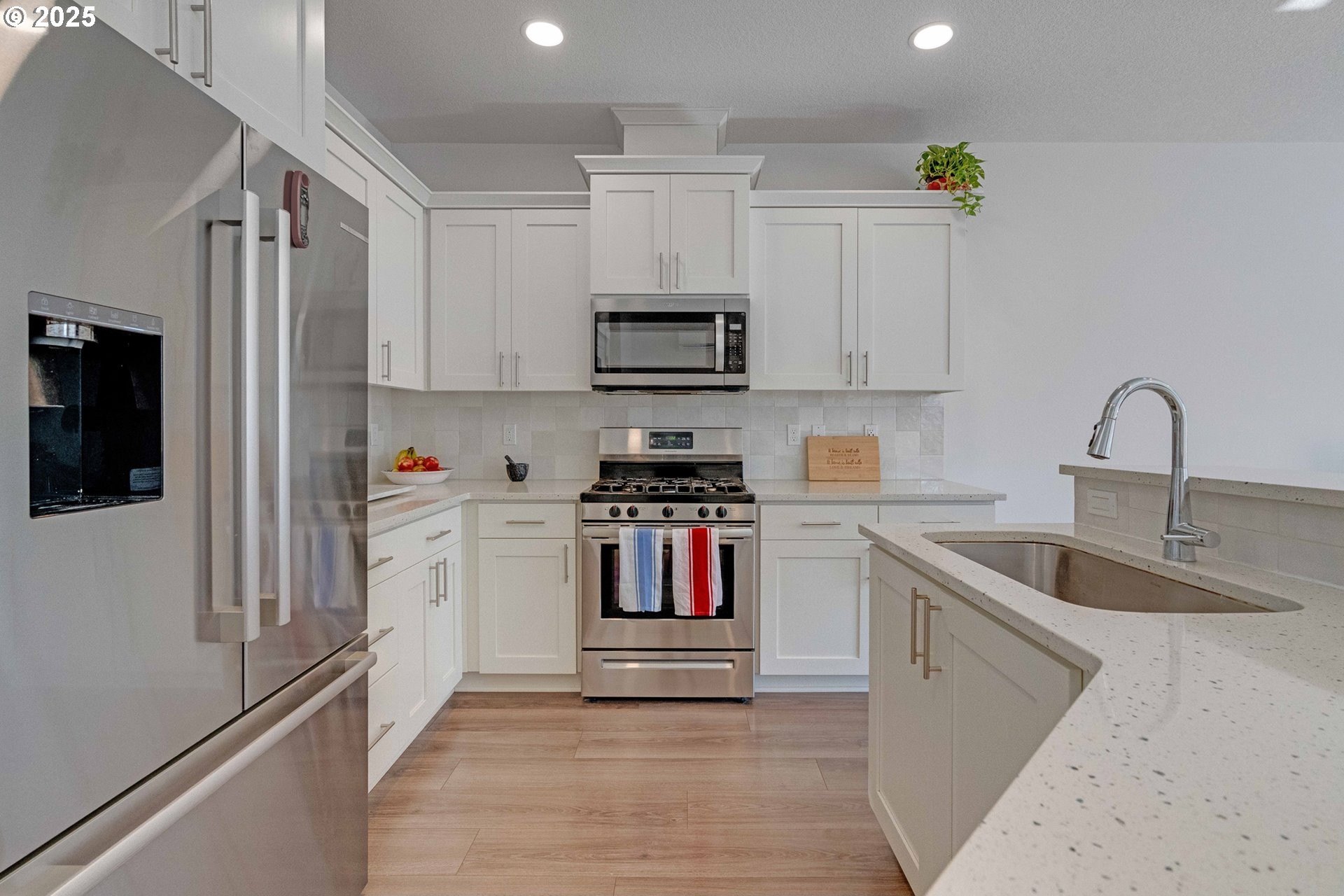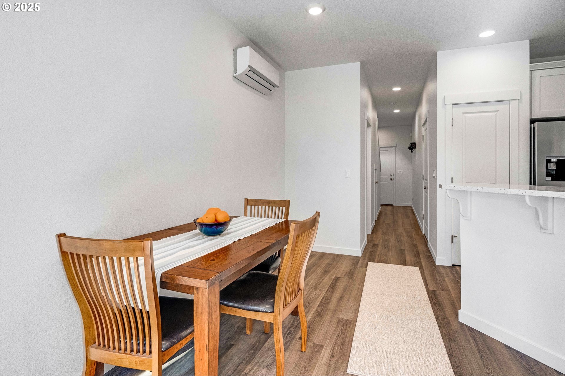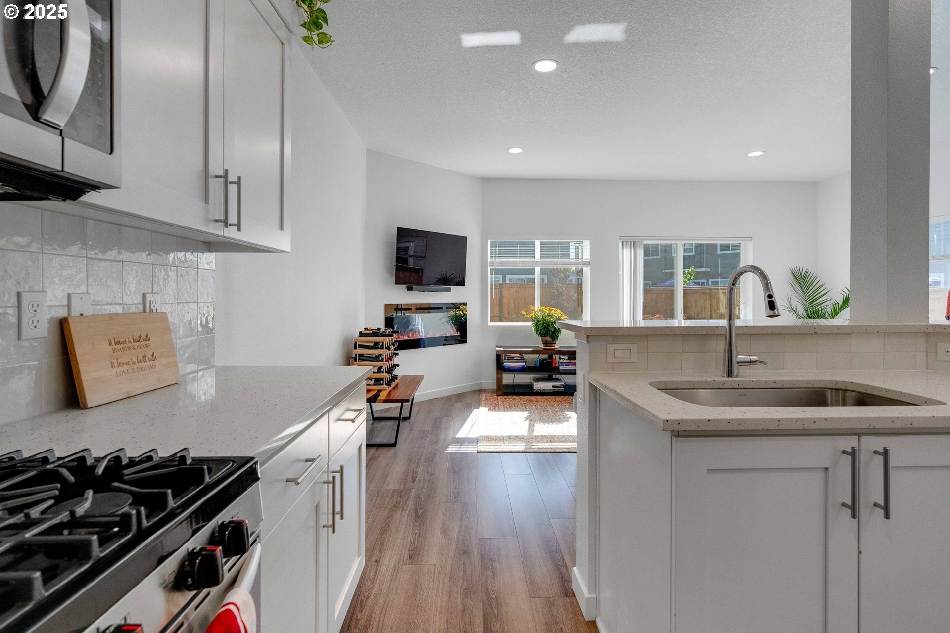 Welcome home to this charming end-unit condo with an attached garage equipped with an NACS EV charger, perfectly situated on a peaceful, tree-lined street. The inviting covered entry leads into a bright, open-concept main floor with plenty of space to relax and entertain. The kitchen features stainless steel appliances, a spacious island, tiled backsplash, and pantry, and opens to a dining area and cozy living room with views of the fully fenced backyard. A convenient half bath completes the main level. Upstairs, you’ll find a laundry room, three comfortable bedrooms, and a full hall bath. The primary suite offers vaulted ceilings, a walk-in closet, and a private en suite bathroom. With modern finishes, smart home features, abundant natural light, and a location close to parks, shops, and commuter routes, this home blends comfort, style, and convenience in one beautiful package.