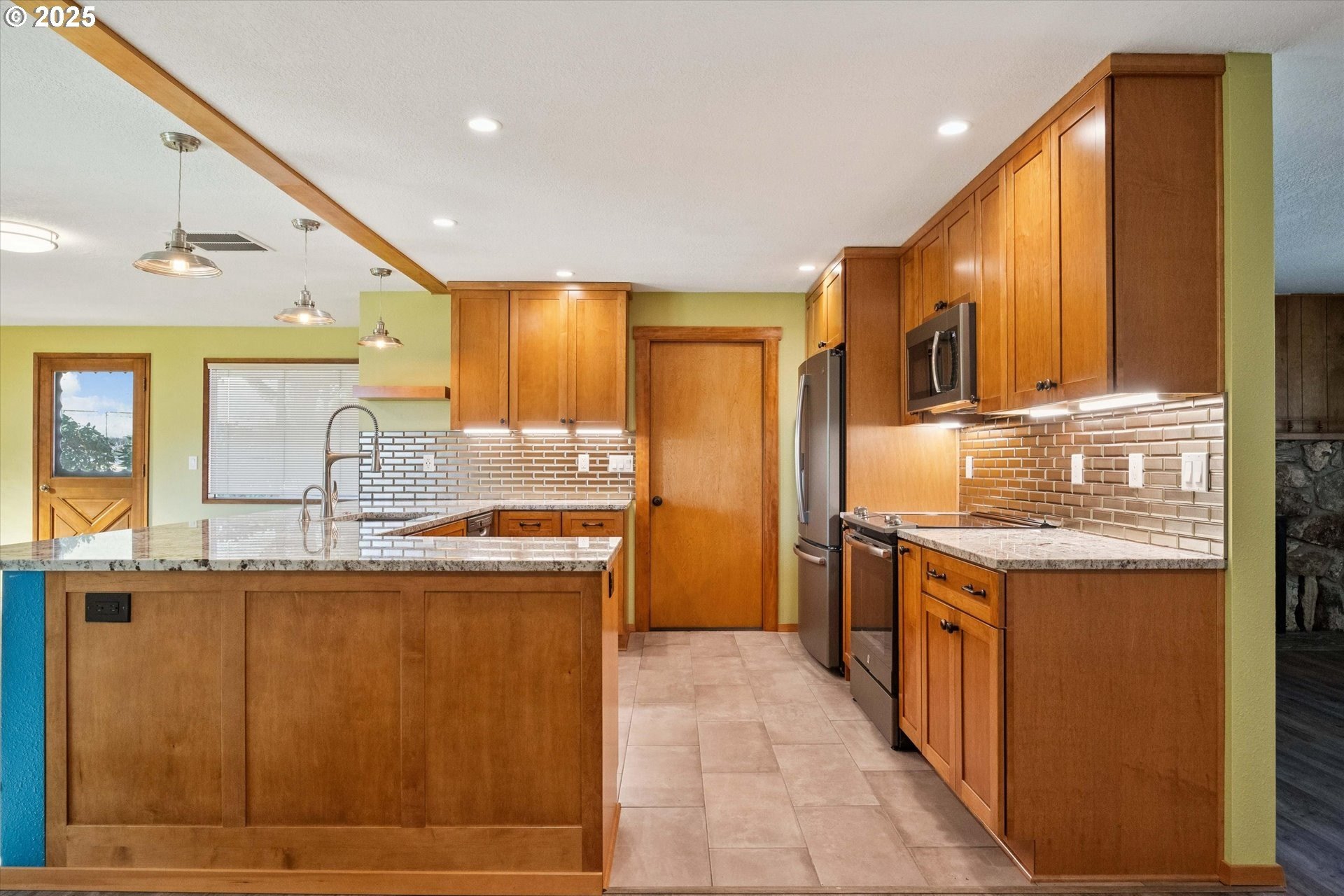 This one level ranch style home on 3.81 acres is country perfect yet close enough to town for all the amenities, activities, and events. There is a huge shop/barn that is heated and has electricity. The two car garage is oversized, attached, and comes complete with garage door openers. The formal living room with a wood burning fireplace adds old world charm not to mention heat in the winter. The kitchen is newly remodeled with slab granite countertops, stainless steel appliances, new cabinets and backsplash. The kitchen has an eating bar that opens to the family room. Off the family room, there's a door to the patio and adorable gazebo and BBQ area. With a fenced yard, fenced property, community well water, and a septic tank this home is move-in ready. The shop has paved parking with room for guests or RV parking. The house has a newer heat pump to provide air conditioning in the summer, and a new hot water heater. The seller is offering to pay for a new roof with a full priced offer. Come and see this gorgeous home and property and experience what your new life in the country could be like today!