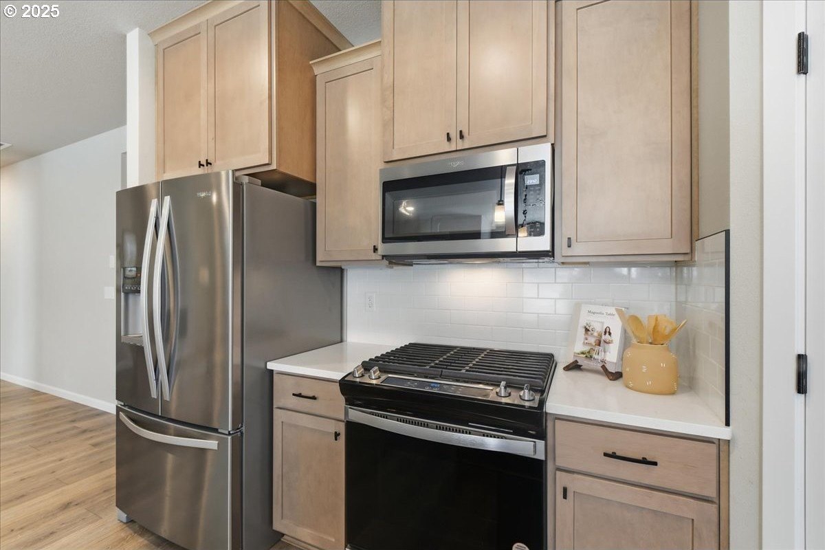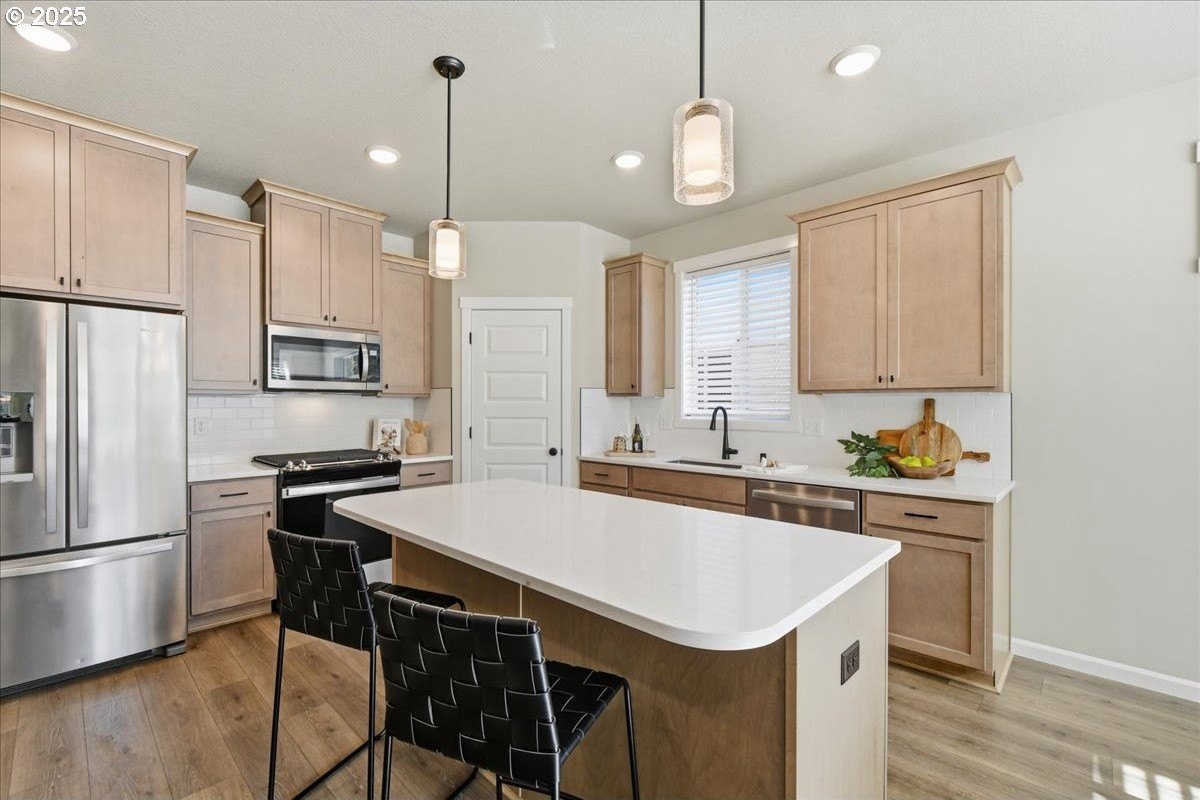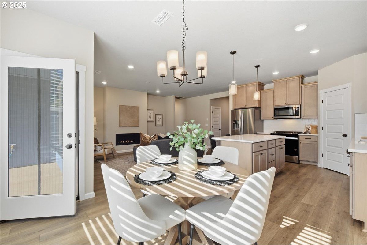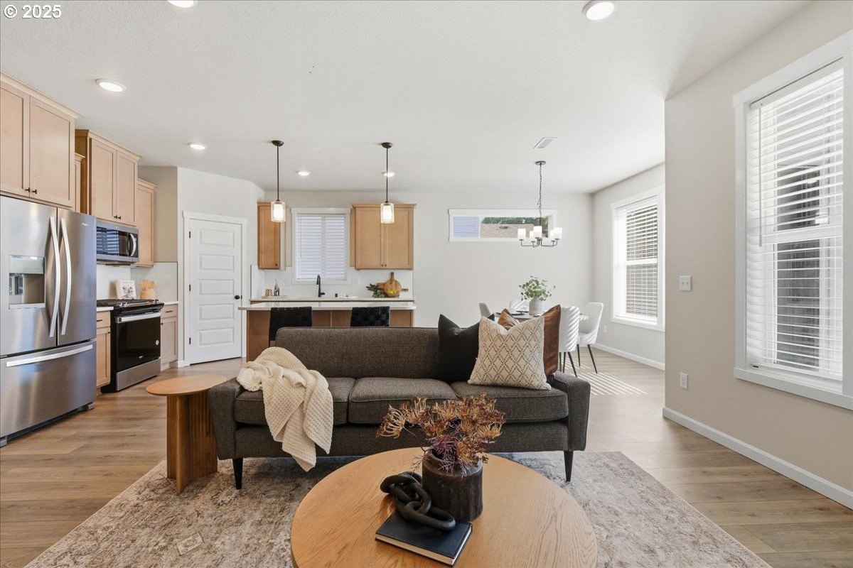 Step inside and fall in love with this gorgeous, like-new home featuring luxury vinyl plank flooring throughout and an open great room with a cozy gas fireplace. The modern kitchen offers granite countertops, a tile backsplash, stainless steel appliances, a pantry, and under-cabinet lighting—perfect for everyday living and entertaining.You’ll find two comfortable bedrooms plus a spacious primary suite with a walk-in closet and a relaxing ensuite with a soaking tub and separate shower. Enjoy year-round comfort with forced air heating and air conditioning. Out back, your private, fully fenced yard is ready for gatherings with a sprinkler system, gas BBQ hookup, and a covered patio—perfect for outdoor dining or just unwinding at the end of the day. No HOA. This home is ready for new owners!