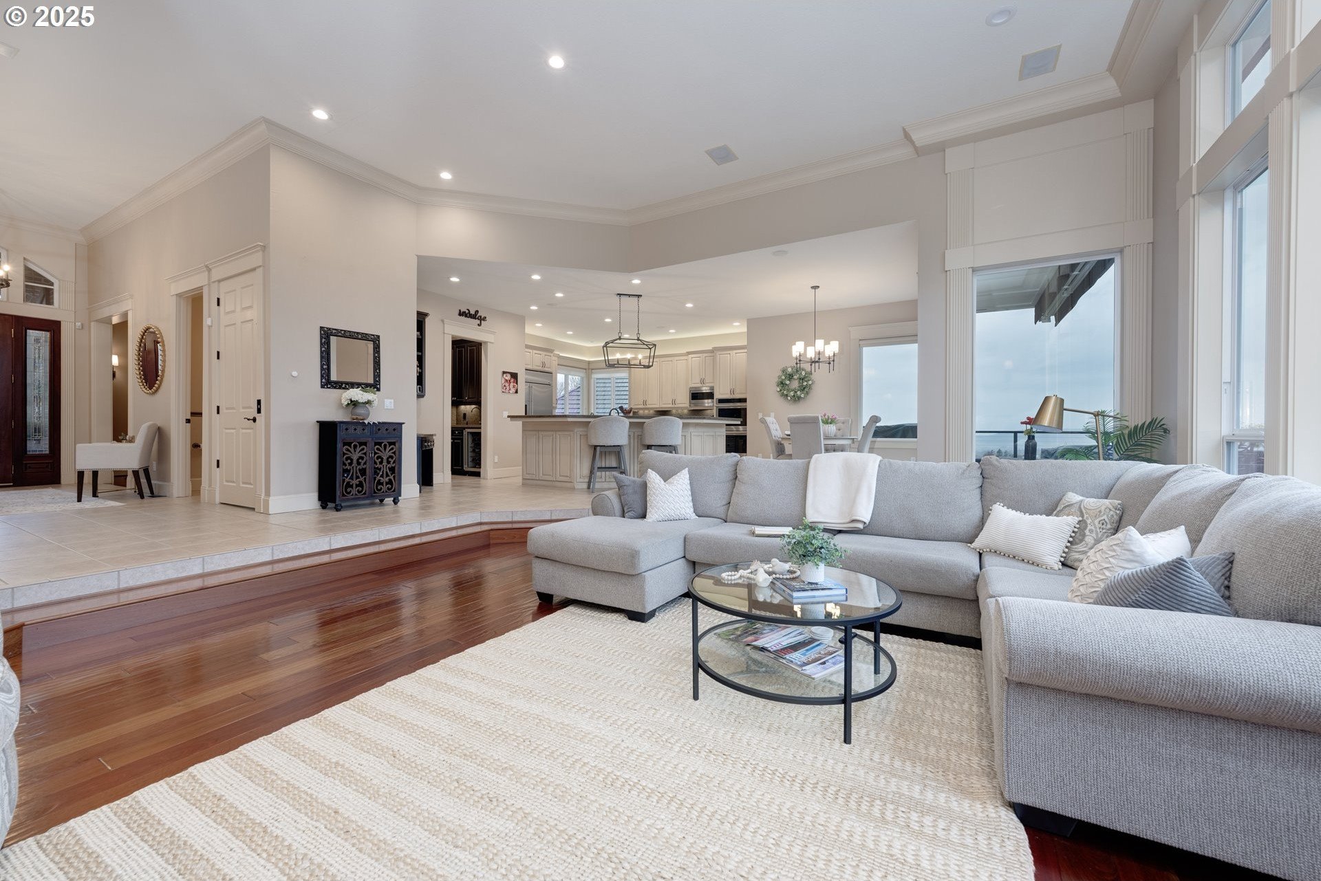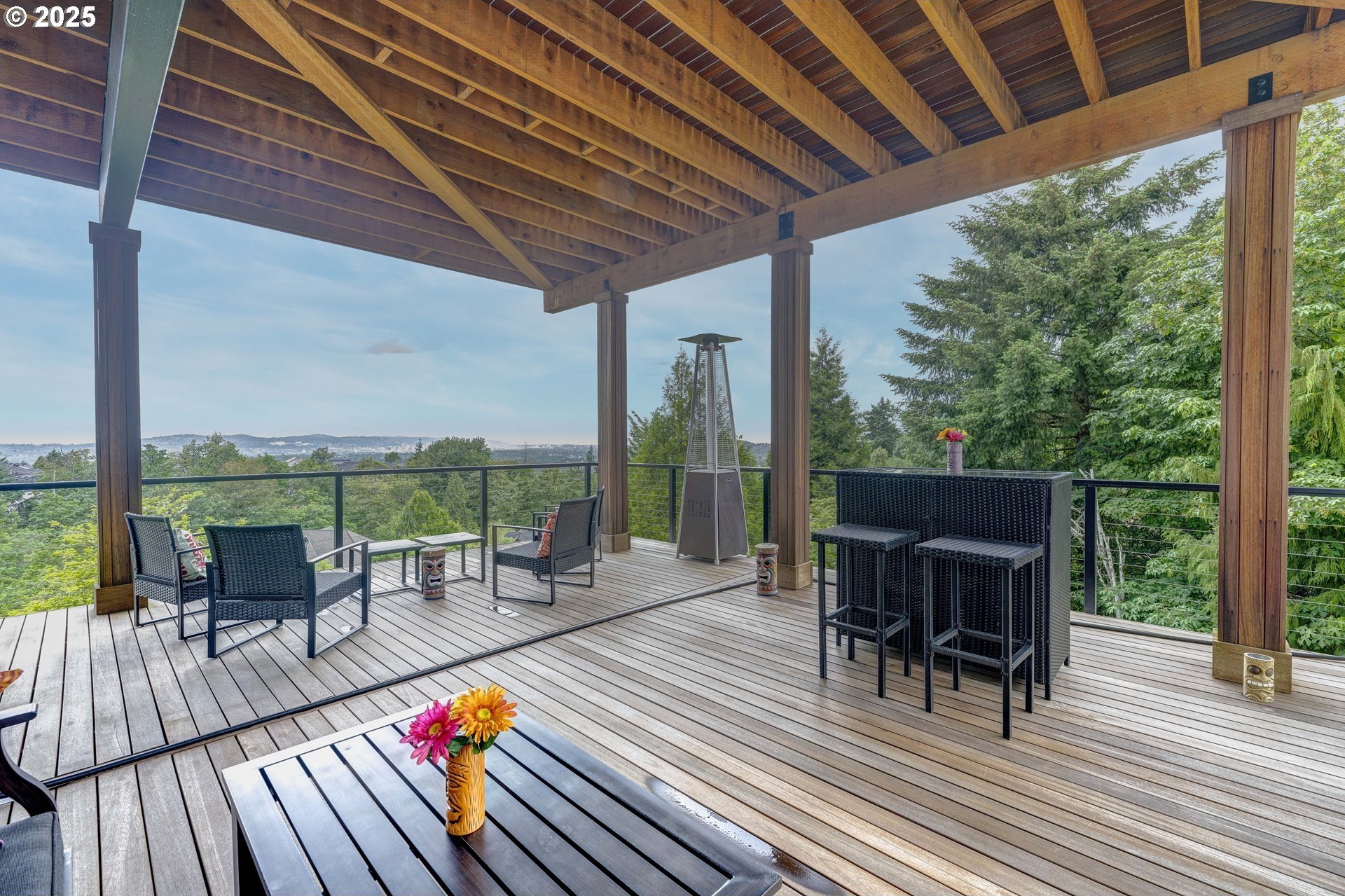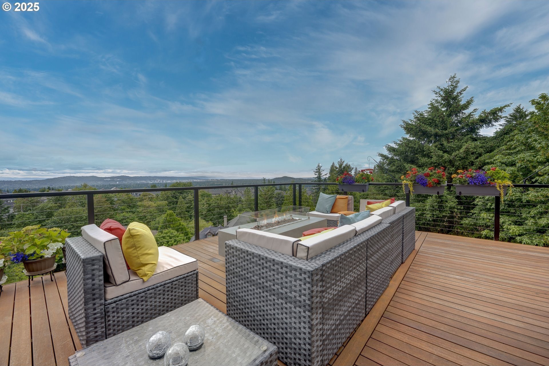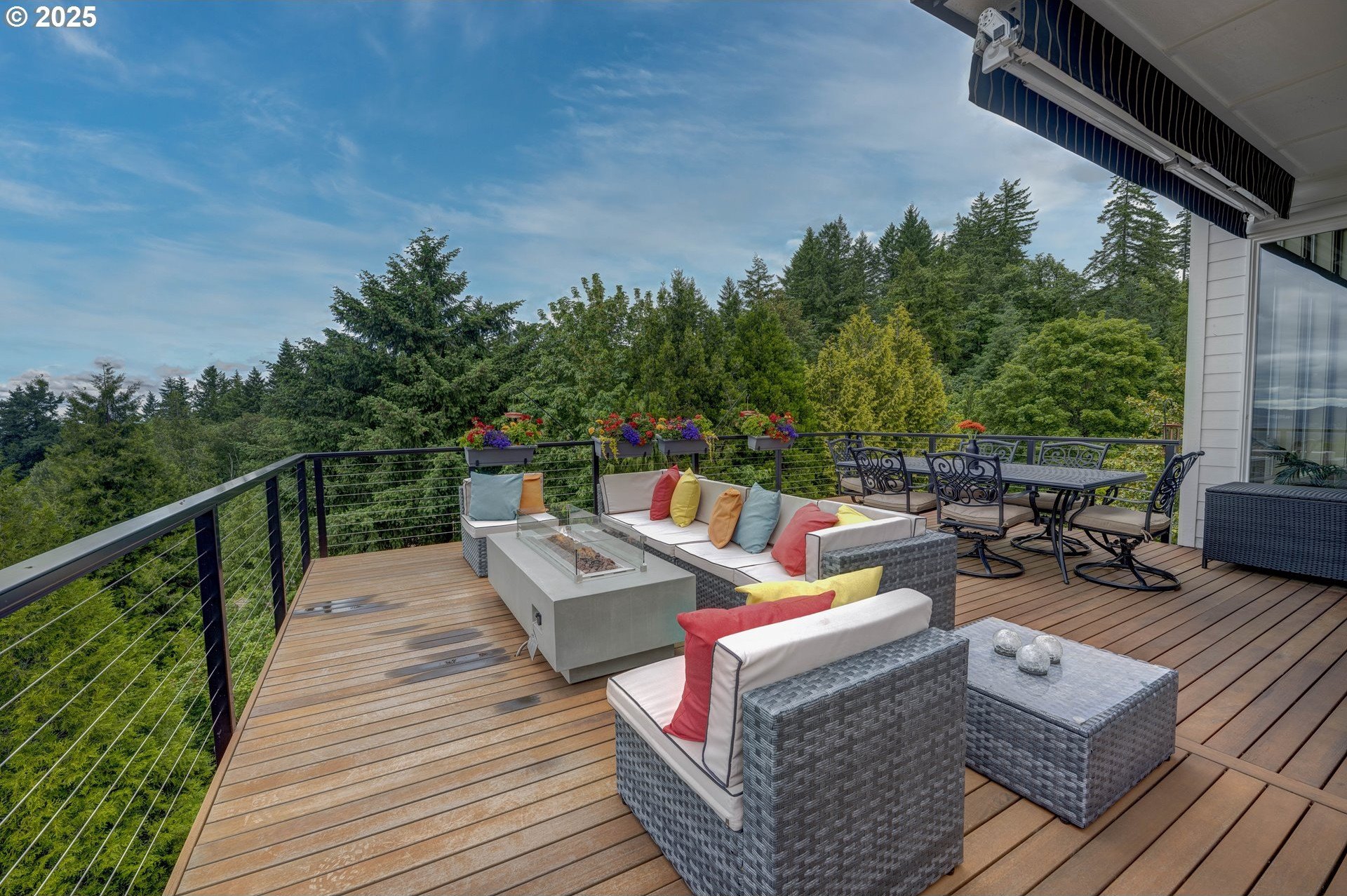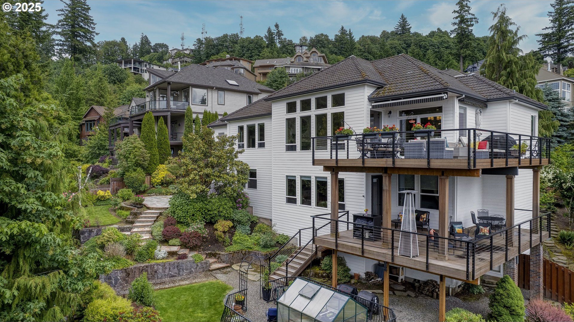 Welcome to a home that doesn’t just check boxes—it speaks to the heart. Nestled in the sought-after Happy Valley neighborhood, this 2000 Street of Dreams beauty offers over 5,650 sq ft of thoughtfully crafted luxury, designed for those who crave connection—to nature, to comfort, and to elevated everyday living. Wake each morning in the main-level primary suite, wrapped in peaceful views and soft light. Sip coffee by the fireplace, then step into a spa-like bath with marble finishes, dual vanities, and walk-in closets that feel like a boutique. Life here flows with ease—from a chef’s kitchen with double ovens and a butler’s pantry to airy, open living spaces that invite laughter, conversation, and celebration. Outside, the experience deepens. Take in the breathtaking views and breathe in the fresh air on two levels of mahogany decking—recently refreshed with sleek cable railings—and gather around the gas fire table as the sun is setting behind a panoramic view of the city skyline and on a clear day the cascade mountain range. Private access to 10 acres of forested trails turns every day into a retreat. For the garden lover, this property is a dream realized: a tranquil water feature, greenhouse, irrigated raised beds, and seasonal color everywhere you look. Inside, enjoy thoughtful touches like an elevator, sauna, fitness room, wine cellar, and two laundry rooms—designed to make life simpler, calmer, better. Downstairs, guests or family have space to unwind in 3 spacious bedrooms and a welcoming entertainment lounge with a full wet bar and custom built-ins. This isn’t just a home; it’s where beauty and functionality blend seamlessly. Where you’re not just living—you’re thriving.