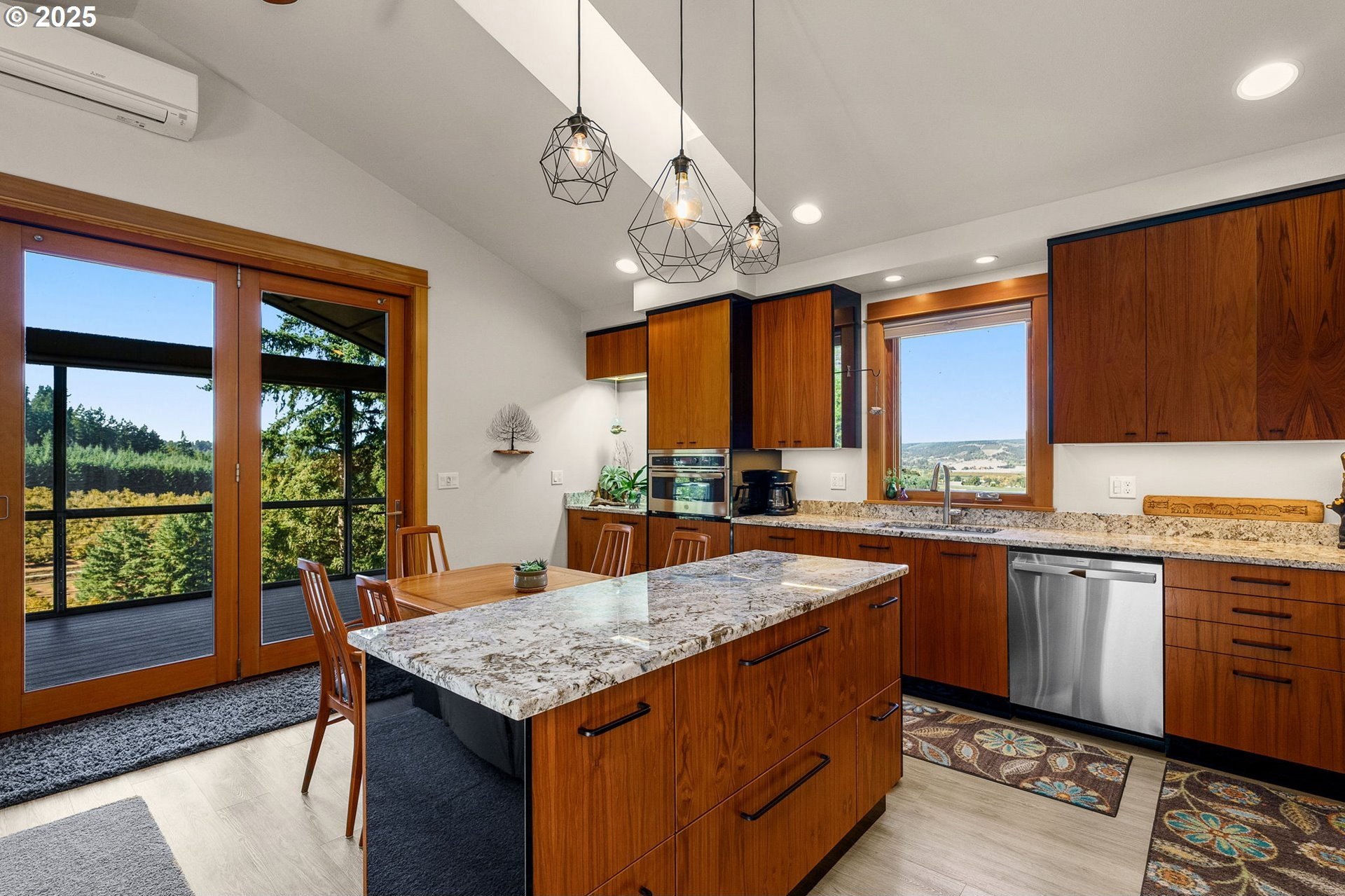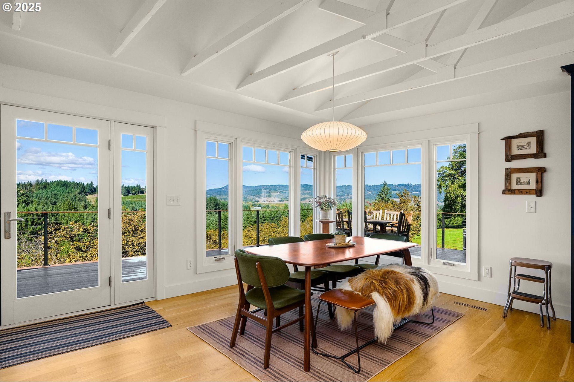 Nestled on 10 peaceful acres in the heart of the Dundee Hills AVA, this exceptional property offers a rare blend of modern living, agricultural opportunity, and panoramic wine country views. Eight acres are currently planted with producing hazelnuts, yet the highly sought-after Jory soil is equally ideal for cultivating premium vineyards, making it a compelling option for wine enthusiasts, boutique growers, or hobby farmers. At the center of the estate is a fully renovated 4-bedroom, 3-bath home, thoughtfully redesigned with contemporary finishes and timeless style. Expansive windows flood the open-concept kitchen, dining, and family room with natural light while framing stunning vistas of the valley and surrounding vineyards. A newer detached ADU adds versatility, featuring a spacious main-level shop with half bath and carport, plus a private living space above - perfect for multi-generational living. The outdoor setting is equally captivating, offering sweeping views that embody the essence of Oregon wine country. Every detail of the home reflects a balance of comfort and sophistication, from the chef’s kitchen and spa-inspired bathrooms to the generous primary suite. Whether you're seeking a working farm, a vineyard site, or a private retreat, this rare offering delivers on every front, inviting you to experience the unmatched beauty and lifestyle of the Dundee Hills.