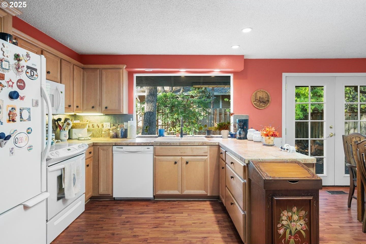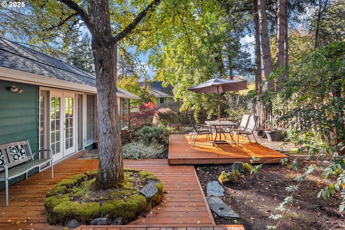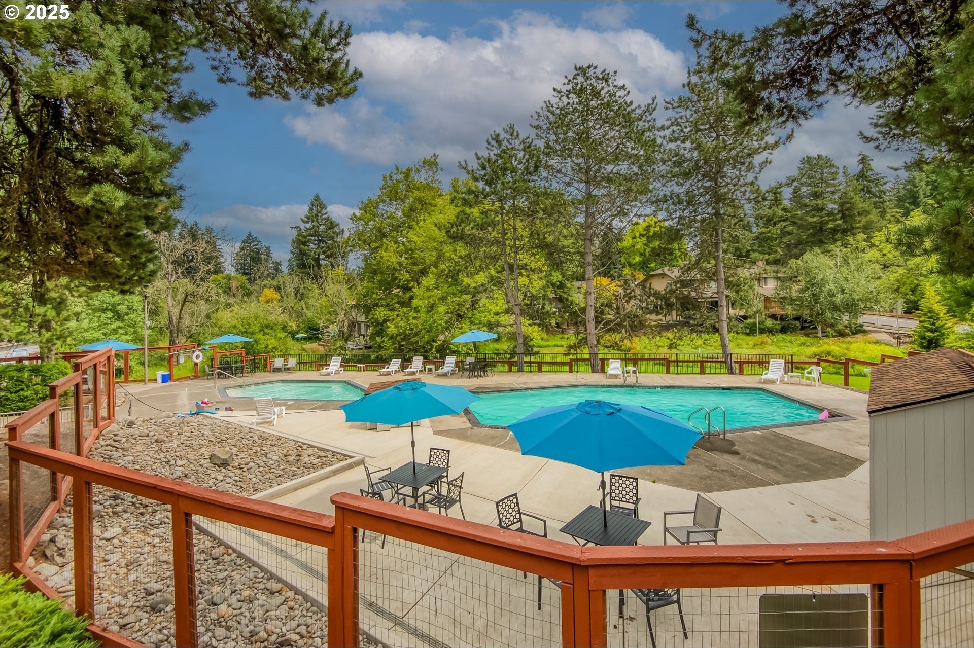 Nice one level home in desirable Four Seasons. Great culdesac location, Mountainside High School. Needs a bit of updating but the home offers a brand new driveway, new Certainteed Presidential 50 year roof and new backyard deck. Solid double wall construction with cedar siding. Great floorplan with large kitchen/dining area, kitchen with lots of cabinets, tile counters. Very spacious living room with wood burning fireplace and french doors opening to the deck and backyard. The primary bedroom offers a sliding glass door that opens to the backyard. Both bathrooms feature tiled floors and counters. Washer, dryer and refrigerator are included. Forced air gas heating, central air conditioning, 2 car garage. Enjoy a great neighborhood offering pool, clubhouse, walking trails and ponds at a bargain price!