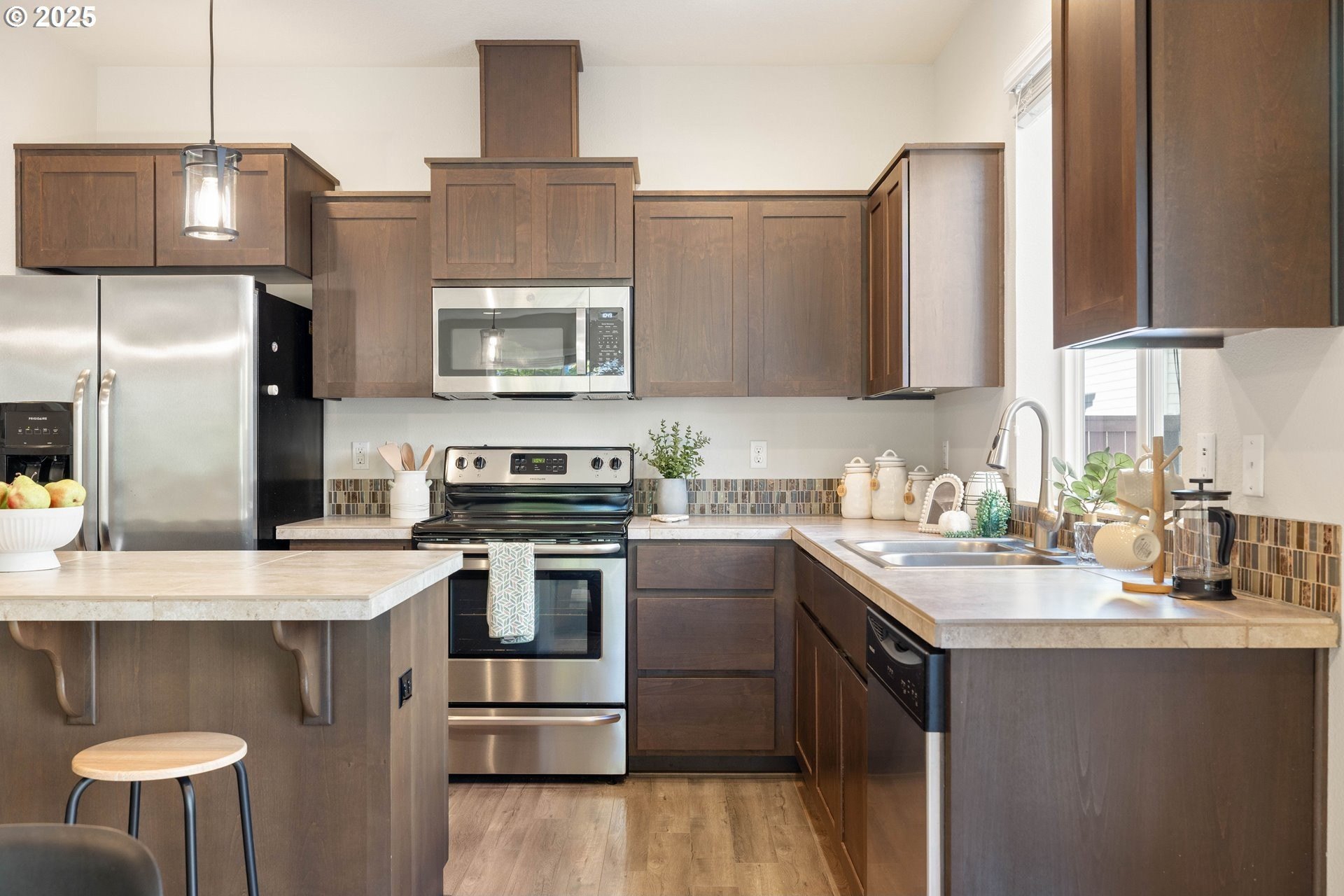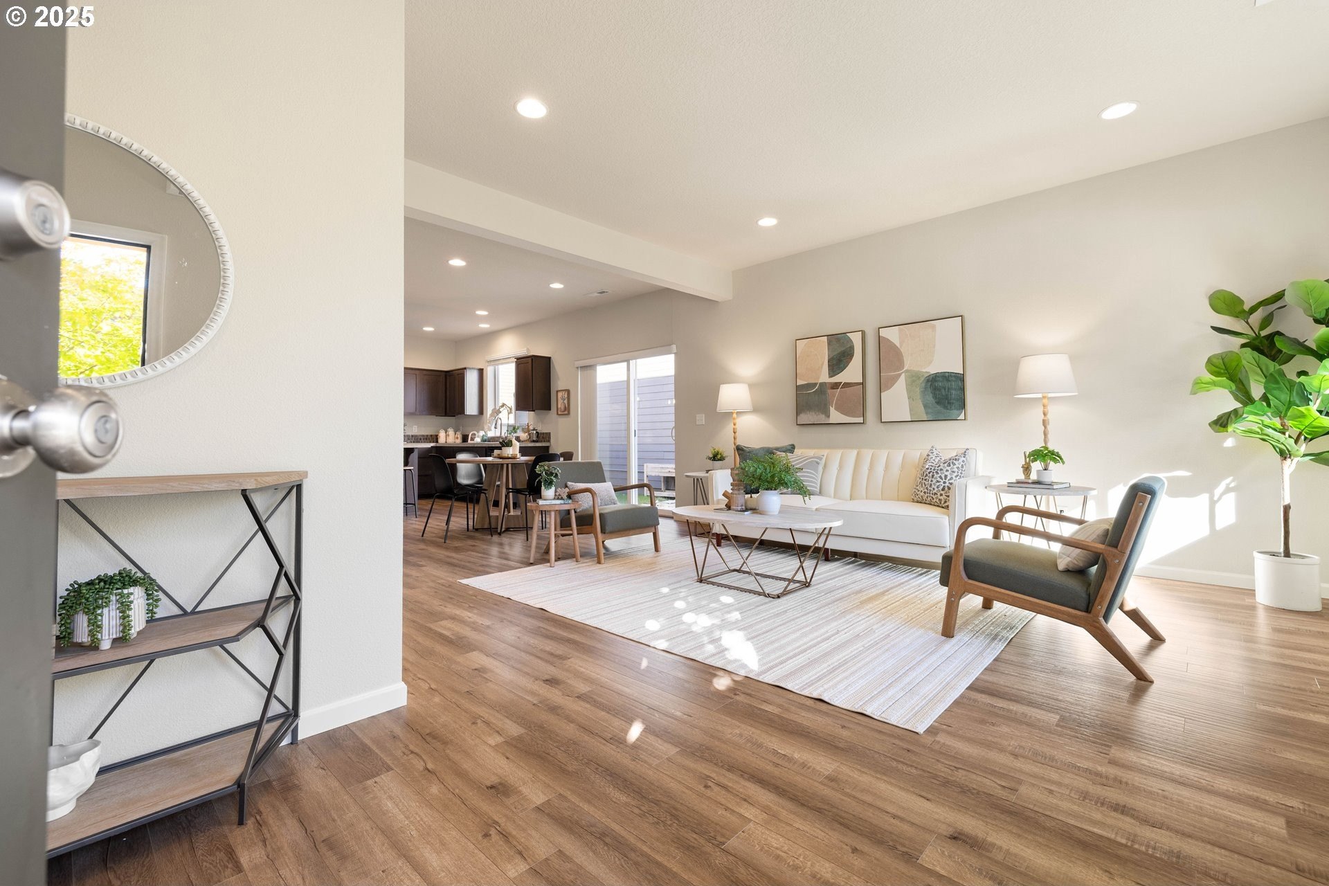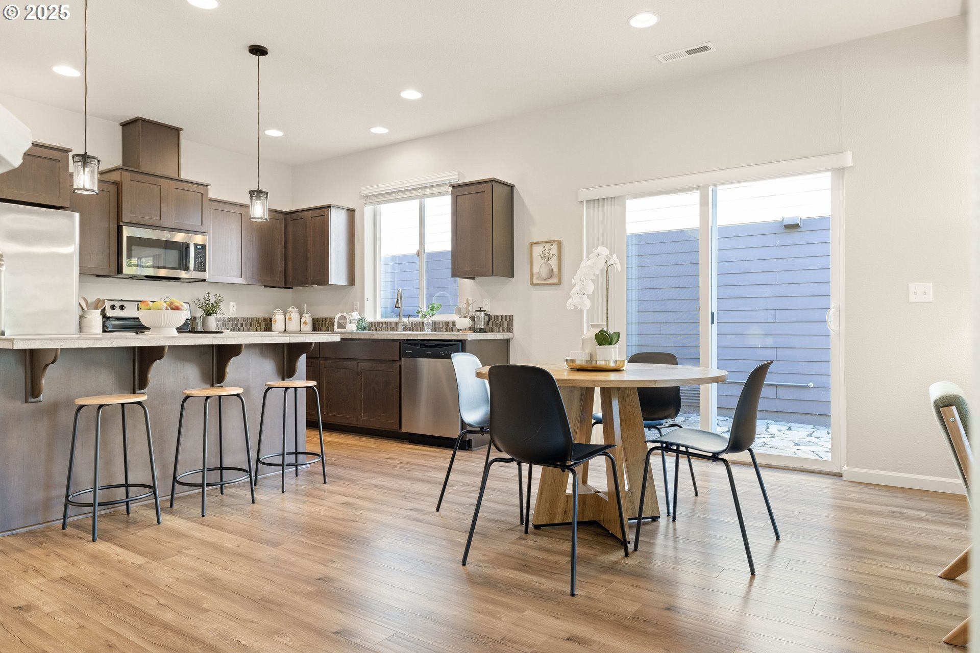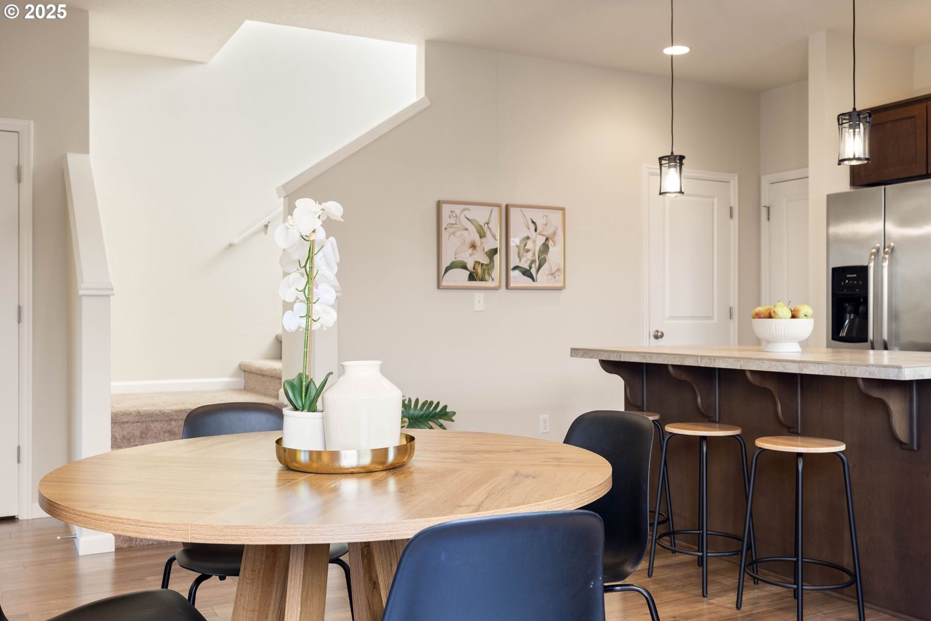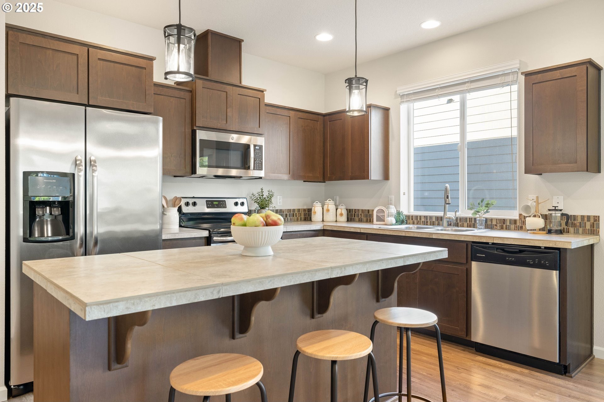 Welcome home to this charming Craftsman in the highly sought-after Heritage Crossing neighborhood of Tigard. Exceptionally maintained and thoughtfully designed, this home combines style, comfort, and functionality.The bright, open-concept main level features a modern kitchen with stainless steel appliances and an eat-in island that flows seamlessly into the dining and living areas, perfect for entertaining or everyday family living. Just off the dining nook, enjoy a private outdoor space ideal for morning coffee or evening gatherings.Upstairs, you’ll find three comfortable bedrooms, including a spacious primary suite with a large walk-in closet and a private ensuite bathroom.Additional highlights include a two-car garage with built-in shelving for optimal storage and organization. Conveniently located near parks, shopping, and schools, this home offers the perfect combination of comfort, function, and location.