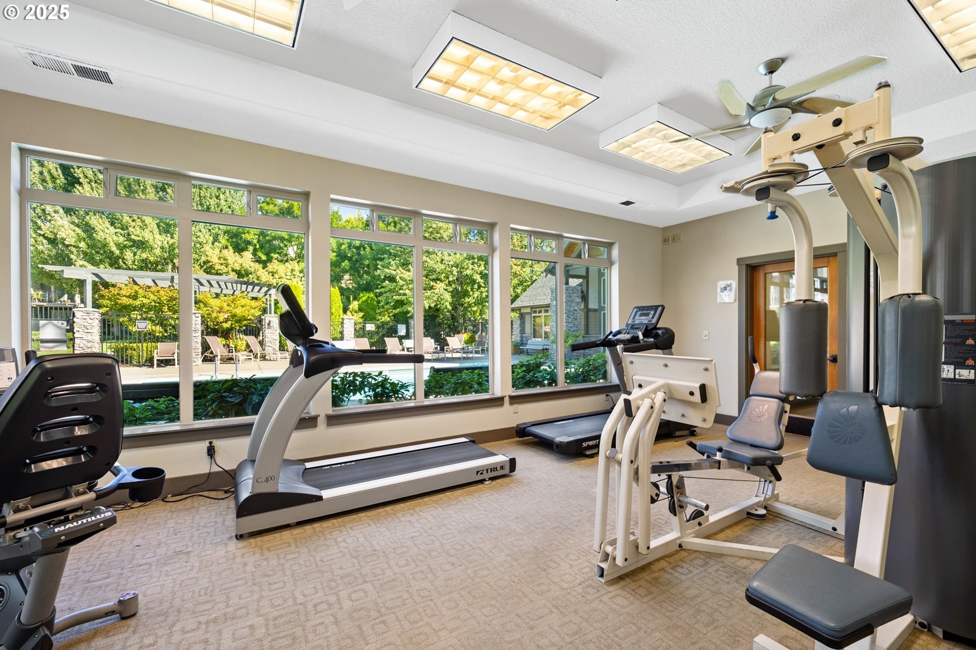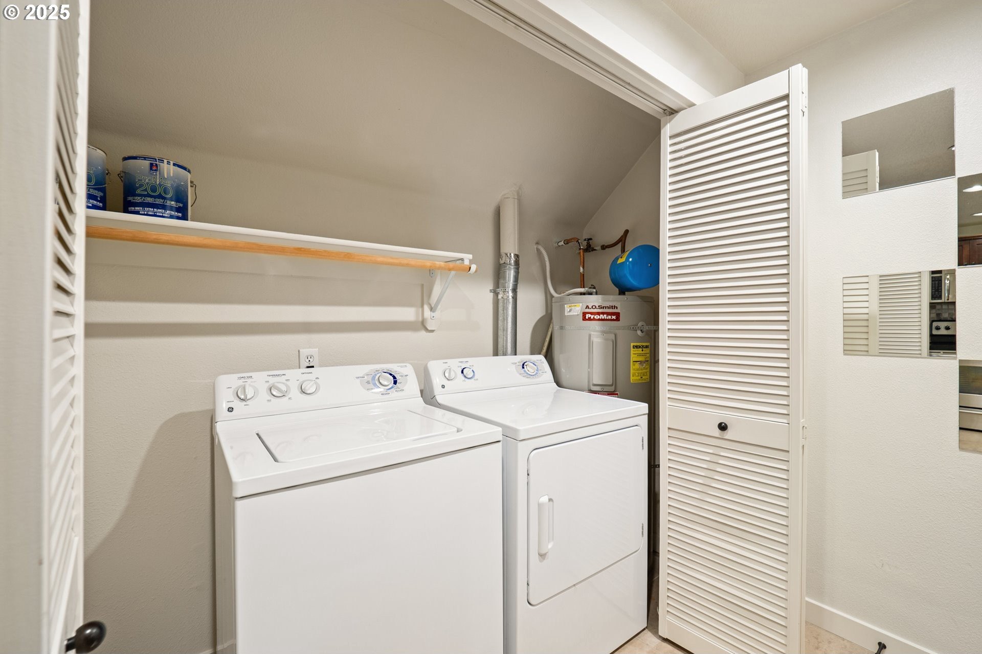 Welcome to this beautifully maintained ground-floor condo offering comfort, convenience, and excellent amenities. This two-bedroom, one-bath home features tall ceilings, tile floors, and a thoughtfully designed layout. The kitchen showcases stained wood cabinetry, stainless steel appliances, and a brand-new refrigerator, complemented by an in-unit washer and dryer and an electric range.Step outside to a private covered patio, or take advantage of the community’s pool, gym, and clubhouse just moments away. With one assigned parking space plus 157 permit-only guest spaces, parking is never a concern. Ideally located near neighborhood parks and only minutes from the Quatama MAX station, commuting and recreation are at your doorstep. Investor-friendly with no rental cap, this home offers a perfect balance of modern living and long-term value.