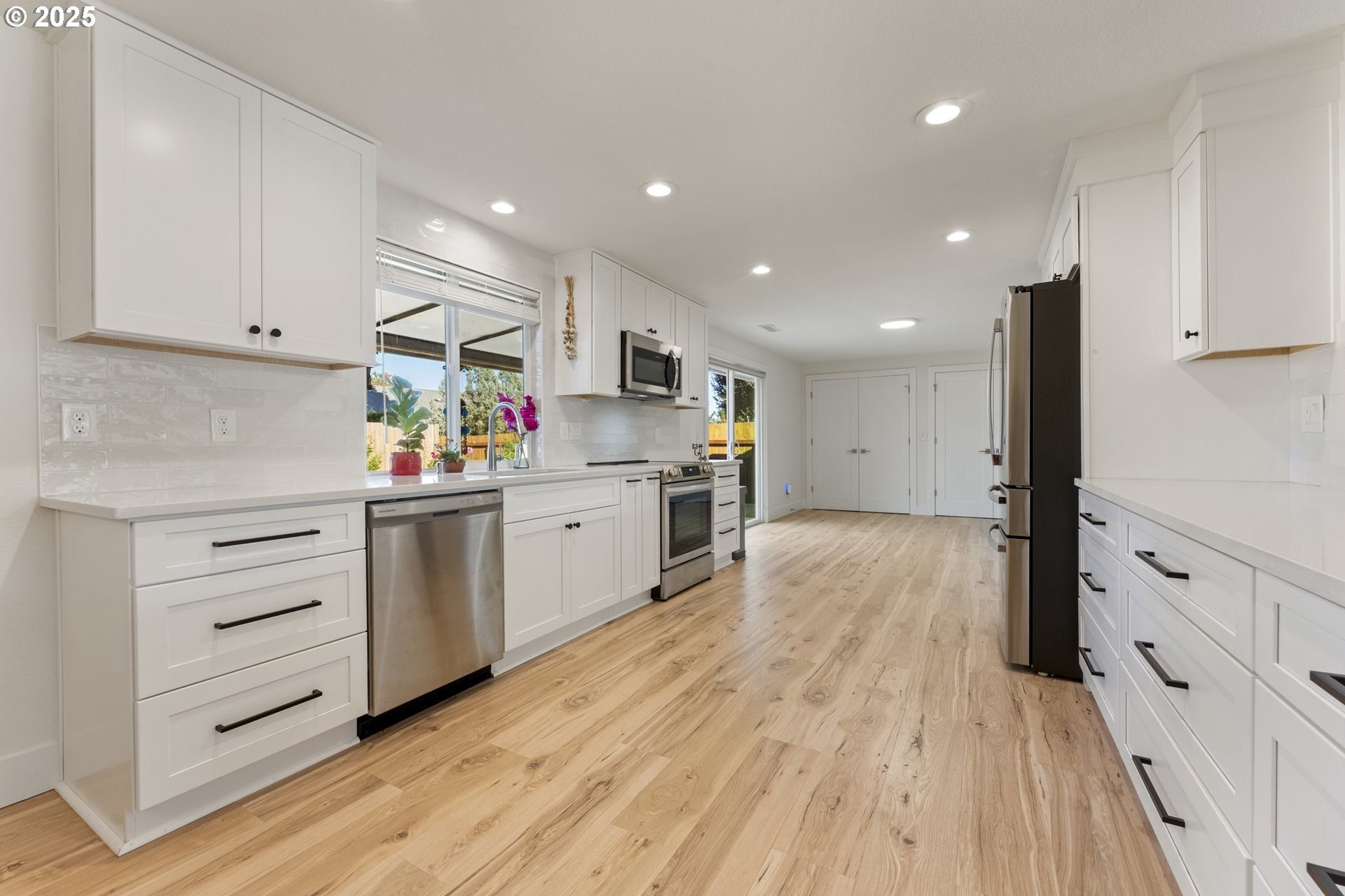 Completely remodeled and ready to roll, this West Hazel Dell home blends smart updates with everyday comfort. Step inside to an open layout with durable LVP flooring throughout, and a kitchen that’s a real highlight. It’s fully loaded with stainless steel appliances, quartz counters, an eating bar, and a step-in pantry that keeps things tidy and practical. The living and dining areas connect naturally, creating an inviting space for everyday living or when friends stop by.The primary suite sits privately at the back of the home with a walk-in shower and plenty of room to unwind. Two additional bedrooms and a refreshed hall bath round out the floor plan nicely, offering flexibility for guests, a home office, or hobbies.Outside, you’ll find even more to love. The brand-new roof and heat pump (both 2024) mean peace of mind for years to come, and the expanded RV-ready driveway with hookups makes it easy to take off on your next adventure or host friends who bring theirs. The covered patio, new wood fence, landscaped yard, and greenhouse set the scene for easy outdoor living. The garage adds the finishing touch with its clean epoxy floor that’s tough, functional, and ready for whatever you throw at it.All the big-ticket updates are done, and it shows. Great location close to shops, restaurants, and freeway access in an established, welcoming neighborhood. It’s the kind of home that’s easy to settle into and even easier to love.