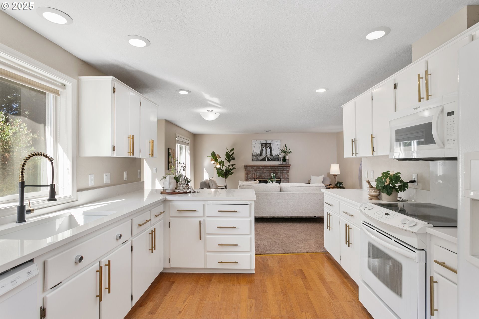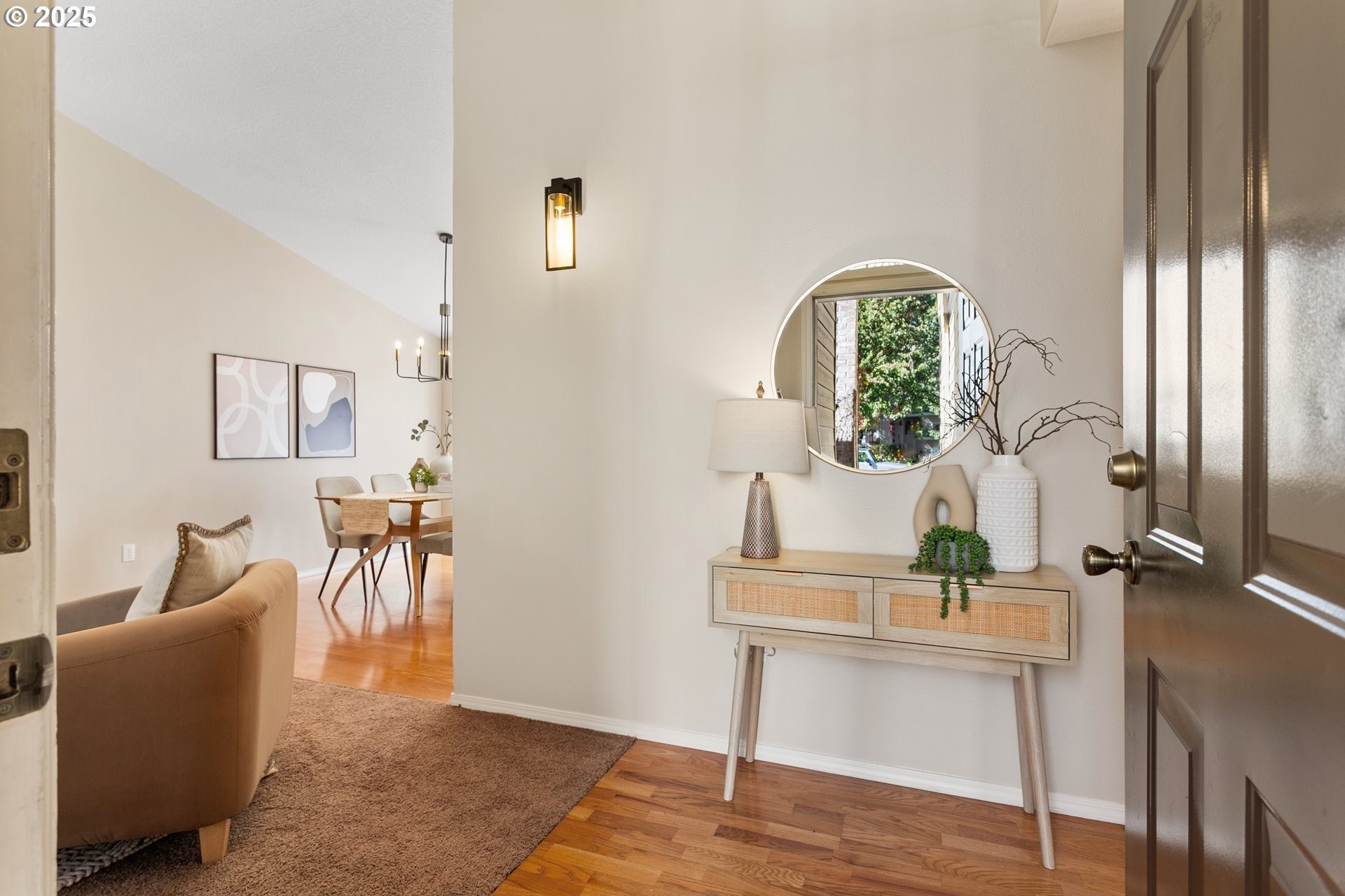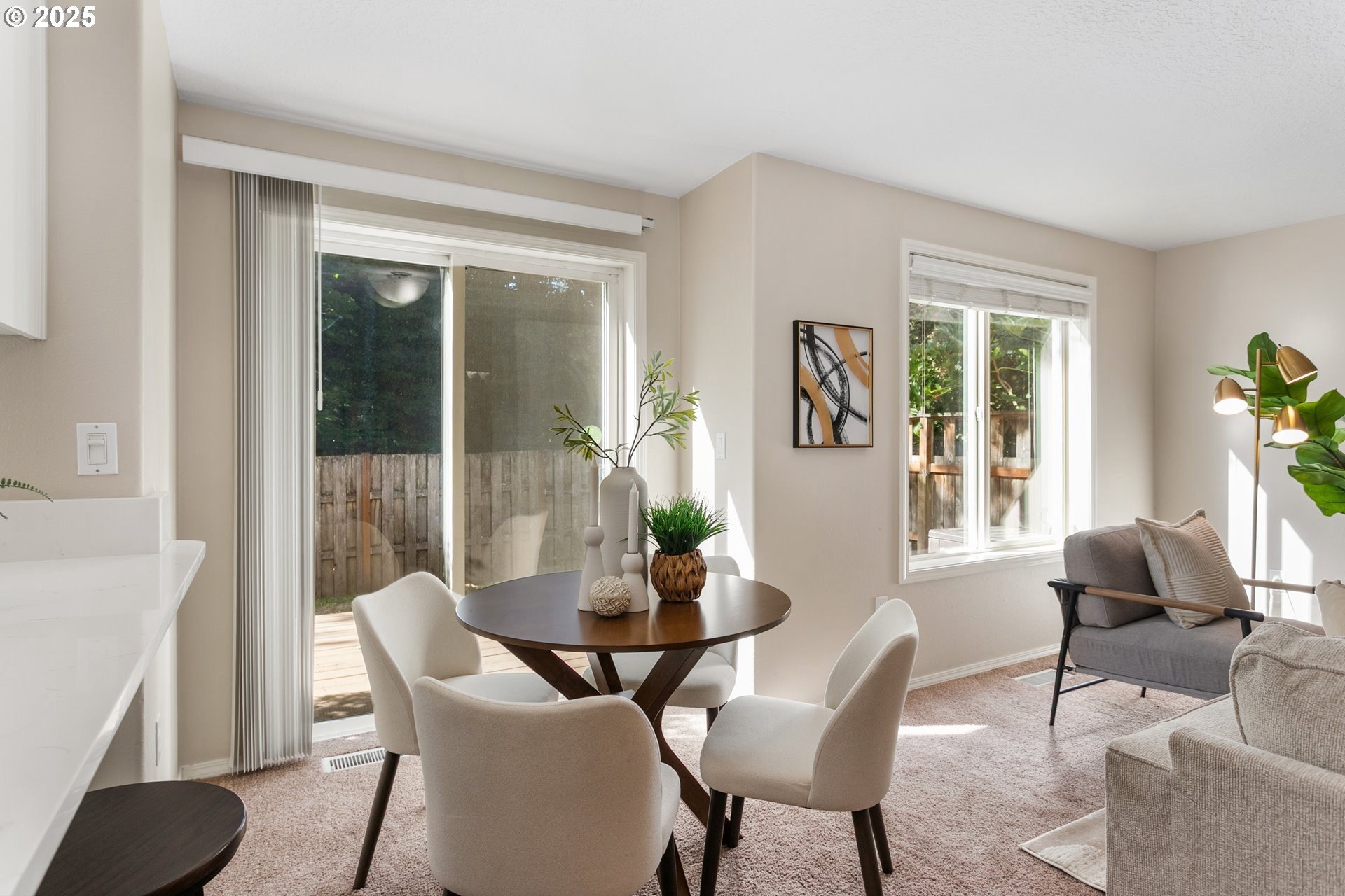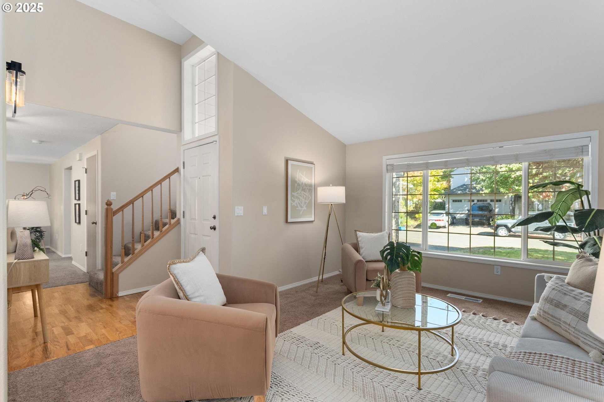 This charming, affordable home is cute as a button and perfectly located — walkable to everyday amenities with quick highway access. Nestled on a private, fully fenced corner lot, the home greets you with soaring ceilings and gleaming hardwood floors.The formal living and dining rooms feature vaulted ceilings, while the refreshed kitchen shines with classic white cabinetry and quartz countertops. A cozy nook flows seamlessly into the inviting family room, complete with a fireplace and walls of windows that open to the generous backyard. A convenient half bath, laundry, and two-car garage complete the main level. Upstairs, the spacious ensuite primary retreat offers vaulted ceilings, double sinks, and a walk-in closet. Three additional bedrooms and a full bath provide plenty of room for everyone. Add in top-rated schools, a beautiful Recreation and Aquatic Center, excellent libraries, and the security of a welcoming community — and you’ll see why this is such a special place to call home.