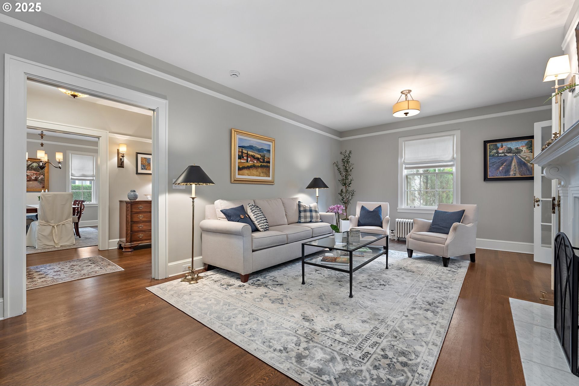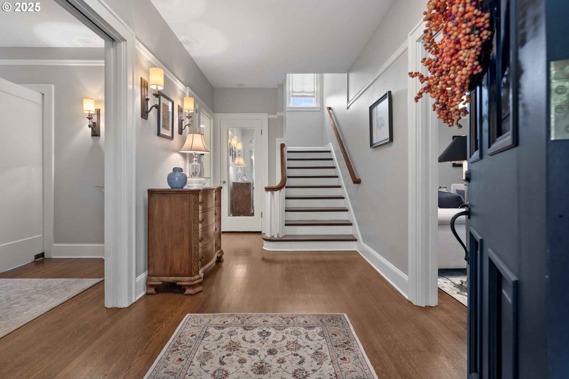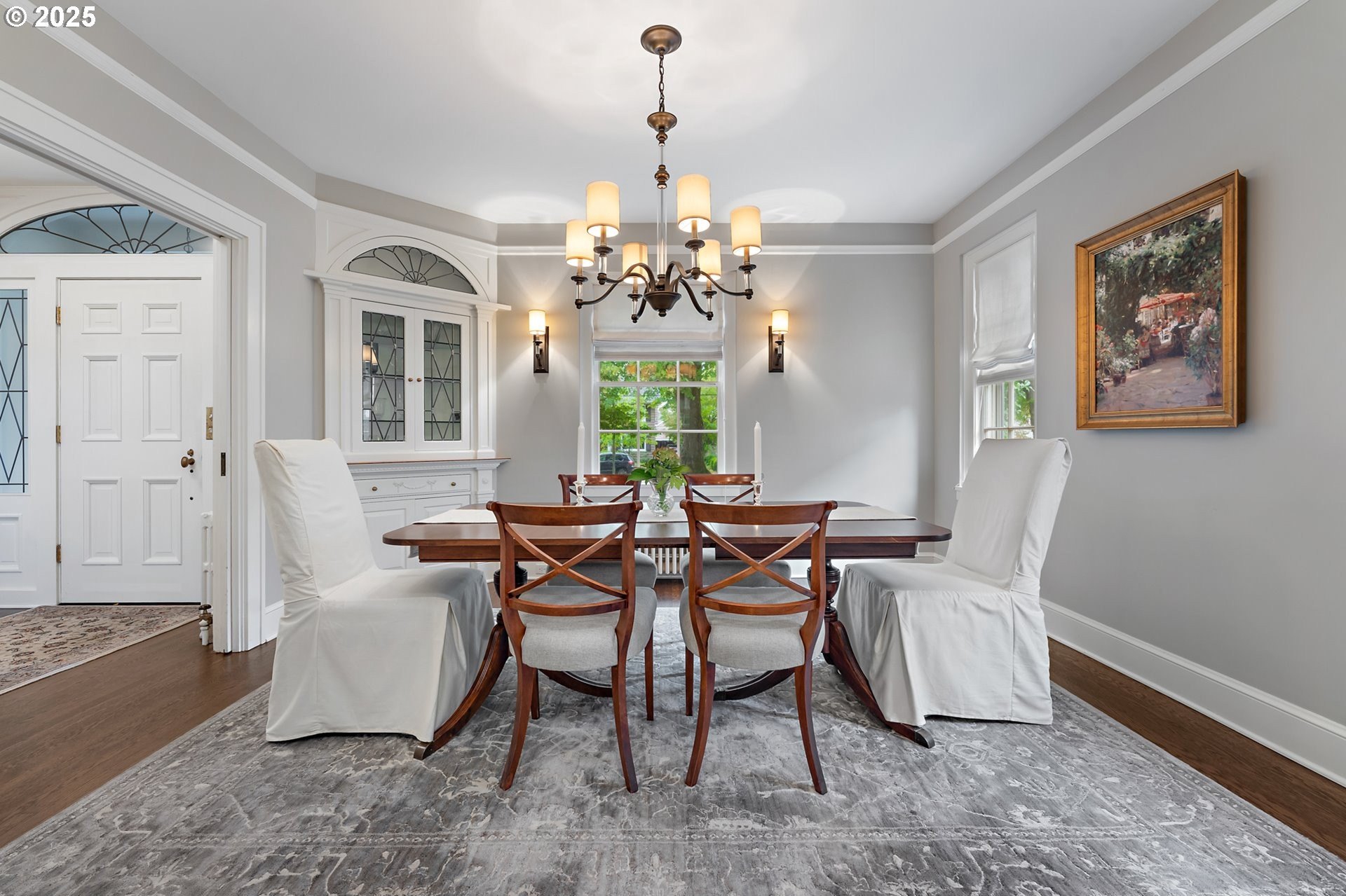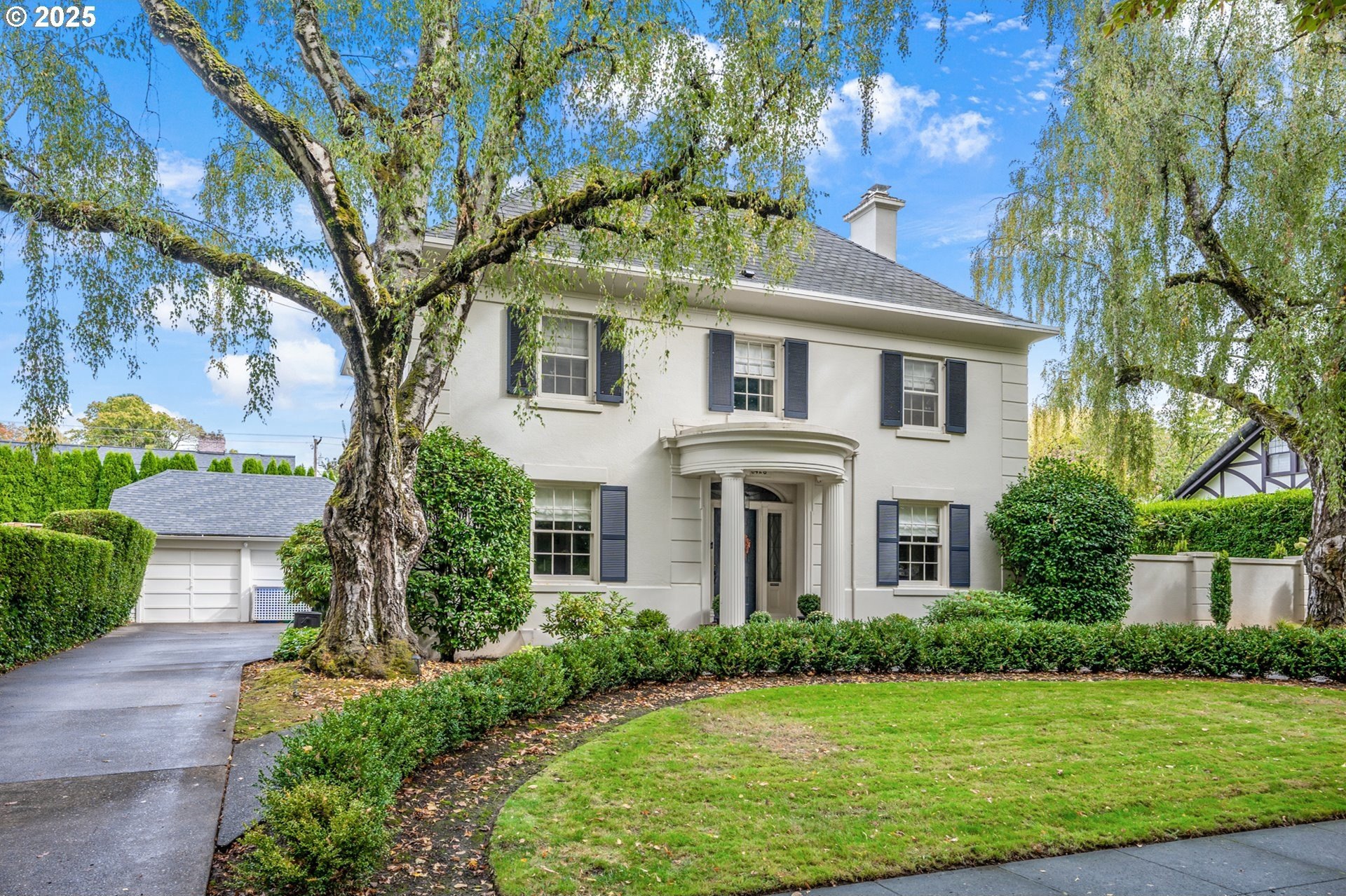 The historically significant Julia Groo House—better known as The All Electric House—is one of the most beloved homes on Eastmoreland’s coveted Reed College Place. Designed by award-winning English architect Charles Dearman James in the Colonial Revival style, this neighborhood treasure blends timeless character with modern comfort and exceptional functionality. Set on an expansive double lot, this breathtaking property has been lovingly maintained, meticulously restored, and thoughtfully updated. The unparalleled elegance of the 1920s shines through oak hardwoods, leaded glass, built-ins, high ceilings, wide baseboards, and picture moulding, while today’s essentials include a serene primary suite, an open, remodeled chef’s kitchen with premium finishes, luxe baths, and newer HVAC systems for efficiency and peace of mind. Four levels of living space offer versatility and room for all: a sun-lit family room with walls of windows on the main, a fully finished recreation/media room below, and a top level bedroom perfect for guests or a quiet home office. The outdoor areas are equally enchanting: two viewing decks on the second floor offer peaceful vistas of the neighborhood’s historic canopy, and a private backyard provides an inspiring backdrop for gatherings, play, or simple relaxation in any season. Rarely does a property combine architectural significance, impeccable restoration, and modern livability quite like this. Here is your chance to own a piece of Portland history and become part of Eastmoreland’s close-knit community, just moments from parks, schools, the golf course, and all the amenities in Sellwood/Moreland and Woodstock. Open Sun. 10/19 from 11am-1pm. [Home Energy Score = 2. HES Report at https://rpt.greenbuildingregistry.com/hes/OR10029609]