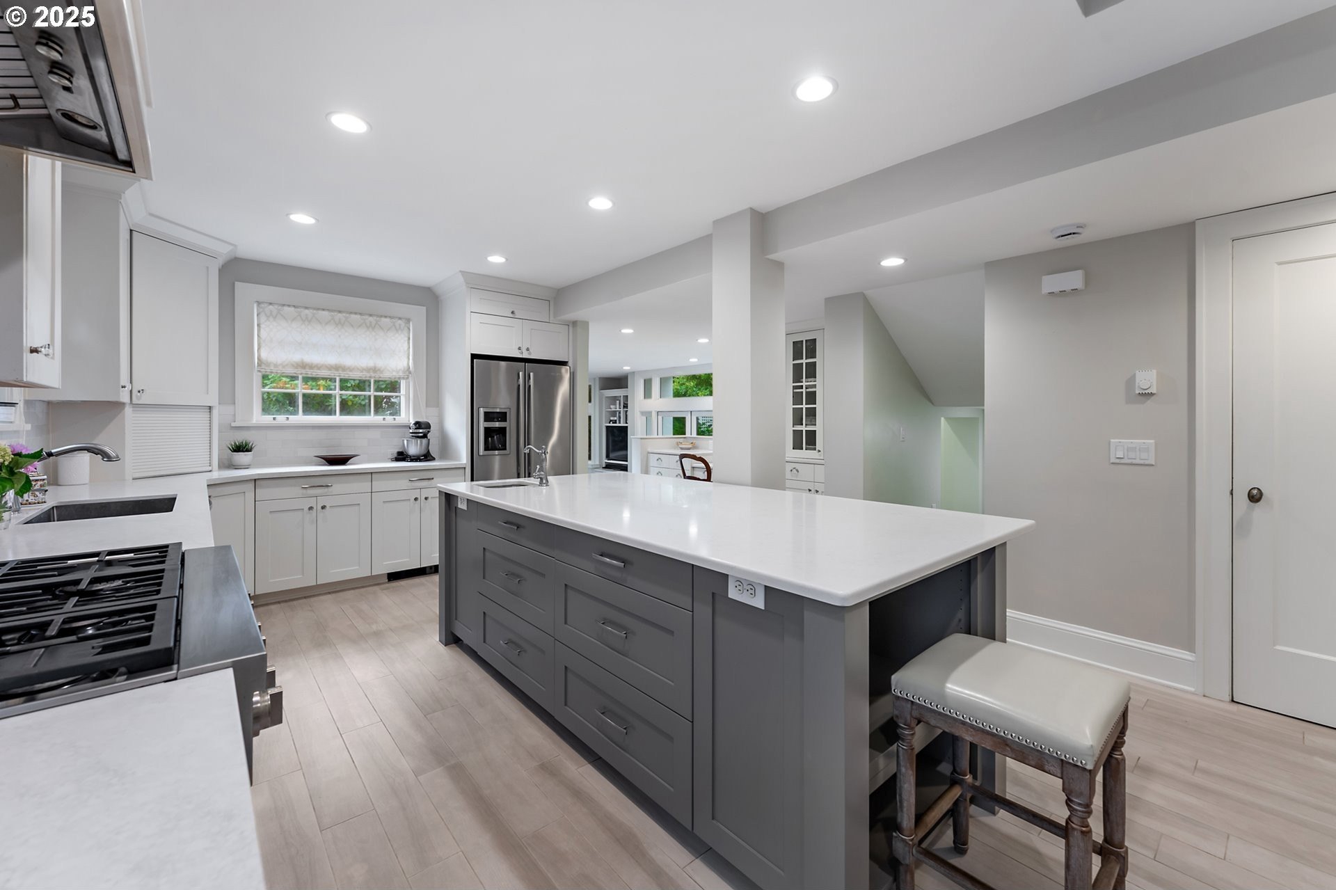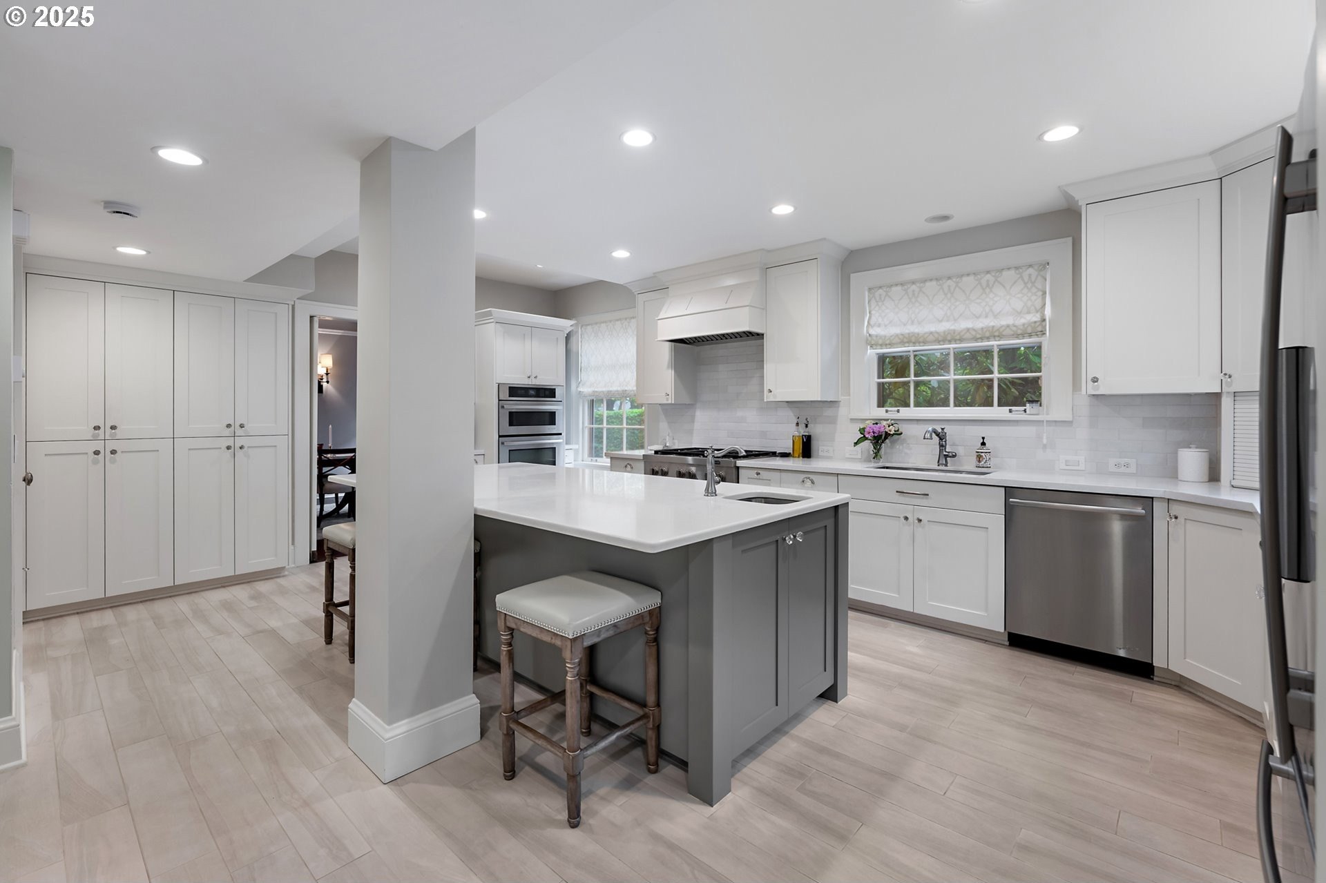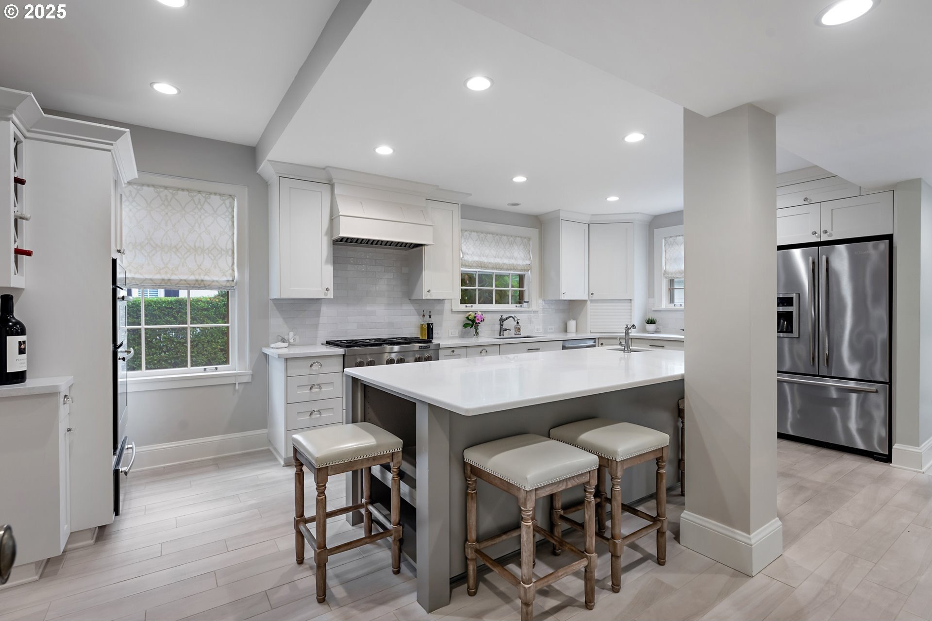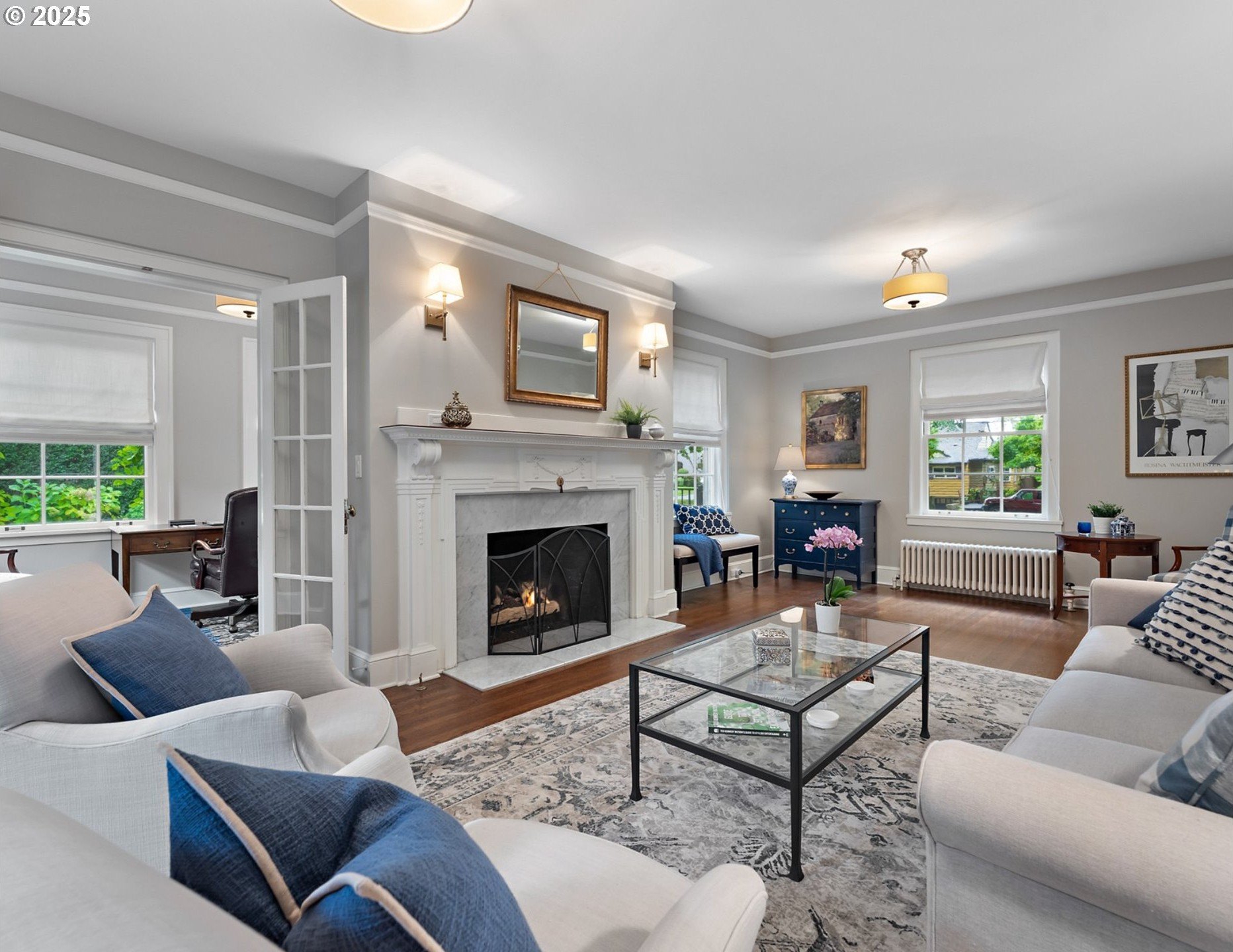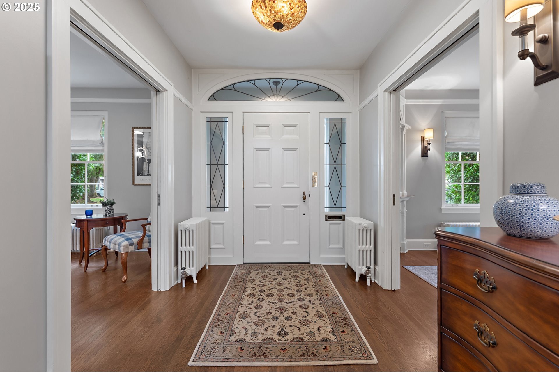 The historically significant Julia Groo House—better known as The All Electric House—is one of the most beloved homes on Eastmoreland’s coveted Reed College Place. Designed by award-winning English architect Charles Dearman James in the Colonial Revival style, this neighborhood treasure blends timeless character with modern comfort and exceptional functionality. Set on an expansive double lot, this breathtaking property has been lovingly maintained, meticulously restored, and thoughtfully updated. The unparalleled elegance of the 1920s shines through oak hardwoods, leaded glass, built-ins, high ceilings, wide baseboards, and picture moulding, while today’s essentials include a serene primary suite, an open, remodeled chef’s kitchen with premium finishes, luxe baths, and newer HVAC systems for efficiency and peace of mind. Four levels of living space offer versatility and room for all: a sun-lit family room with walls of windows on the main, a fully finished recreation/media room below, and a top level bedroom perfect for guests or a quiet home office. The outdoor areas are equally enchanting: two viewing decks on the second floor offer peaceful vistas of the neighborhood’s historic canopy, and a private backyard provides an inspiring backdrop for gatherings, play, or simple relaxation in any season. Rarely does a property combine architectural significance, impeccable restoration, and modern livability quite like this. Here is your chance to own a piece of Portland history and become part of Eastmoreland’s close-knit community, just moments from parks, schools, the golf course, and all the amenities in Sellwood/Moreland and Woodstock. Open Sun. 10/19 from 11am-1pm. [Home Energy Score = 2. HES Report at https://rpt.greenbuildingregistry.com/hes/OR10029609]