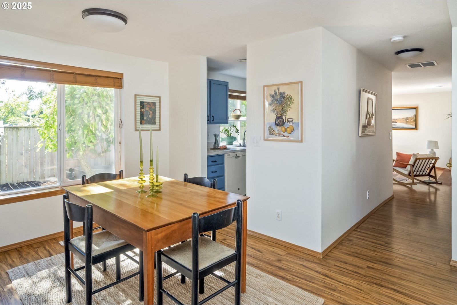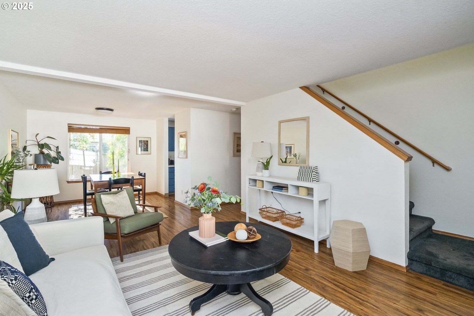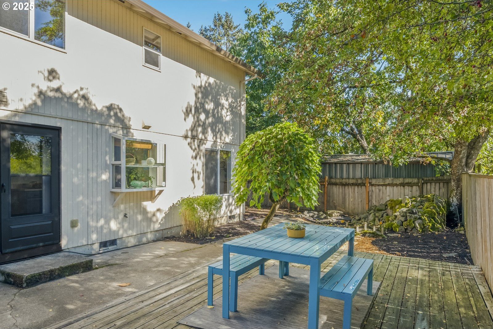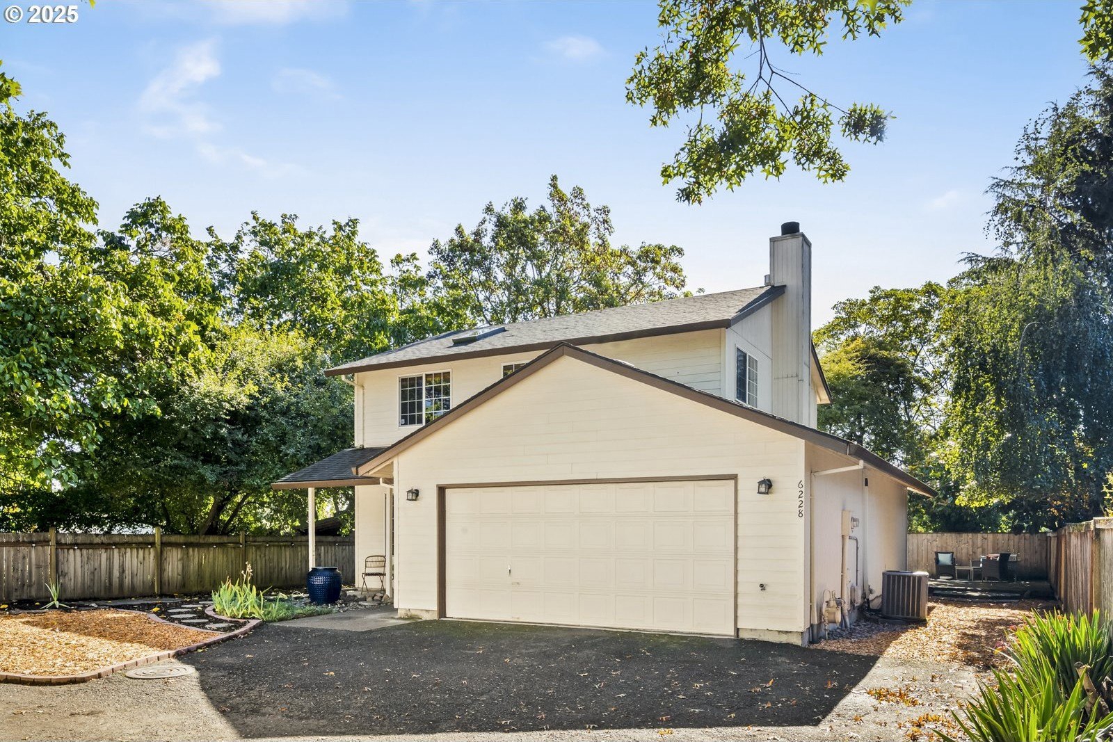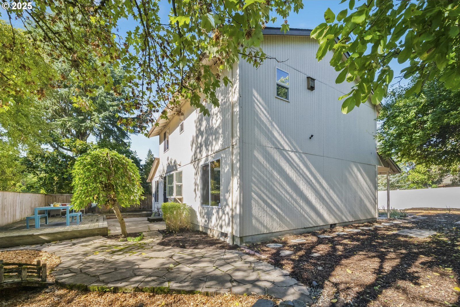 This adorable contemporary feels like your own urban sanctuary, with just the right mix of charm and updates! Surrounded by trees and set back from the road, enjoy dappled sunlight streaming in through the windows and beautiful, peaceful outdoor spaces on all sides. Inside you'll find updated laminate floors, fresh paint throughout, and a refreshed kitchen. The main floor features a family room with fireplace and a half bathroom, in addition to the open living room, dining room, and kitchen. Upstairs are all three bedrooms plus two full bathrooms. The generous primary bedroom boasts a central skylight, ensuite, and a walk-in closet. Storage space and closets galore, plus a two-car garage for all of your projects. All of this tucked into the sweetest pocket, just around the corner from Harney Park, Cartlandia Food Carts, Fred Meyer, Trader Joe's, and tons of retail and transit. [Home Energy Score = 6. HES Report at https://rpt.greenbuildingregistry.com/hes/OR10242429]