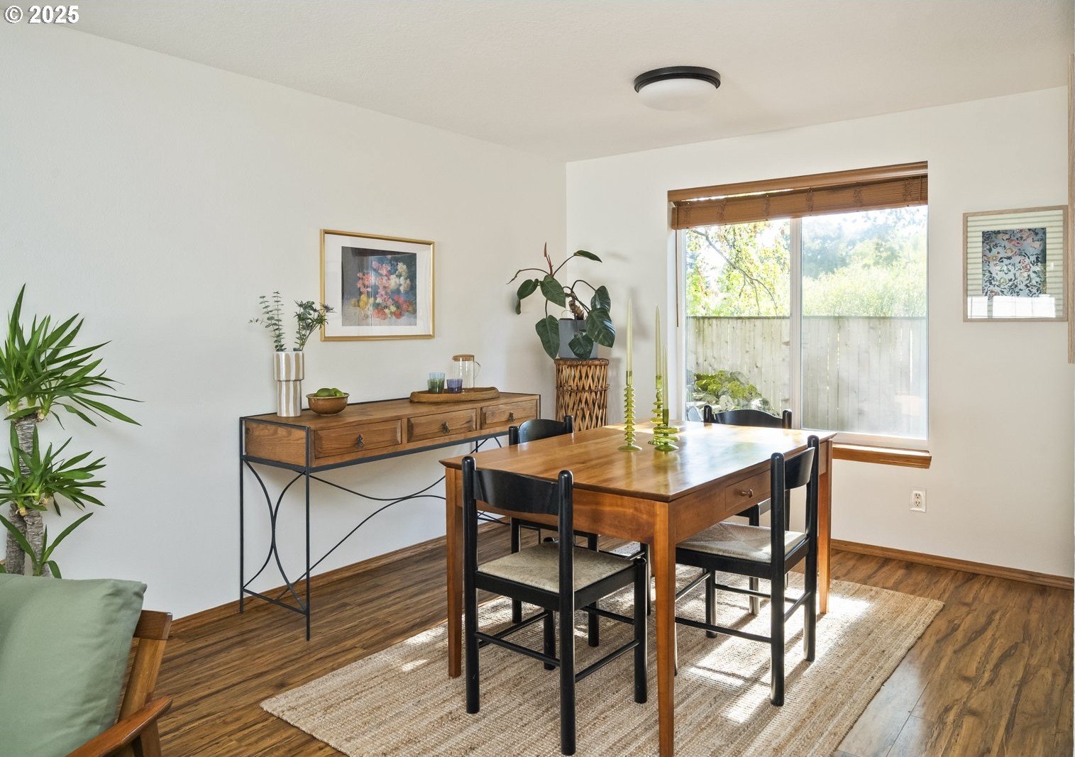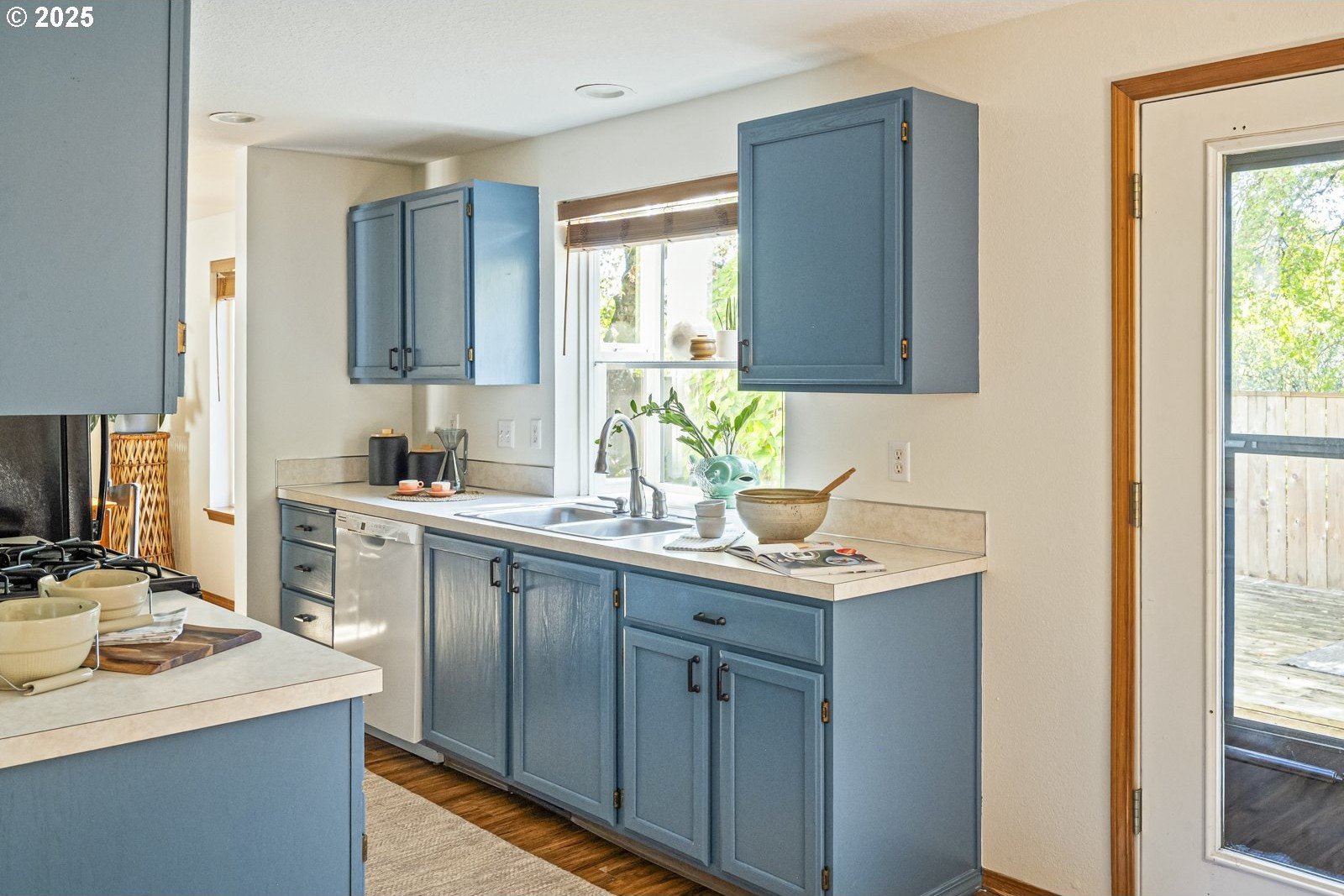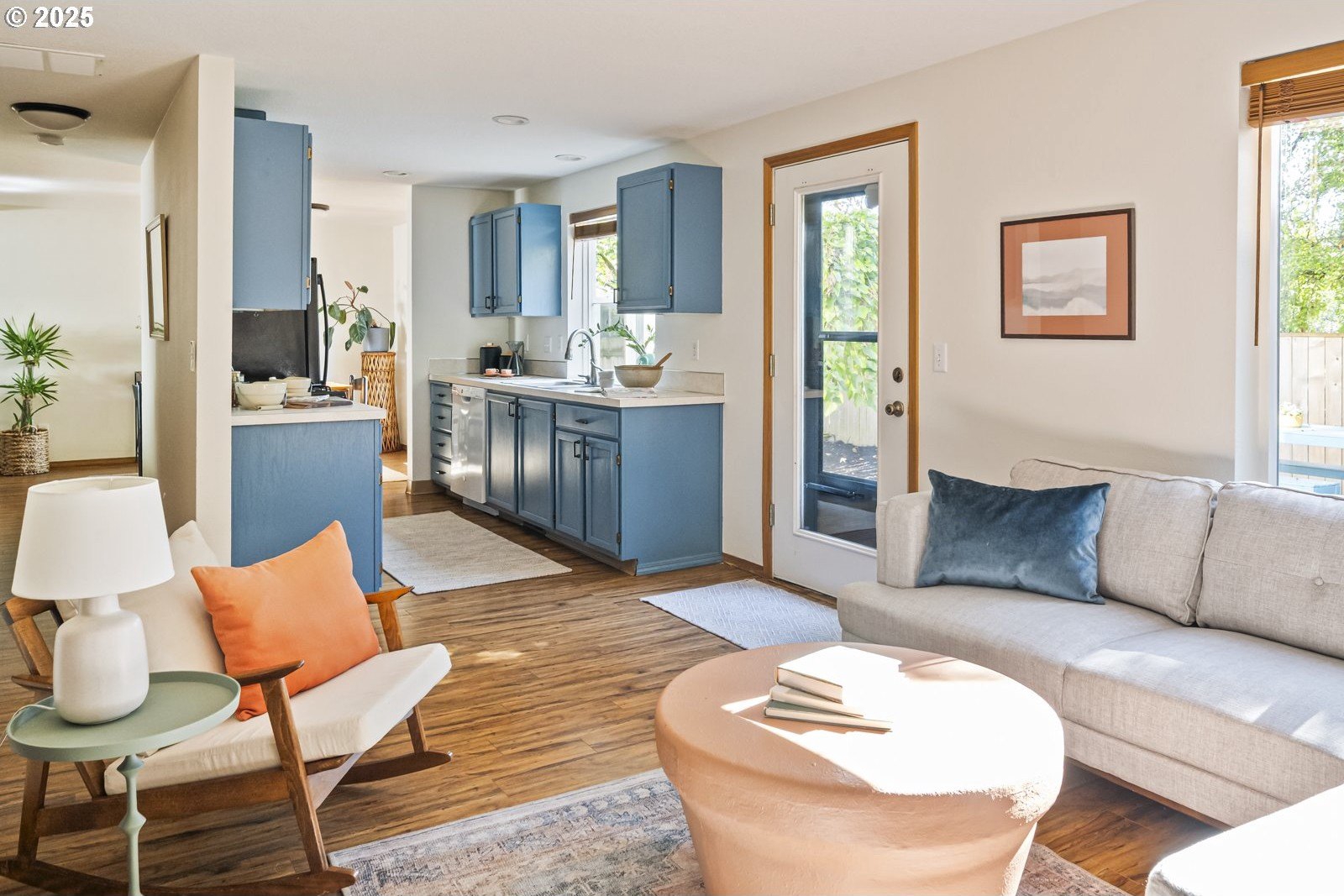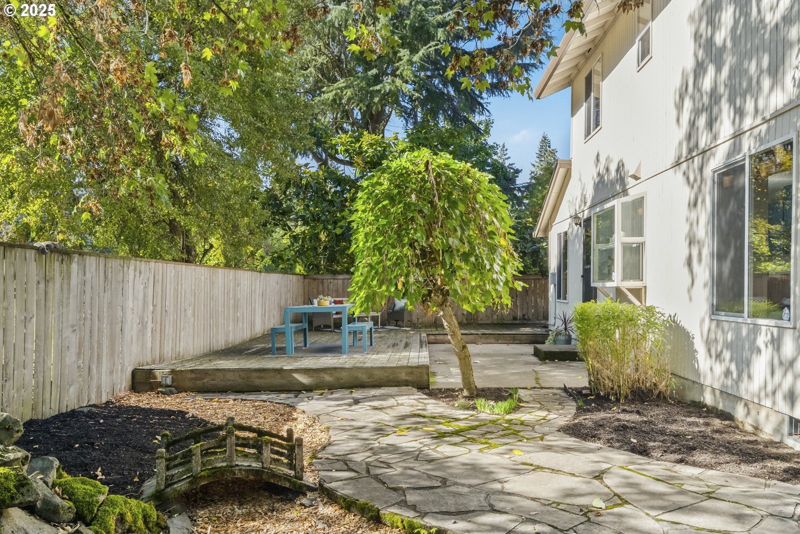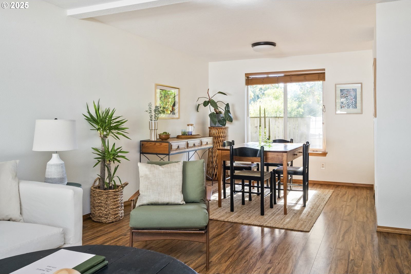 This adorable contemporary feels like your own urban sanctuary, with just the right mix of charm and updates! Surrounded by trees and set back from the road, enjoy dappled sunlight streaming in through the windows and beautiful, peaceful outdoor spaces on all sides. Inside you'll find updated laminate floors, fresh paint throughout, and a refreshed kitchen. The main floor features a family room with fireplace and a half bathroom, in addition to the open living room, dining room, and kitchen. Upstairs are all three bedrooms plus two full bathrooms. The generous primary bedroom boasts a central skylight, ensuite, and a walk-in closet. Storage space and closets galore, plus a two-car garage for all of your projects. All of this tucked into the sweetest pocket, just around the corner from Harney Park, Cartlandia Food Carts, Fred Meyer, Trader Joe's, and tons of retail and transit. [Home Energy Score = 6. HES Report at https://rpt.greenbuildingregistry.com/hes/OR10242429]