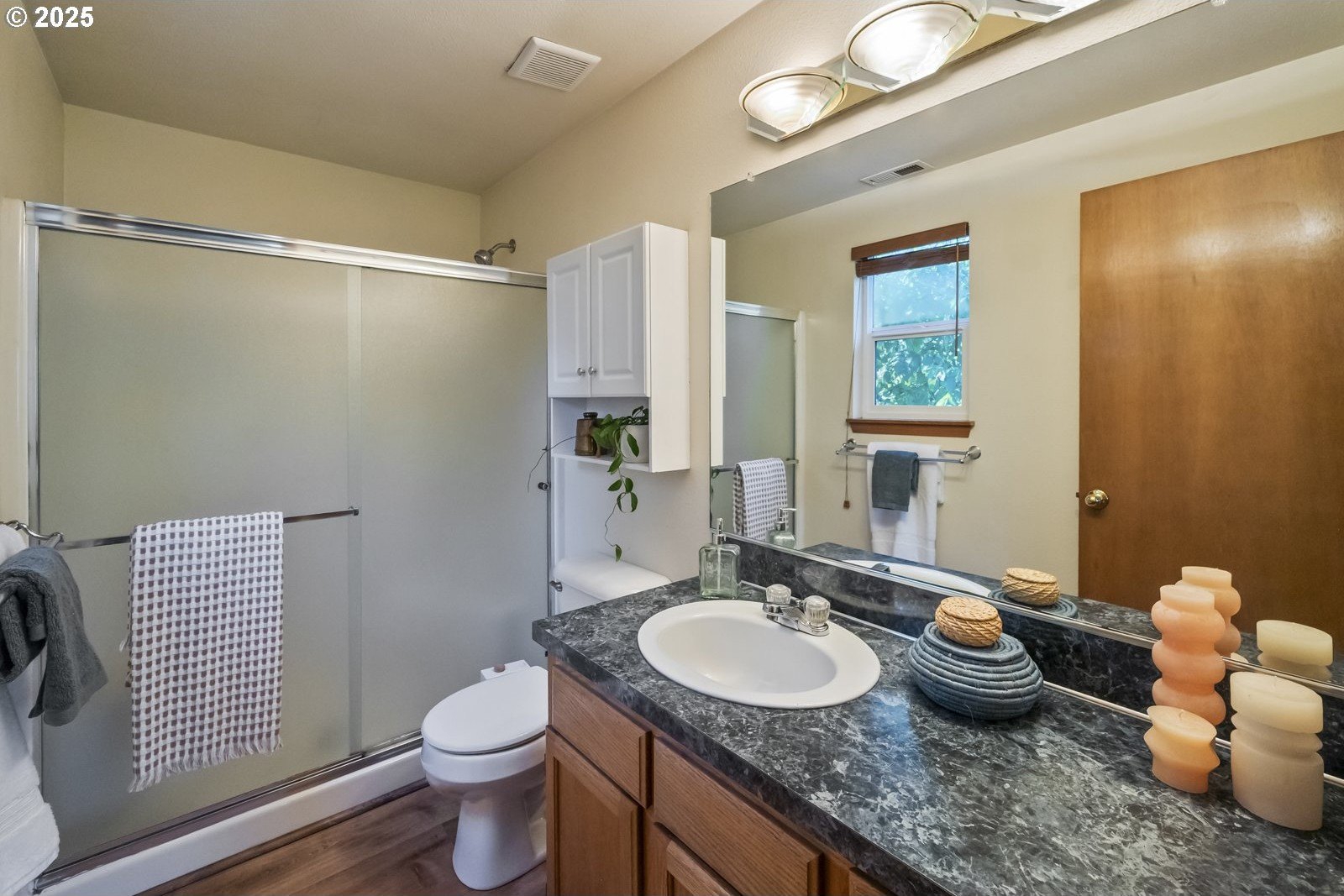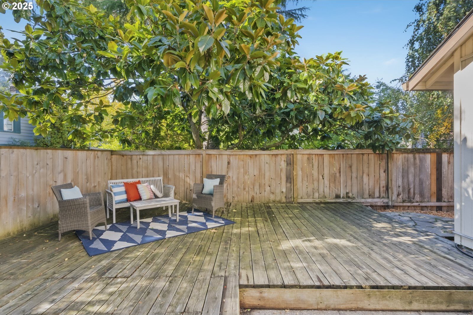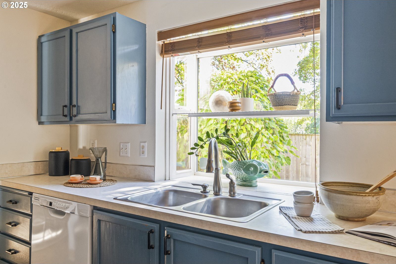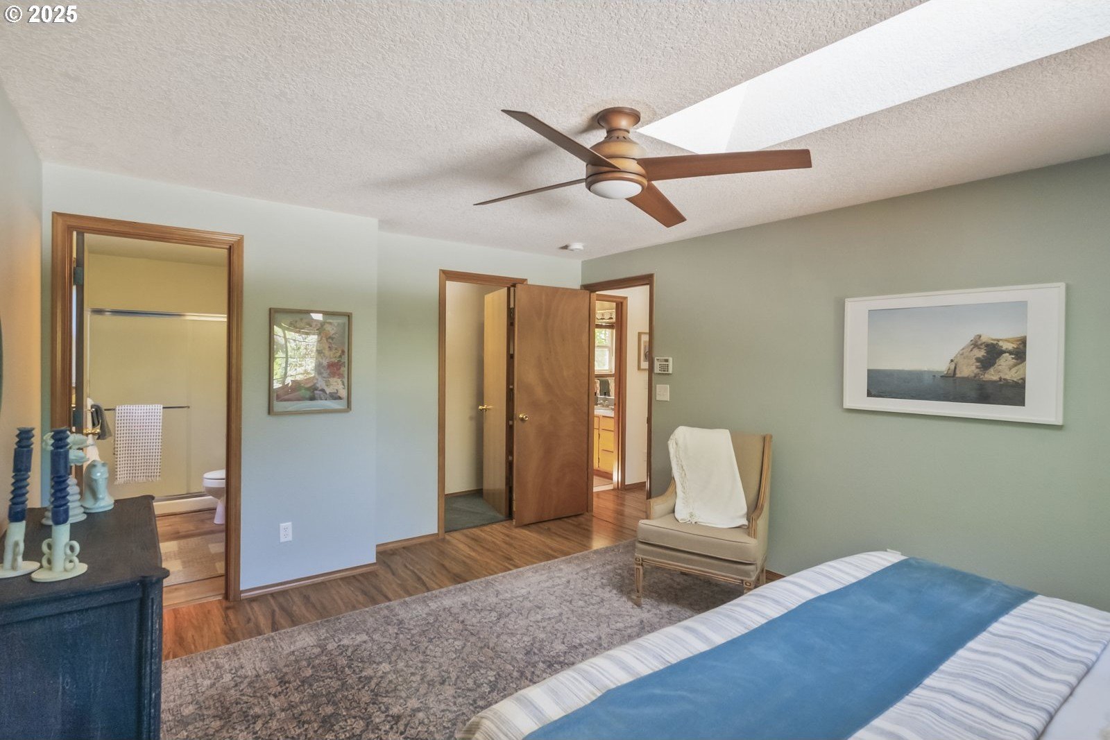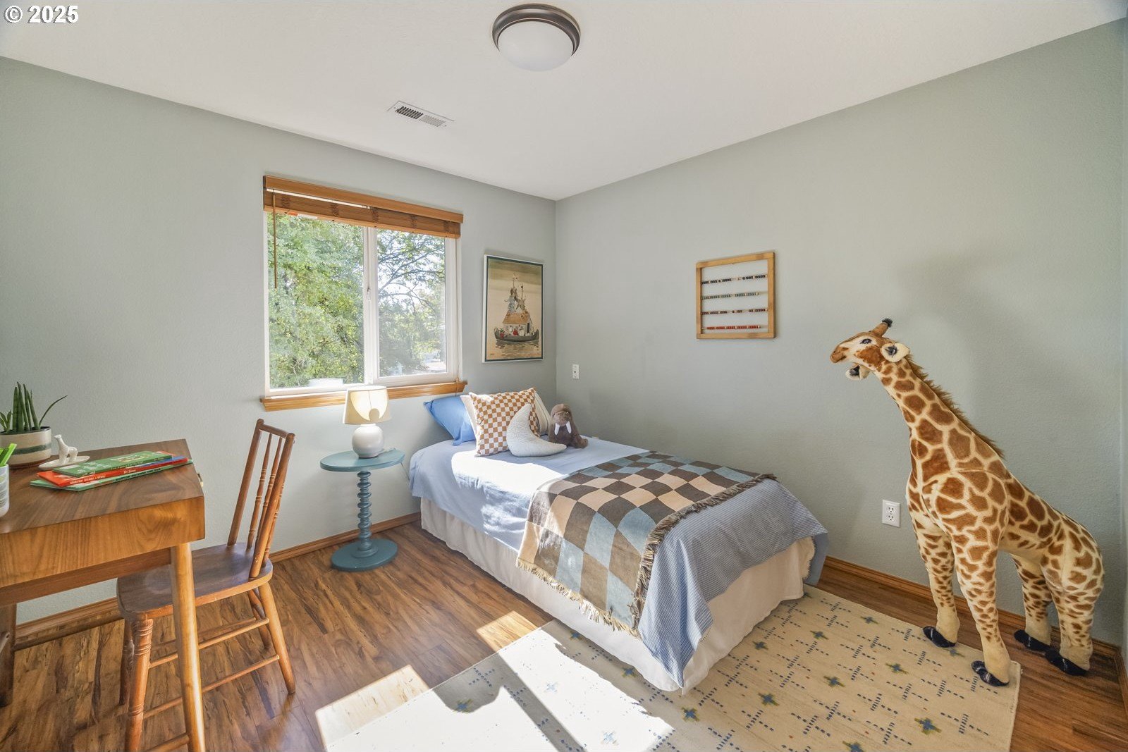 This adorable contemporary feels like your own urban sanctuary, with just the right mix of charm and updates! Surrounded by trees and set back from the road, enjoy dappled sunlight streaming in through the windows and beautiful, peaceful outdoor spaces on all sides. Inside you'll find updated laminate floors, fresh paint throughout, and a refreshed kitchen. The main floor features a family room with fireplace and a half bathroom, in addition to the open living room, dining room, and kitchen. Upstairs are all three bedrooms plus two full bathrooms. The generous primary bedroom boasts a central skylight, ensuite, and a walk-in closet. Storage space and closets galore, plus a two-car garage for all of your projects. All of this tucked into the sweetest pocket, just around the corner from Harney Park, Cartlandia Food Carts, Fred Meyer, Trader Joe's, and tons of retail and transit. [Home Energy Score = 6. HES Report at https://rpt.greenbuildingregistry.com/hes/OR10242429]