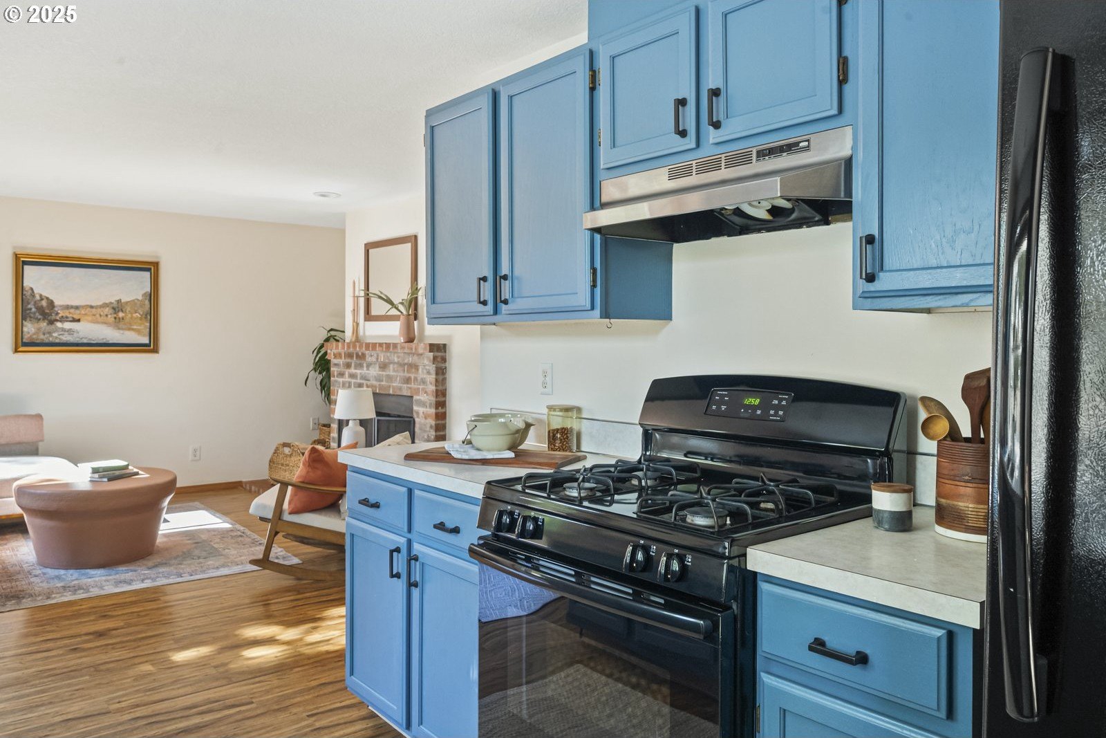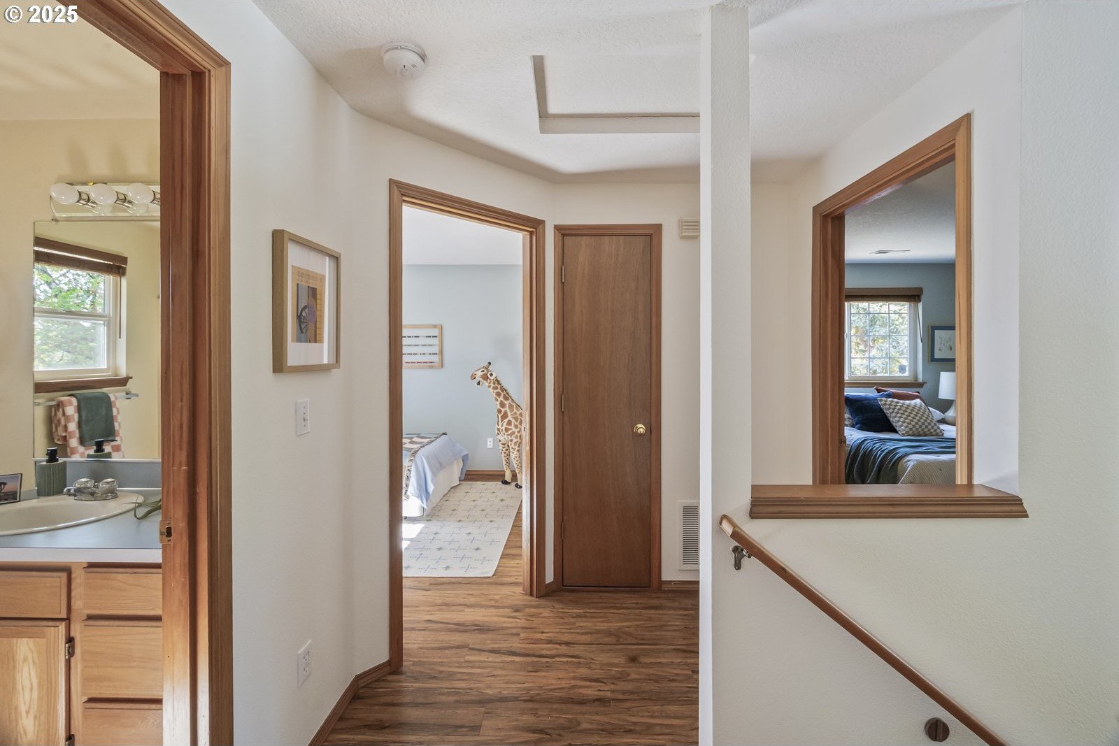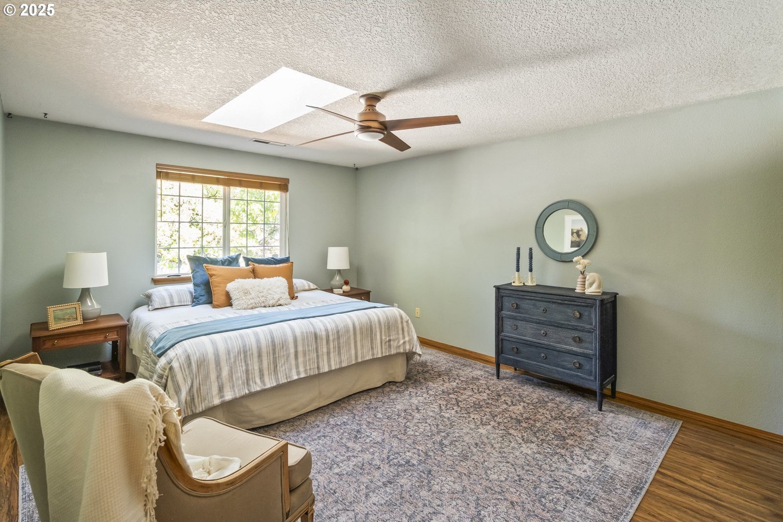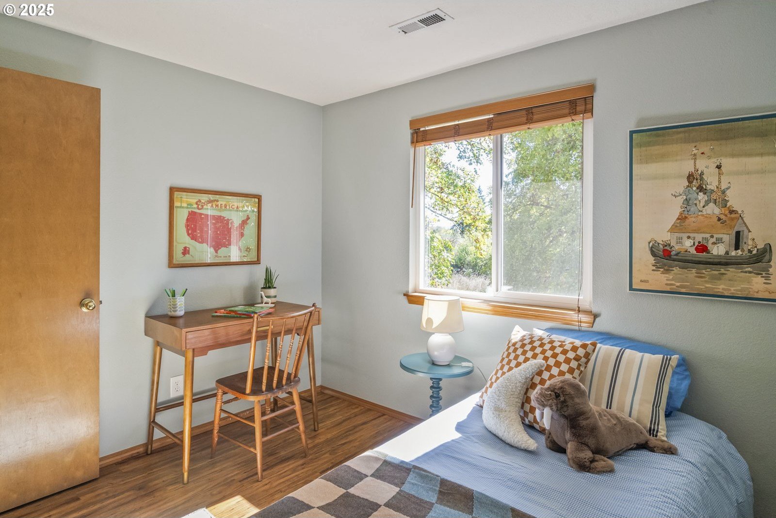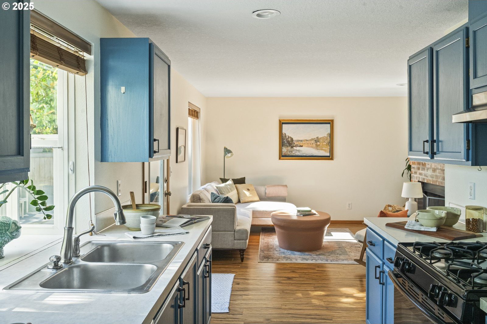This adorable contemporary feels like your own urban sanctuary, with just the right mix of charm and updates! Surrounded by trees and set back from the road, enjoy dappled sunlight streaming in through the windows and beautiful, peaceful outdoor spaces on all sides. Inside you'll find updated laminate floors, fresh paint throughout, and a refreshed kitchen. The main floor features a family room with fireplace and a half bathroom, in addition to the open living room, dining room, and kitchen. Upstairs are all three bedrooms plus two full bathrooms. The generous primary bedroom boasts a central skylight, ensuite, and a walk-in closet. Storage space and closets galore, plus a two-car garage for all of your projects. All of this tucked into the sweetest pocket, just around the corner from Harney Park, Cartlandia Food Carts, Fred Meyer, Trader Joe's, and tons of retail and transit. [Home Energy Score = 6. HES Report at https://rpt.greenbuildingregistry.com/hes/OR10242429]