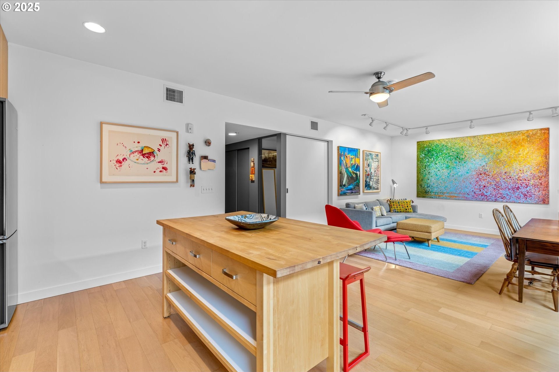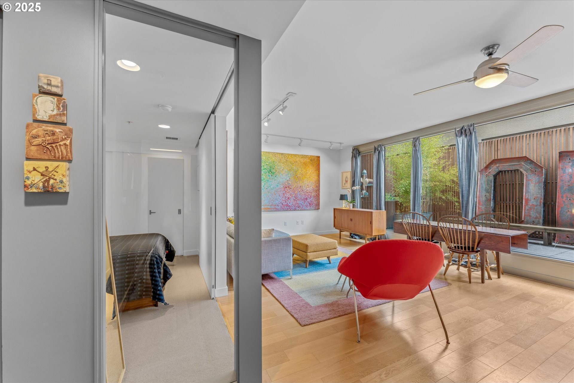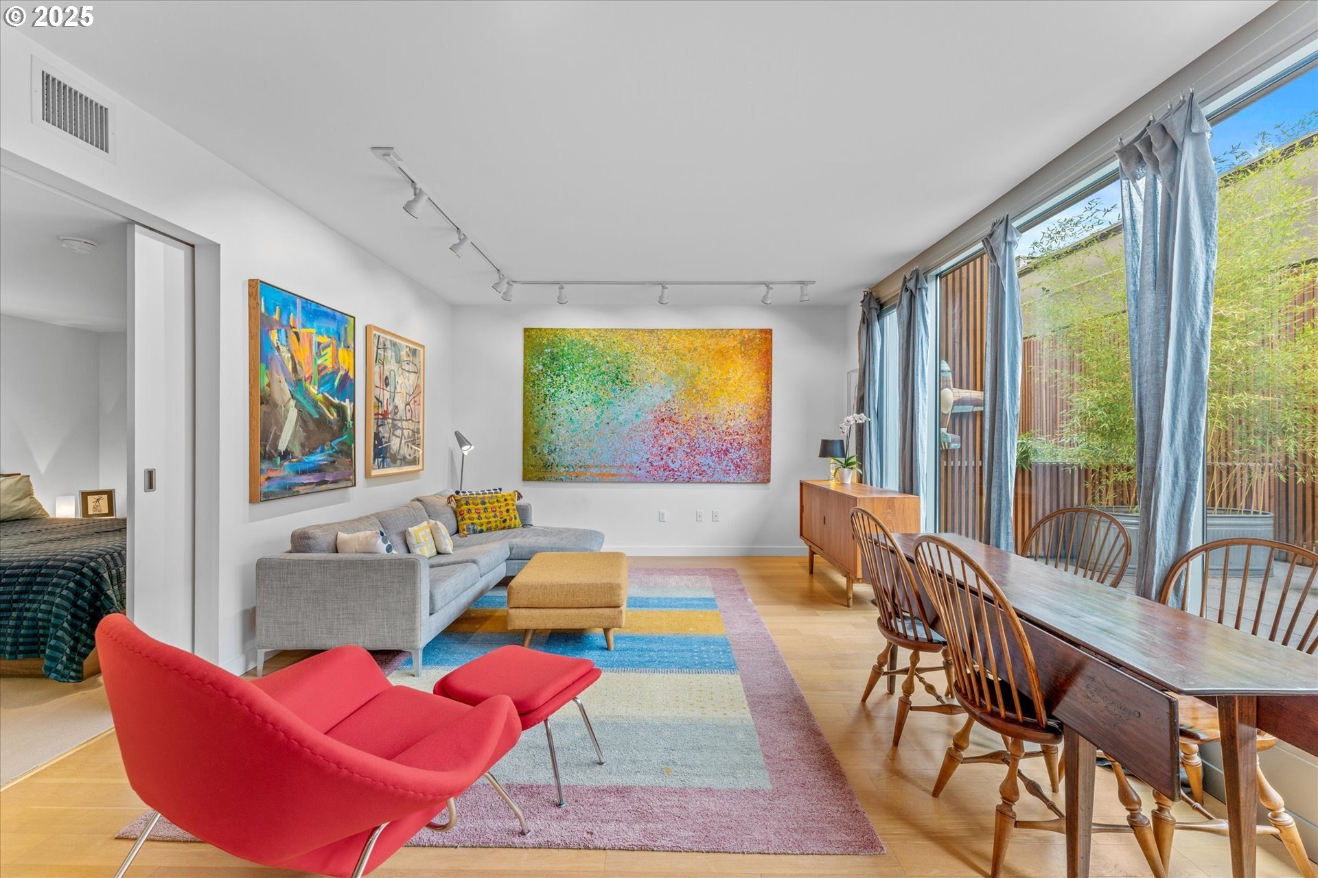 Welcome to your lightly lived in, 1 owner home in the vibrant Kerns neighborhood! Unit 203 offers a unique living experience with a highly coveted 15' X 30' private patio - only 1 of 4 in the building! This comfortable 1 Bedroom/1 Bathroom features high-ceilings with floor-to-ceiling windows, white oak floors & cabinets + a Chef’s Kitchen with pantry & eat-at island. Spacious living spaces & spa like Bathroom with deep soaking tub & tile surround. Tons of extra storage throughout + In-unit washer/dryer. But wait, don’t miss the secure designated parking in the garage + bike storage & your own personal 7' x 8' climate-controlled storage unit in the basement. Rich in history, the Sunrose building was developed by the Wong Family with an eco-friendly design by Holst Architecture. Community driven, small secure complex of 32 modern, hi-efficiency flats are perfectly perched above Portland’s Restaurant Row. Outside your front door you will be greeted with award winning Restaurants, Boutiques, Theater, Whole Foods, Laurelhurst Park & of course Coffee Shops! It is no surprise that it has a Walk Score of 96 & Bike Score of 95 – Use as a pied-a-terre (easy to lock & leave) OR full time living, either way you won’t be disappointed!