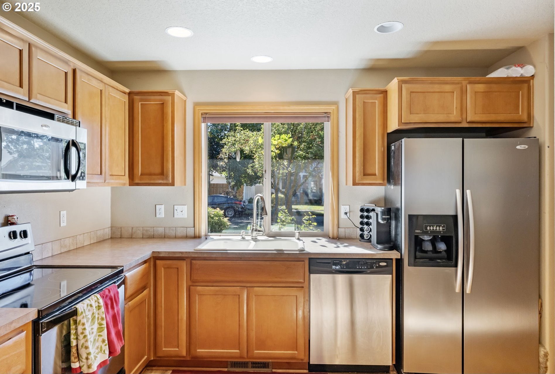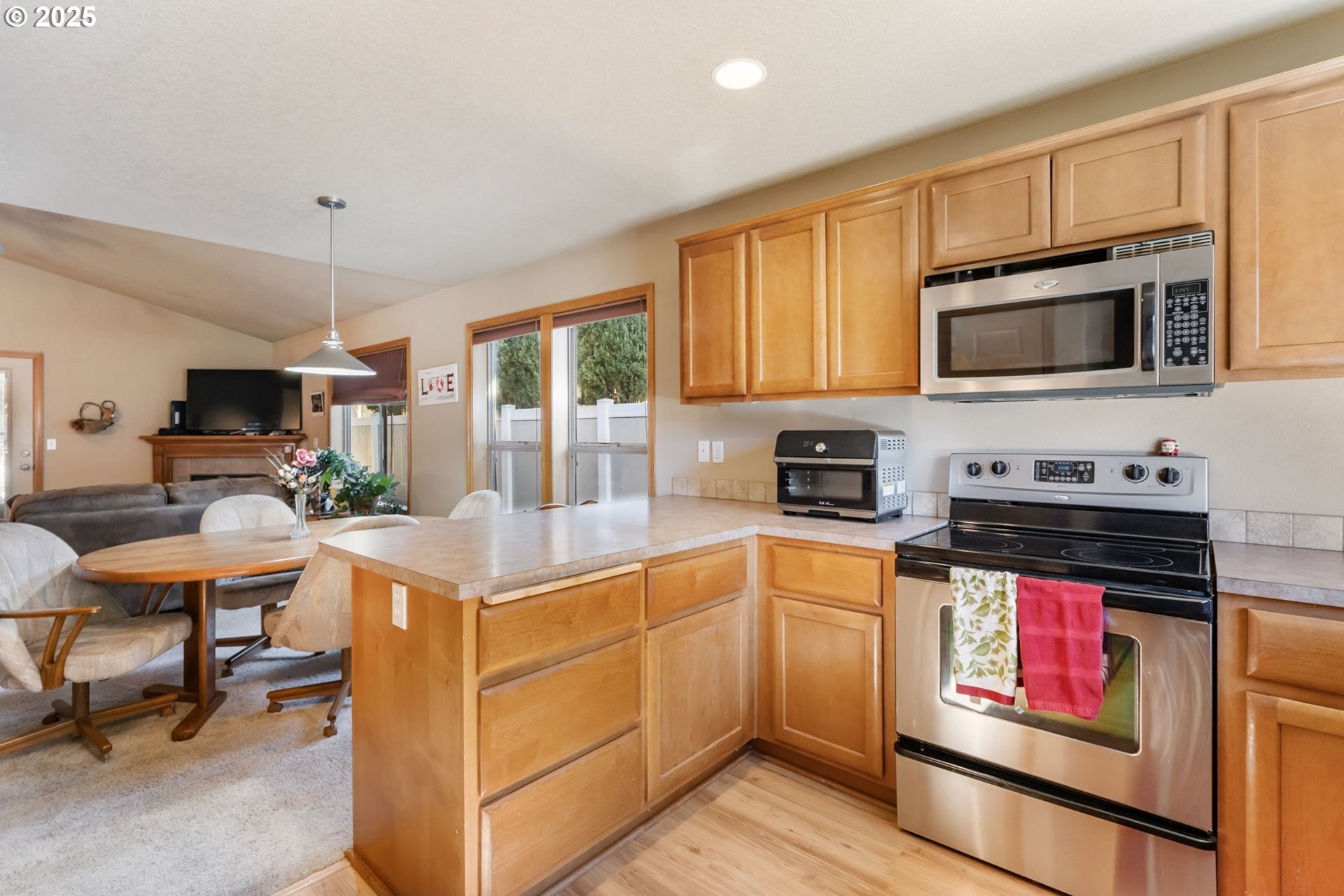 Welcome home to this beautifully maintained 3 bedroom 2 bathroom ranch offering comfort, charm and peace of mind. Step inside to a spacious open-concept great room featuring vaulted ceilings and a gas fireplace, perfect for entertaining or relaxing with family. The kitchen offers stainless steel appliances, an eat-bar and pantry for storage. The generously sized primary suite has high ceilings and a spacious walk-inn closet. This floor plan allows for plenty of natural light! Outside, you'll love the covered patio, creating a peaceful setting in a wonderful, quiet neighborhood with great walkability. Enjoy the confidence of a pre-inspected home with a brand new HVAC system, ensuring comfort and efficiency for years to come. This home has been lovingly cared for and is truly move-in ready. Don't miss your chance to own this gem!