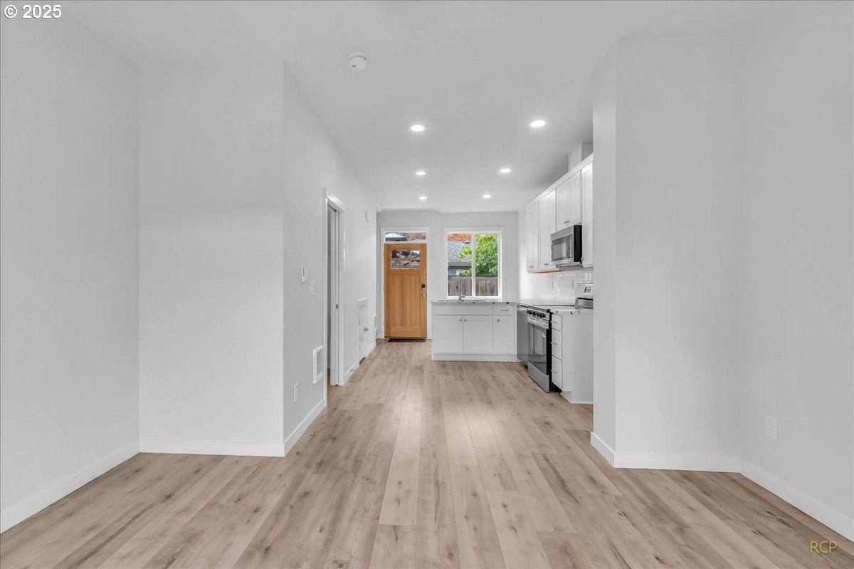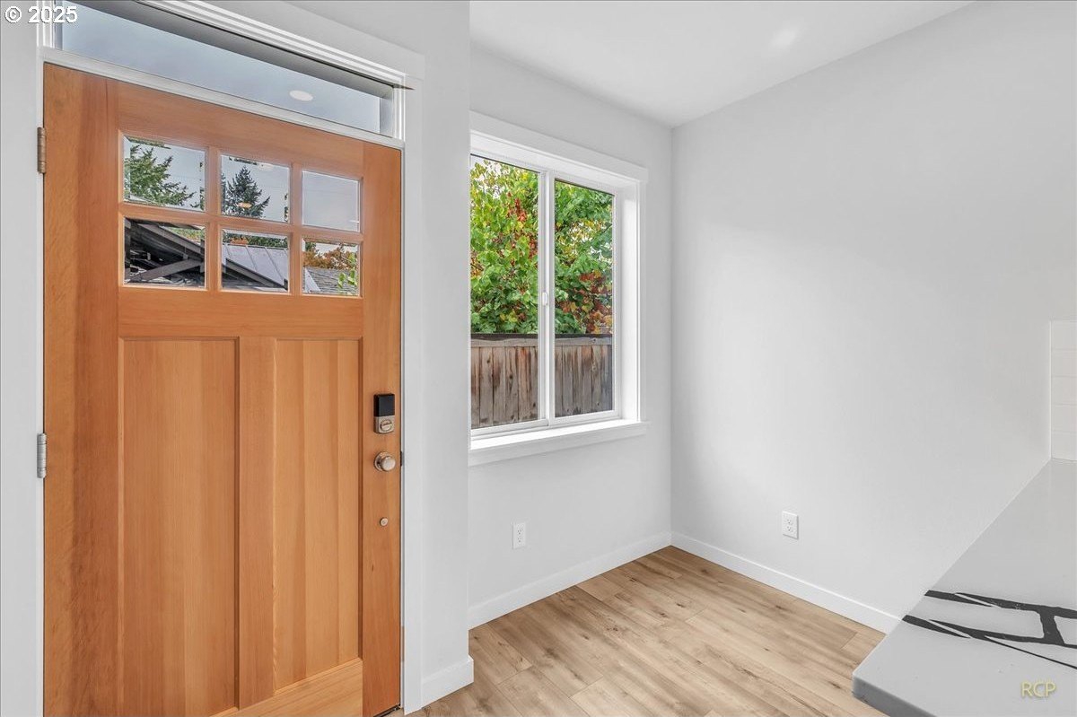Welcome home to this brand new construction just one block from Pier Park an 85 acre green oasis with trails, playgrounds, sport courts, disc golf and many other amenities for all to enjoy! Inside you'll find a bright, open-concept floor plan designed for modern living. The kitchen features Quartz countertops, stainless steel appliances, a breakfast bar and a cozy dining nook - perfect for morning coffee or entertaining friends! The living room is spacious and flexible w/ a large sliding door that opens to your private patio for outdoor relaxation and a main level bath that adds everyday convenience. Upstairs, you'll find a comfortable primary suite w/ its own bathroom, plus another well-sized bedroom and full bath and a utility closet with a stacked washer/dryer units already installed. Enjoy low-maintenance, energy & financial efficient living in a walkable neighborhood close to parks, schools and shops. No HOA. The listed price is subject to Buyer qualifying for City of Portland SDC Waiver Program (Income limit of $148,920 and Owner-Occupied).