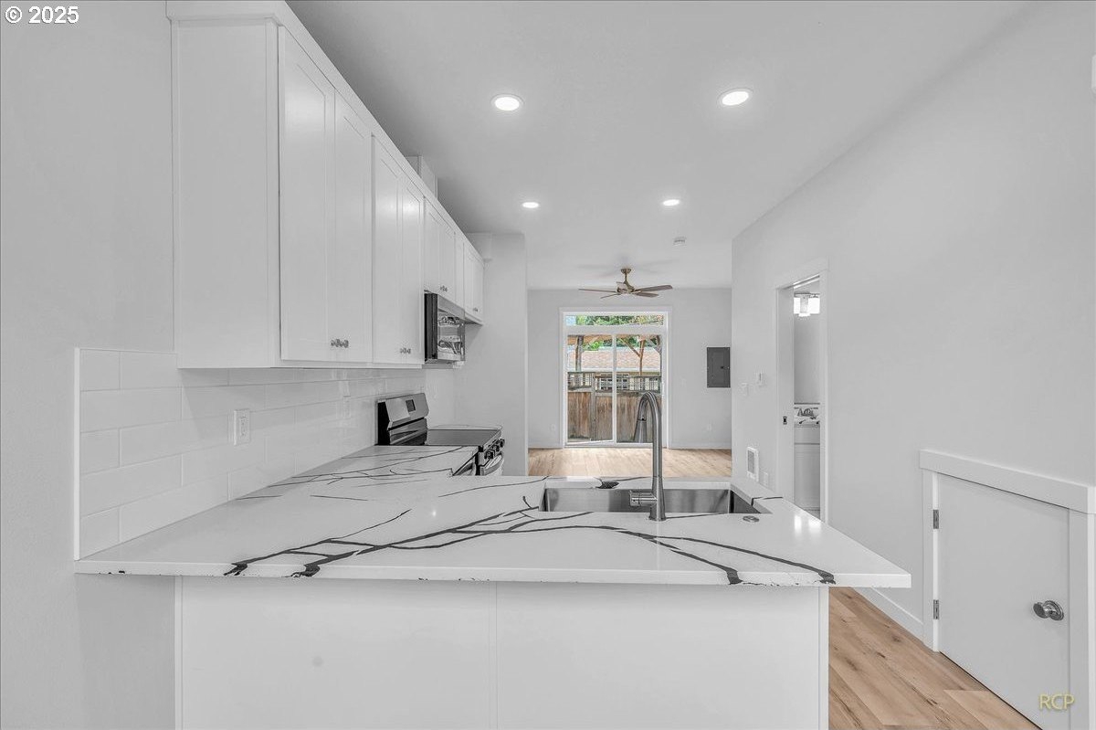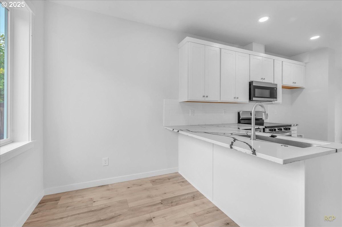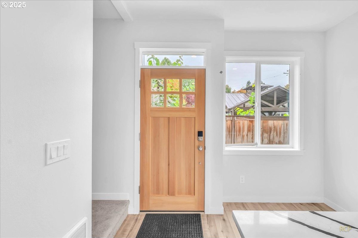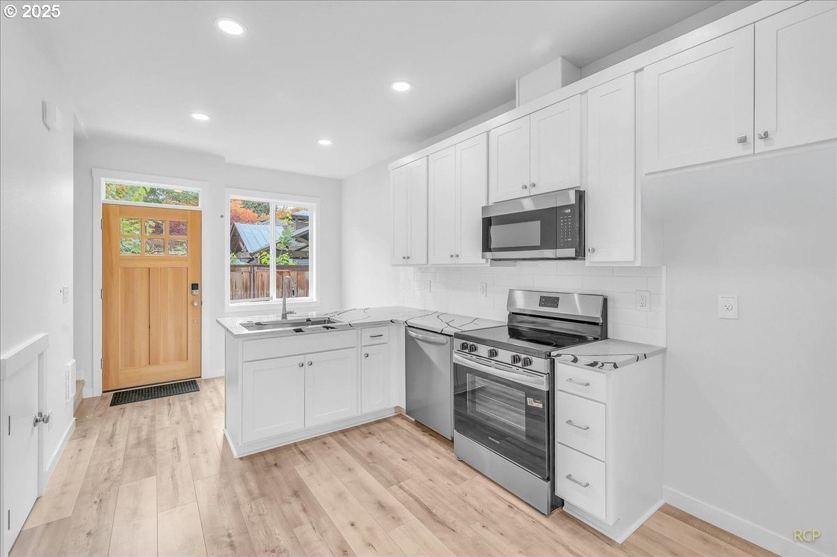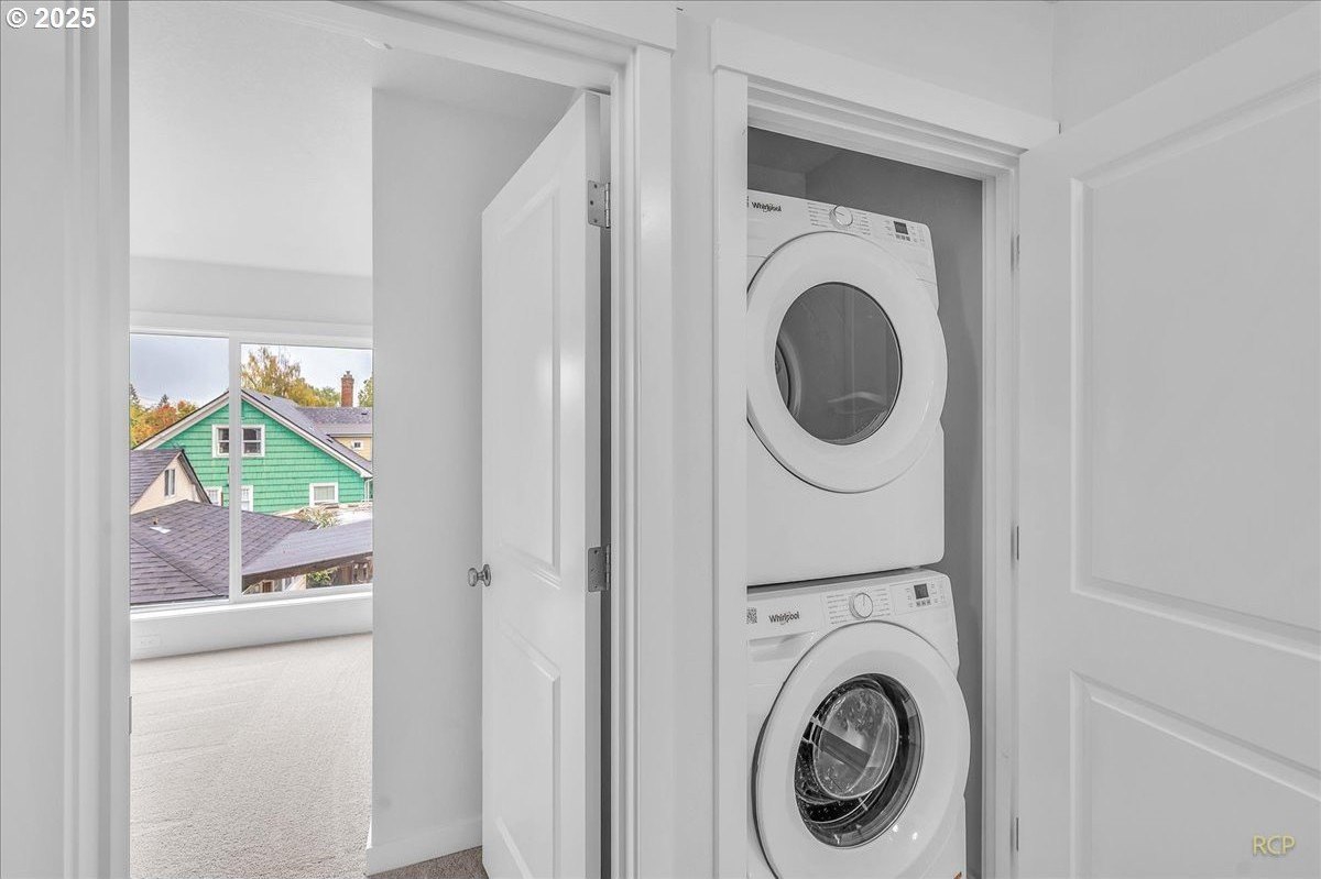Welcome home to this brand new construction just one block from Pier Park an 85 acre green oasis with trails, playgrounds, sport courts, disc golf and many other amenities for all to enjoy! Inside you'll find a bright, open-concept floor plan designed for modern living. The kitchen features Quartz countertops,stainless steel appliances, a breakfast bar and a cozy dining nook - perfect for morning coffee or entertaining friends! The living room is spacious and flexible w/ a large sliding door that opens to your private patio for outdoor relaxation and a main level bath that adds everyday convenience. Upstairs, you'll find a comfortable primary suite w/ its own bathroom, plus another well-sized bedroom and full bath and a utility closet with a stacked washer/dryer units already installed. Enjoy low-maintenance, energy & financial efficient living in a walkable neighborhood close to parks, schools and shops. No HOA. The listed price issubject to Buyer qualifying for City of Portland SDC Waiver Program (Income limit of $148,920 and Owner-Occupied).