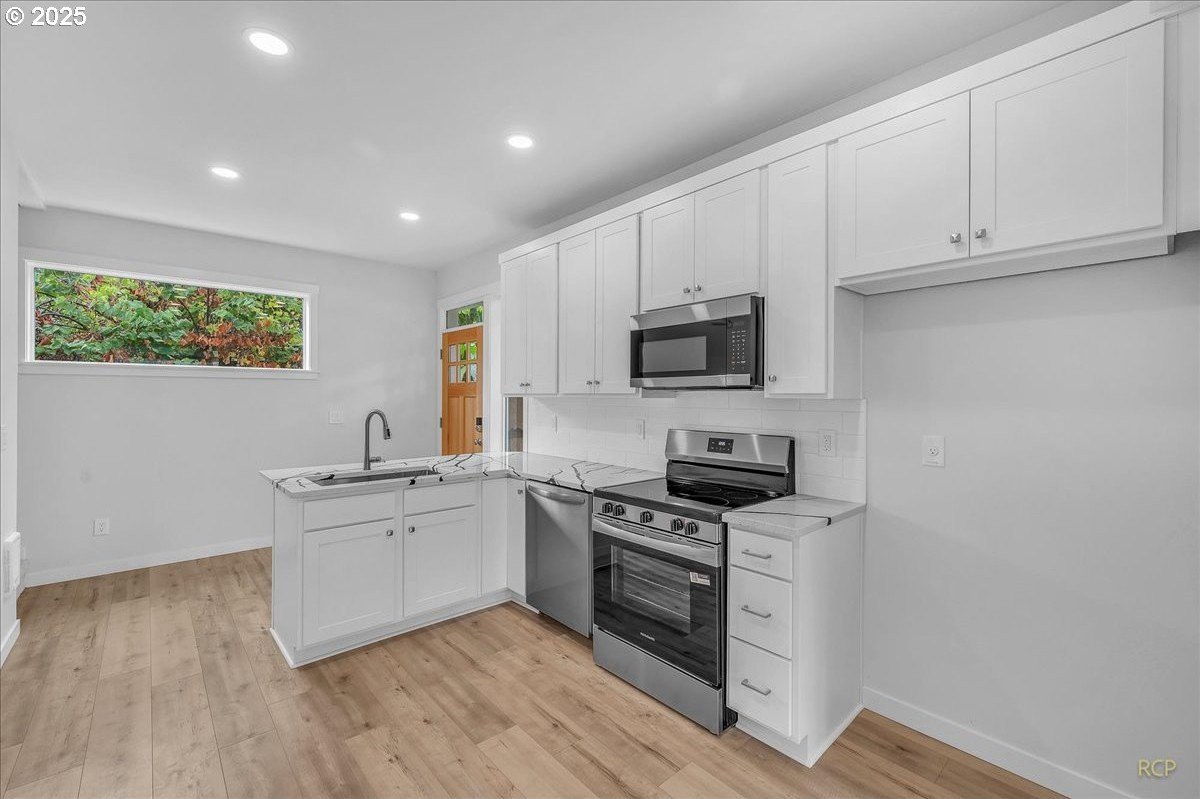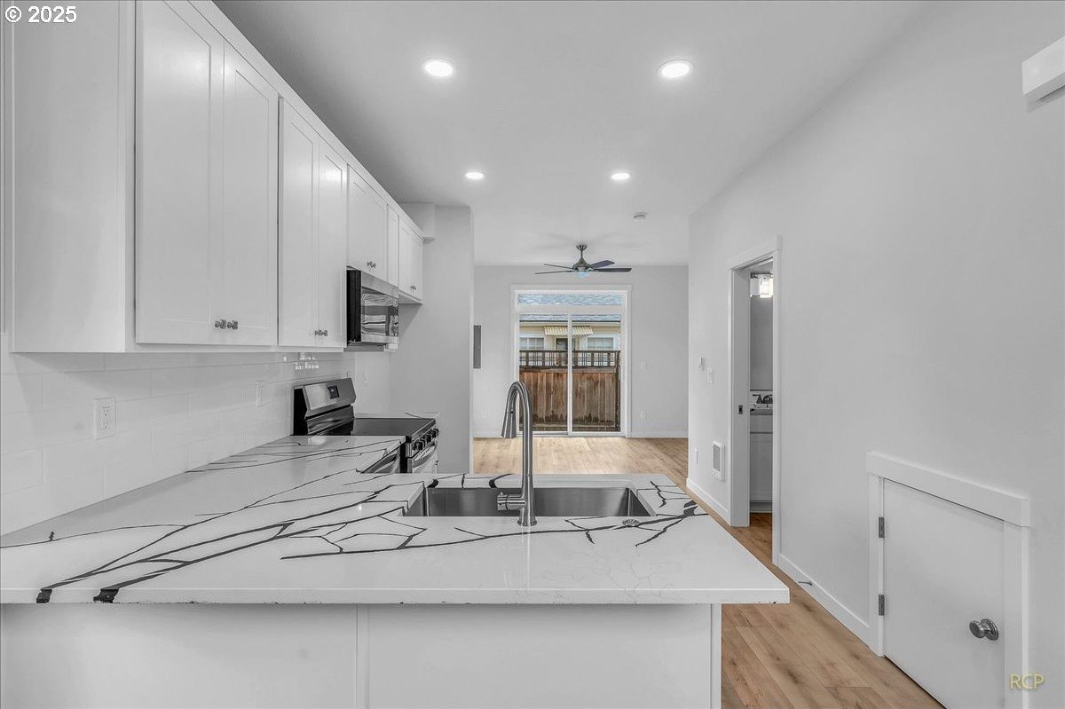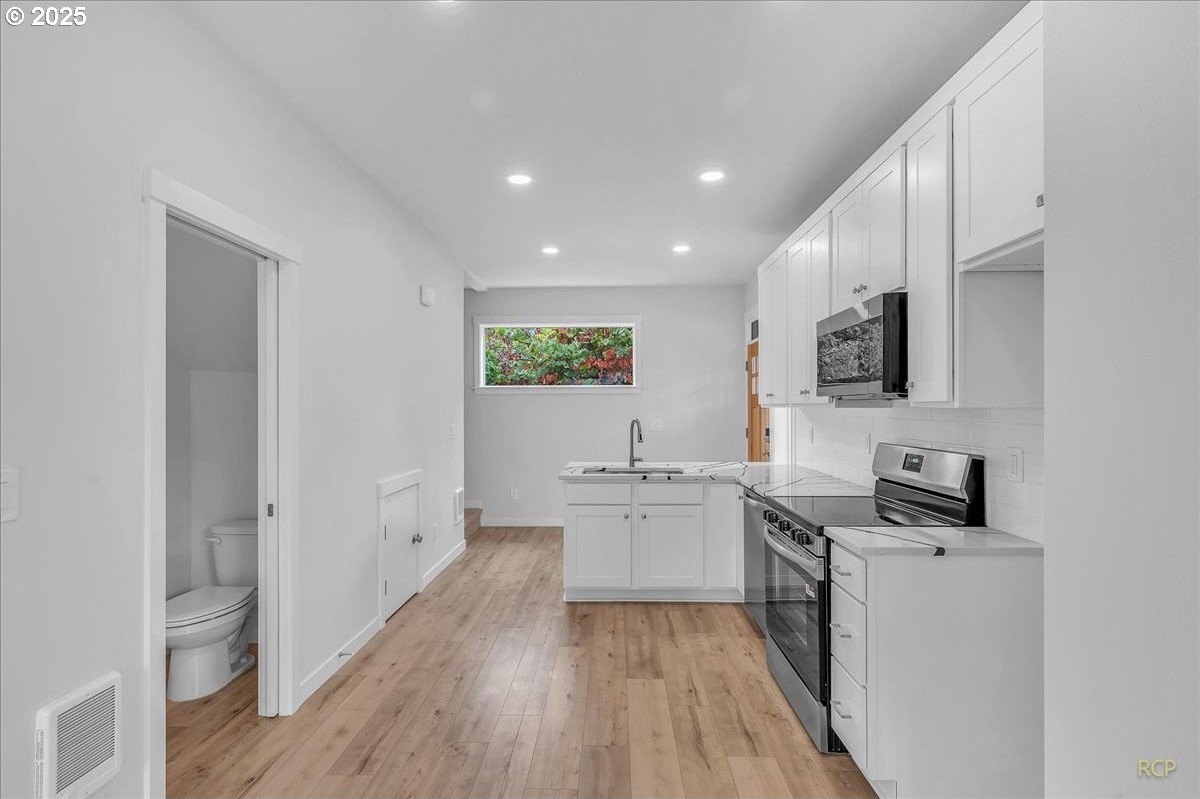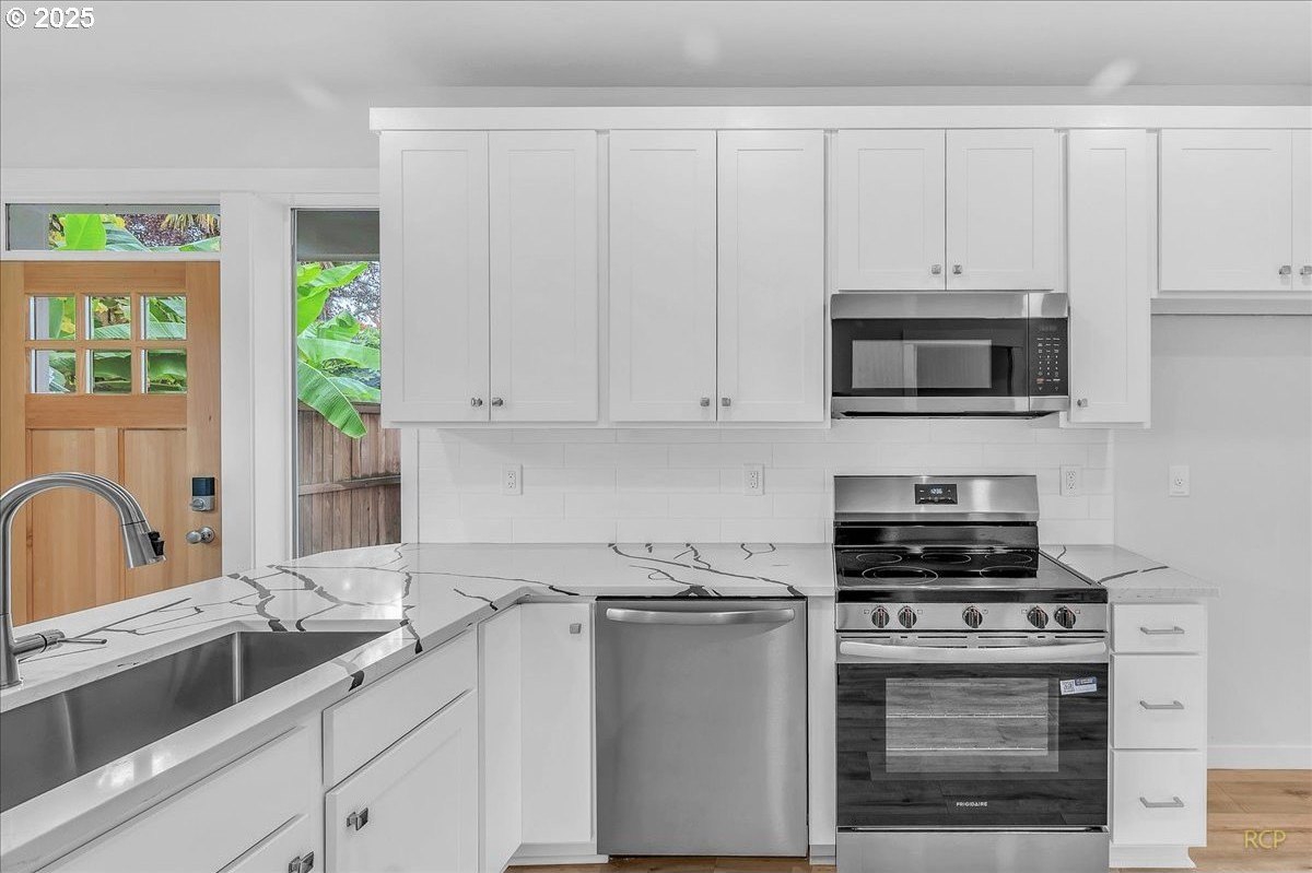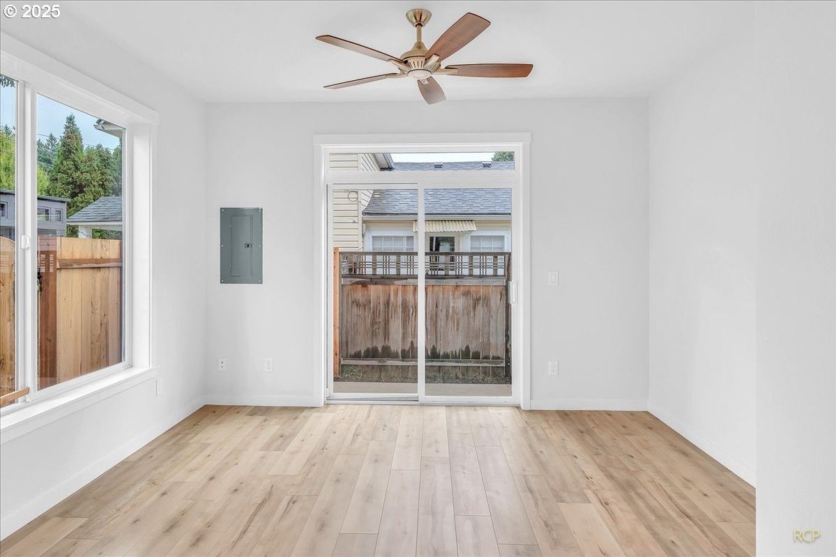 Welcome home to this brand new construction just one block from Pier Park an 85 acre green oasis with trails, playgrounds, sport courts, disc golf and many other amenities for all to enjoy! Inside you'll find a bright, open-concept floor plan designed for modern living. The kitchen features Quartz countertops,stainless steel appliances, a breakfast bar and a cozy dining nook - perfect for morning coffee or entertaining friends! The living room is spacious and flexible w/ a large sliding door that opens to your private patio for outdoor relaxation and a main level bath that adds everyday convenience. Upstairs, you'll find acomfortable primary suite w/ its own bathroom, plus another well-sized bedroom and full bath and a utility closet with a stacked washer/dryer units already installed. Enjoy a yard w/ shed. Low-maintenance, energy & financial efficient living in a walkable neighborhood close to parks, schools and shops. No HOA. The listed price issubject to Buyer qualifying for City of Portland SDC Waiver Program (Income limit of $148,920 and Owner-Occupied).