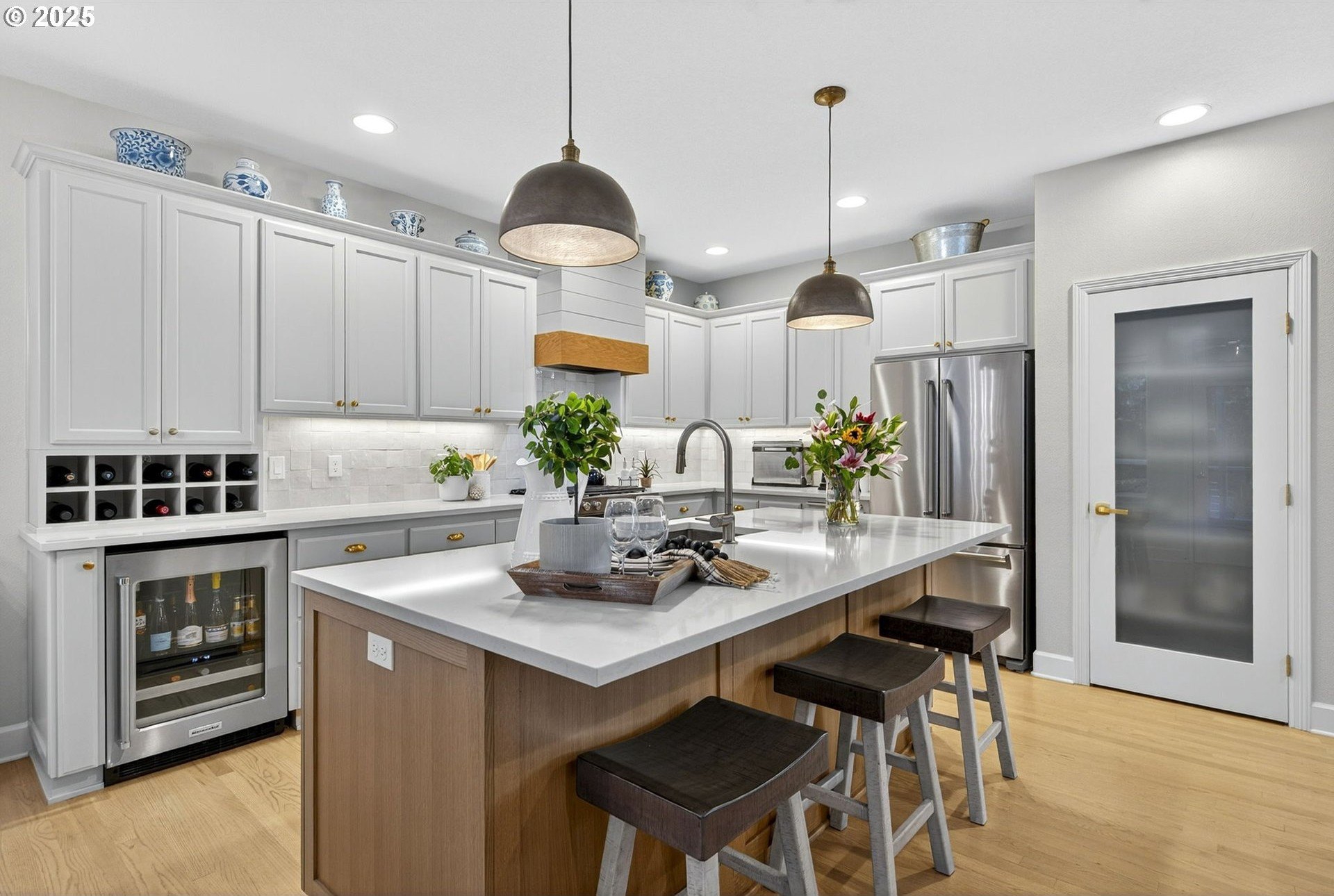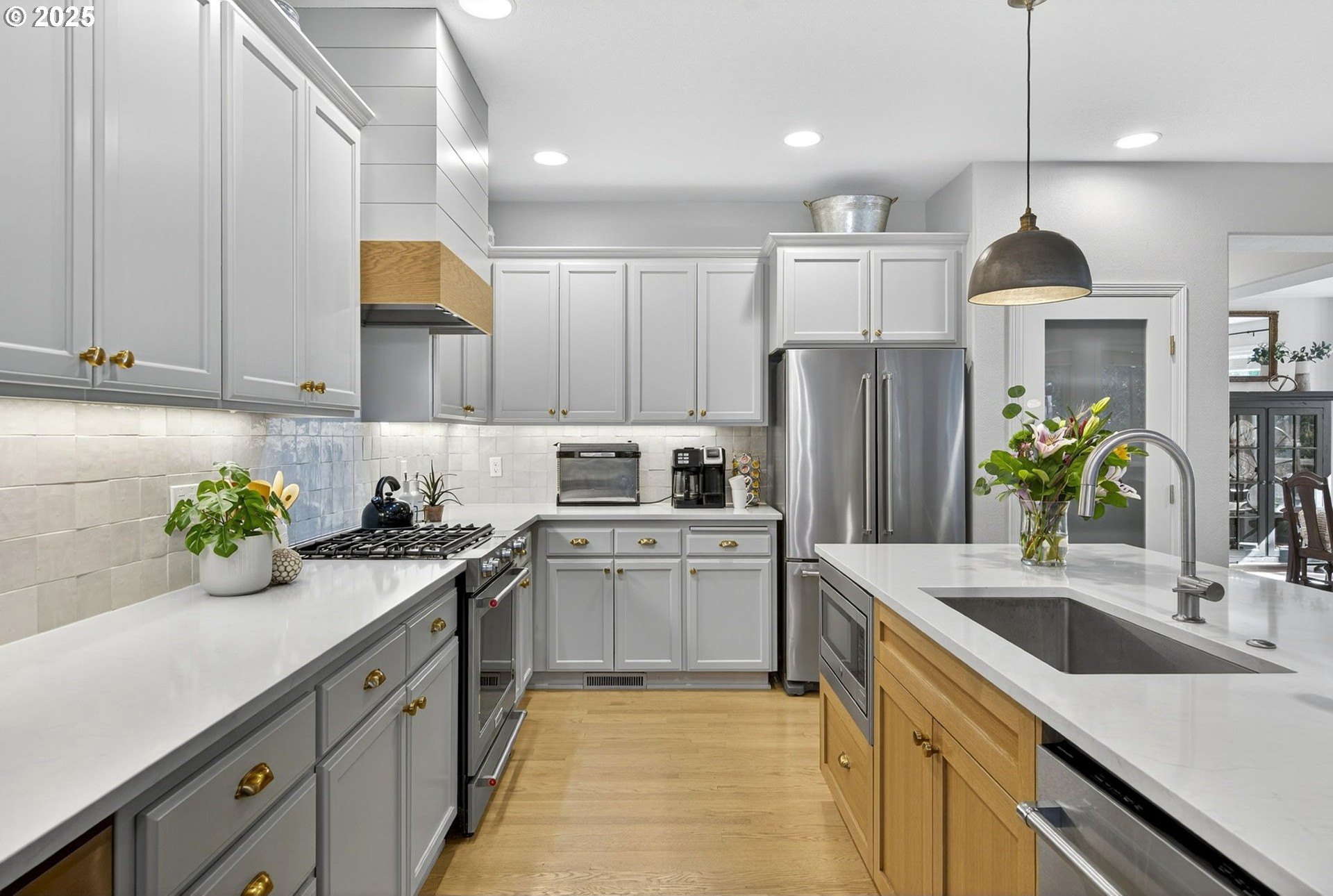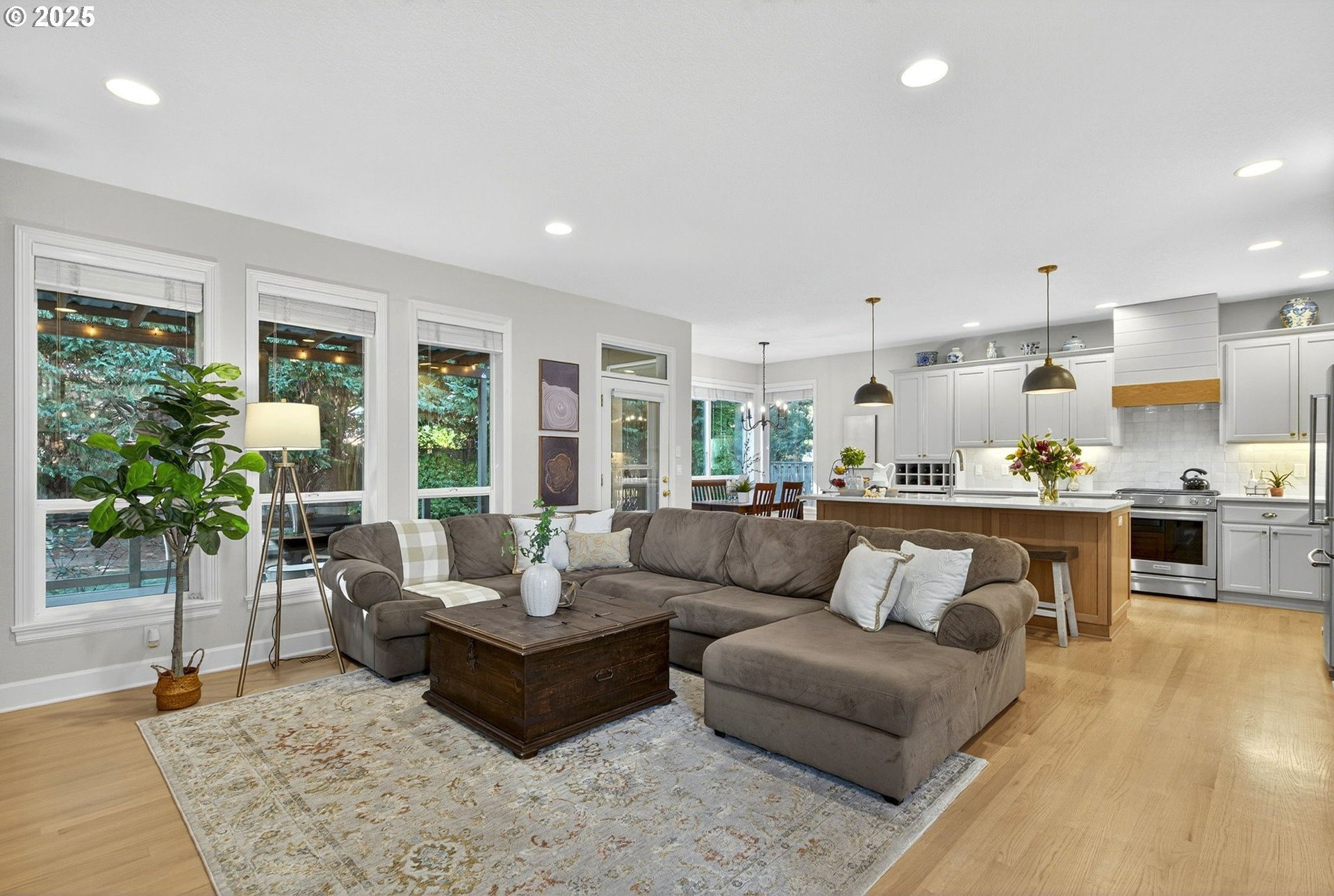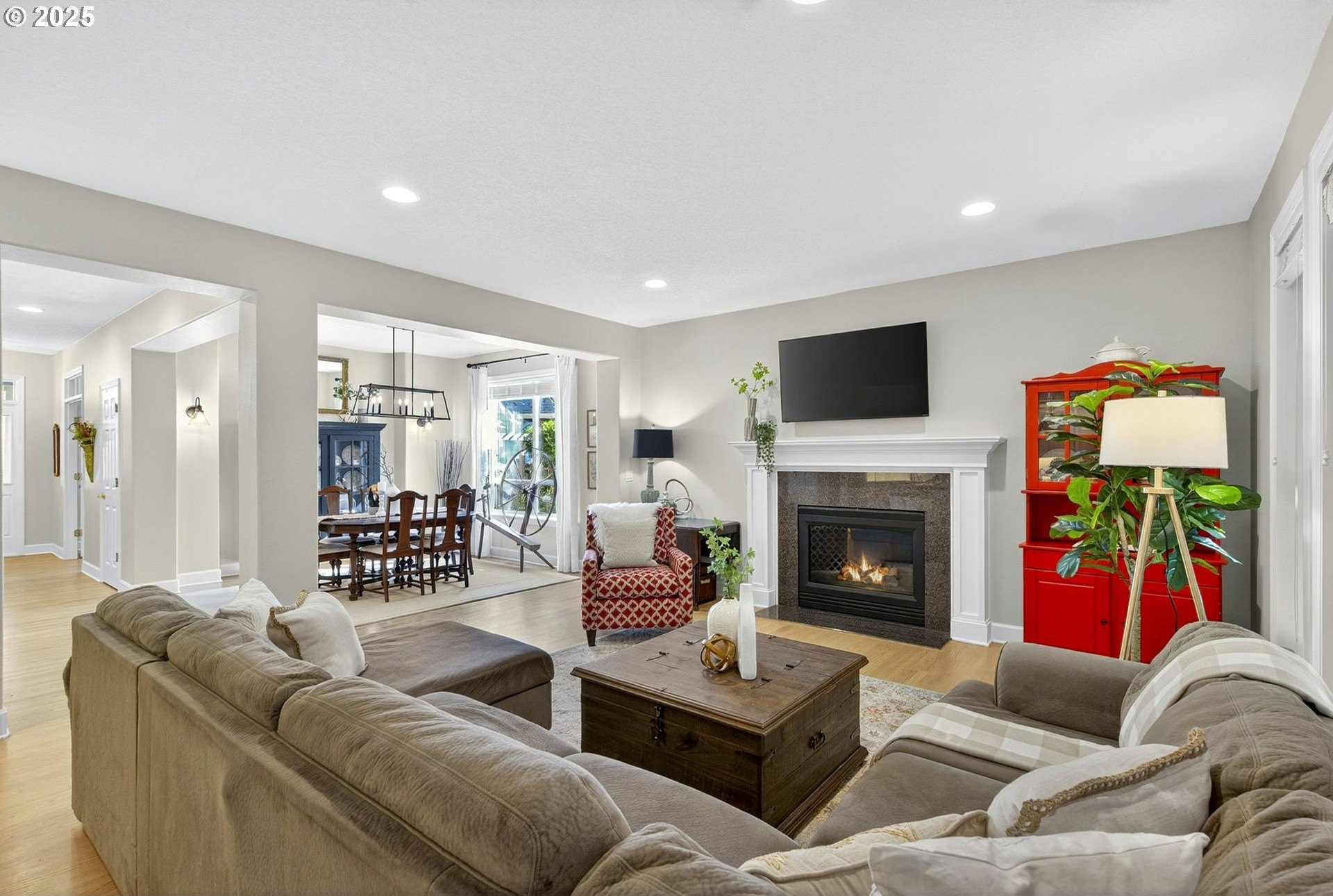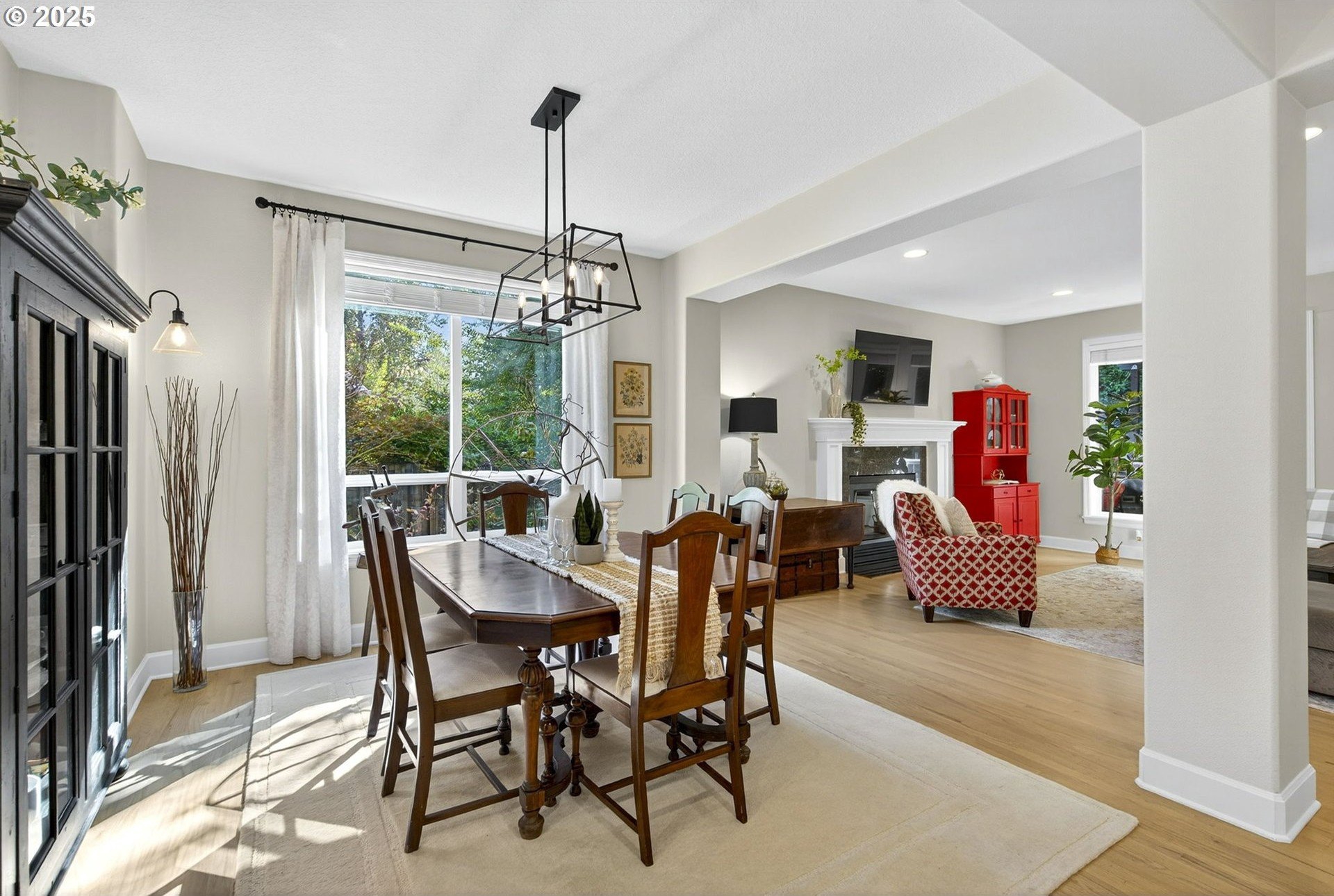 Open Sat 10/18 @ 1-3pm and Sun 10/19 @ 11am-1pm. Beautifully updated home in Sherwood’s desirable Woodhaven neighborhood! Prime location on a quiet street just 2 homes from a trailhead connecting miles of paved recreation paths, close to Old Town’s restaurants and amenities. This spacious home offers 4 bedrooms upstairs (bdrm #4 is staged as a bonus room with 3 large storage areas!) and a main-level office with a helpful storage closet. The open floor plan includes a formal dining area, living room with gas fireplace, large eat-at island, breakfast nook and gourmet kitchen! Beautiful quartz counter tops, custom backsplash, SS appliances including under counter lighting & BI-under counter microwave & wine fridge. Hardwood floors throughout the entire main level. Vaulted Primary Suite has WI-closet, linen closet, double sinks & gorgeous tiled WI-shower! Laundry room with sink is conveniently located upstairs as well. Enjoy the private backyard with a brand new (2025) covered patio that can be utilized all year round! Additional storage area behind the side gate that leads to the 3 car tandem garage & workbench. Established fruit plants include blueberries, strawberries, apple & plum trees. NEW in 2021: Cabinets, quartz counters, appliances, bathroom updates, interior paint & roof! NEW in 2023: Water heater, heat pump, and dehumidifier. Plumbed for central vac. Highly rated school district. Just a few blocks from the YMCA & new pedestrian bridge! Move-in ready & meticulously maintained!