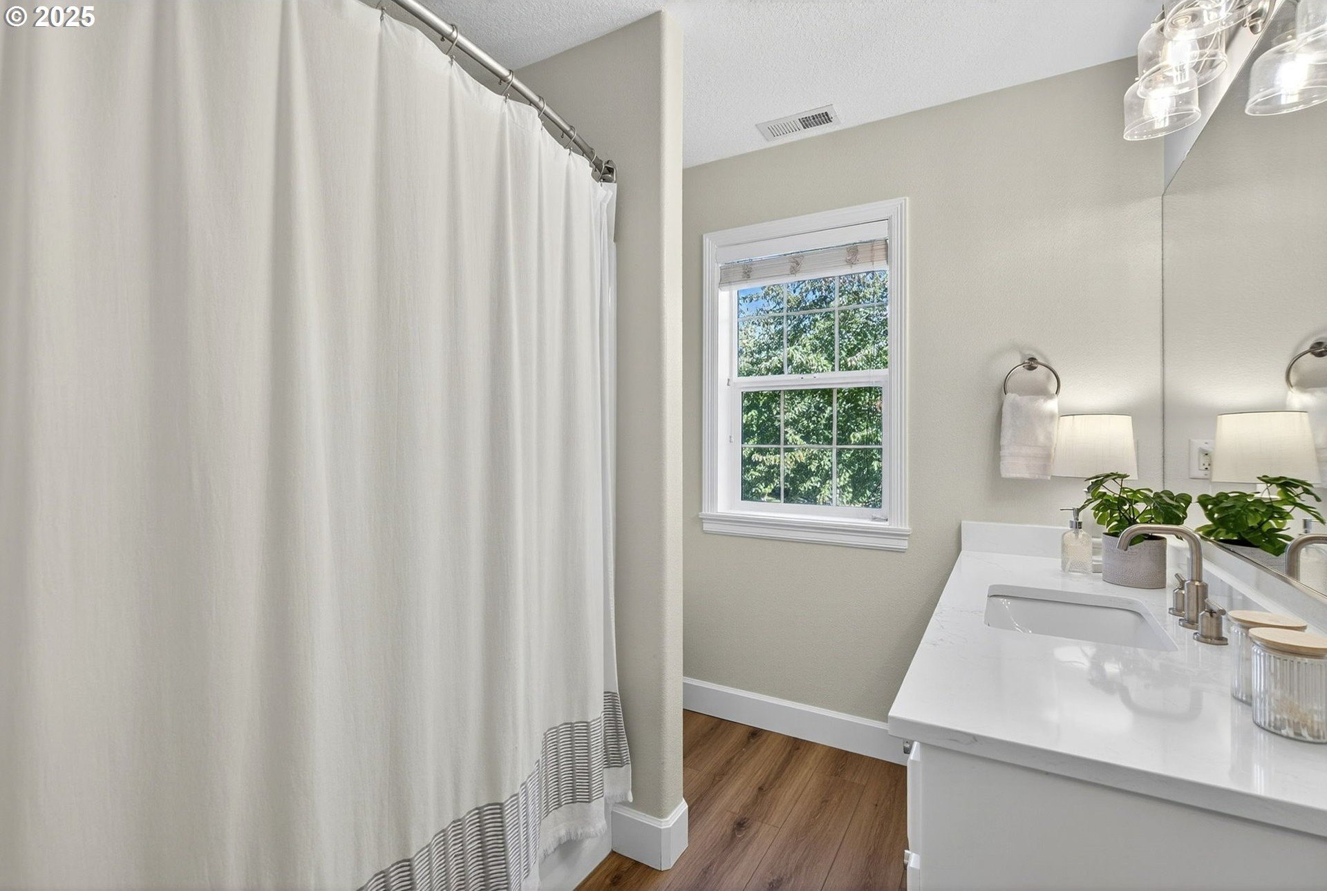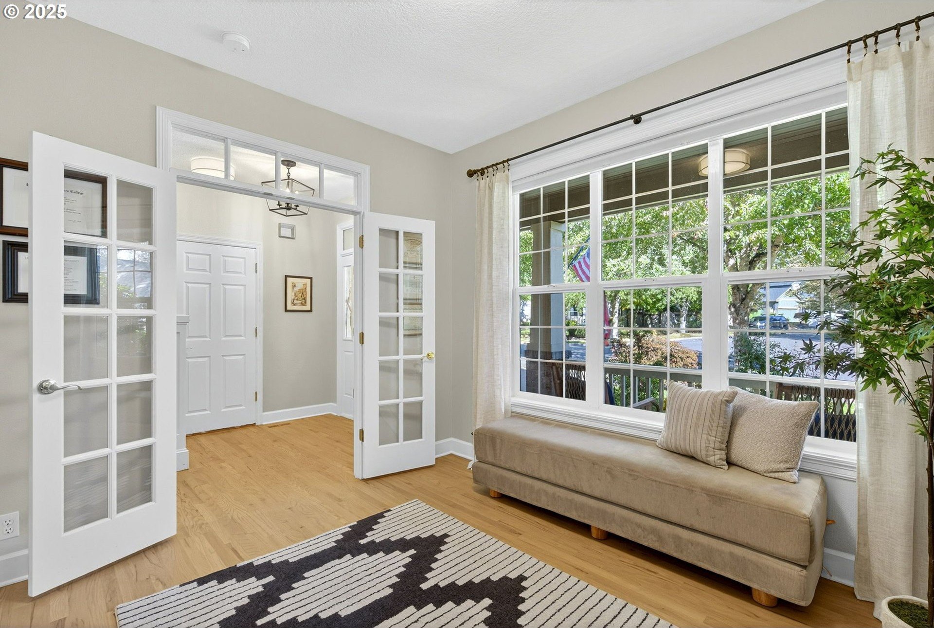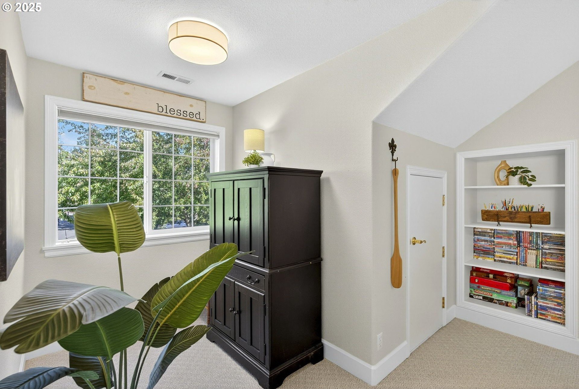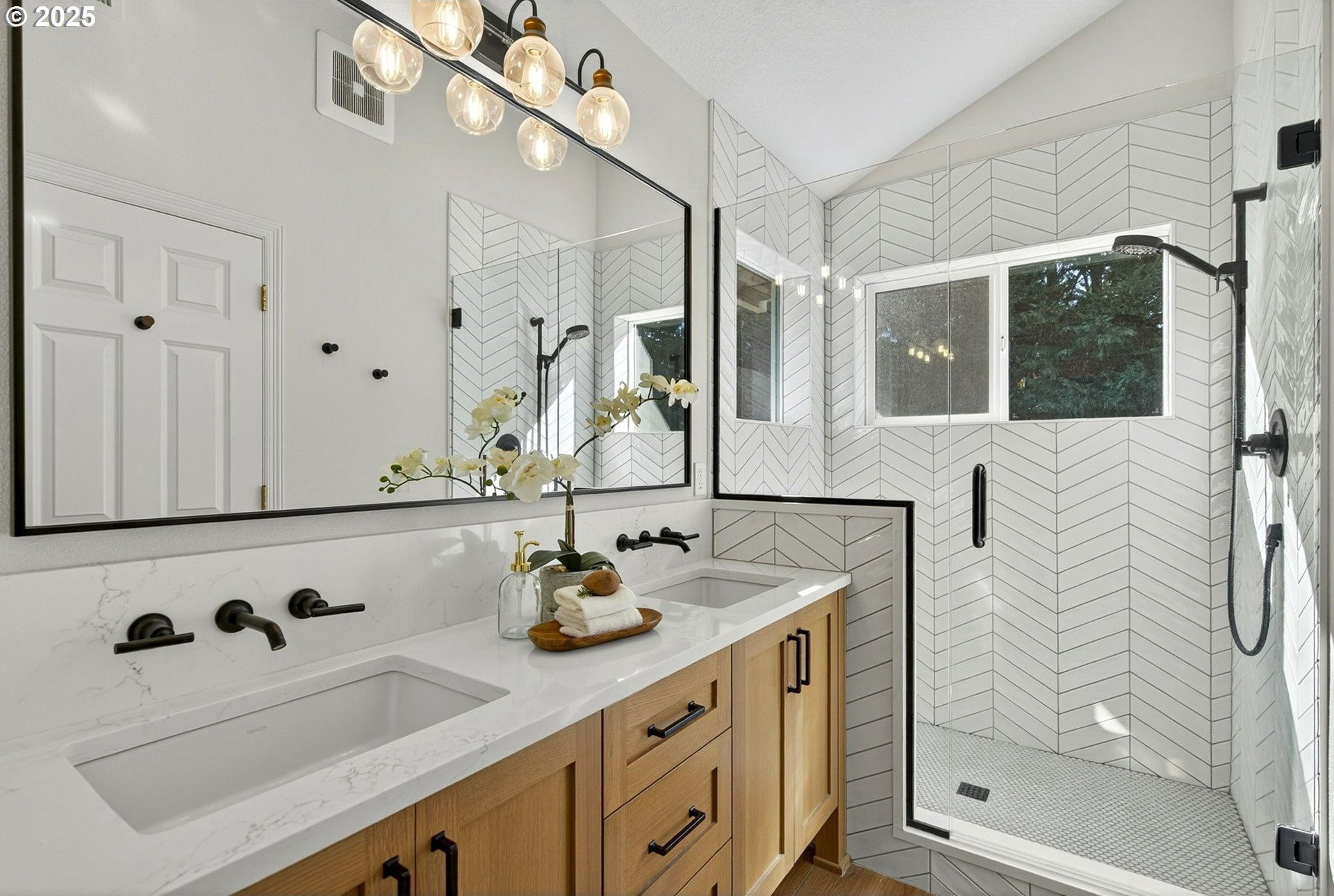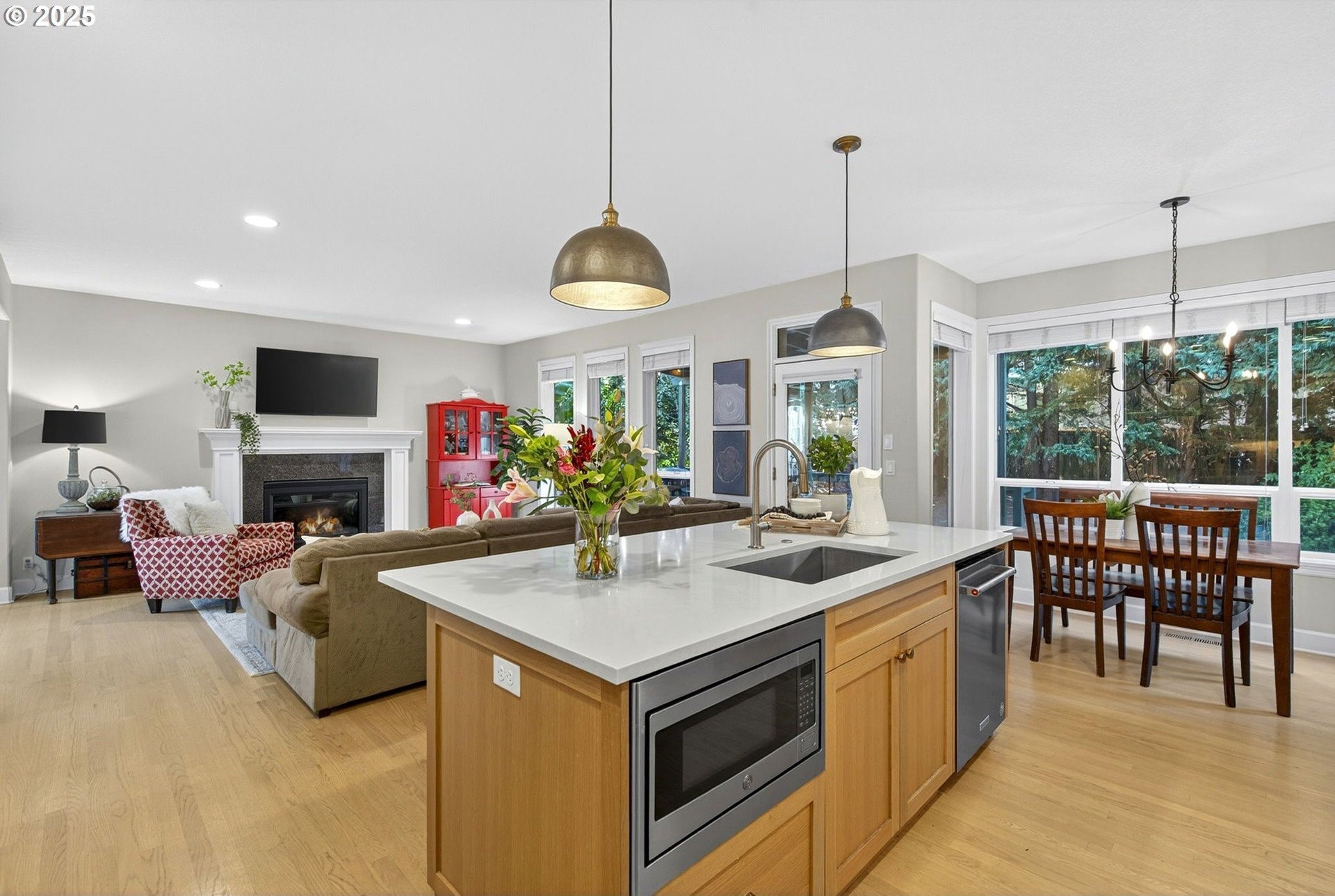 Open Sat 10/18 @ 1-3pm and Sun 10/19 @ 11am-1pm. Beautifully updated home in Sherwood’s desirable Woodhaven neighborhood! Prime location on a quiet street just 2 homes from a trailhead connecting miles of paved recreation paths, close to Old Town’s restaurants and amenities. This spacious home offers 4 bedrooms upstairs (bdrm #4 is staged as a bonus room with 3 large storage areas!) and a main-level office with a helpful storage closet. The open floor plan includes a formal dining area, living room with gas fireplace, large eat-at island, breakfast nook and gourmet kitchen! Beautiful quartz counter tops, custom backsplash, SS appliances including under counter lighting & BI-under counter microwave & wine fridge. Hardwood floors throughout the entire main level. Vaulted Primary Suite has WI-closet, linen closet, double sinks & gorgeous tiled WI-shower! Laundry room with sink is conveniently located upstairs as well. Enjoy the private backyard with a brand new (2025) covered patio that can be utilized all year round! Additional storage area behind the side gate that leads to the 3 car tandem garage & workbench. Established fruit plants include blueberries, strawberries, apple & plum trees. NEW in 2021: Cabinets, quartz counters, appliances, bathroom updates, interior paint & roof! NEW in 2023: Water heater, heat pump, and dehumidifier. Plumbed for central vac. Highly rated school district. Just a few blocks from the YMCA & new pedestrian bridge! Move-in ready & meticulously maintained!