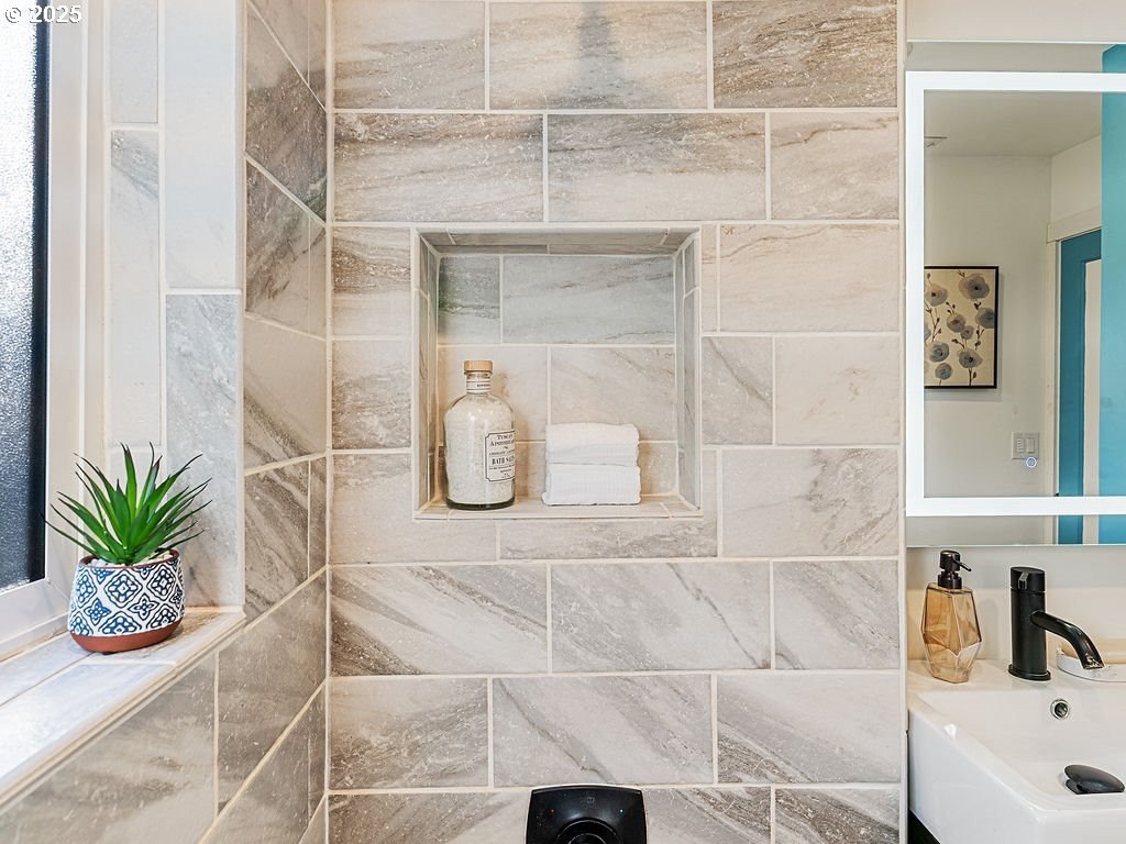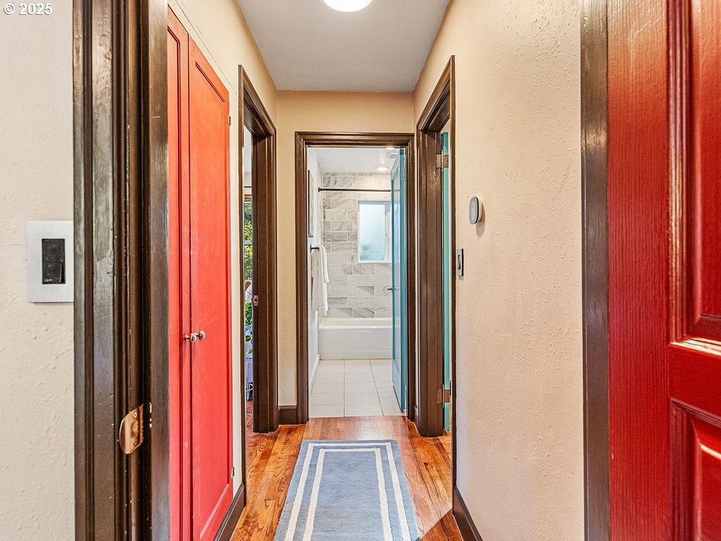 Just around the corner from Multnomah Village sits this sweet abode that will have your heart from the moment you step inside. Light, bright and cheerful throughout with spacious living room adorned with gorgeous hardwood floors and cozy woodburning fireplace, generous kitchen and dining space, and a remodeled bathroom shared by two generous bedrooms with walk-in closet. Whether work-from-home or extra room to spread out, downstairs you will find the perfect canvas to let your imagination run wild. Focus on the fun part of making it your own, while enjoying extra peace of mind with a newer roof, furnace, AC, water heater, downstairs mini-split, upgraded electrical and plumbing and full earthquake retrofit. Step outside to a large covered patio surrounded by a fully-fenced yard complete with raised garden beds and mature kiwi vines just about ready to harvest, enjoy and share. Quiet inside, yet ideally located commuter's paradise with public transit and a long stretch of the new awesome walking and biking corridor just outside your door. You will love being so close to popular amenities, shopping, dining, coffee, specialty grocers, parks, trails and so much more. Find yourself here! [Home Energy Score = 3. HES Report at https://rpt.greenbuildingregistry.com/hes/OR10143415]