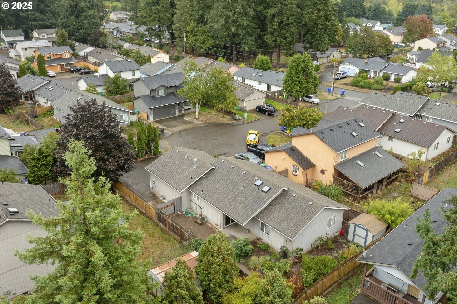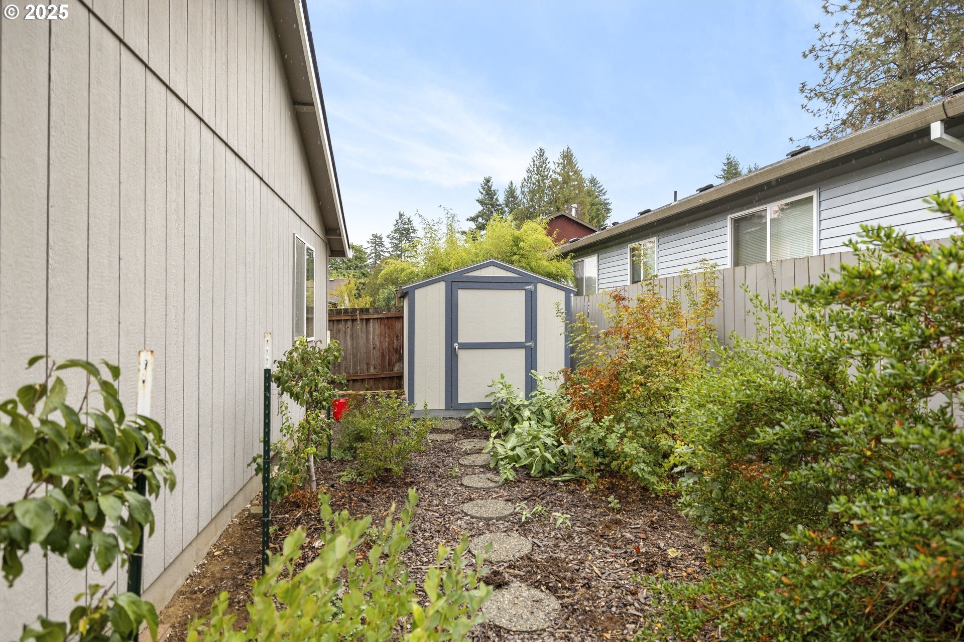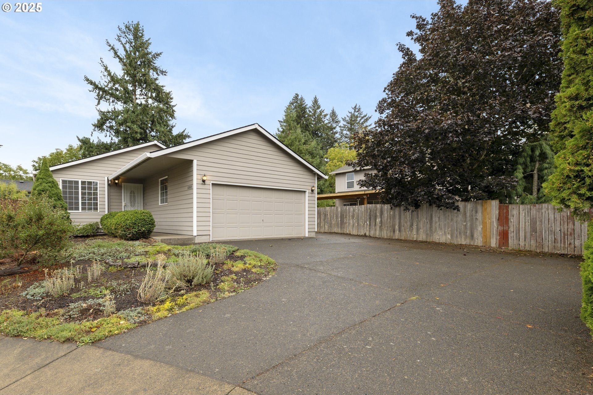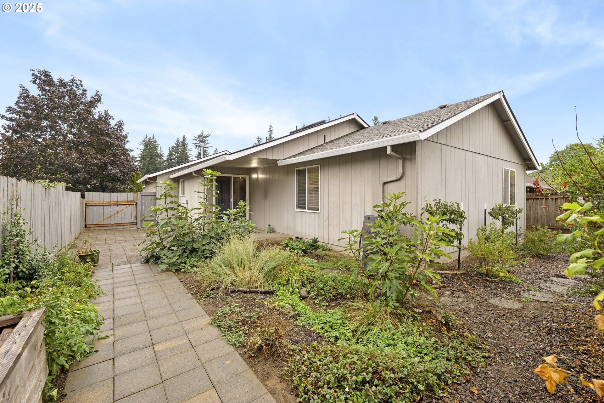 Open this Sunday 12-2pm! Tucked away in a cul-de-sac, this beautifully maintained one-level home is packed with charm and updates throughout. The spacious, fenced lot is a gardener’s dream, featuring raised garden beds, a thriving pollinator garden with rain barrel irrigation, and a Tuff Shed for all your tools. Step inside to discover brand new natural hardwood floors with 25 year warranty, vaulted ceilings, generously sized primary suite, and large open living spaces anchored by a cozy gas fireplace. The bright kitchen offers updated appliances and plenty of counter space. Other features include a new hot water heater, smart thermostat, skylights, walk-in shower, and regularly serviced systems. Lots of parking options along with space for an RV. This property is exceptionally well-maintained and offers a quiet yet convenient location. [Home Energy Score = 7. HES Report at https://rpt.greenbuildingregistry.com/hes/OR10142050]