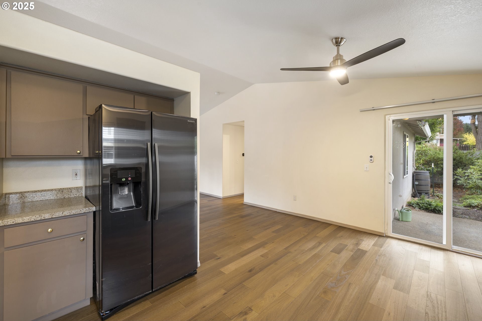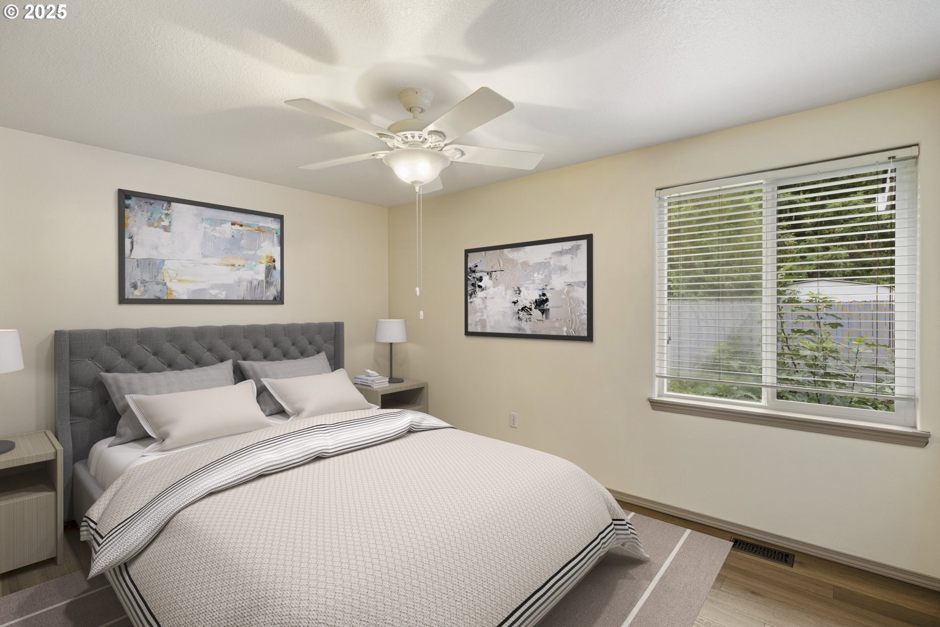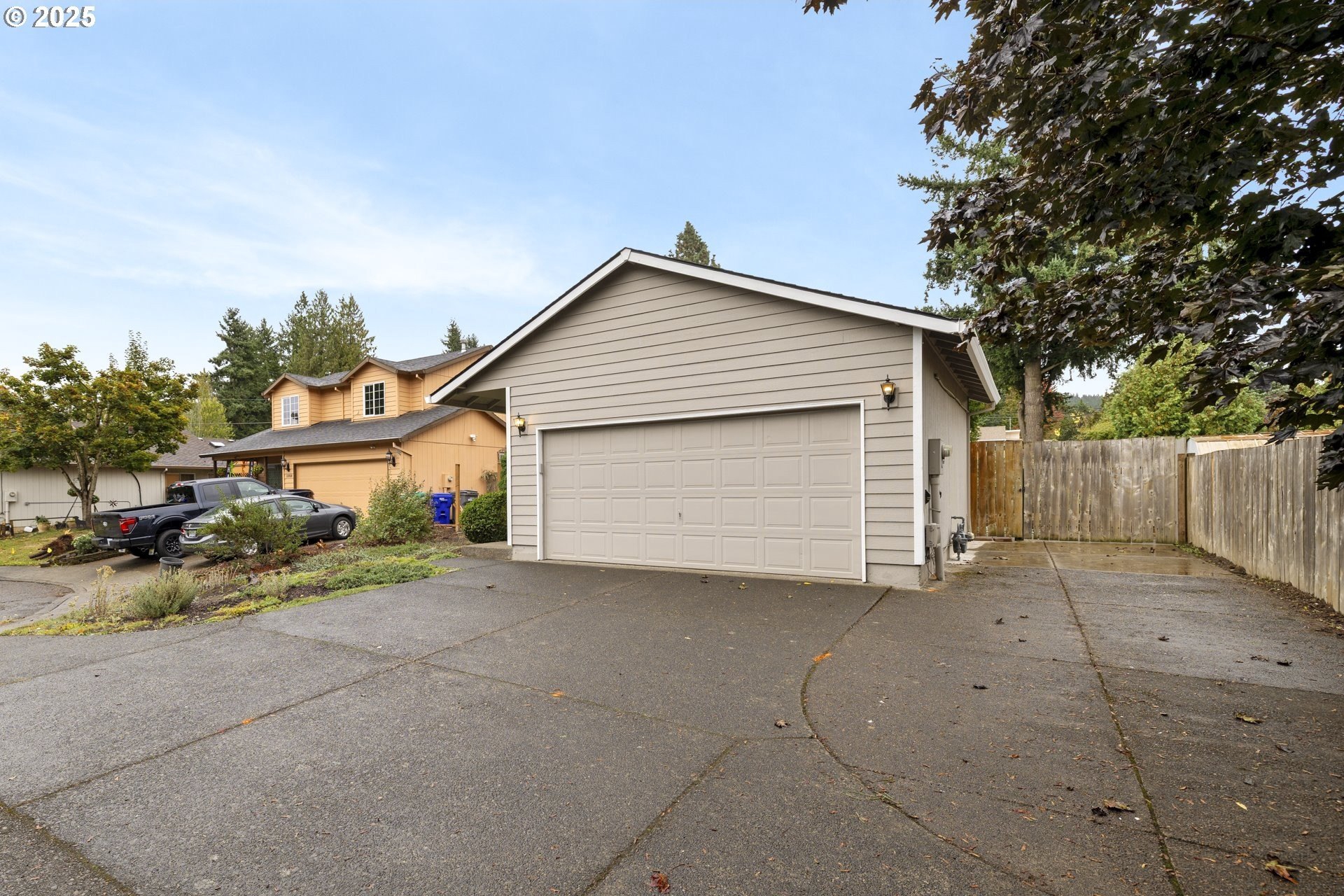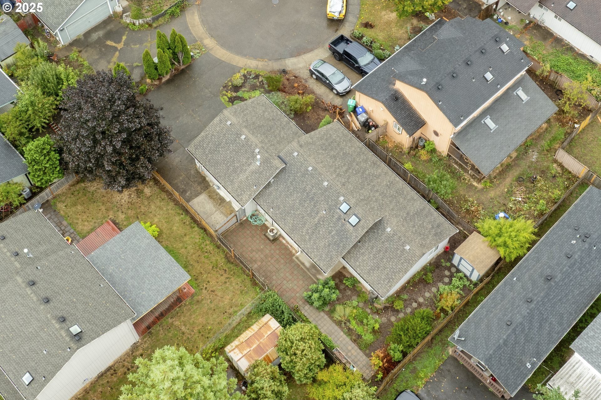 Open this Sunday 12-2pm! Tucked away in a cul-de-sac, this beautifully maintained one-level home is packed with charm and updates throughout. The spacious, fenced lot is a gardener’s dream, featuring raised garden beds, a thriving pollinator garden with rain barrel irrigation, and a Tuff Shed for all your tools. Step inside to discover brand new natural hardwood floors with 25 year warranty, vaulted ceilings, generously sized primary suite, and large open living spaces anchored by a cozy gas fireplace. The bright kitchen offers updated appliances and plenty of counter space. Other features include a new hot water heater, smart thermostat, skylights, walk-in shower, and regularly serviced systems. Lots of parking options along with space for an RV. This property is exceptionally well-maintained and offers a quiet yet convenient location. [Home Energy Score = 7. HES Report at https://rpt.greenbuildingregistry.com/hes/OR10142050]