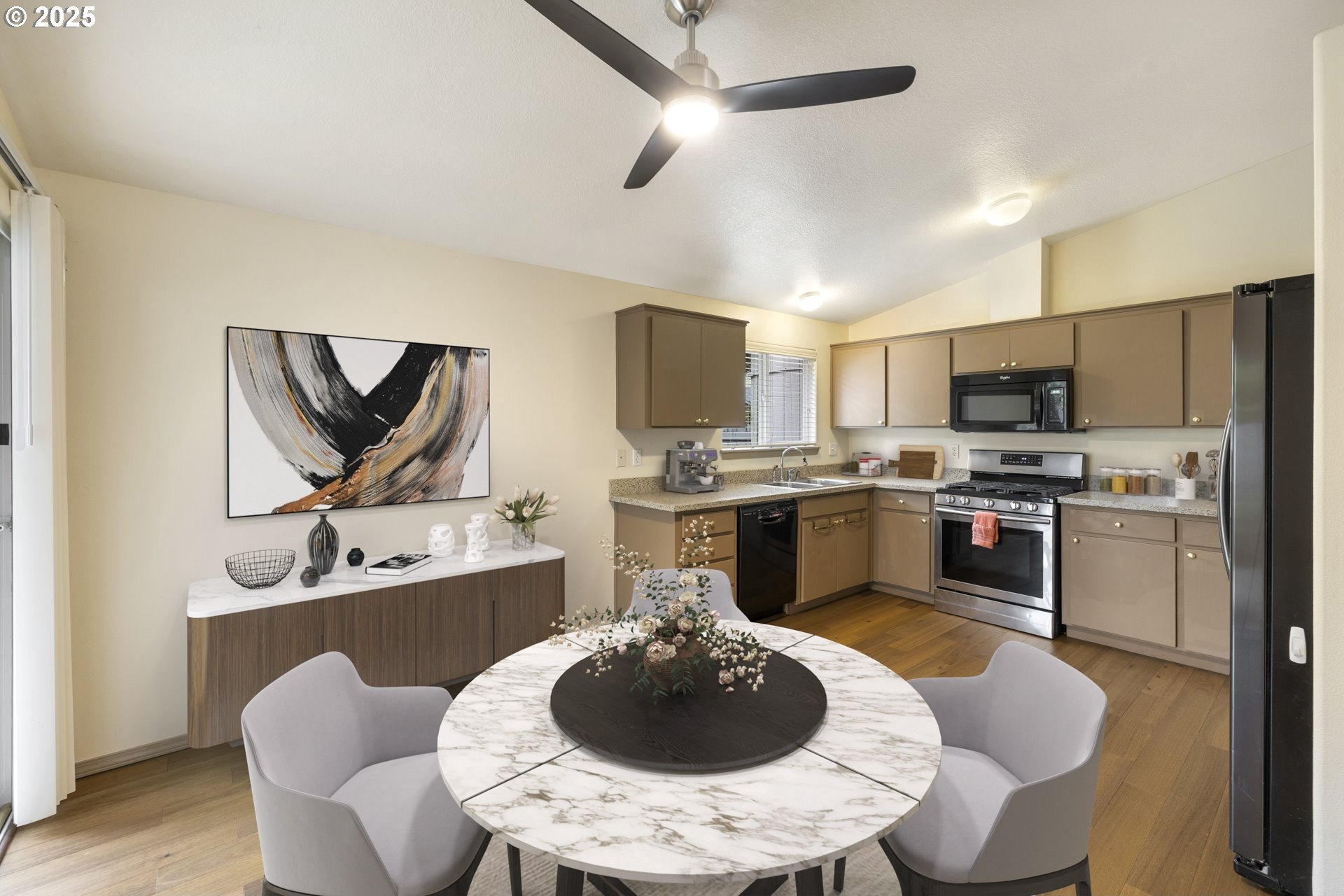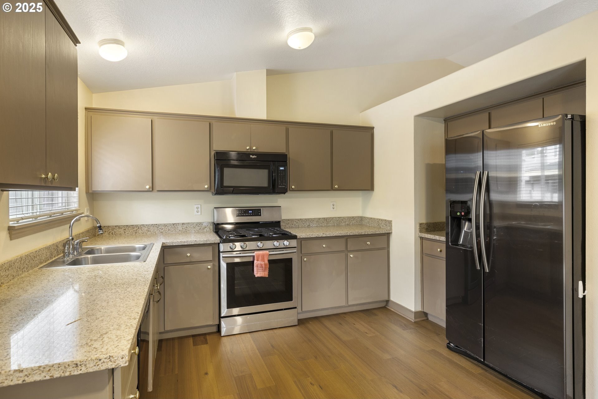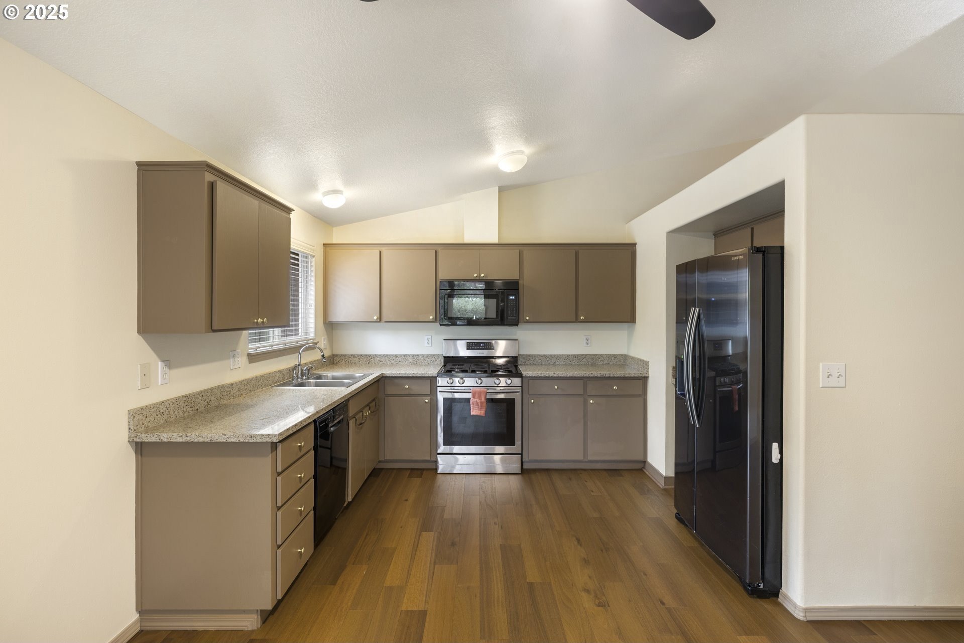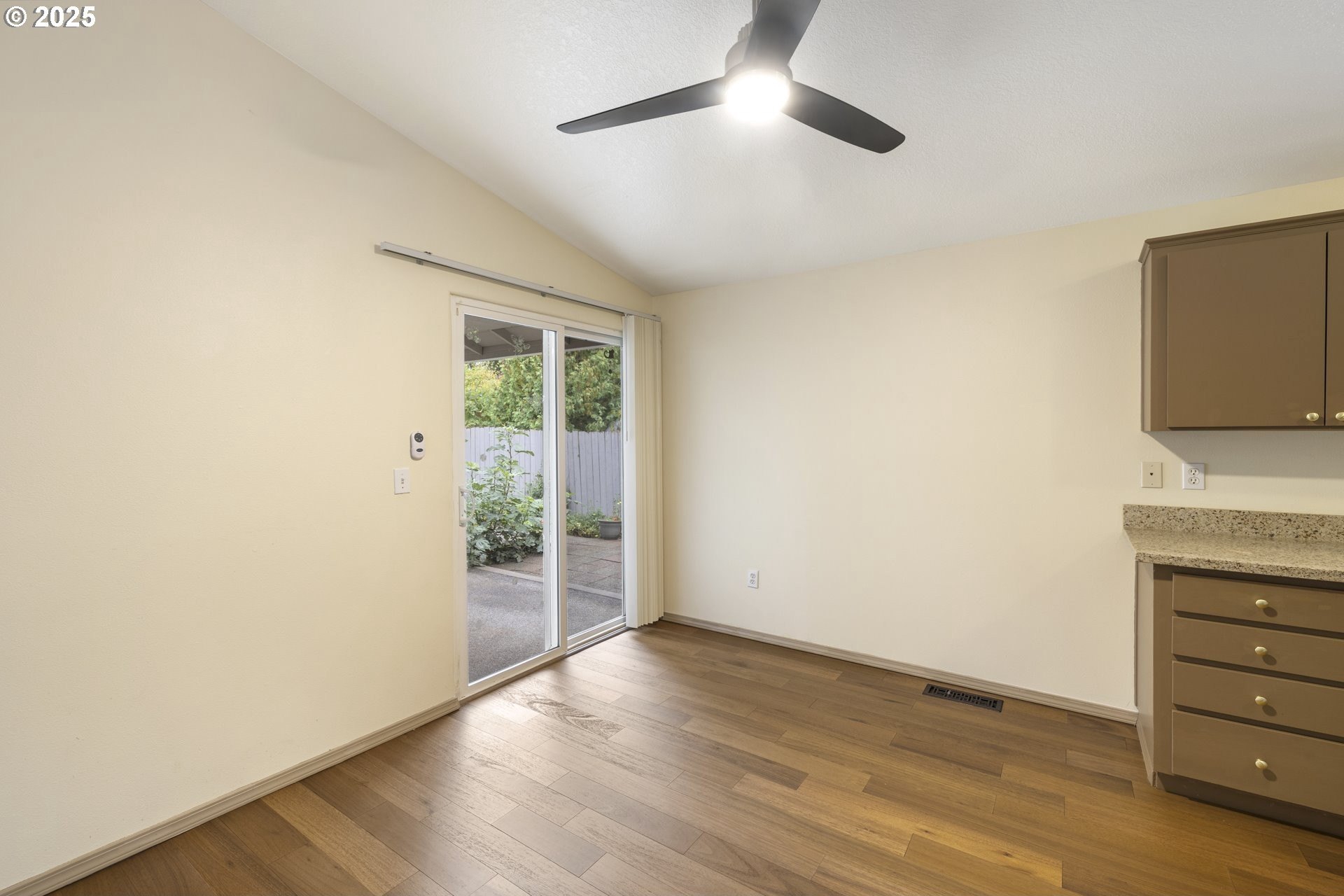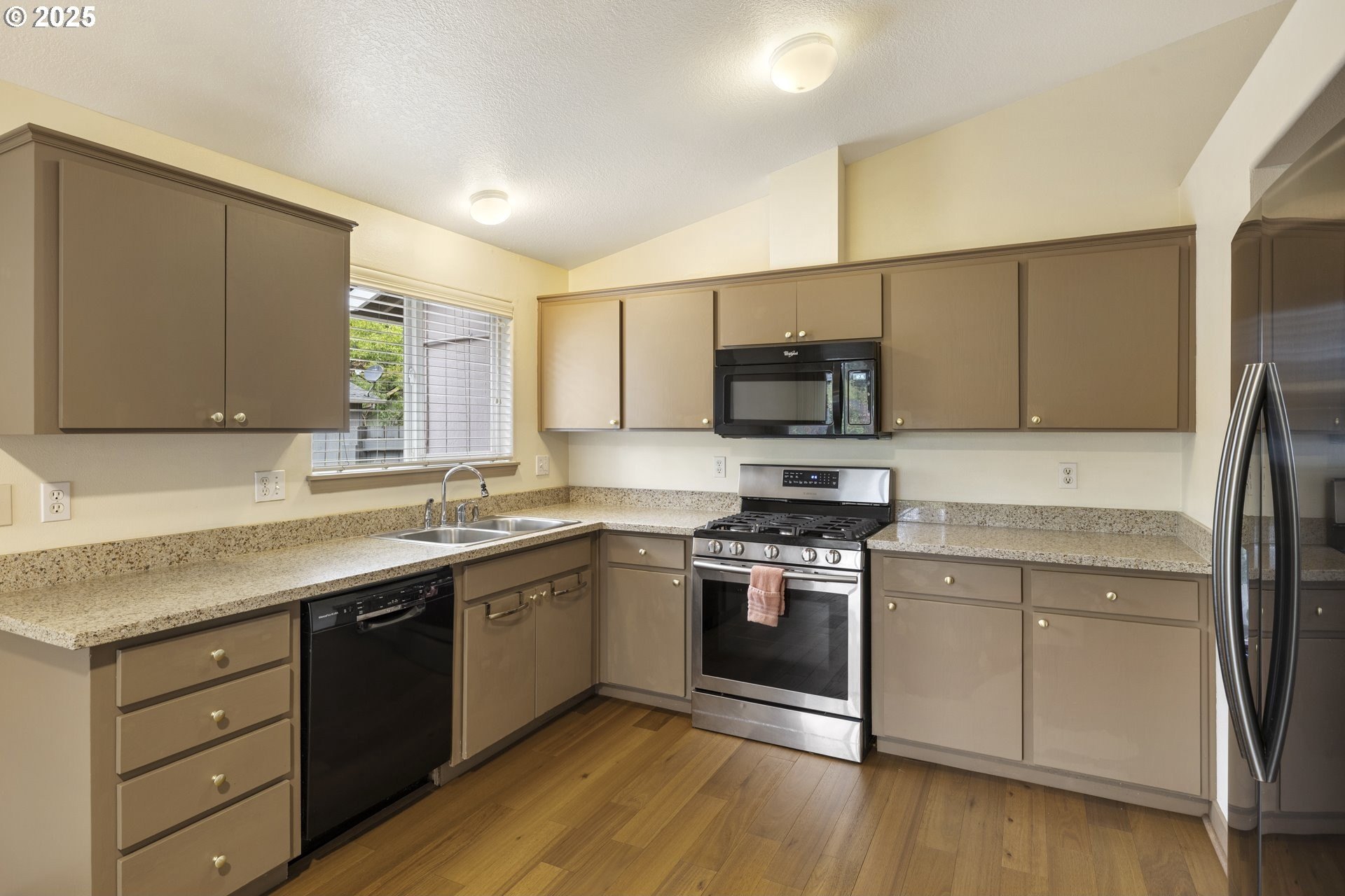 Open this Sunday 12-2pm! Tucked away in a cul-de-sac, this beautifully maintained one-level home is packed with charm and updates throughout. The spacious, fenced lot is a gardener’s dream, featuring raised garden beds, a thriving pollinator garden with rain barrel irrigation, and a Tuff Shed for all your tools. Step inside to discover brand new natural hardwood floors with 25 year warranty, vaulted ceilings, generously sized primary suite, and large open living spaces anchored by a cozy gas fireplace. The bright kitchen offers updated appliances and plenty of counter space. Other features include a new hot water heater, smart thermostat, skylights, walk-in shower, and regularly serviced systems. Lots of parking options along with space for an RV. This property is exceptionally well-maintained and offers a quiet yet convenient location. [Home Energy Score = 7. HES Report at https://rpt.greenbuildingregistry.com/hes/OR10142050]
