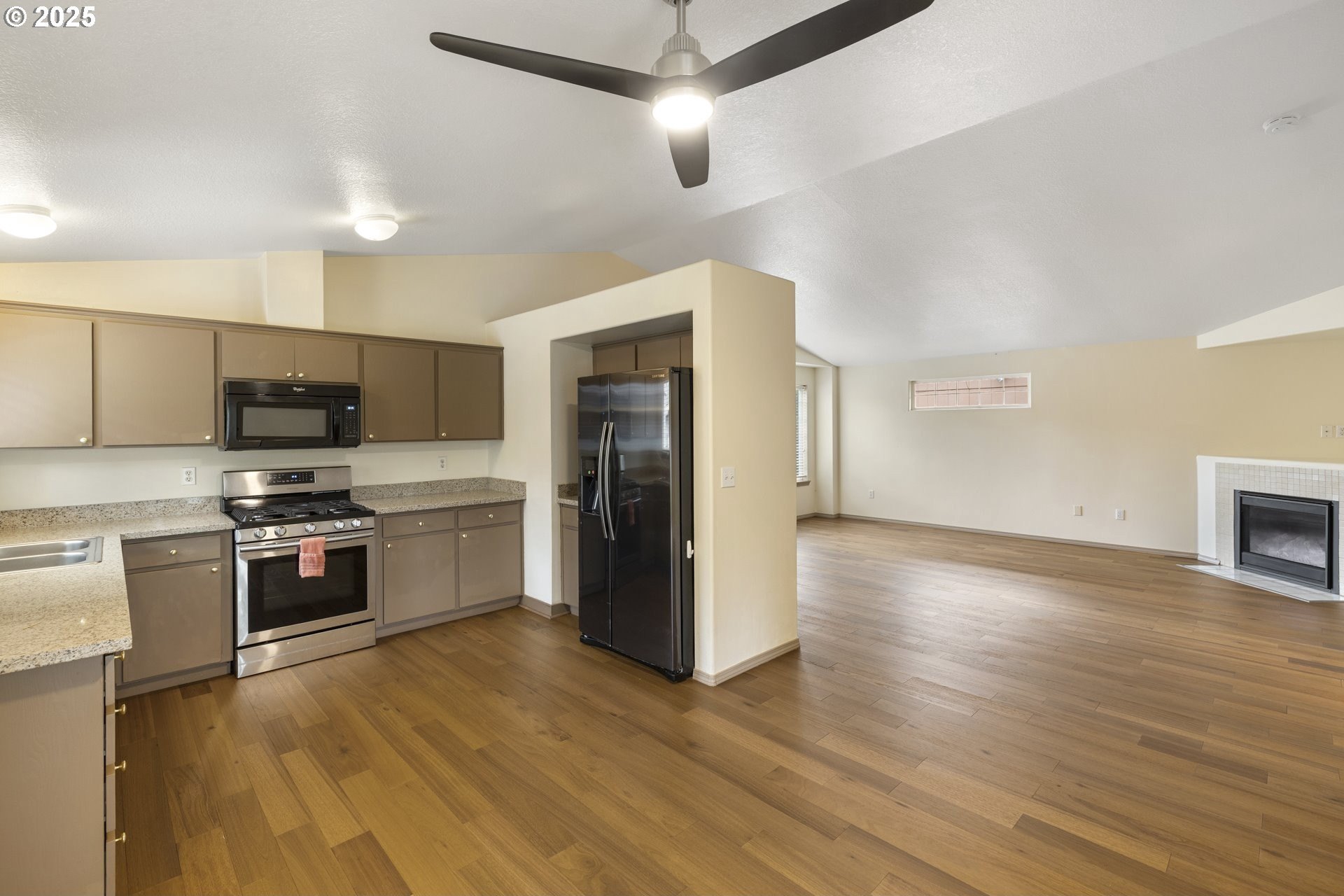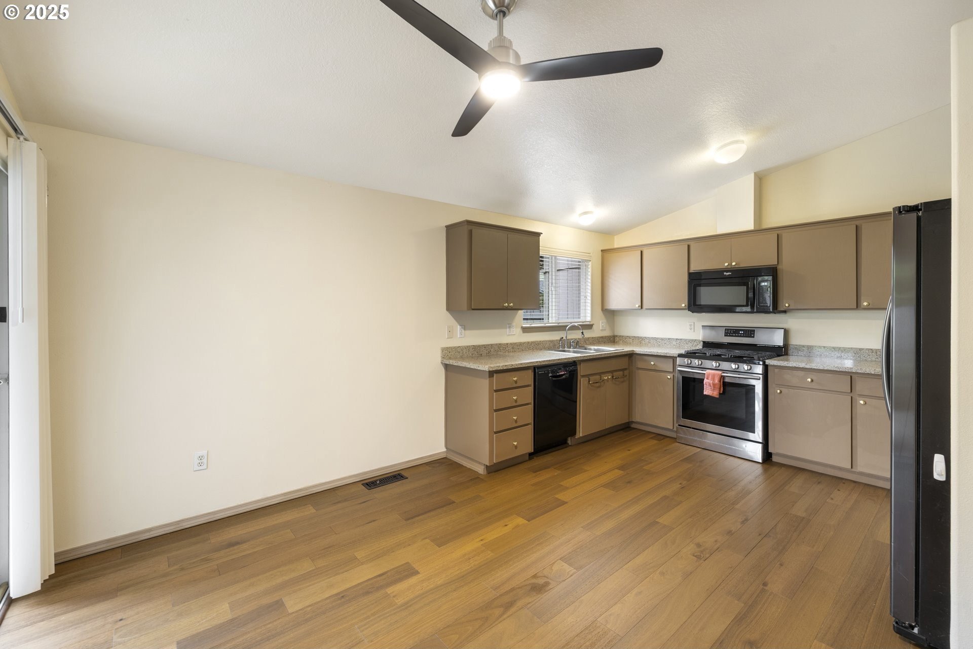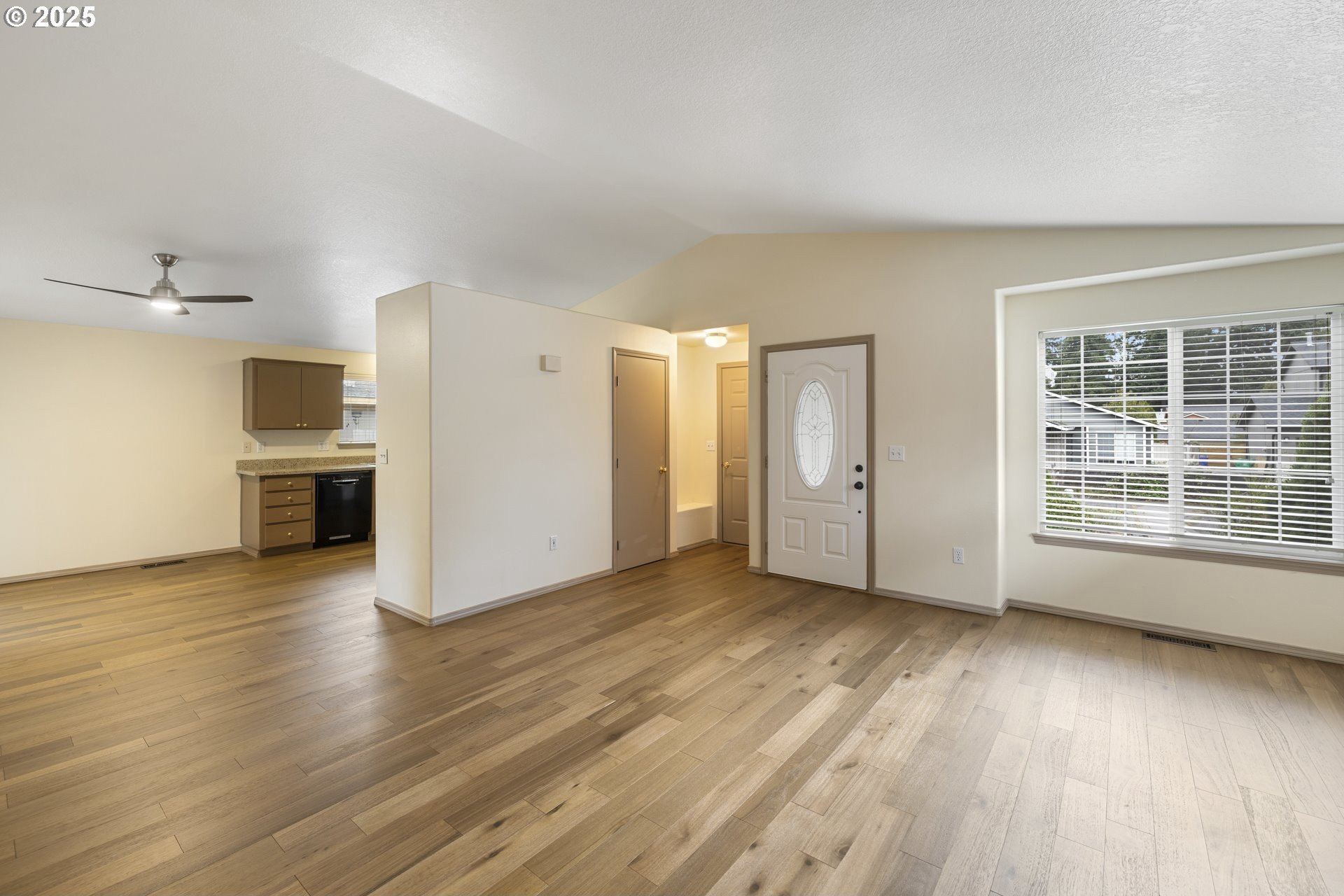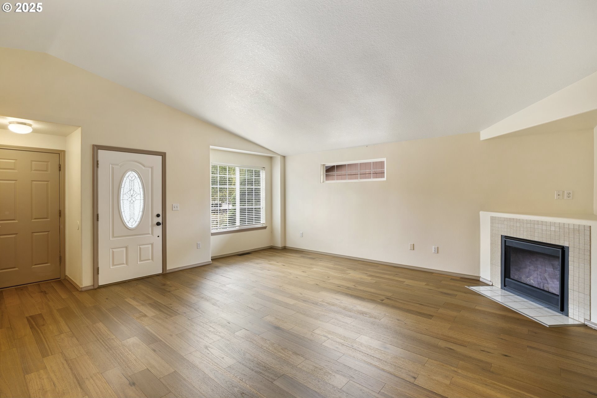 Open this Sunday 12-2pm! Tucked away in a cul-de-sac, this beautifully maintained one-level home is packed with charm and updates throughout. The spacious, fenced lot is a gardener’s dream, featuring raised garden beds, a thriving pollinator garden with rain barrel irrigation, and a Tuff Shed for all your tools. Step inside to discover brand new natural hardwood floors with 25 year warranty, vaulted ceilings, generously sized primary suite, and large open living spaces anchored by a cozy gas fireplace. The bright kitchen offers updated appliances and plenty of counter space. Other features include a new hot water heater, smart thermostat, skylights, walk-in shower, and regularly serviced systems. Lots of parking options along with space for an RV. This property is exceptionally well-maintained and offers a quiet yet convenient location. [Home Energy Score = 7. HES Report at https://rpt.greenbuildingregistry.com/hes/OR10142050]