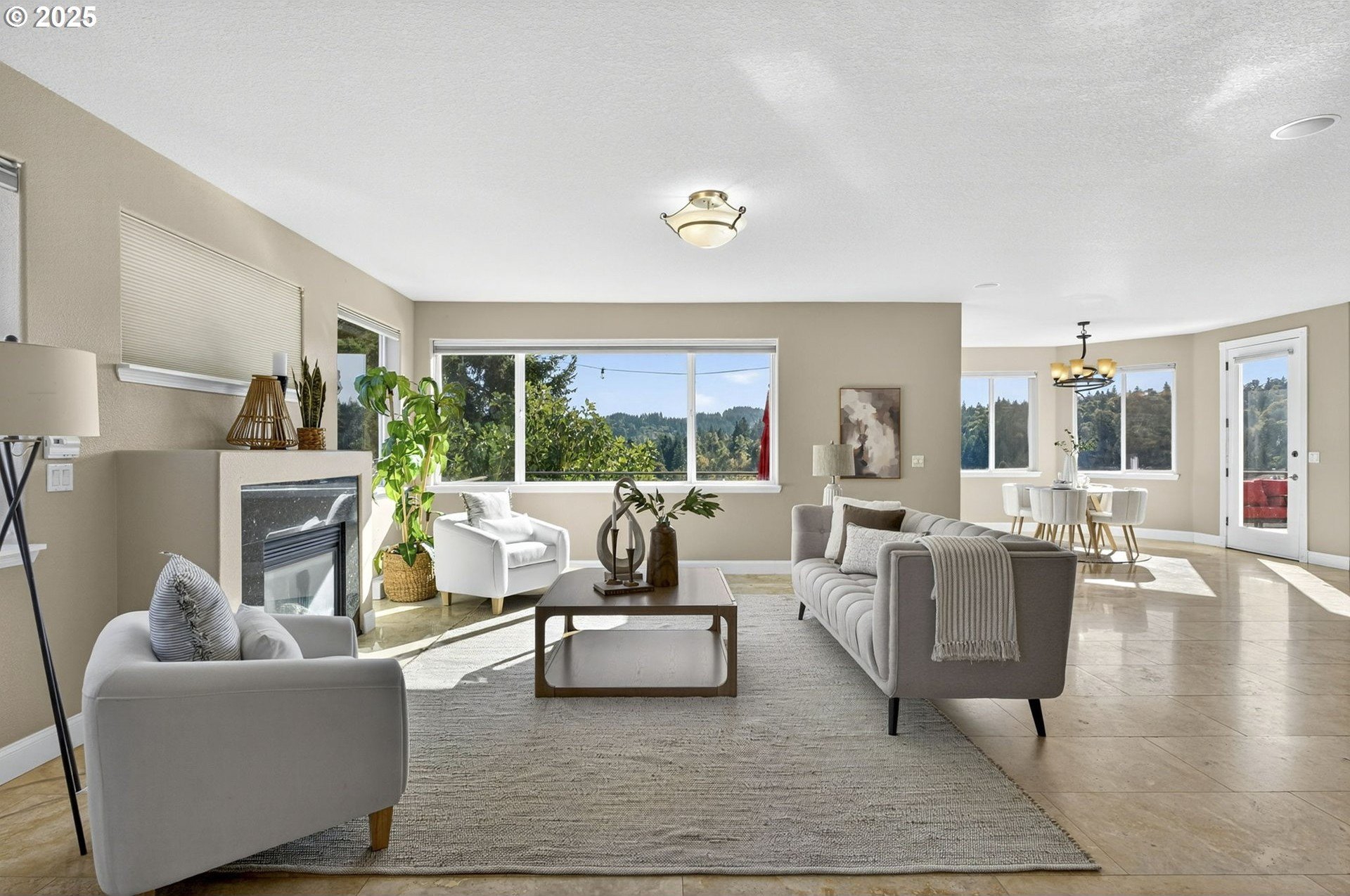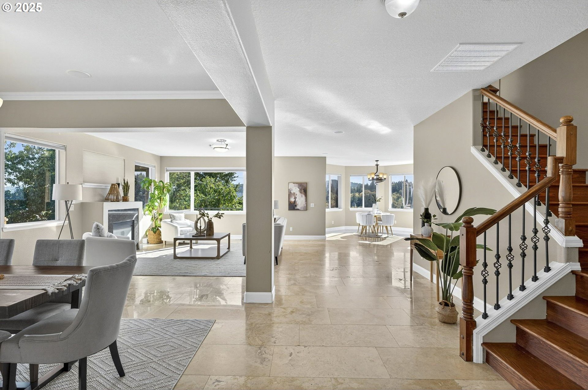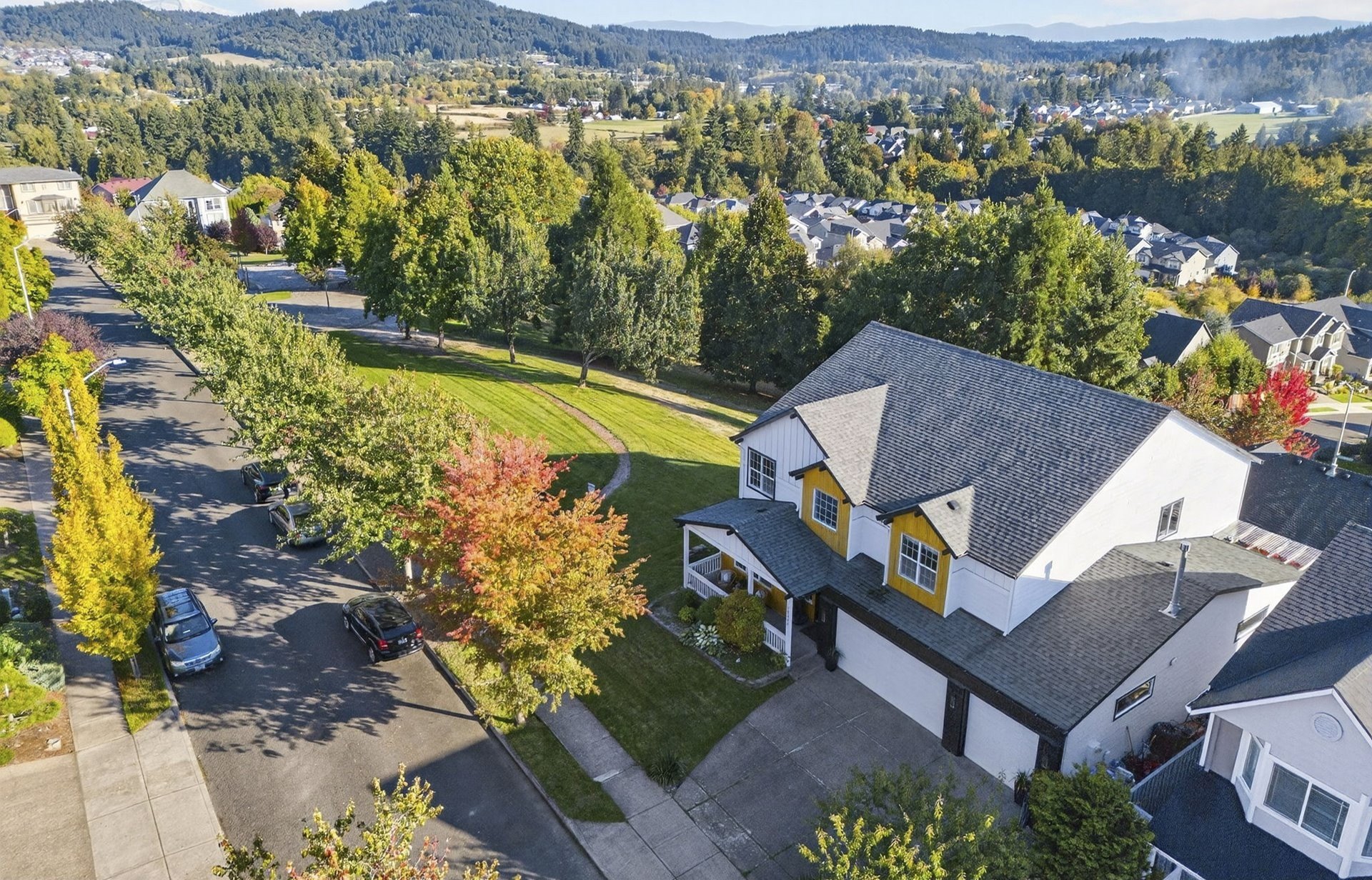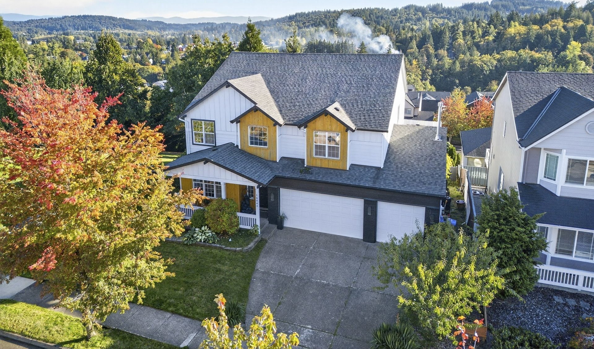 Welcome to this expansive 3,441 sq ft home in the desirable Pleasant Valley neighborhood of Hawthorne Ridge. This 4-bedroom, 2.5-bath residence offers a well-designed layout, abundant natural light, and sweeping territorial views, all set on a private lot that embraces the beauty of the Pacific Northwest.Inside, soaring vaulted ceilings and large windows flood the home with light, showcasing elegant travertine tile floors throughout much of the main level. The great room layout connects the living, dining, and kitchen spaces, creating a spacious and welcoming environment for everyday living and entertaining.The freshly remodeled primary bathroom offers a spa-like retreat with modern finishes, while a dedicated office with French doors and built-ins makes working from home easy and comfortable. A spacious 4-car garage, including tandem space, provides ample room for vehicles, storage, and hobbies. The home also features a central vacuum system for added convenience.Step outside to a full-length back deck, perfect for relaxing or hosting gatherings while enjoying peaceful, panoramic views. The adjacent neighborhood park enhances the sense of open space and adds a natural green backdrop to your everyday life.For outdoor enthusiasts, the location is ideal. Just 2 minutes away, Clatsop Butte Park offers walking paths and scenic views. Powell Butte Nature Park, only 5 minutes away, features miles of trails and access to the Springwater Corridor. Happy Valley Park is also within 5 minutes and includes sports courts, a playground, splash pad, and community events. Scouters Mountain Nature Park, just 8 minutes away, offers forested trails and stunning views of Mt. Hood.Whether you're hiking, biking, or simply enjoying nature, this home offers the perfect balance of peaceful living and easy access to nearby amenities, restaurants, and shopping in Happy Valley.