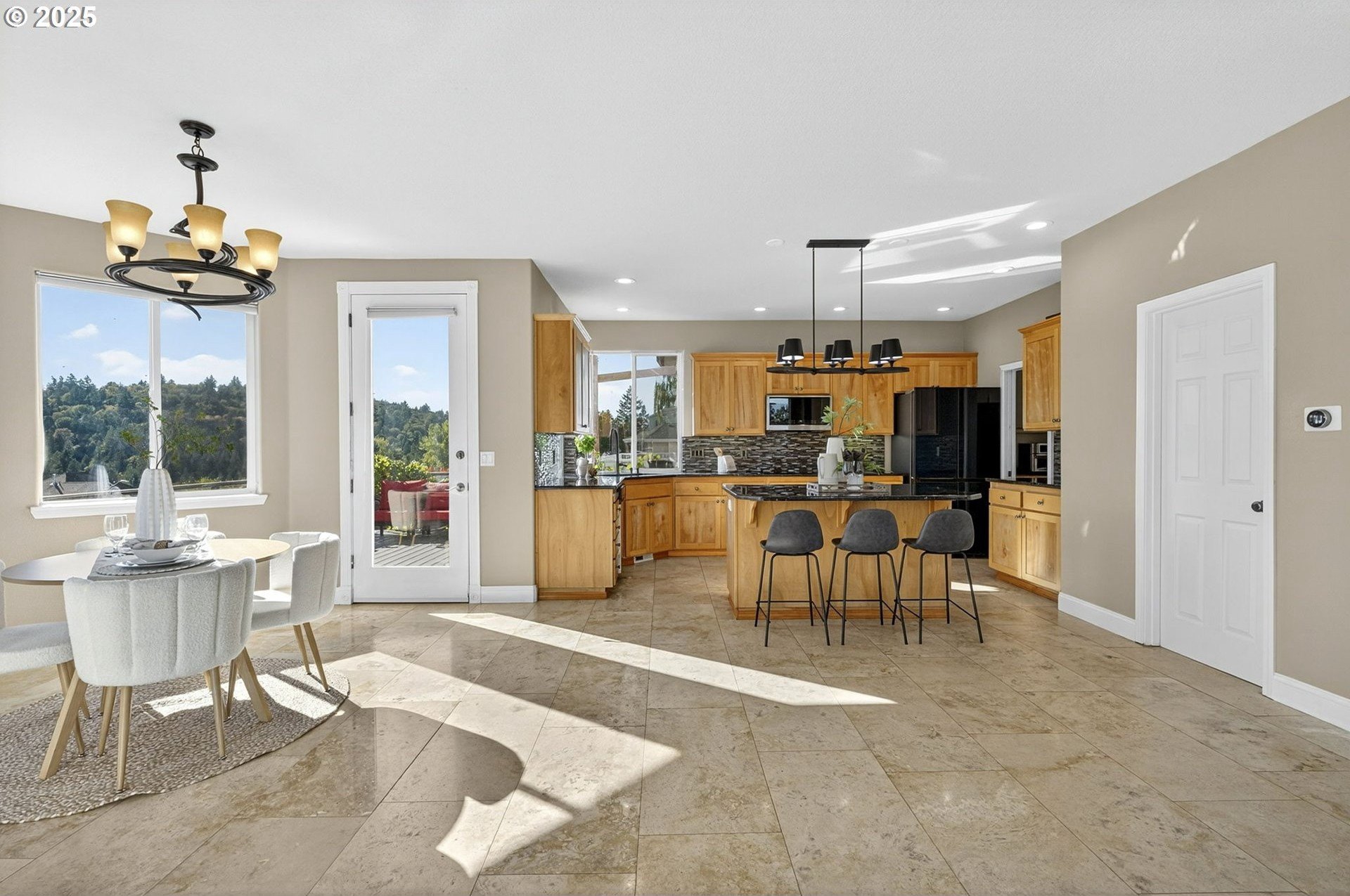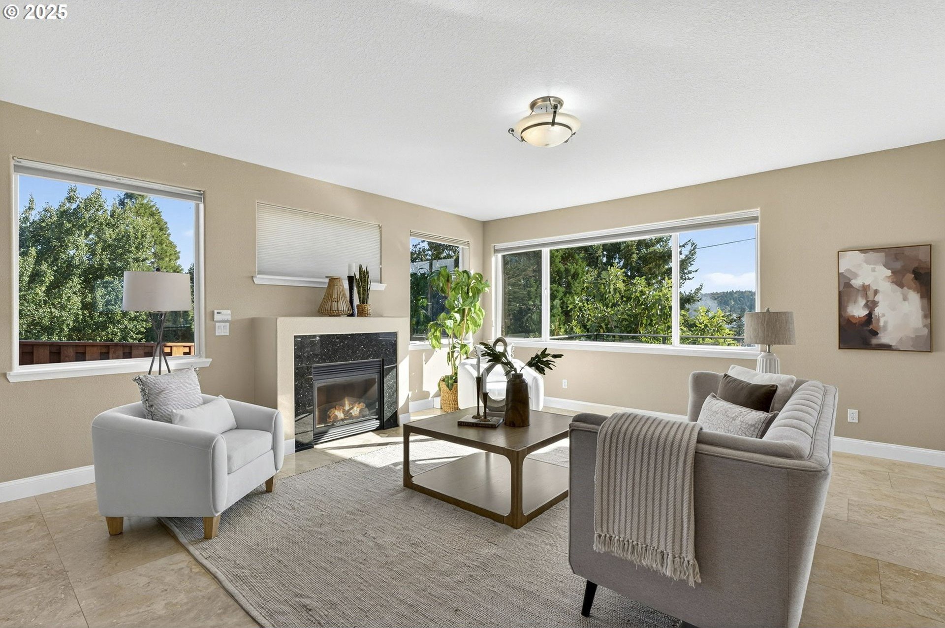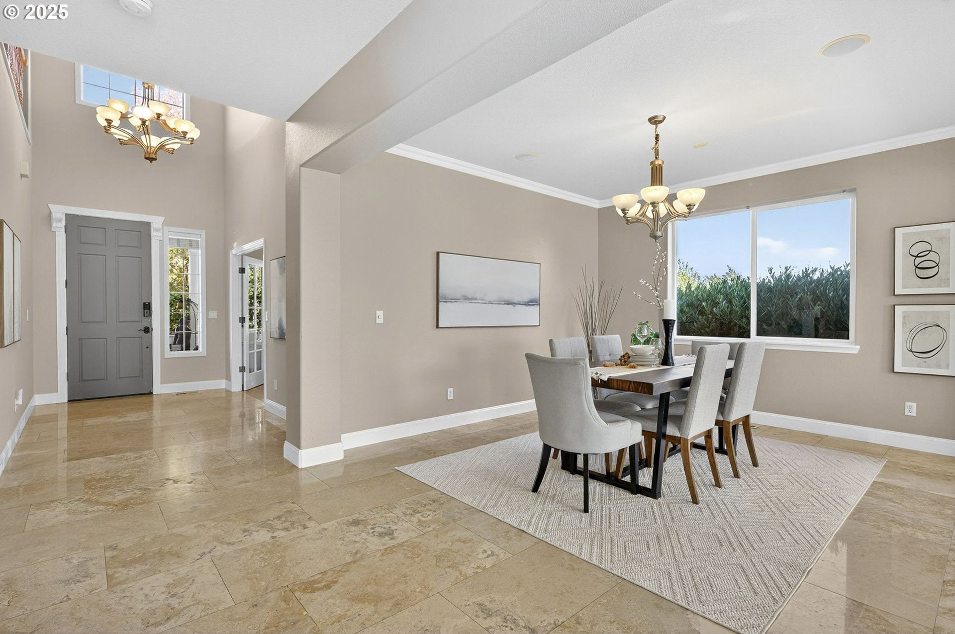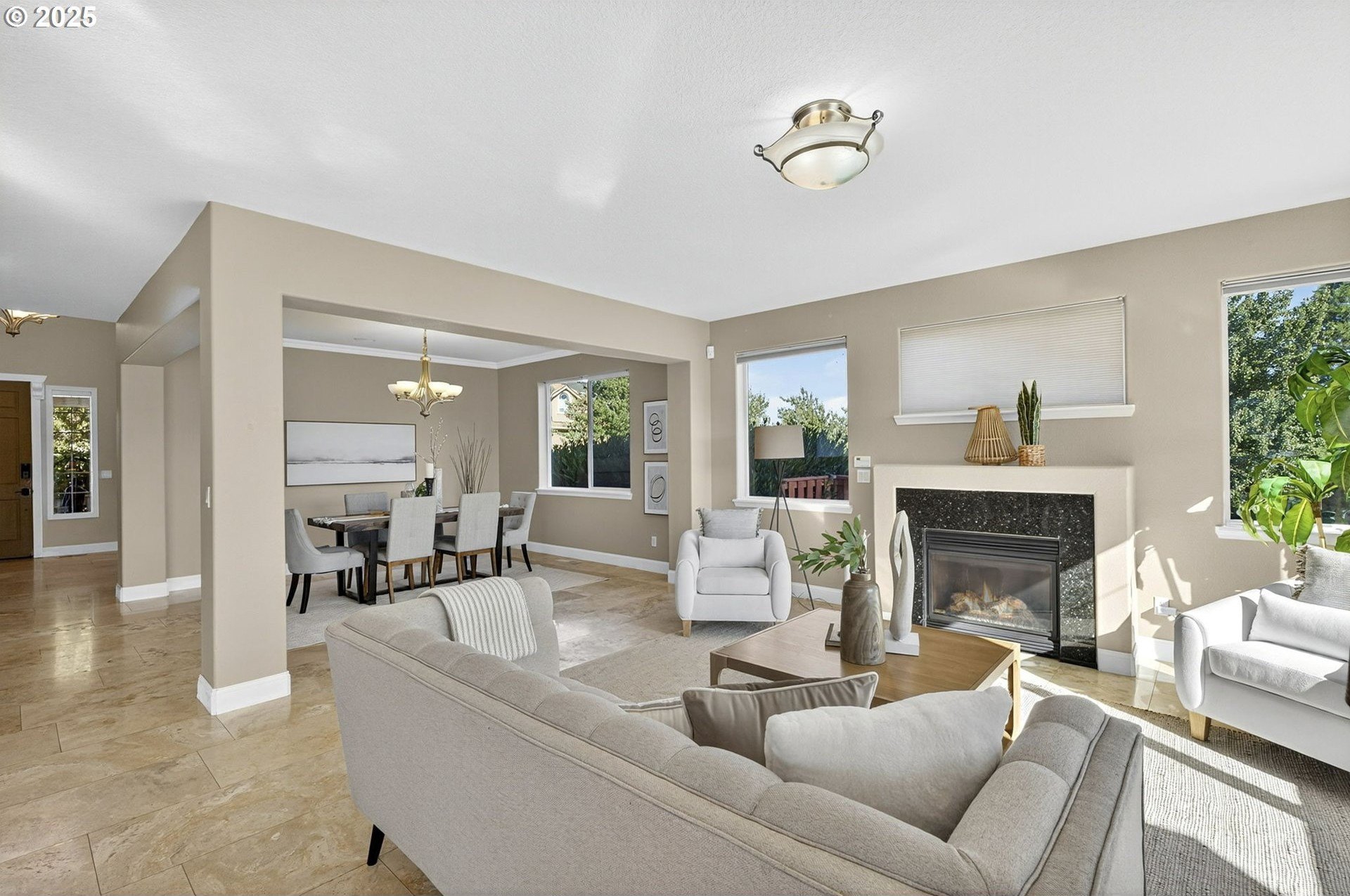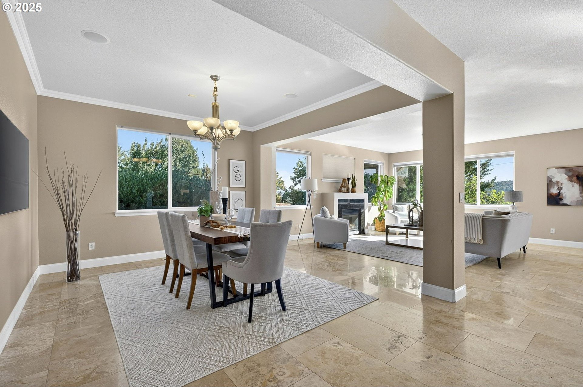 Welcome to this expansive 3,441 sq ft home in the desirable Pleasant Valley neighborhood of Hawthorne Ridge. This 4-bedroom, 2.5-bath residence offers a well-designed layout, abundant natural light, and sweeping territorial views, all set on a private lot that embraces the beauty of the Pacific Northwest.Inside, soaring vaulted ceilings and large windows flood the home with light, showcasing elegant travertine tile floors throughout much of the main level. The great room layout connects the living, dining, and kitchen spaces, creating a spacious and welcoming environment for everyday living and entertaining.The freshly remodeled primary bathroom offers a spa-like retreat with modern finishes, while a dedicated office with French doors and built-ins makes working from home easy and comfortable. A spacious 4-car garage, including tandem space, provides ample room for vehicles, storage, and hobbies. The home also features a central vacuum system for added convenience.Step outside to a full-length back deck, perfect for relaxing or hosting gatherings while enjoying peaceful, panoramic views. The adjacent neighborhood park enhances the sense of open space and adds a natural green backdrop to your everyday life.For outdoor enthusiasts, the location is ideal. Just 2 minutes away, Clatsop Butte Park offers walking paths and scenic views. Powell Butte Nature Park, only 5 minutes away, features miles of trails and access to the Springwater Corridor. Happy Valley Park is also within 5 minutes and includes sports courts, a playground, splash pad, and community events. Scouters Mountain Nature Park, just 8 minutes away, offers forested trails and stunning views of Mt. Hood.Whether you're hiking, biking, or simply enjoying nature, this home offers the perfect balance of peaceful living and easy access to nearby amenities, restaurants, and shopping in Happy Valley.