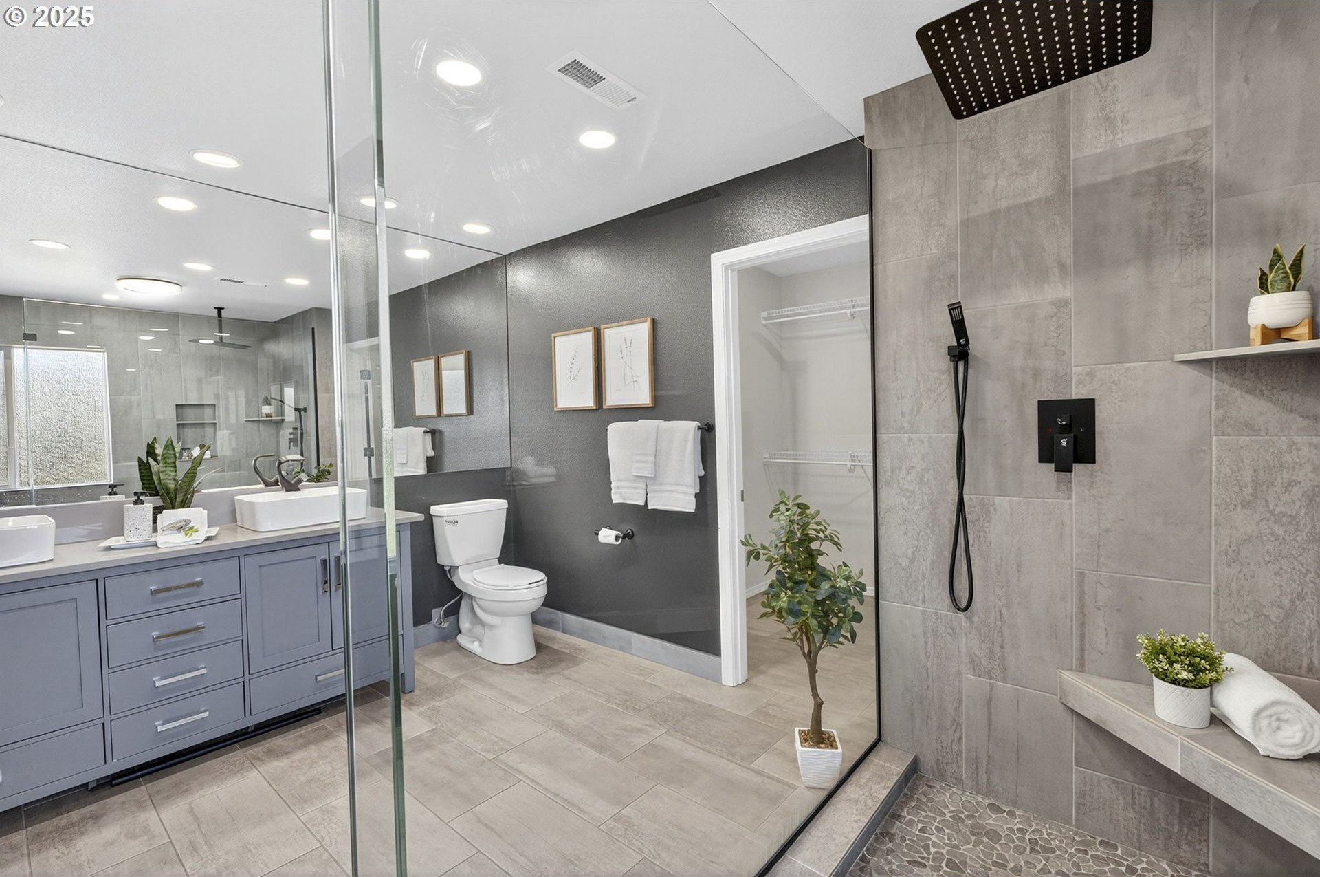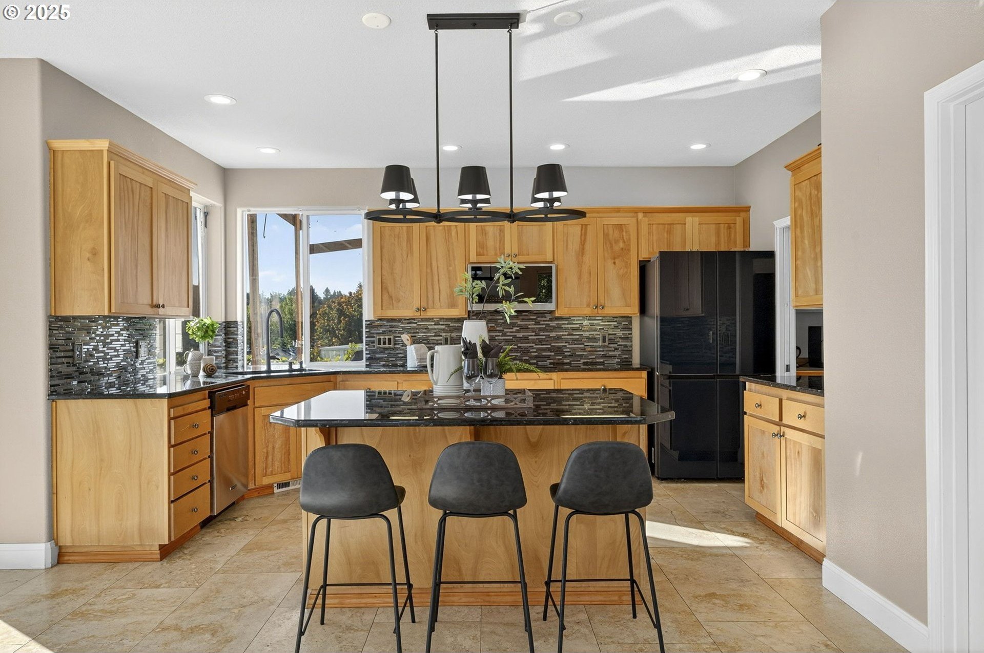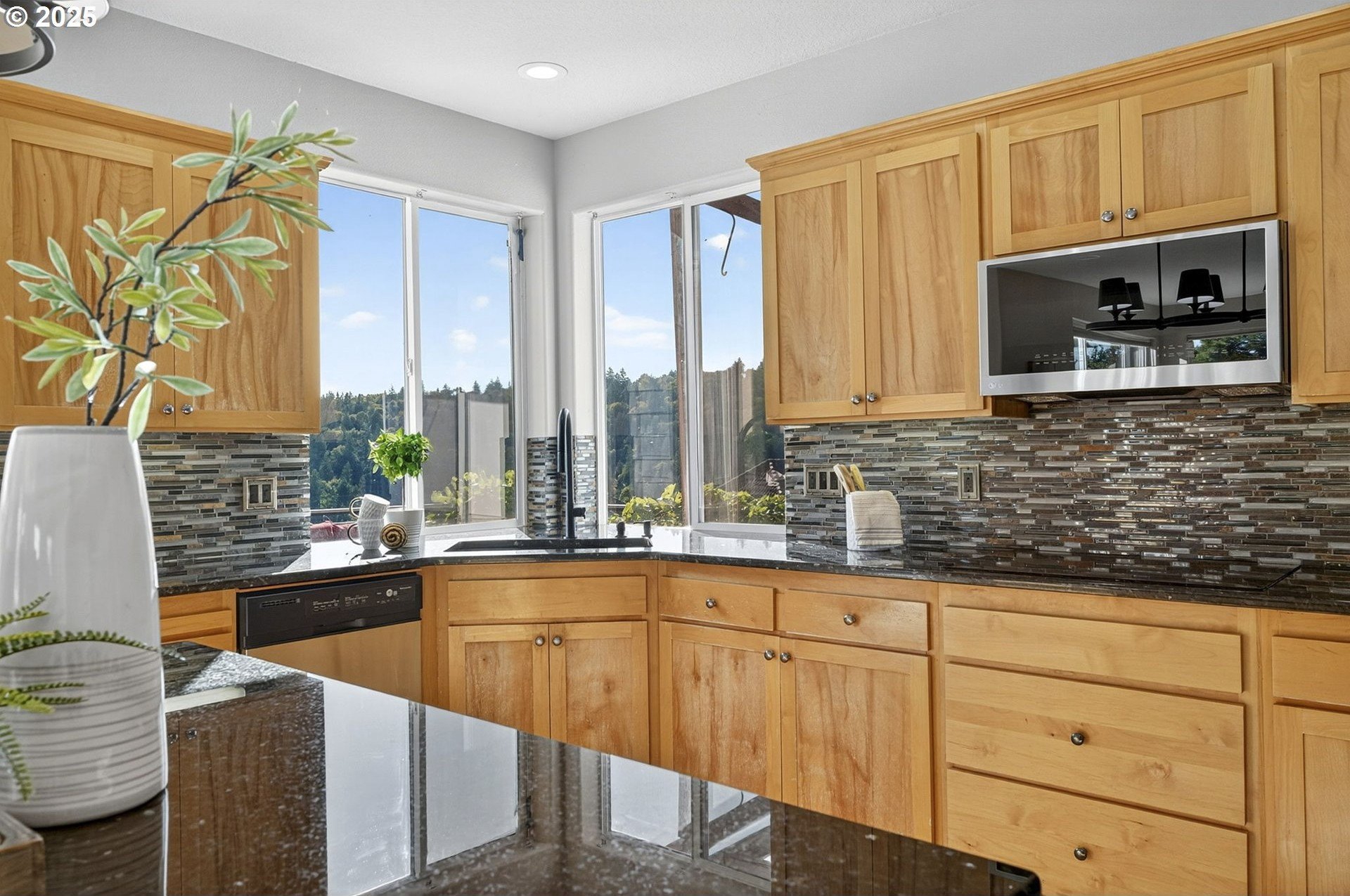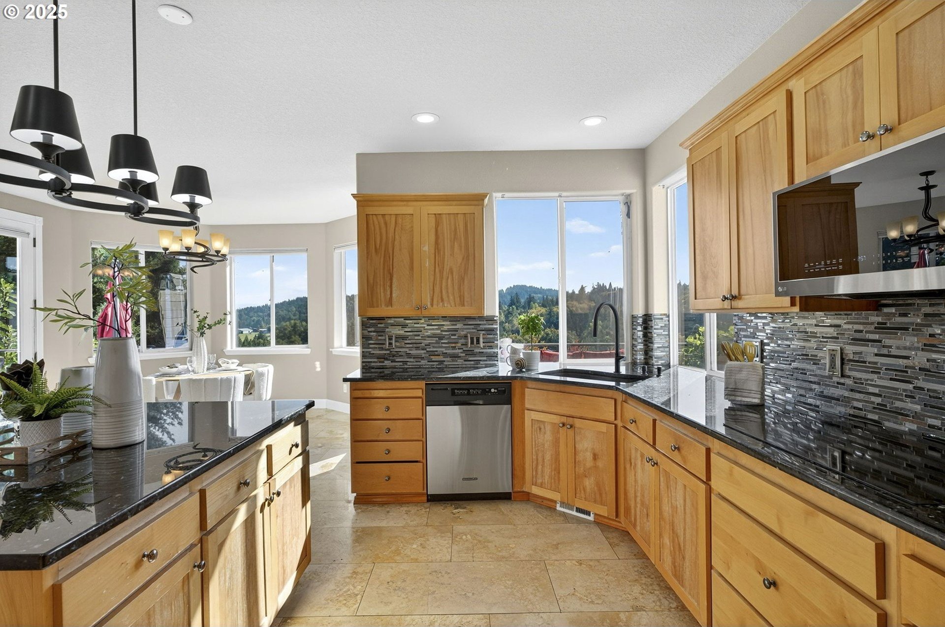 Welcome to this expansive 3,441 sq ft home in the desirable Pleasant Valley neighborhood of Hawthorne Ridge. This 4-bedroom, 2.5-bath residence offers a well-designed layout, abundant natural light, and sweeping territorial views, all set on a private lot that embraces the beauty of the Pacific Northwest.Inside, soaring vaulted ceilings and large windows flood the home with light, showcasing elegant travertine tile floors throughout much of the main level. The great room layout connects the living, dining, and kitchen spaces, creating a spacious and welcoming environment for everyday living and entertaining.The freshly remodeled primary bathroom offers a spa-like retreat with modern finishes, while a dedicated office with French doors and built-ins makes working from home easy and comfortable. A spacious 4-car garage, including tandem space, provides ample room for vehicles, storage, and hobbies. The home also features a central vacuum system for added convenience.Step outside to a full-length back deck, perfect for relaxing or hosting gatherings while enjoying peaceful, panoramic views. The adjacent neighborhood park enhances the sense of open space and adds a natural green backdrop to your everyday life.For outdoor enthusiasts, the location is ideal. Just 2 minutes away, Clatsop Butte Park offers walking paths and scenic views. Powell Butte Nature Park, only 5 minutes away, features miles of trails and access to the Springwater Corridor. Happy Valley Park is also within 5 minutes and includes sports courts, a playground, splash pad, and community events. Scouters Mountain Nature Park, just 8 minutes away, offers forested trails and stunning views of Mt. Hood.Whether you're hiking, biking, or simply enjoying nature, this home offers the perfect balance of peaceful living and easy access to nearby amenities, restaurants, and shopping in Happy Valley.