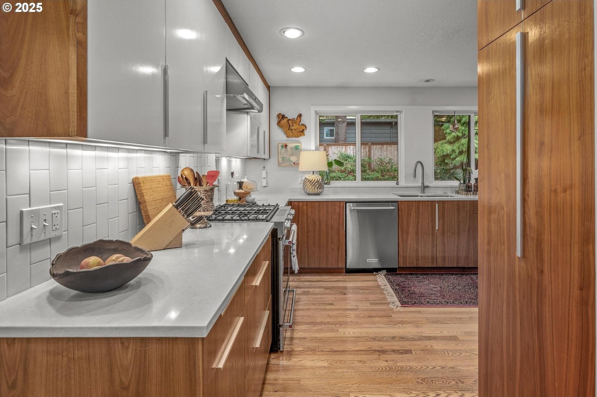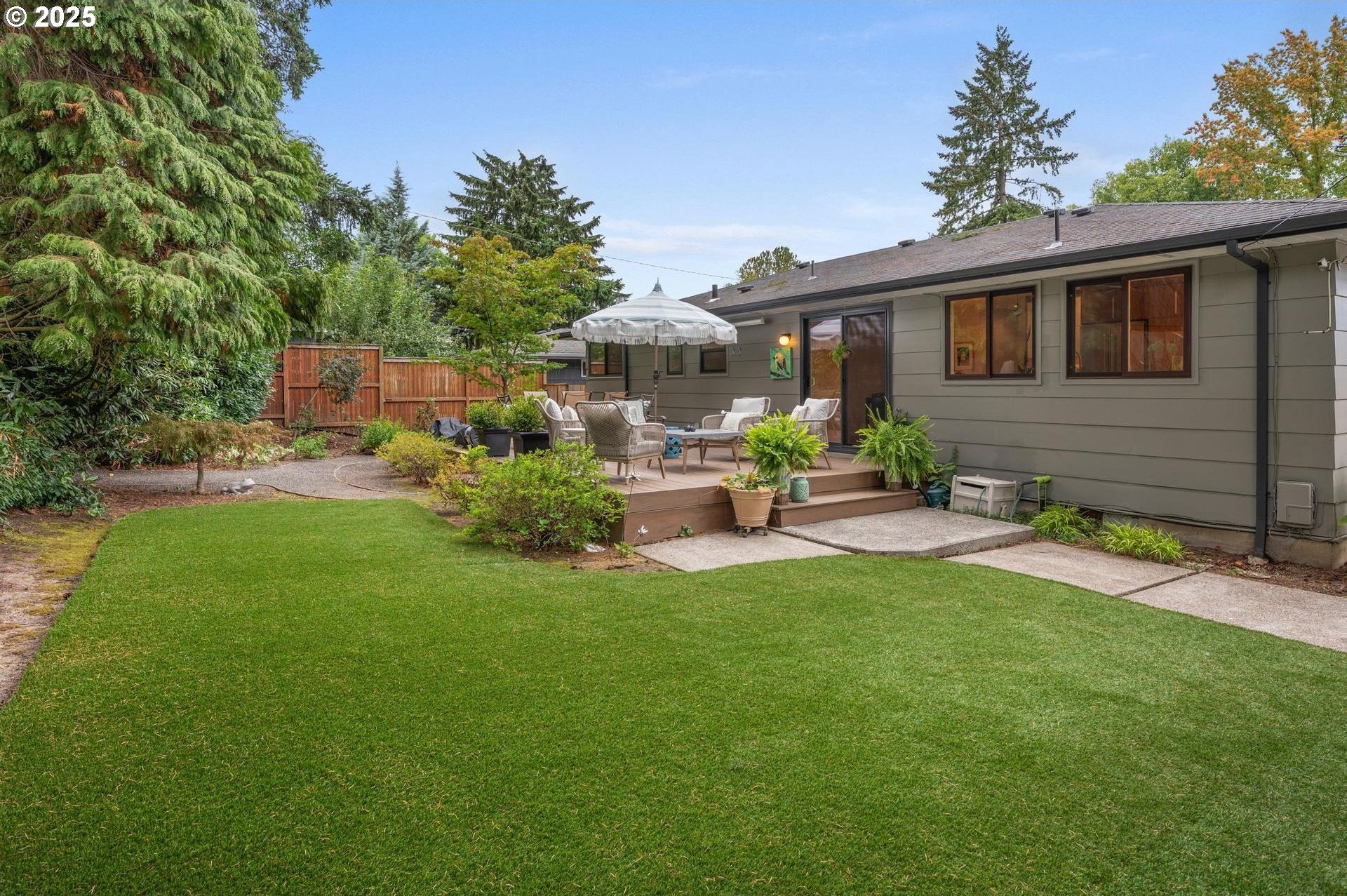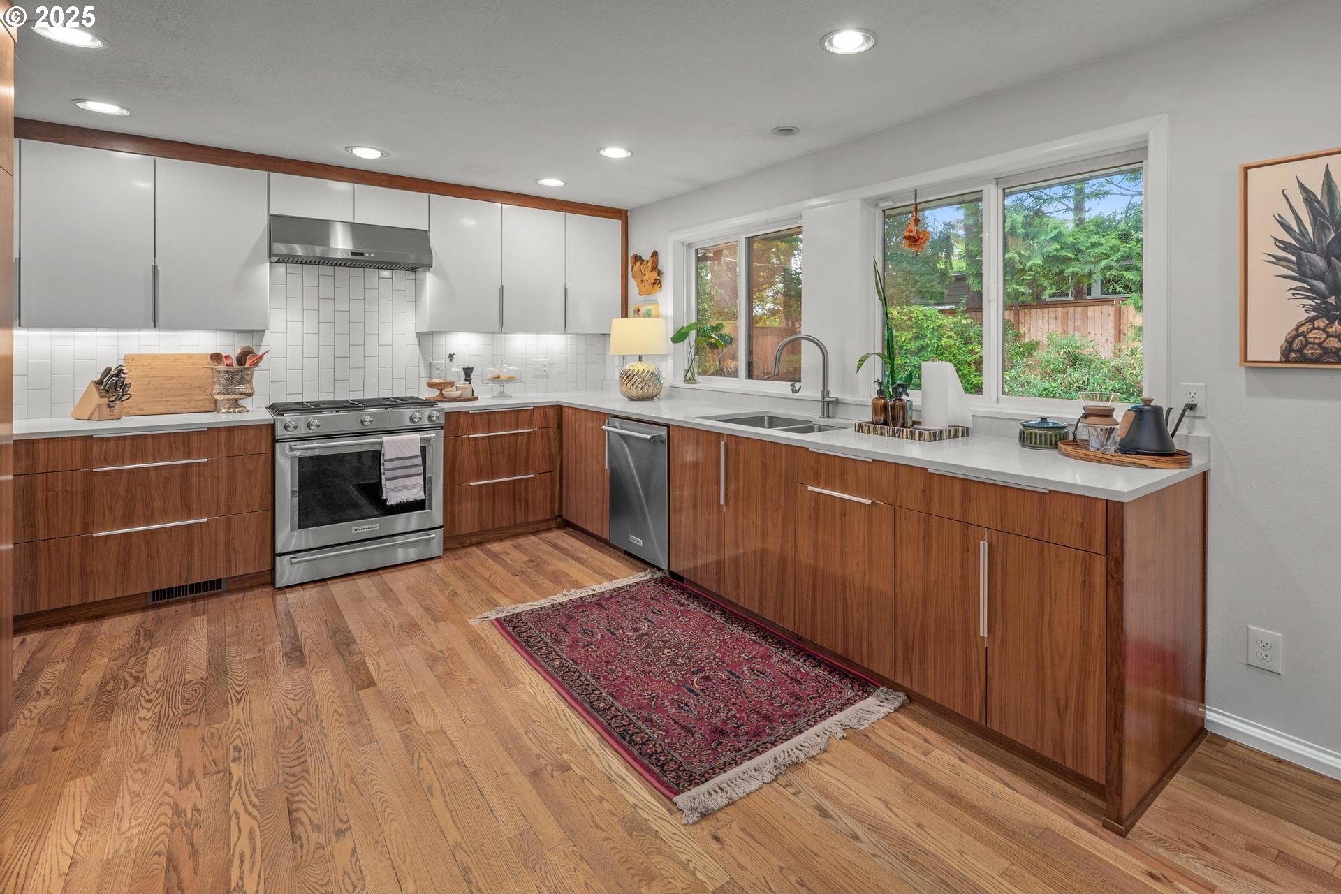 Well maintained beauty with lower Washington County taxes. Upstairs boasts 3 bedrooms, including a primary suite, and oak hardwood floors throughout the upstairs, two full bathrooms, era built-ins, plus a cozy living room with a gas fireplace, an opened up and cleverly renovated oversized cook's kitchen with walnut cabinets, stainless steel appliances and lavish quartz counters with ample counter space, a formal eating area with a slider to a back composite deck and patio to a fully fenced, turf spread backyard with a tool shed for additional storage. Downstairs is a spacious family room with a gas fireplace and slate floors, a large utility / storage room, another full and updated bathroom, plus a flex space that could be used as a home office and / or workout area. All this with an attached two car garage, sprinkler irrigation system, and close to Raleigh Hills grocery shopping! Welcome home!
