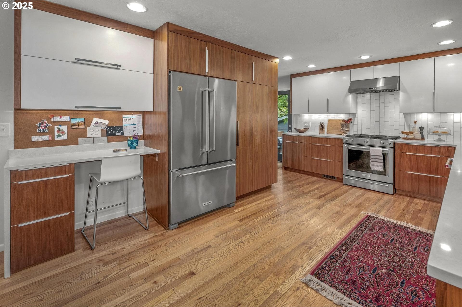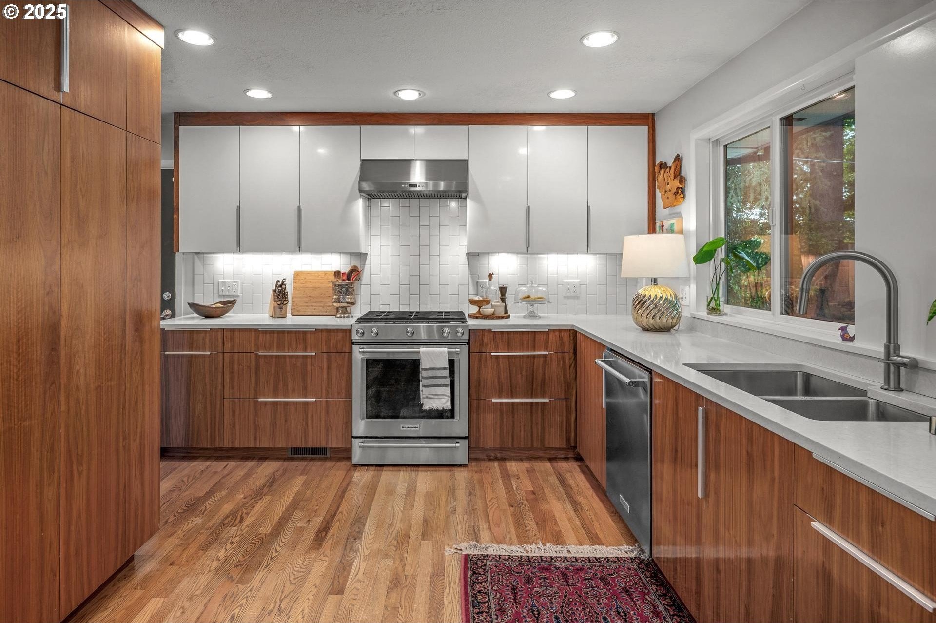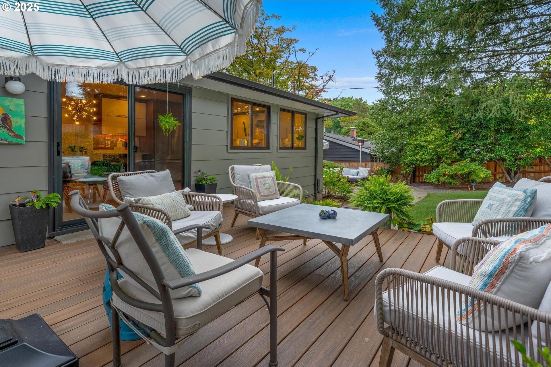 Well maintained beauty with lower Washington County taxes. Upstairs boasts 3 bedrooms, including a primary suite, and oak hardwood floors throughout the upstairs, two full bathrooms, era built-ins, plus a cozy living room with a gas fireplace, an opened up and cleverly renovated oversized cook's kitchen with walnut cabinets, stainless steel appliances and lavish quartz counters with ample counter space, a formal eating area with a slider to a back composite deck and patio to a fully fenced, turf spread backyard with a tool shed for additional storage. Downstairs is a spacious family room with a gas fireplace and slate floors, a large utility / storage room, another full and updated bathroom, plus a flex space that could be used as a home office and / or workout area. All this with an attached two car garage, sprinkler irrigation system, and close to Raleigh Hills grocery shopping! Welcome home!