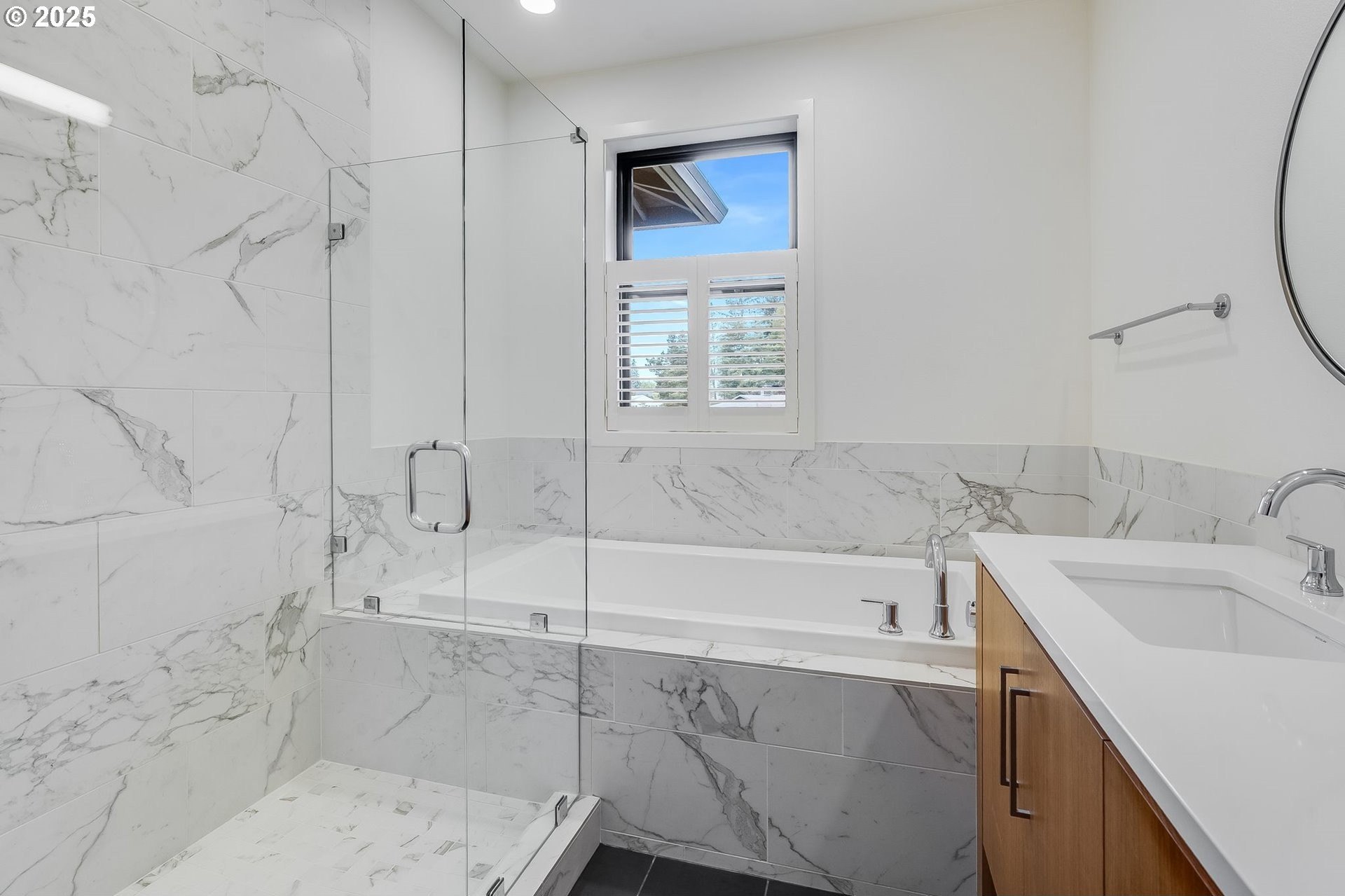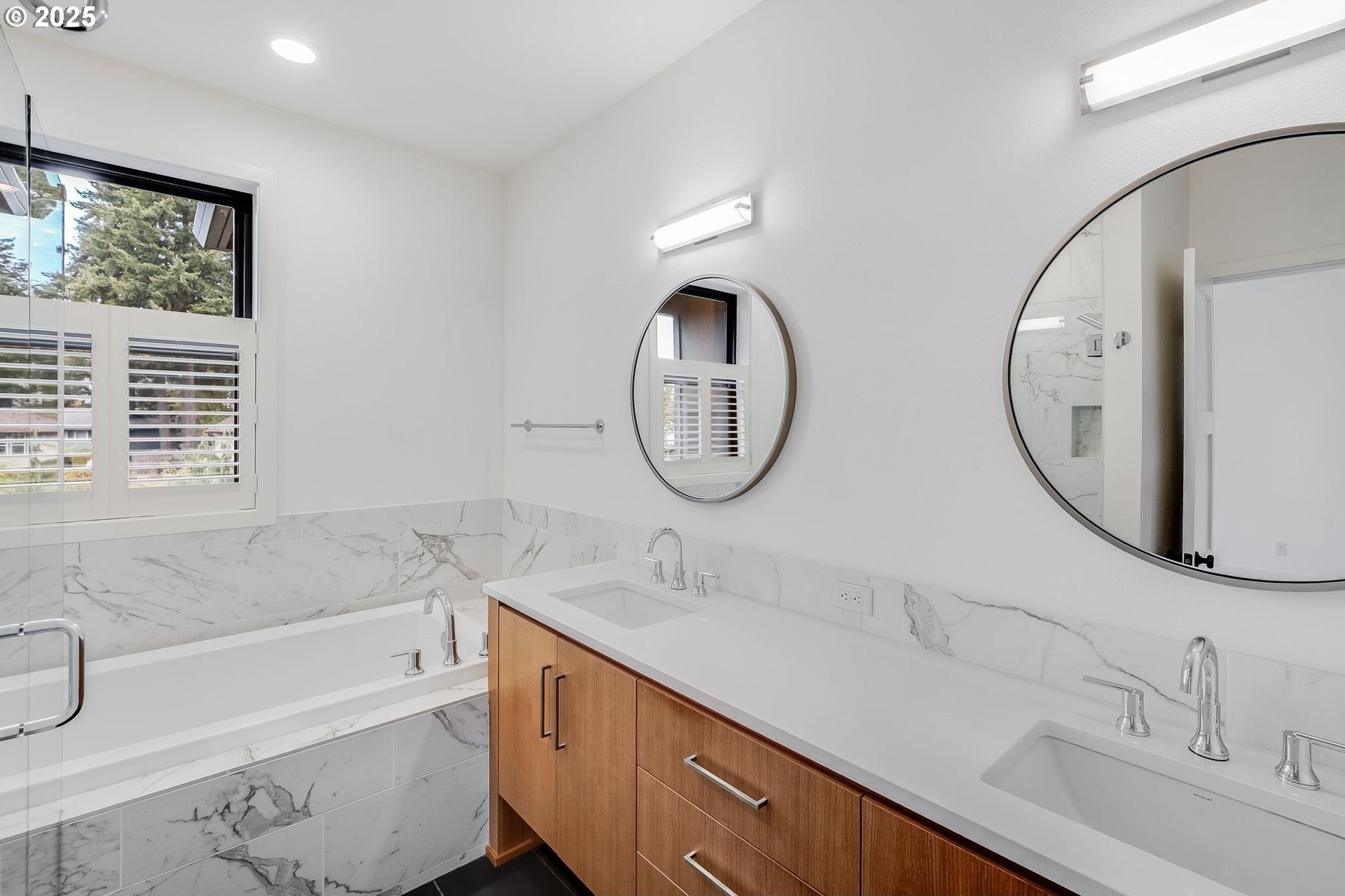Tucked into one of Portland’s most convenient west-side pockets & enjoying Wash Co taxes, this is a special contemporary home! Built in 2017, the property blends clean modern lines, with warmth, light, and comfort— all desirable but rarely found in the same package. The open living space sits on a 6,900 sq ft lot that enjoys a 3.5 acre park just steps away, and still only minutes from downtown PDX. The main level is wide-open and flooded with natural light — perfect for entertaining or relaxing fireside. The kitchen centers the home with a large island, high-end finishes, and room for everyone to gather. Big sliders open to a peaceful backyard retreat with a brand new covered patio space, making indoor/outdoor living effortless. Upstairs you’ll find generous bedrooms and a primary suite that feels like a private spa — walk-in shower, soaking tub, and all the right details. The main floor bonus room is perfectly positioned near the entry — ideal for a play room, flex space or large office. The setting here is hard to beat— quiet, established street with mature trees, and a well-kept modern home- a combination almost impossible to find in this part of town. A Northwest-modern home, that still feels inviting, this one checks every box.