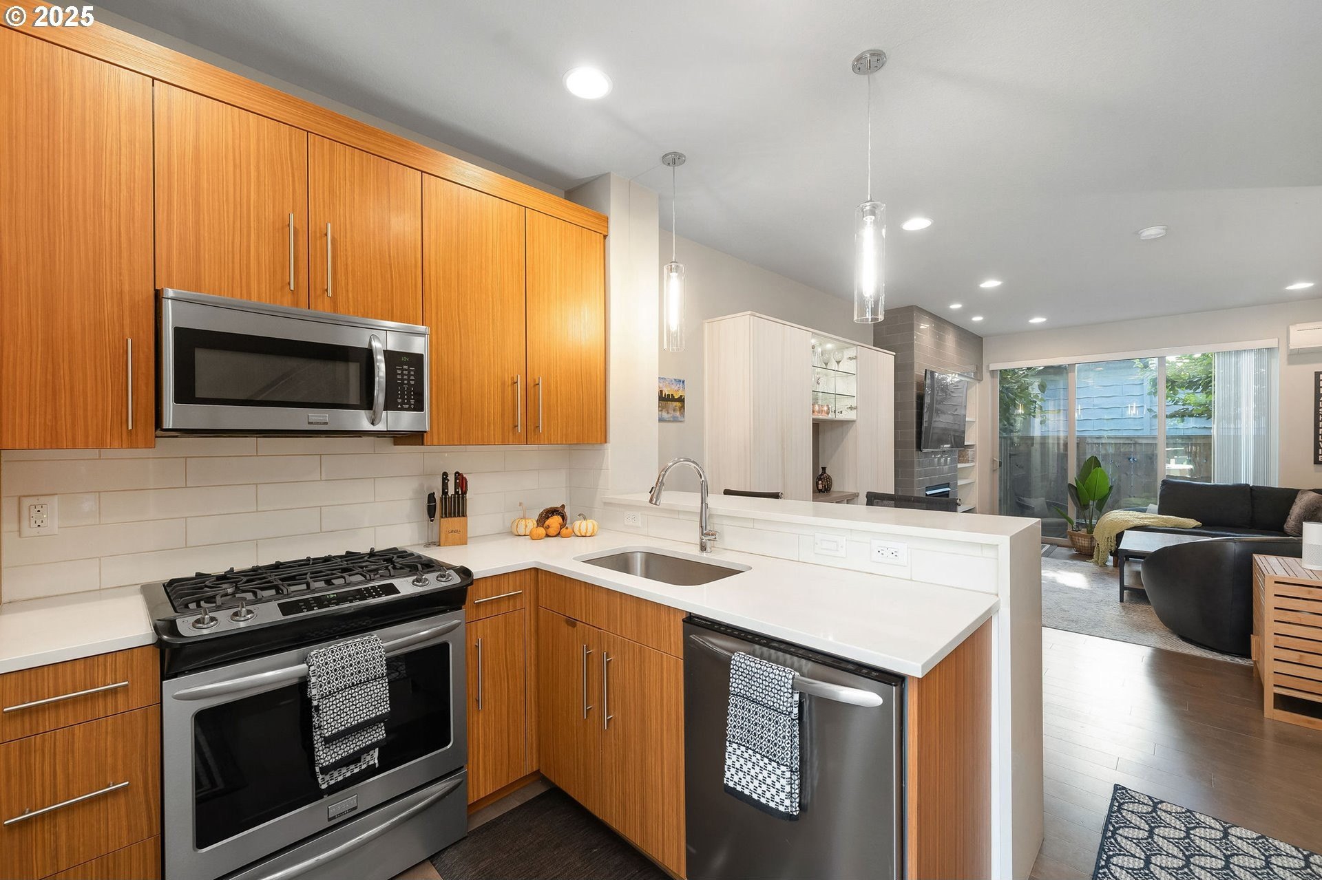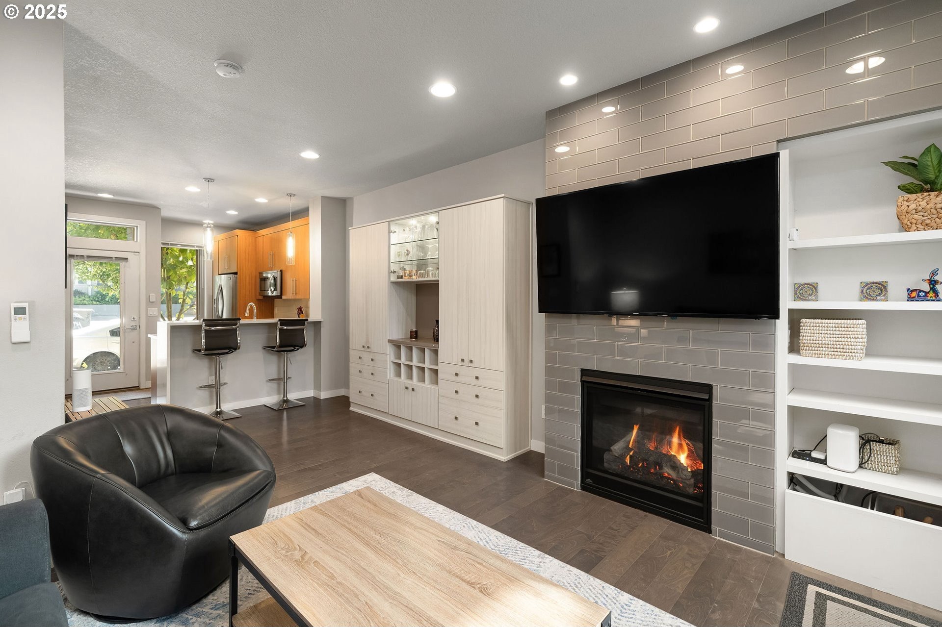 Welcome to Buckman Row — a boutique collection of five thoughtfully designed townhomes nestled in one of Portland’s most vibrant neighborhoods. This contemporary condo offers smart, stylish living with quality finishes and an intuitive layout that maximizes every inch. Step into an open-concept main floor with wide-plank engineered hardwood floors and a cozy gas fireplace. Create your favorite culinary delights in a sleek kitchen featuring quartz countertops, a gas range and stainless-steel appliances. A built-in cabinet with a hideaway table in the dining area allows for even more functional space. Upstairs, you will find two en-suite bedrooms including vaulted ceilings in the primary. Outdoors, there is a private outdoor patio perfect for morning coffee or outdoor entertaining. Located directly across from Colonel Summers Park and surrounded by local favorites like Revolution Hall, Buckman and Hawthorne’s shops and eateries, this home offers unbeatable walkability and urban charm! [Home Energy Score = 10. HES Report at https://rpt.greenbuildingregistry.com/hes/OR10242425]