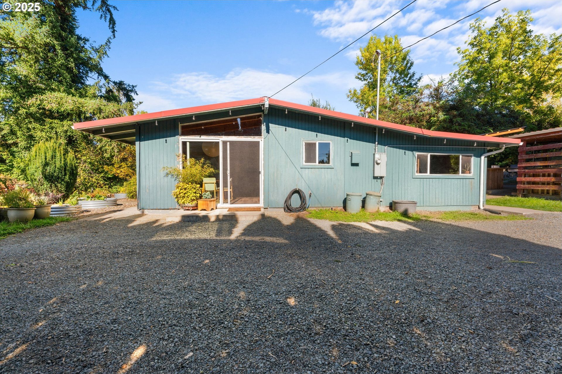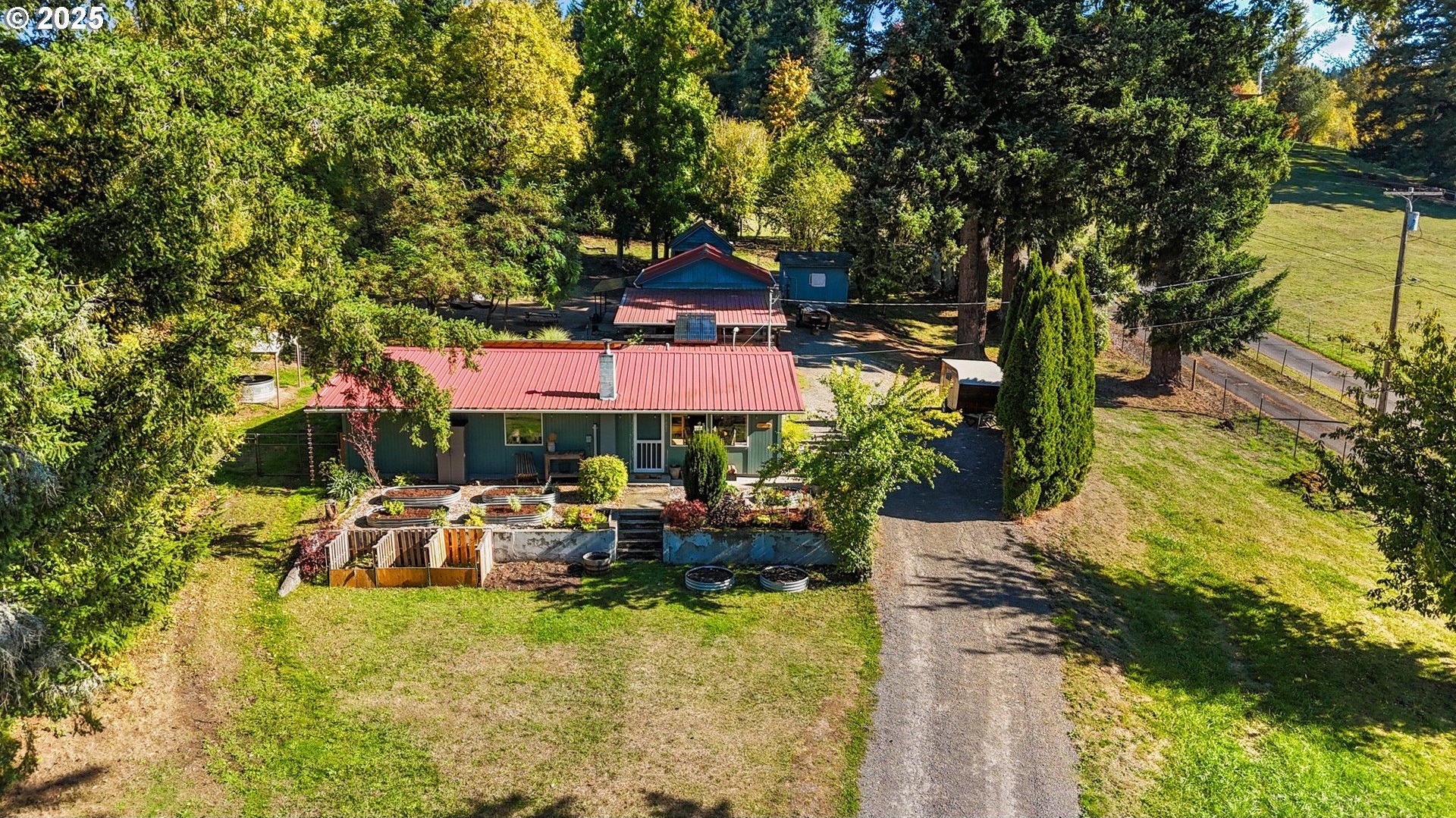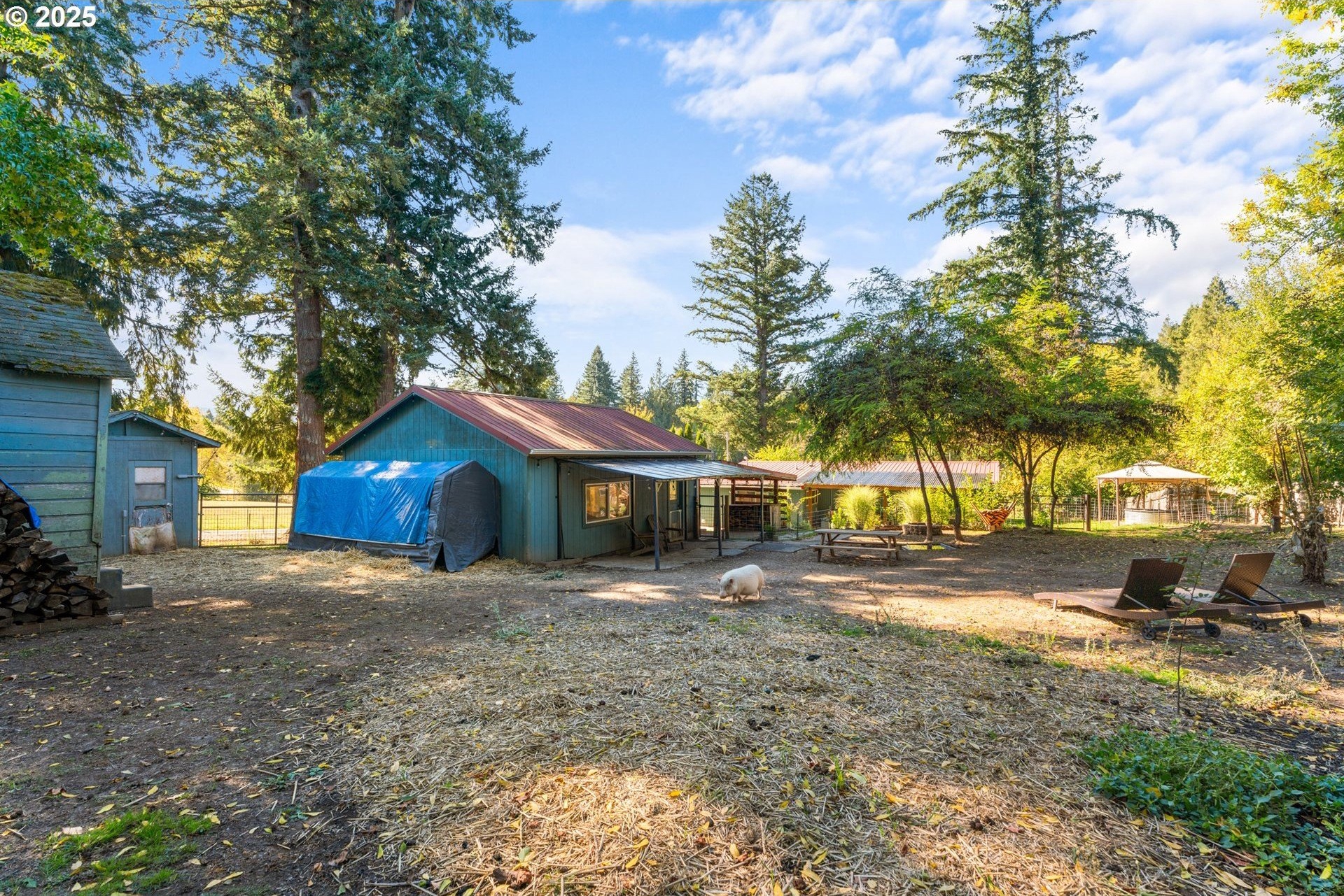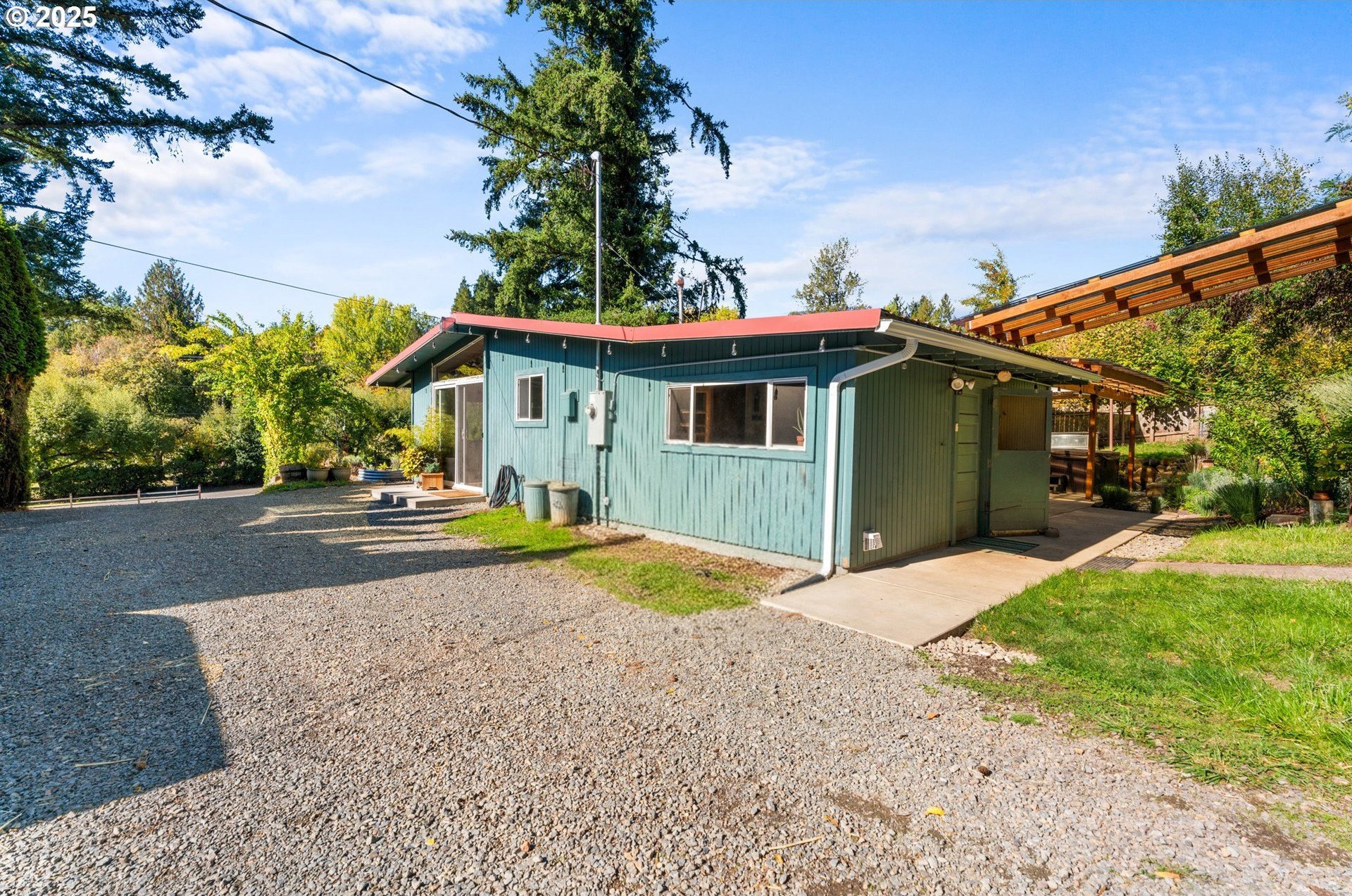 Opportunity knocks with this beautifully maintained mid-century home on a serene 1.55-acre cleared lot, both flat and gently sloping, set back from the road for added privacy. Inside, you’ll find three comfortable bedrooms, vaulted open-beam ceilings, vinyl windows, and a warm, functional layout filled with natural light.Recent updates include a new wood stove (with over 3 cords of firewood included!), new bedroom windows and slider, interior paint, modern lighting and wiring including in the detached garage, and custom window shades throughout. The home also features upgraded electrical and plumbing, a new septic system and well holding tank, and new gutters with copper rain chains. Step outside to enjoy a brand-new covered back patio and rock wall, plus a concrete side patio, ideal for morning coffee and bird watching. The fully fenced and cross-fenced property includes a new gravel driveway and parking pad, raised garden beds, and fruit trees — plum, apple, cherry, fig, chestnut, and grape vines — perfect for the homesteader or hobby gardener. The detached garage with a concrete floor and 220-power adds versatile workspace potential. This peaceful area is surrounded by high-end custom homes, offering room to expand or build your dream addition. Don’t miss the level building site at the back of the property, perfect for gardening, farming, or housing animals.