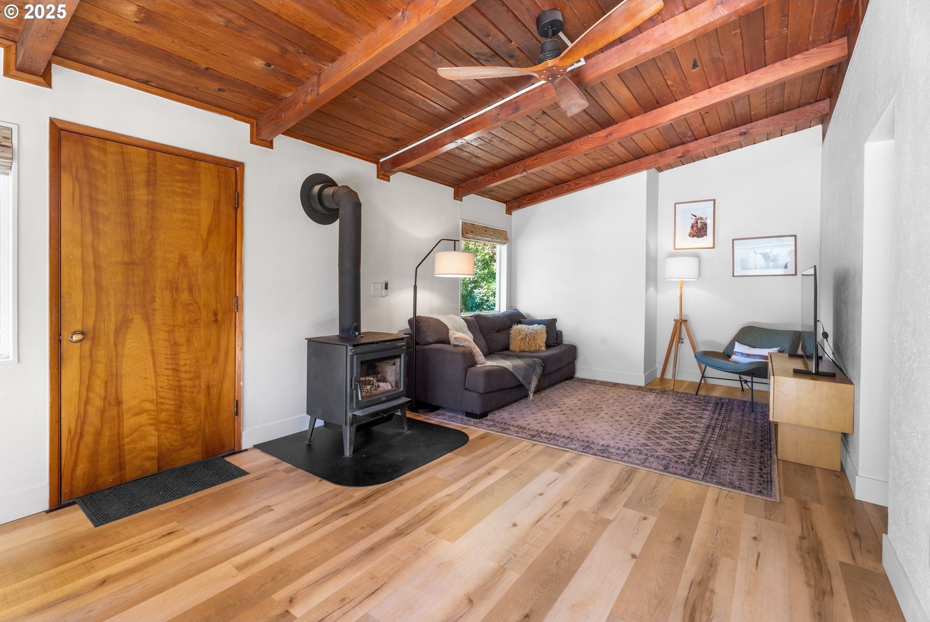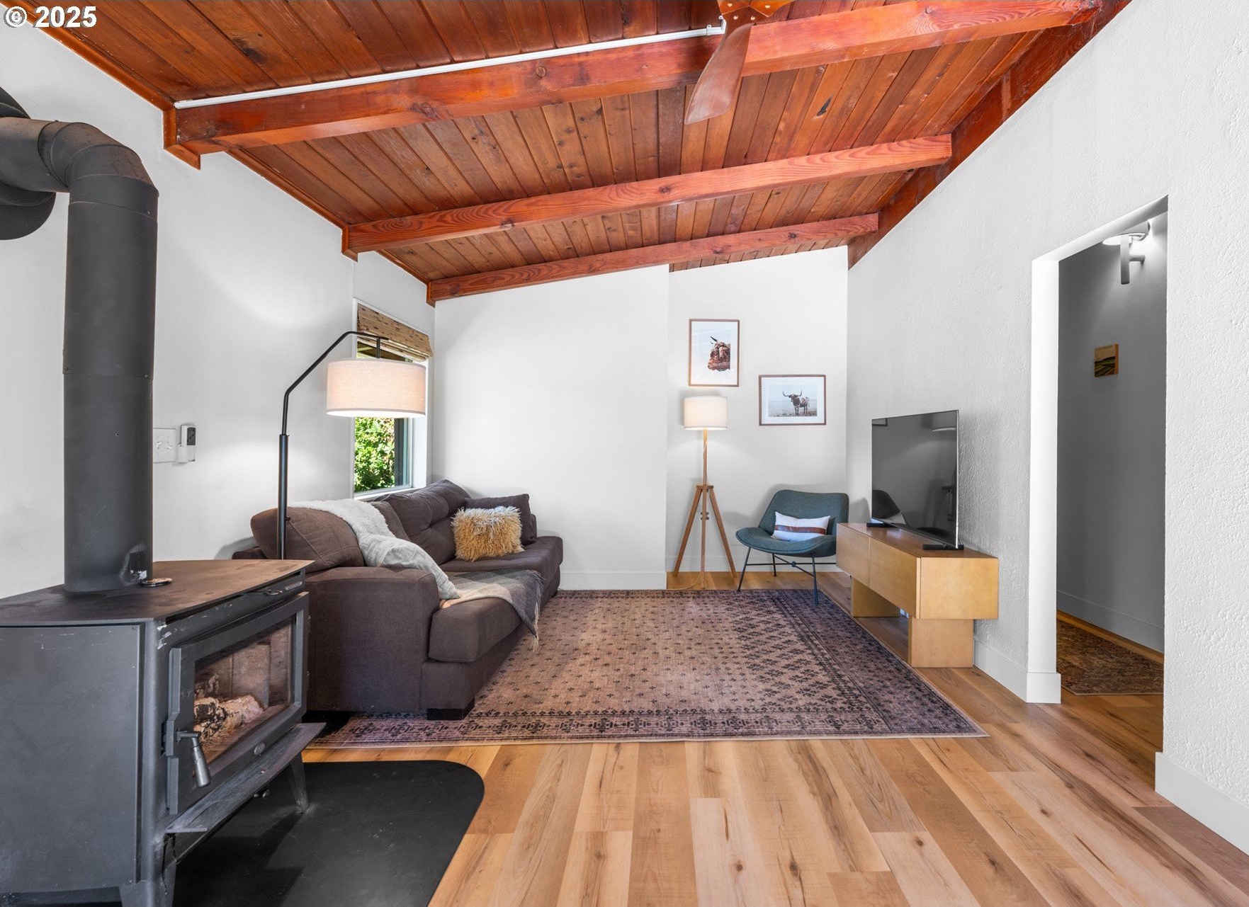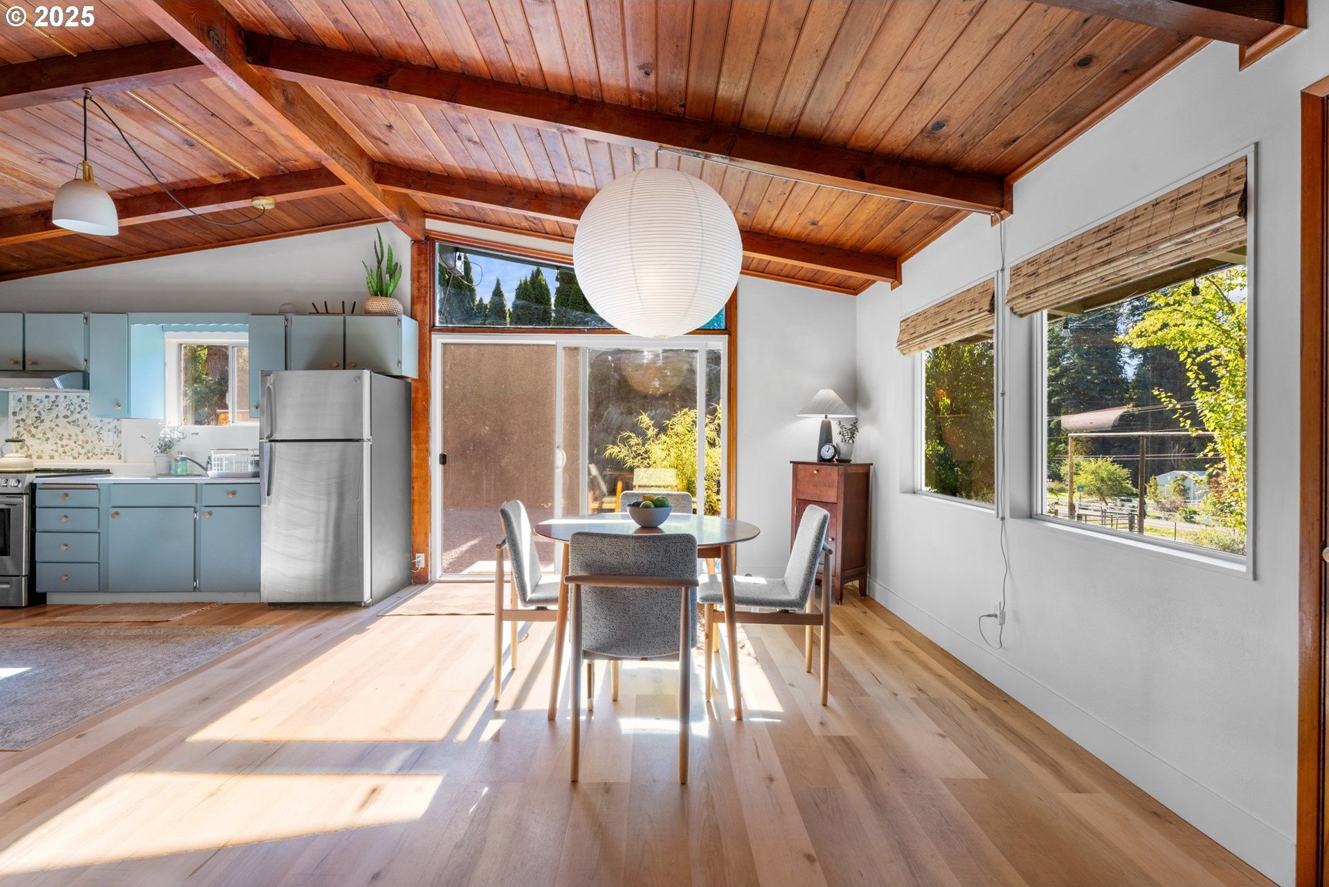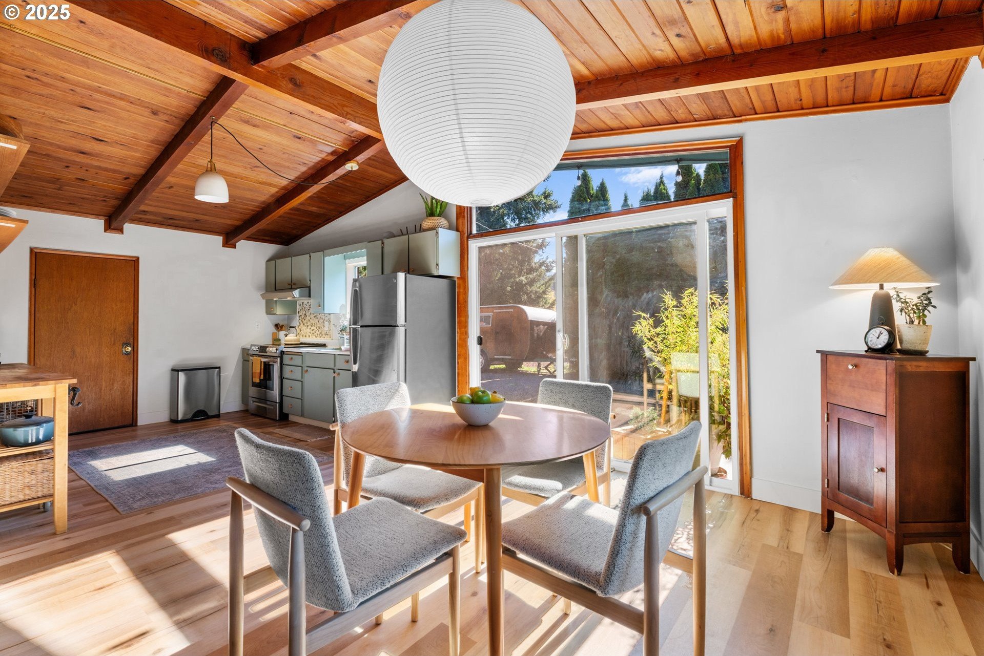 Opportunity knocks with this beautifully maintained mid-century home on a serene 1.55-acre cleared lot, both flat and gently sloping, set back from the road for added privacy. Inside, you’ll find three comfortable bedrooms, vaulted open-beam ceilings, vinyl windows, and a warm, functional layout filled with natural light.Recent updates include a new wood stove (with over 3 cords of firewood included!), new bedroom windows and slider, interior paint, modern lighting and wiring including in the detached garage, and custom window shades throughout. The home also features upgraded electrical and plumbing, a new septic system and well holding tank, and new gutters with copper rain chains. Step outside to enjoy a brand-new covered back patio and rock wall, plus a concrete side patio, ideal for morning coffee and bird watching. The fully fenced and cross-fenced property includes a new gravel driveway and parking pad, raised garden beds, and fruit trees — plum, apple, cherry, fig, chestnut, and grape vines — perfect for the homesteader or hobby gardener. The detached garage with a concrete floor and 220-power adds versatile workspace potential. This peaceful area is surrounded by high-end custom homes, offering room to expand or build your dream addition. Don’t miss the level building site at the back of the property, perfect for gardening, farming, or housing animals.