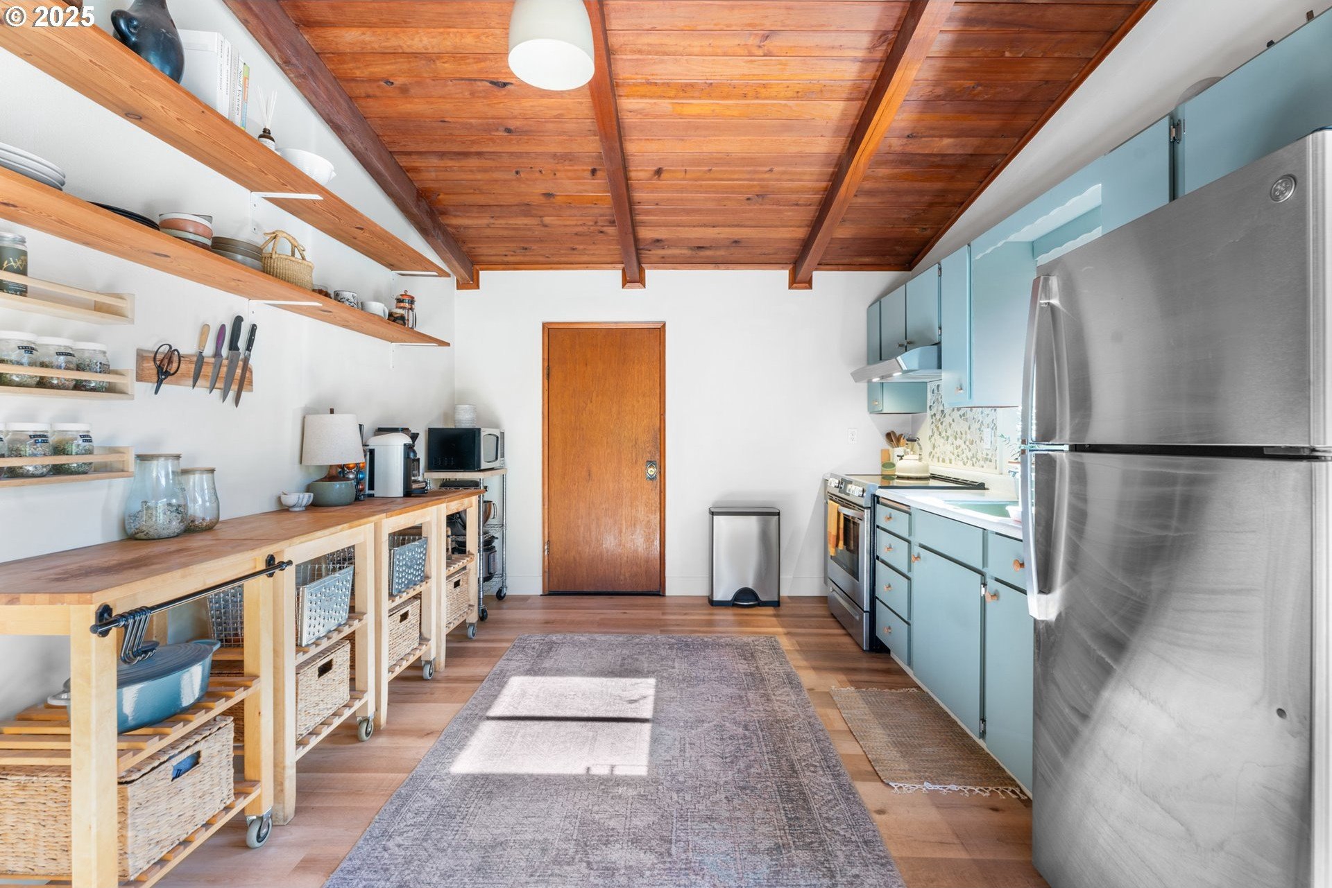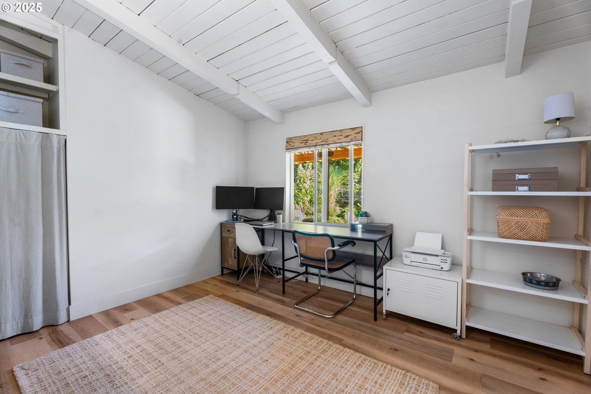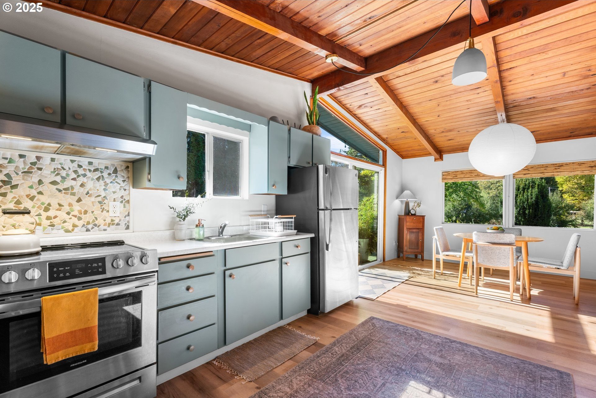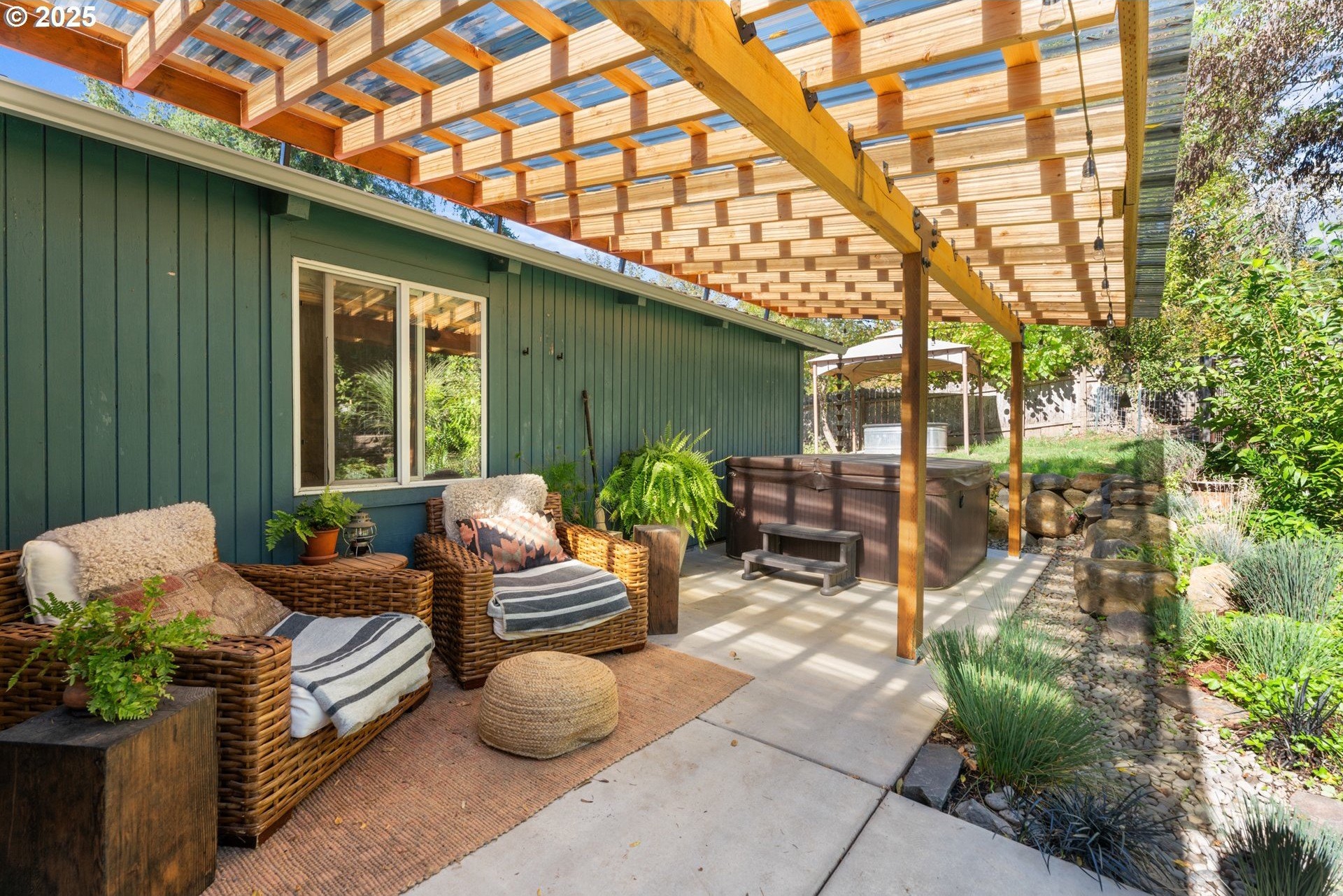 Opportunity knocks with this beautifully maintained mid-century home on a serene 1.55-acre cleared lot, both flat and gently sloping, set back from the road for added privacy. Inside, you’ll find three comfortable bedrooms, vaulted open-beam ceilings, vinyl windows, and a warm, functional layout filled with natural light.Recent updates include a new wood stove (with over 3 cords of firewood included!), new bedroom windows and slider, interior paint, modern lighting and wiring including in the detached garage, and custom window shades throughout. The home also features upgraded electrical and plumbing, a new septic system and well holding tank, and new gutters with copper rain chains. Step outside to enjoy a brand-new covered back patio and rock wall, plus a concrete side patio, ideal for morning coffee and bird watching. The fully fenced and cross-fenced property includes a new gravel driveway and parking pad, raised garden beds, and fruit trees — plum, apple, cherry, fig, chestnut, and grape vines — perfect for the homesteader or hobby gardener. The detached garage with a concrete floor and 220-power adds versatile workspace potential. This peaceful area is surrounded by high-end custom homes, offering room to expand or build your dream addition. Don’t miss the level building site at the back of the property, perfect for gardening, farming, or housing animals.