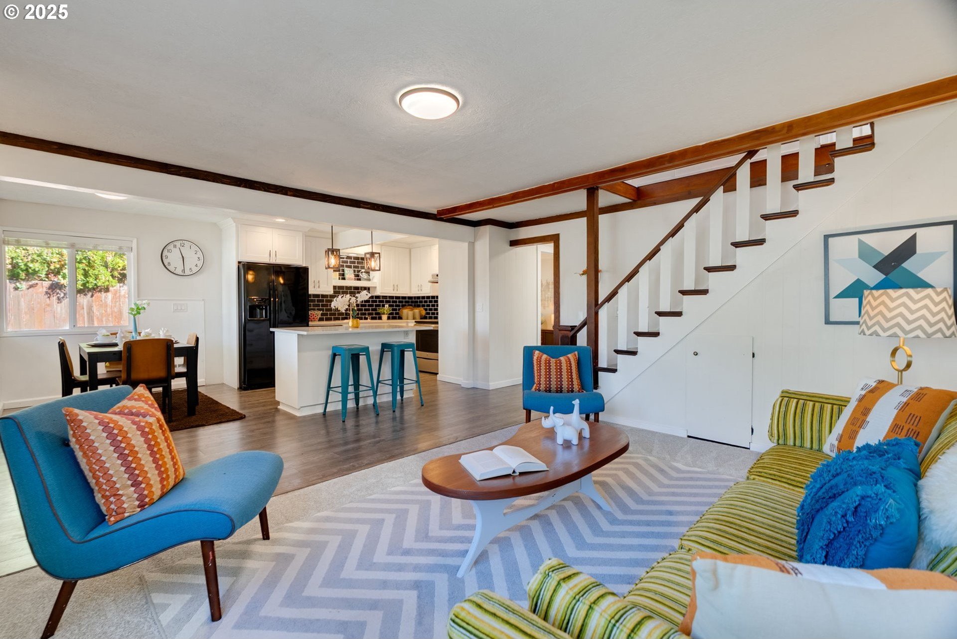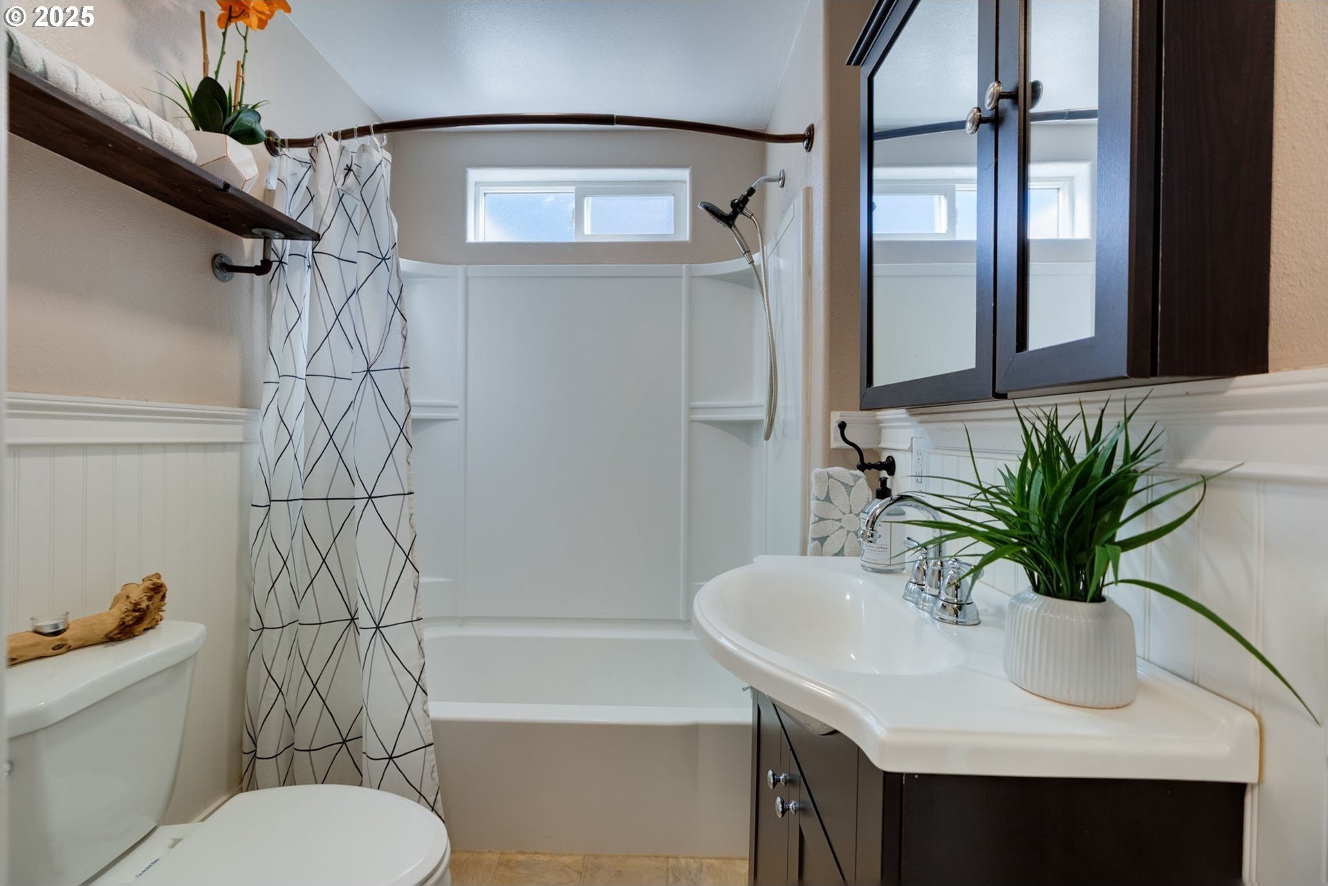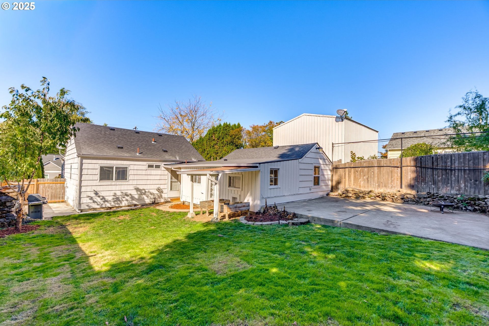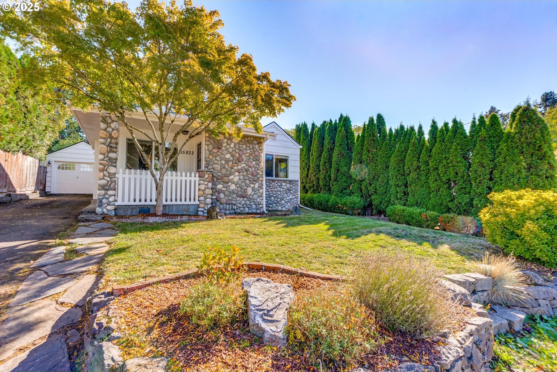 Charming 1930s Cottage-style home in the heart of Old Town Sherwood! This property seamlessly blends vintage character with thoughtful updates. The open-concept layout features a modernized kitchen with white shaker cabinets, quartz countertops, and a cozy dining area with windows overlooking the front yard, conveniently located just off the kitchen. The main level features two bedrooms and a full bathroom, while the upper level offers a cozy third bedroom, perfect for guests, an office, or a creative space. The large backyard showcases mature landscaping, a spacious lawn, and a generous concrete pad, ideal for entertaining, playing basketball, or future outdoor projects. A detached single-car garage adds versatility with a small workshop and a separate bathroom with a shower. Full of character, this home is just blocks from Sherwood’s historic downtown shops, parks, and top-rated schools. Other notable updates include a newer roof, a newer water heater, an updated electrical panel, and brand-new carpet throughout. A rare opportunity to own a piece of Sherwood’s history, thoughtfully updated for modern living while preserving its original character.