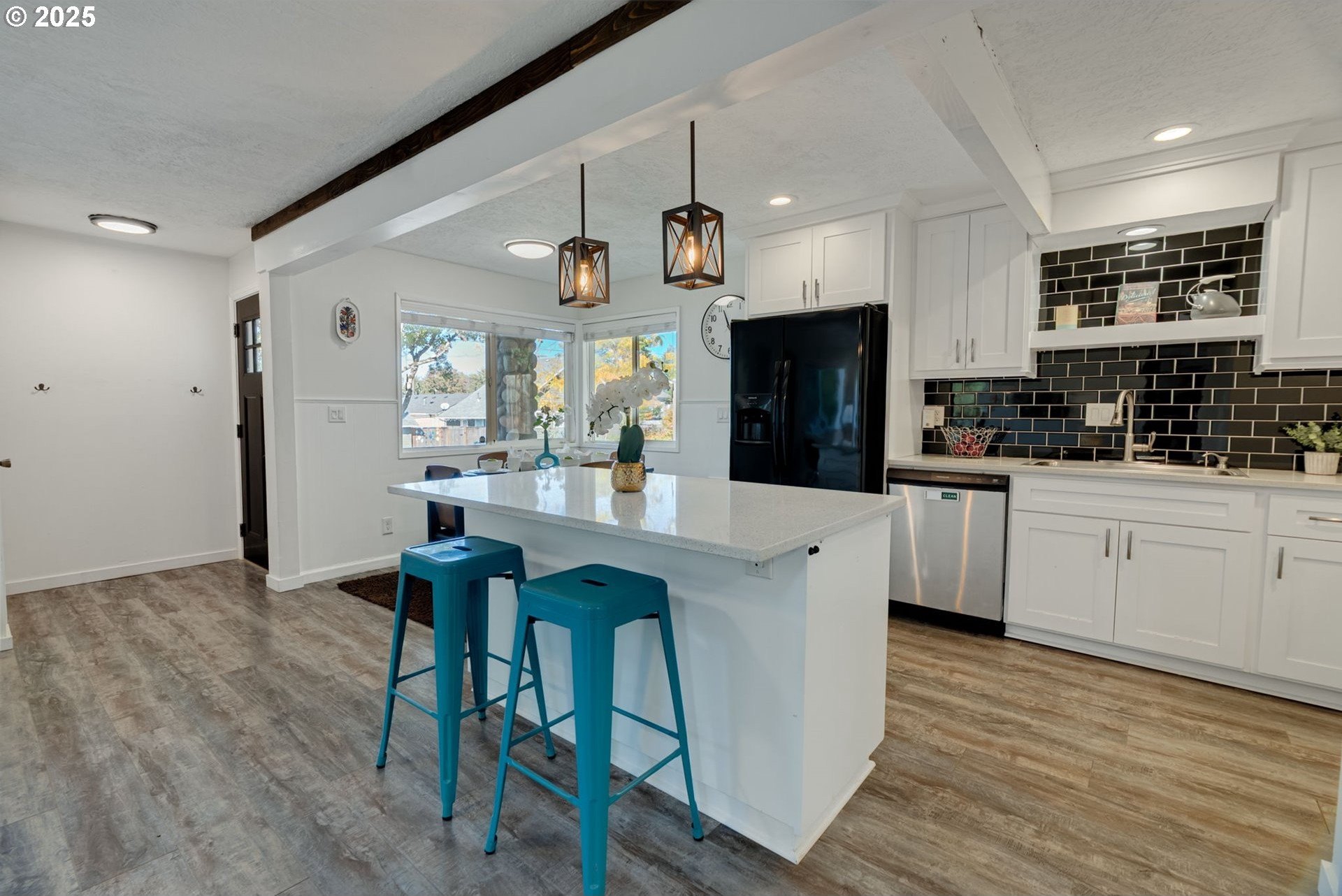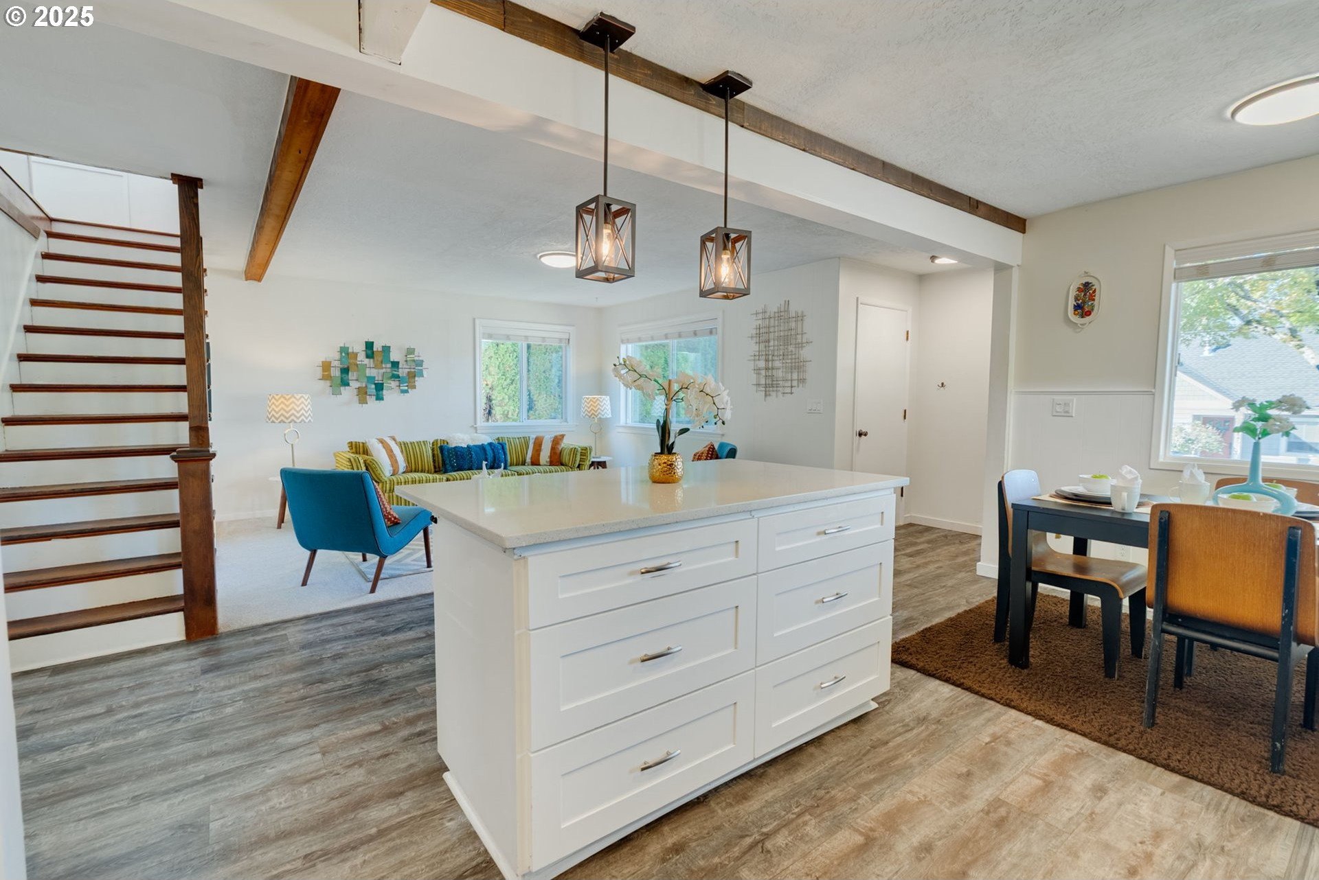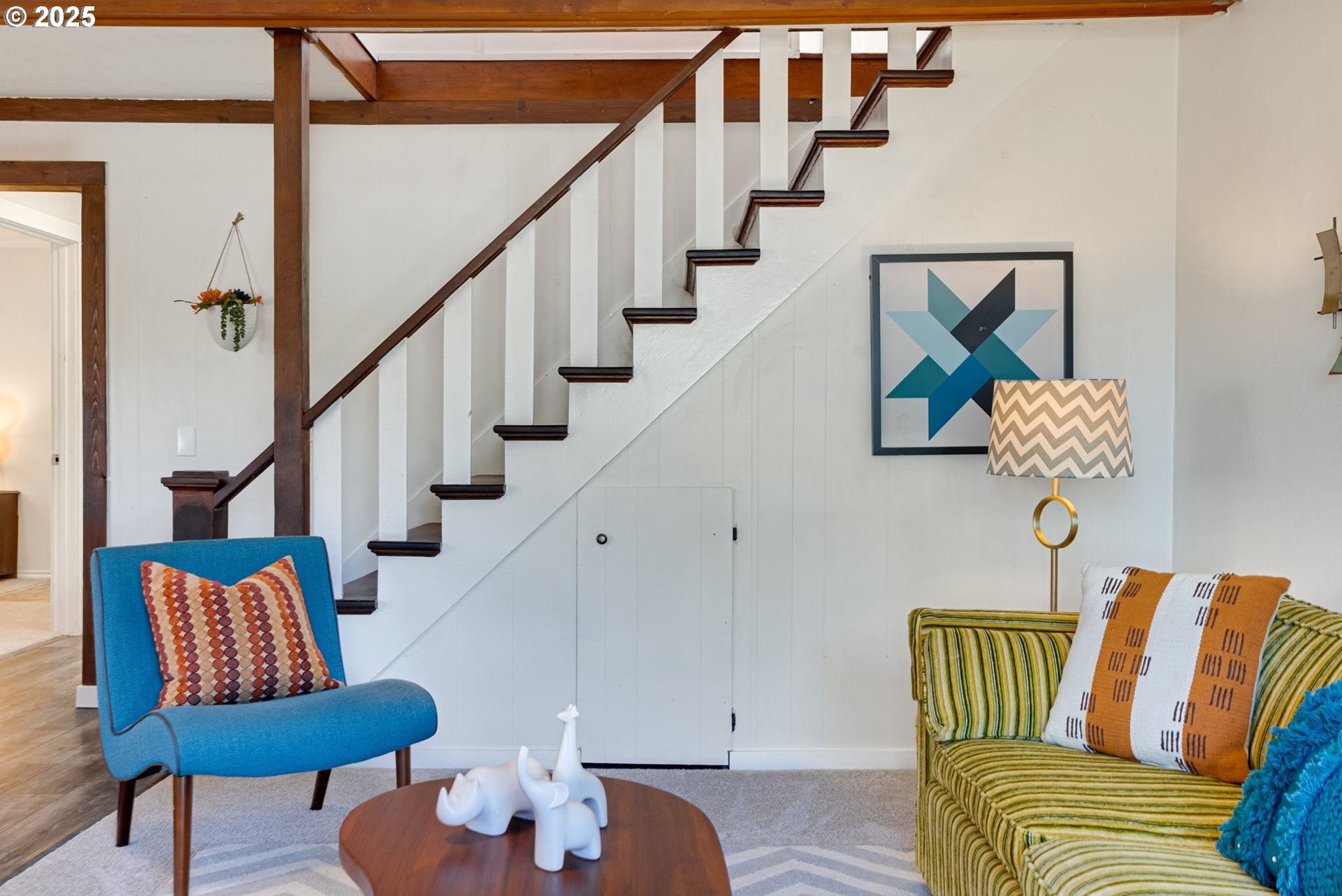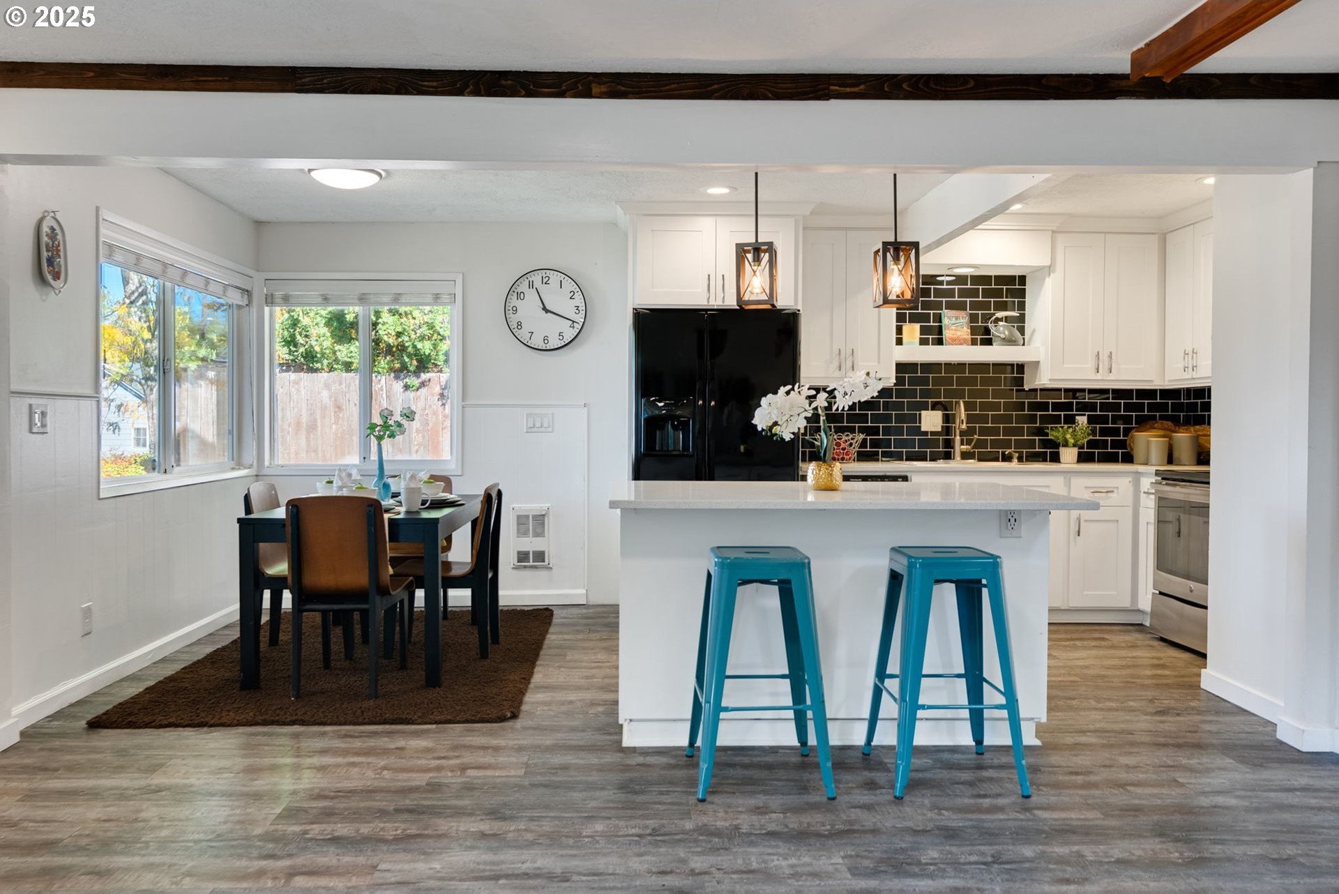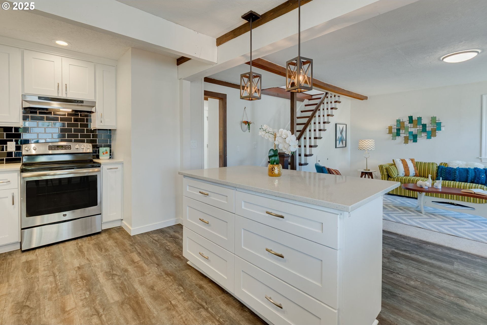 Charming 1930s Cottage-style home in the heart of Old Town Sherwood! This property seamlessly blends vintage character with thoughtful updates. The open-concept layout features a modernized kitchen with white shaker cabinets, quartz countertops, and a cozy dining area with windows overlooking the front yard, conveniently located just off the kitchen. The main level features two bedrooms and a full bathroom, while the upper level offers a cozy third bedroom, perfect for guests, an office, or a creative space. The large backyard showcases mature landscaping, a spacious lawn, and a generous concrete pad, ideal for entertaining, playing basketball, or future outdoor projects. A detached single-car garage adds versatility with a small workshop and a separate bathroom with a shower. Full of character, this home is just blocks from Sherwood’s historic downtown shops, parks, and top-rated schools. Other notable updates include a newer roof, a newer water heater, an updated electrical panel, and brand-new carpet throughout. A rare opportunity to own a piece of Sherwood’s history, thoughtfully updated for modern living while preserving its original character.